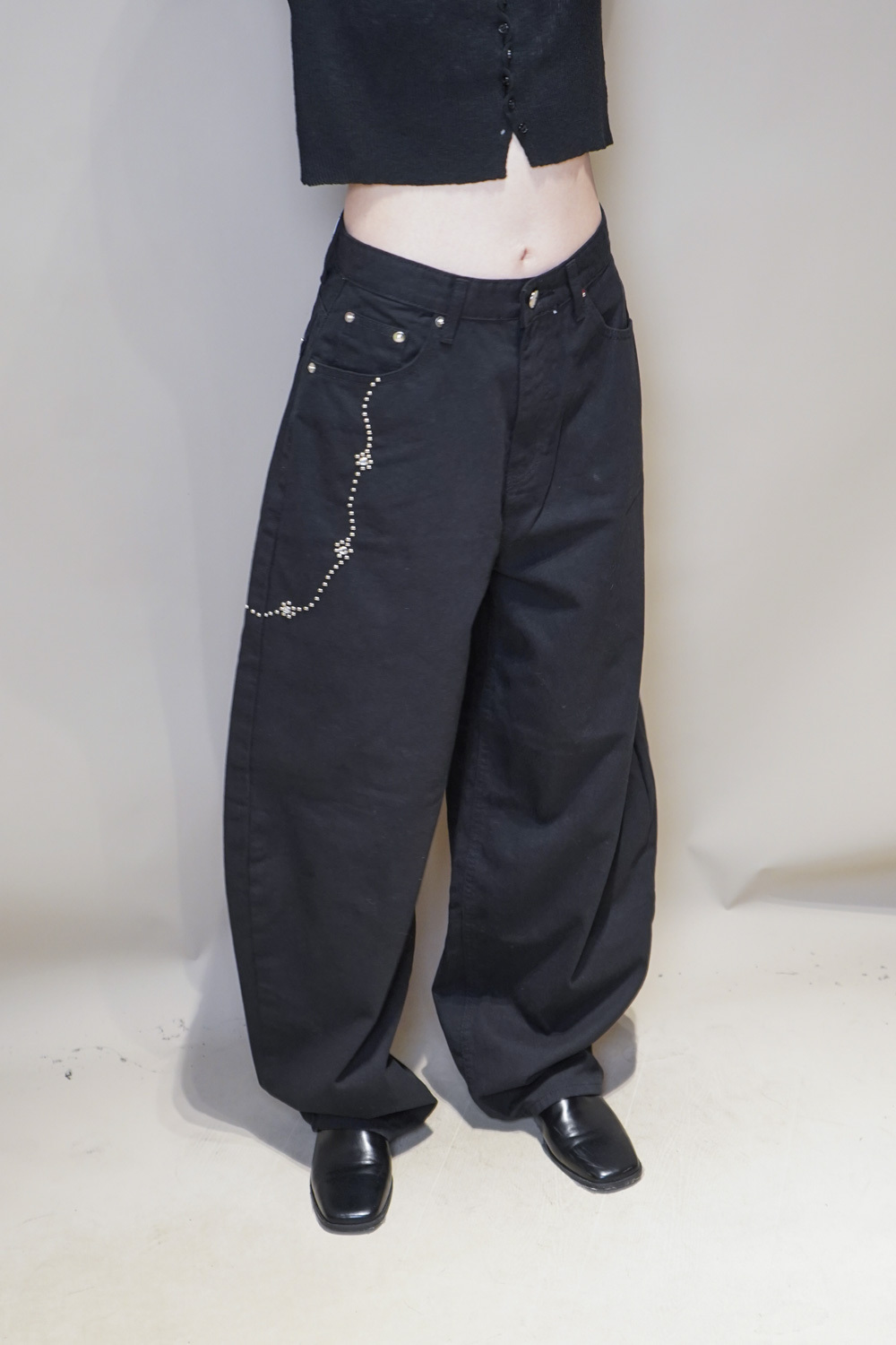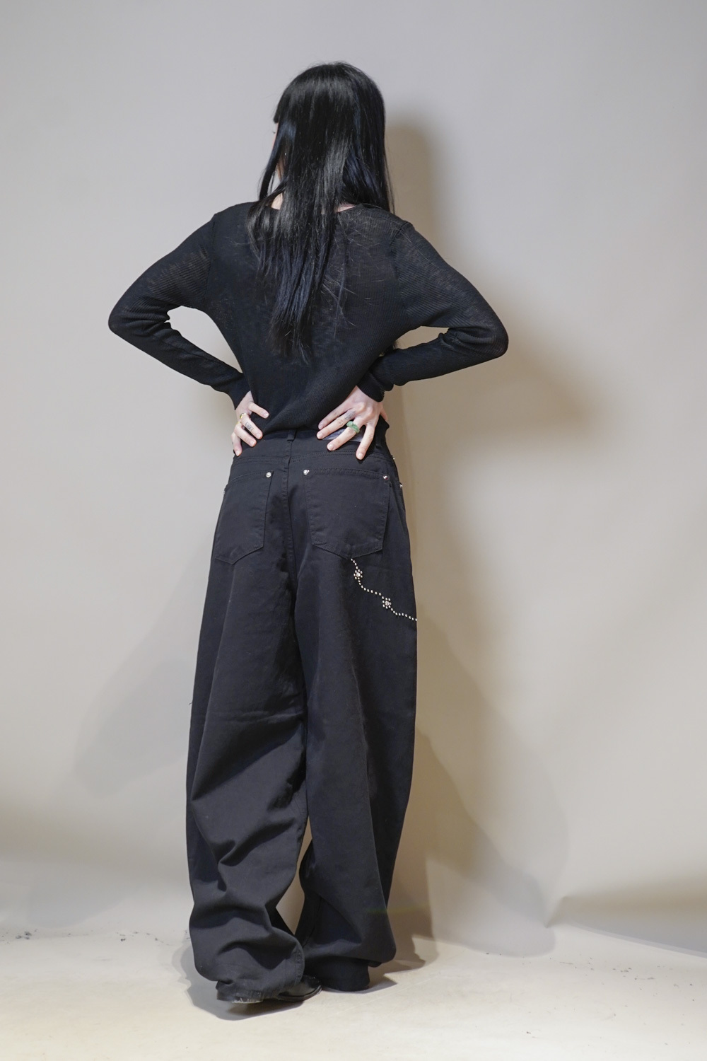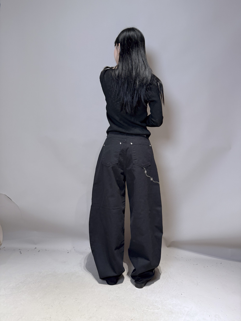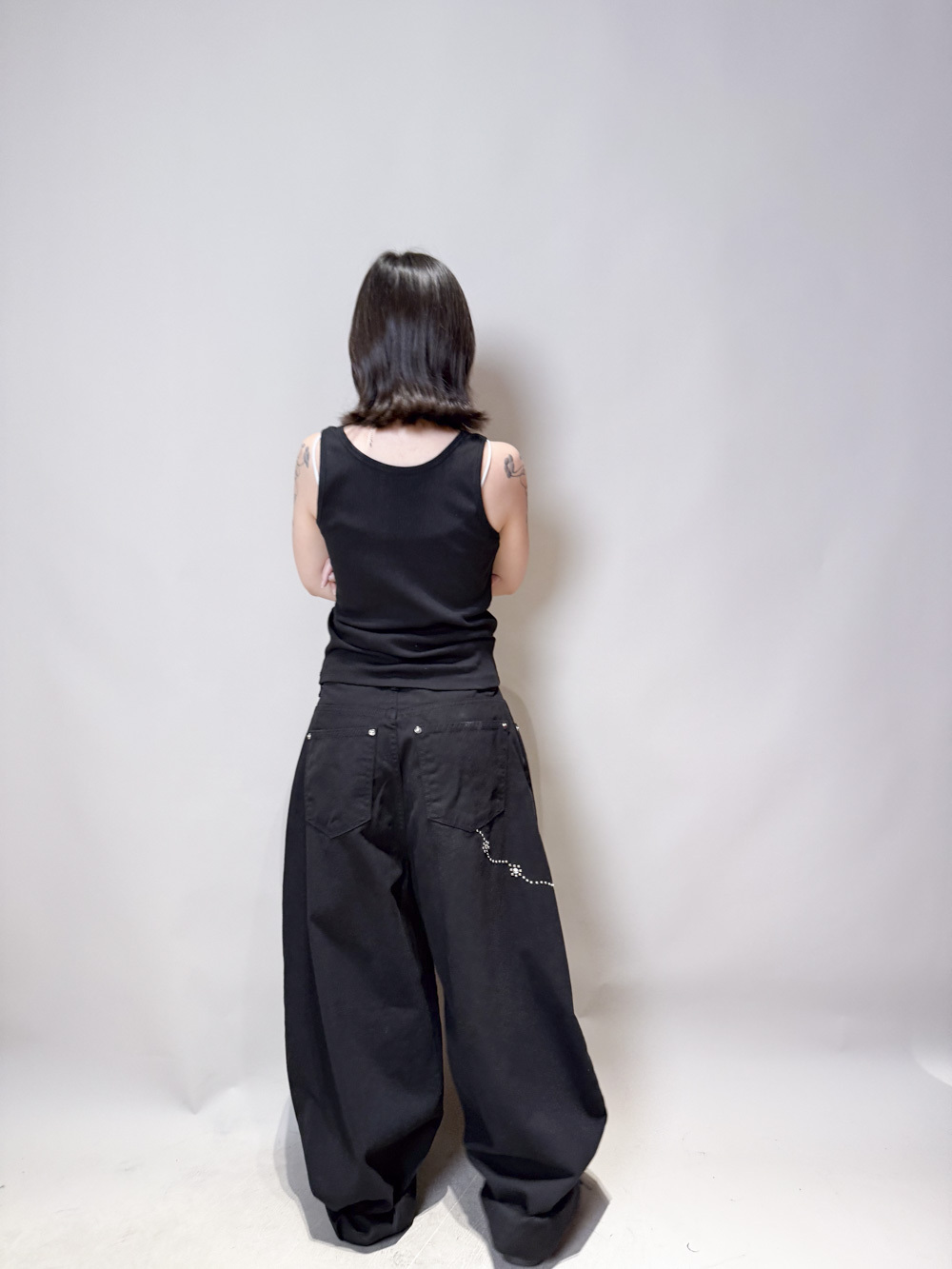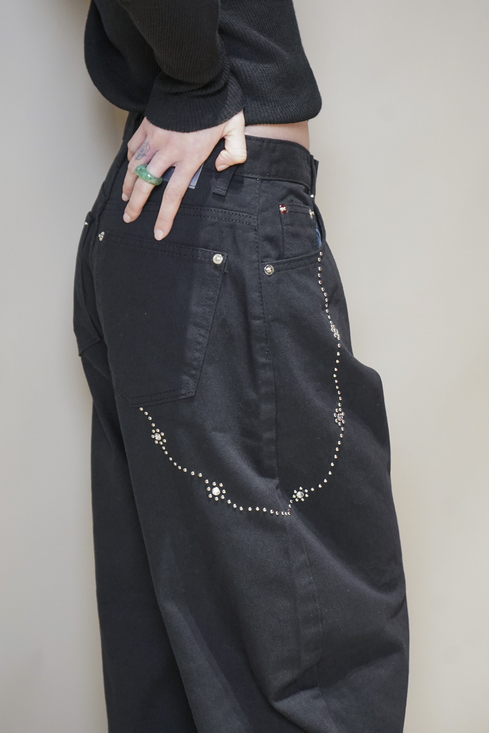 Love~! Rivet Pockets Baggy Pants (BLACK) - S/M/L