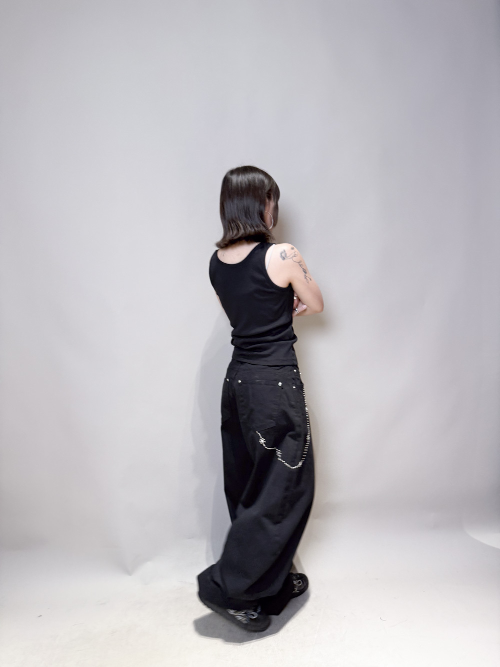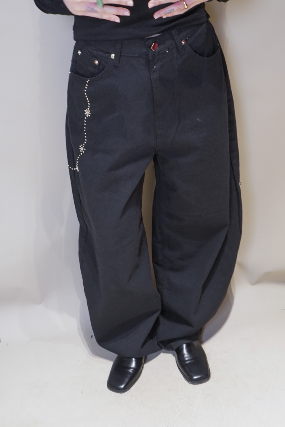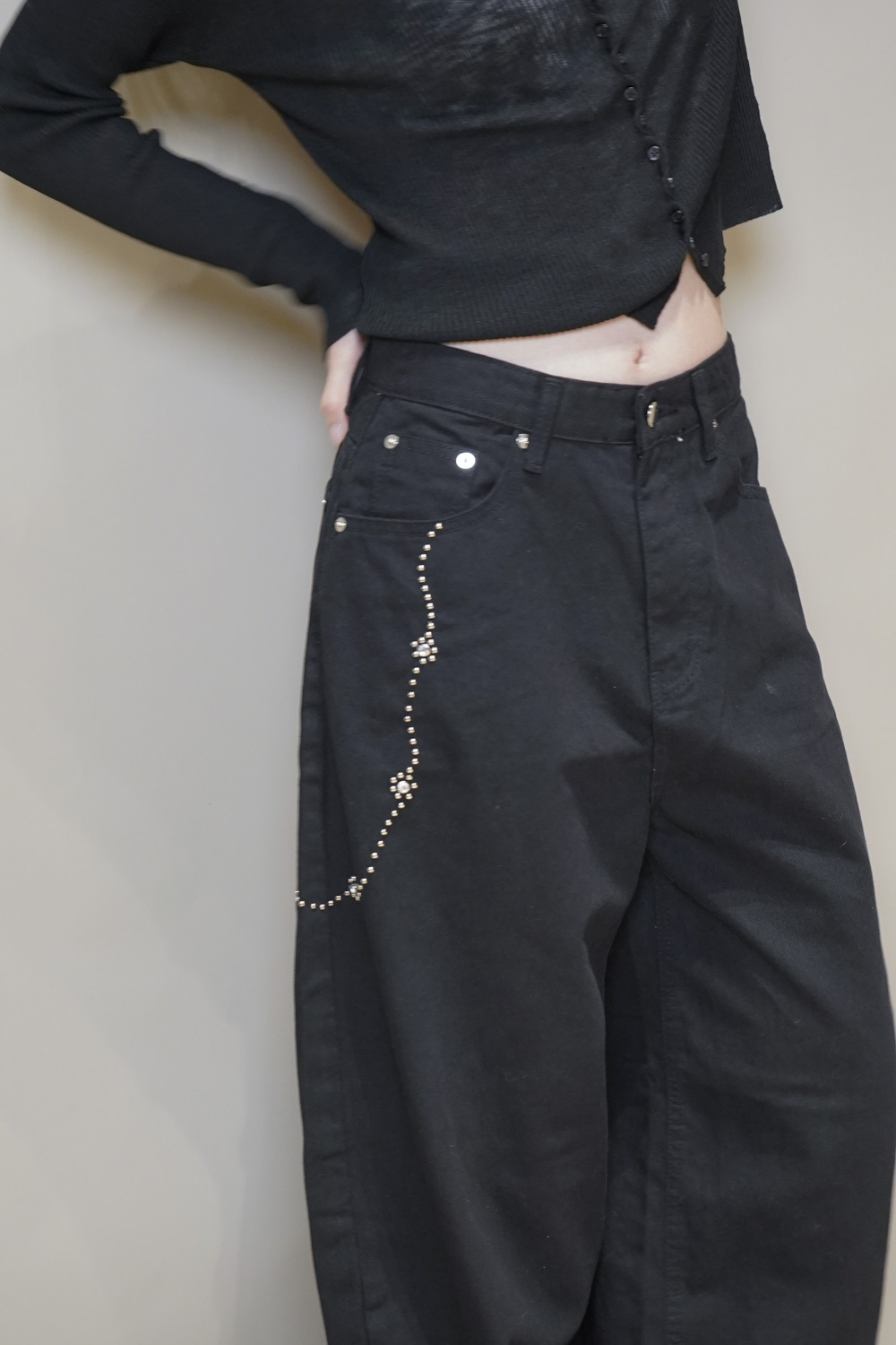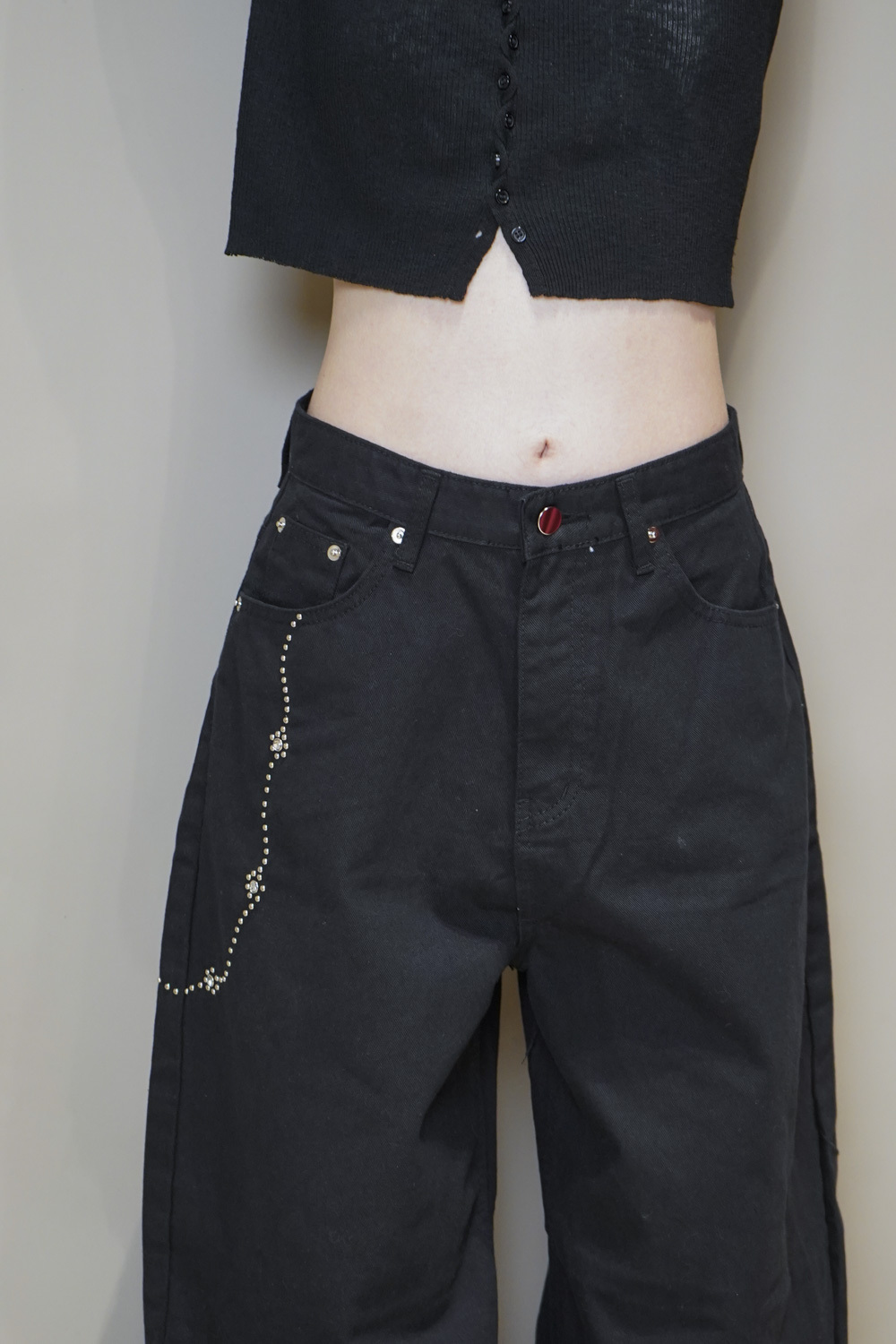 Love~! Rivet Pockets Baggy Pants (BLACK) - S/M/L