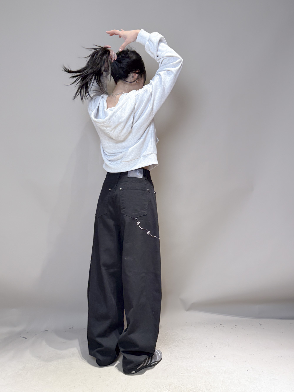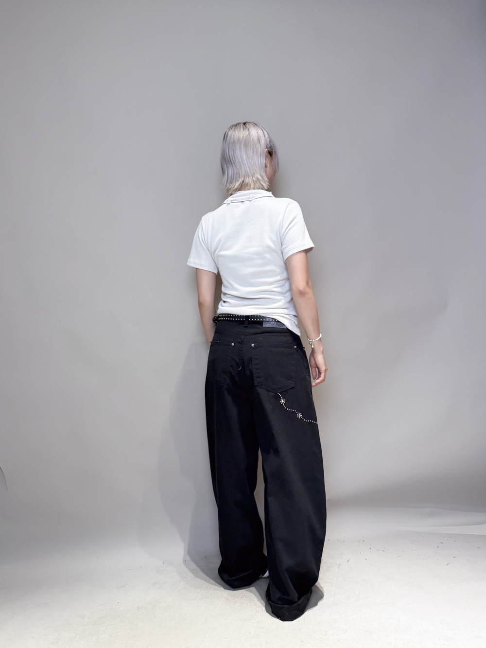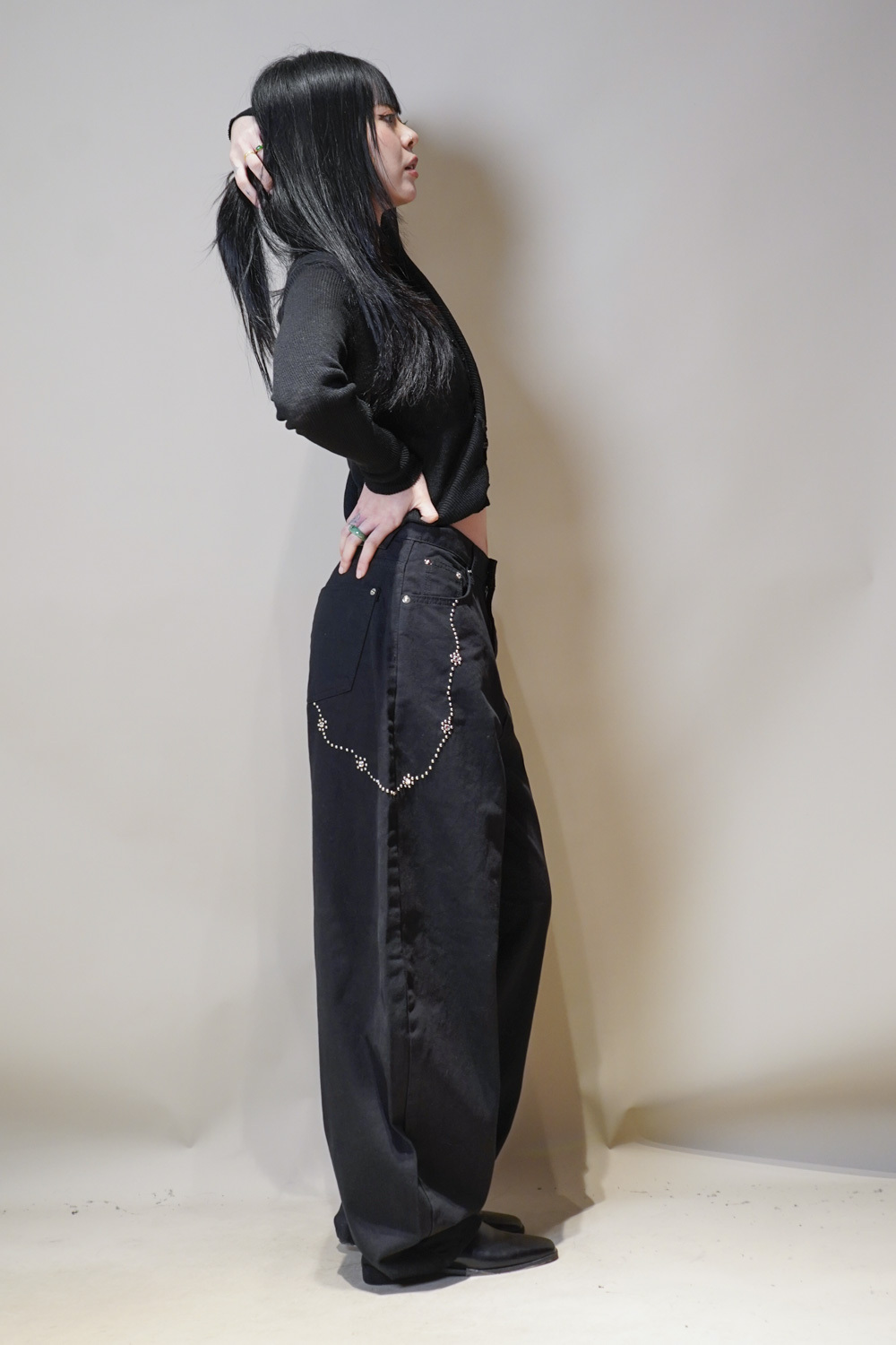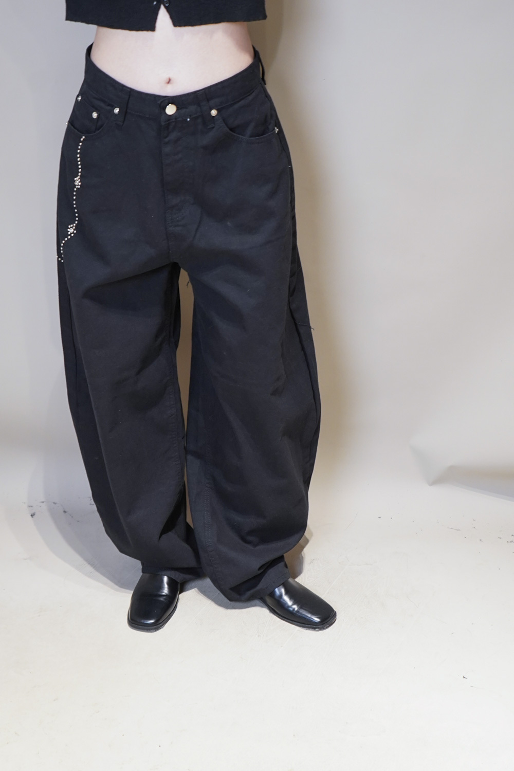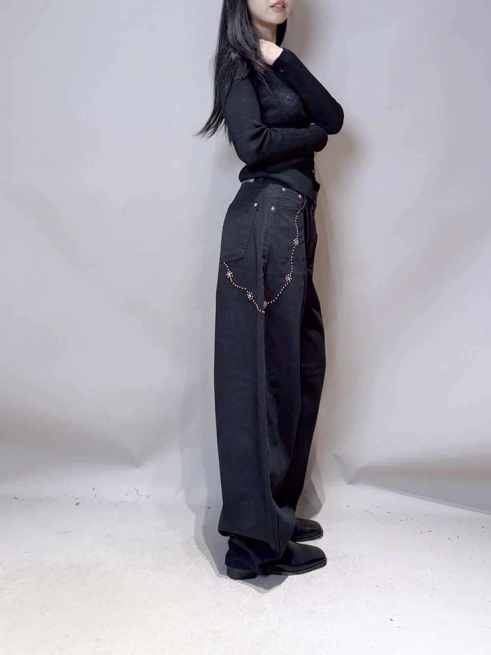 Love~! Rivet Pockets Baggy Pants (BLACK) - S/M/L