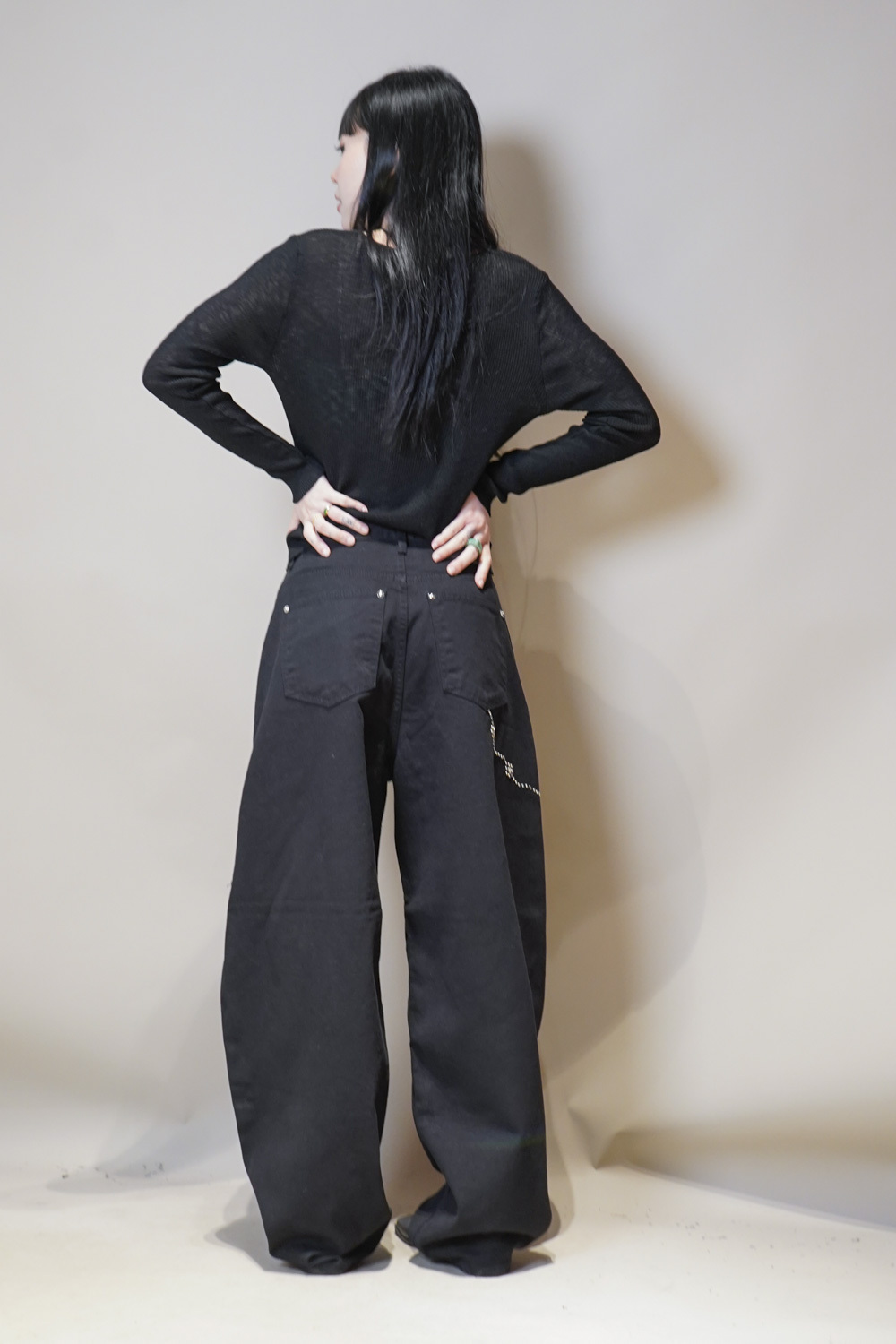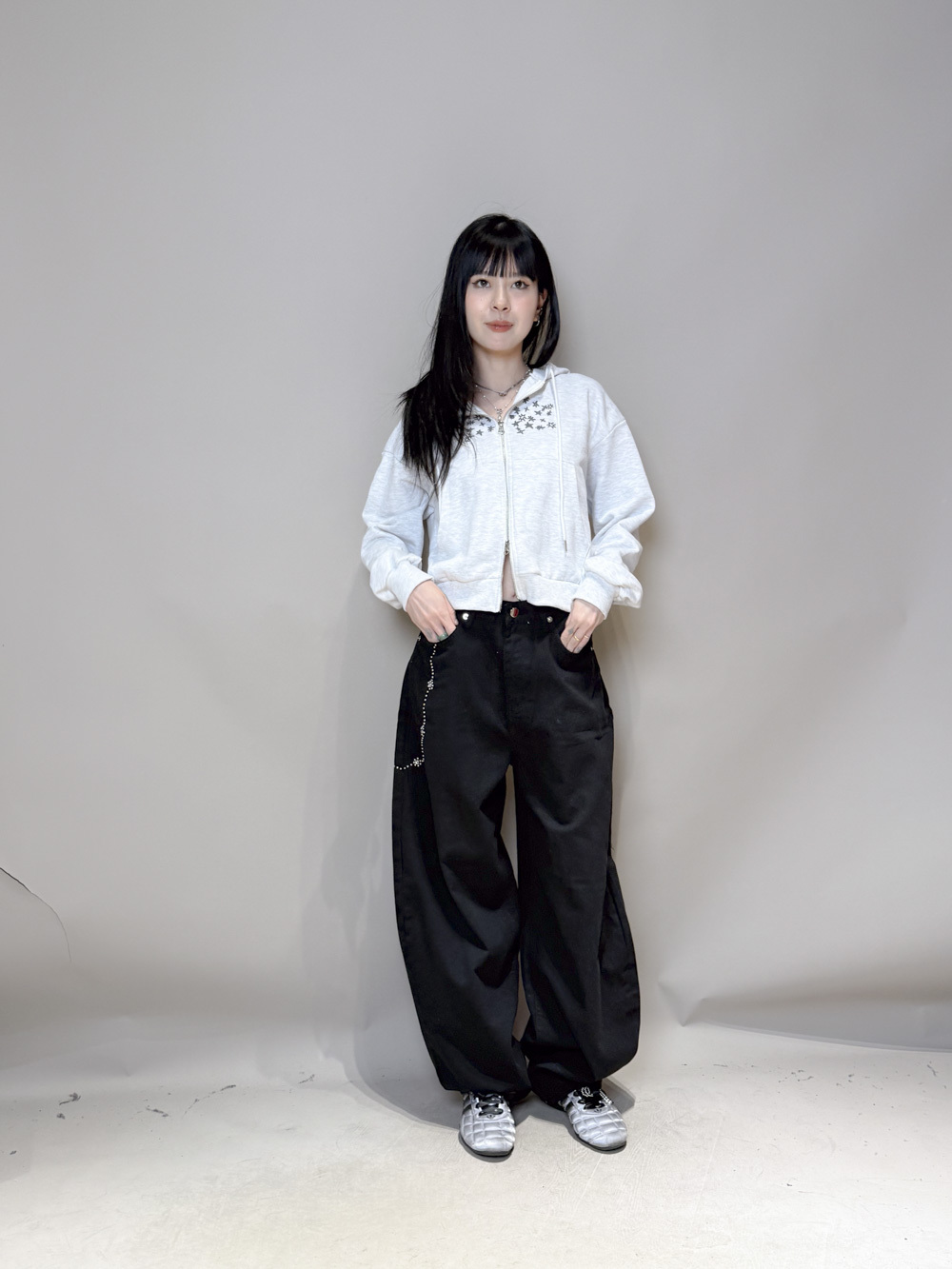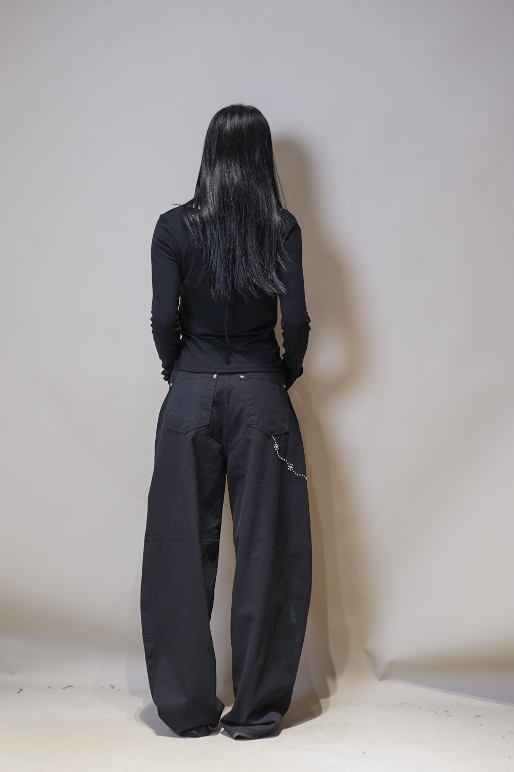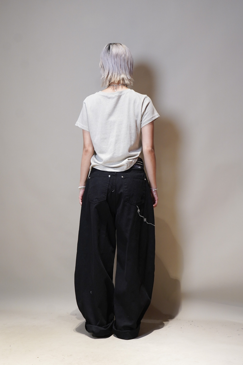 Love~! Rivet Pockets Baggy Pants (BLACK) - S/M/L