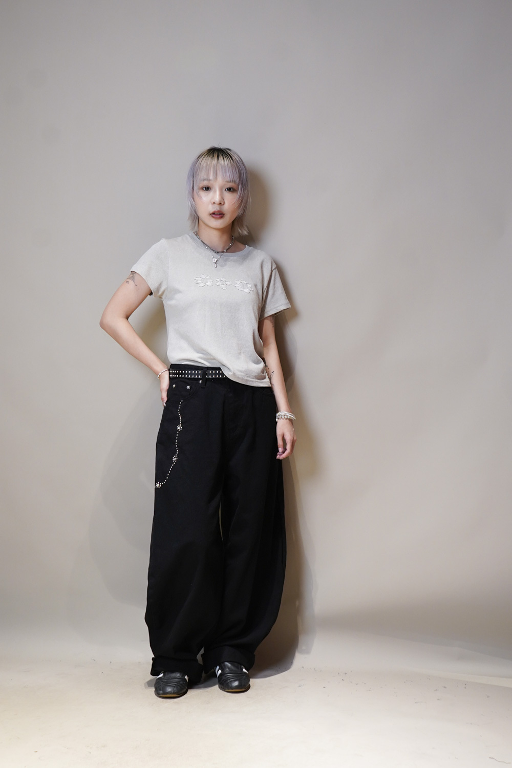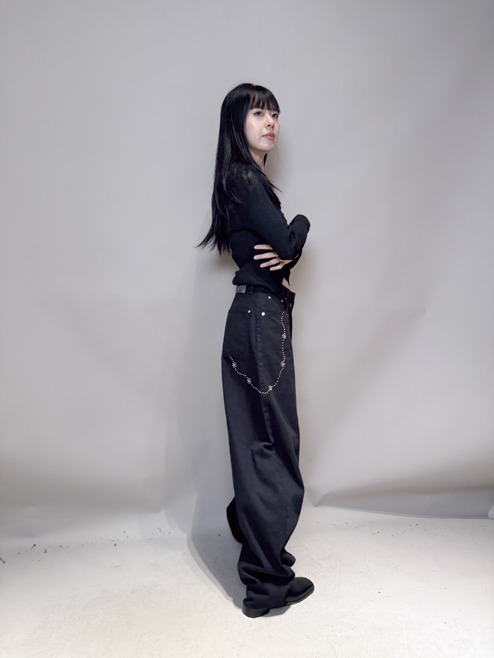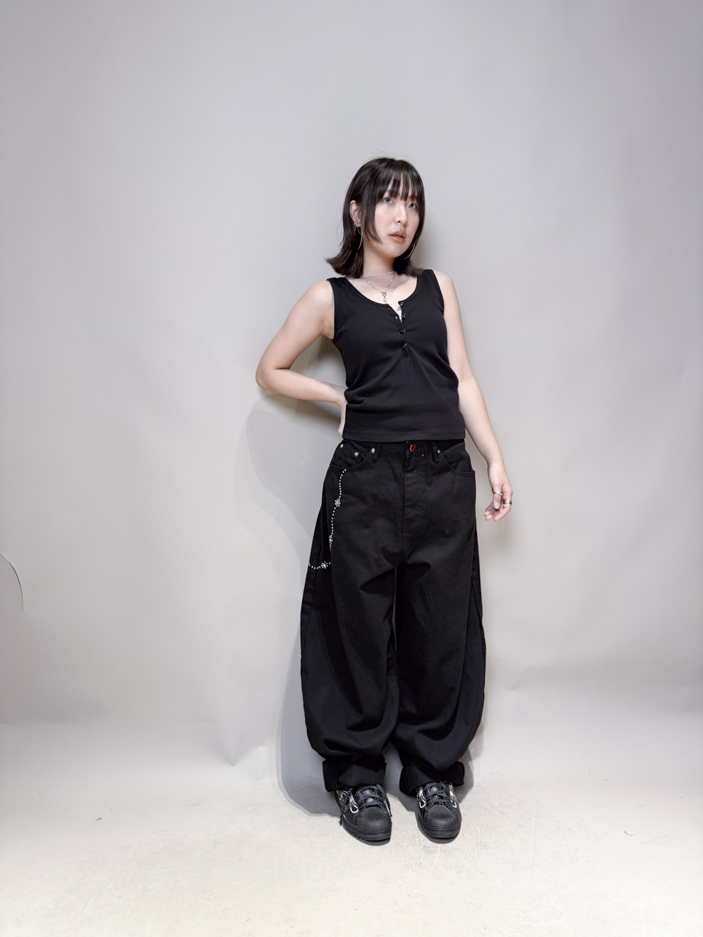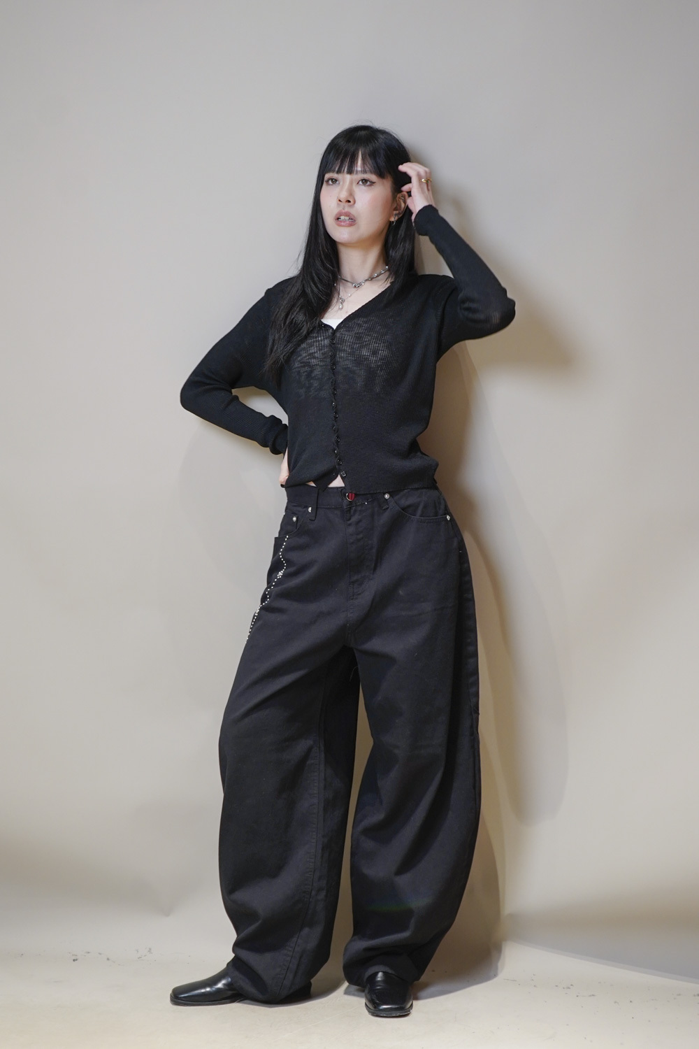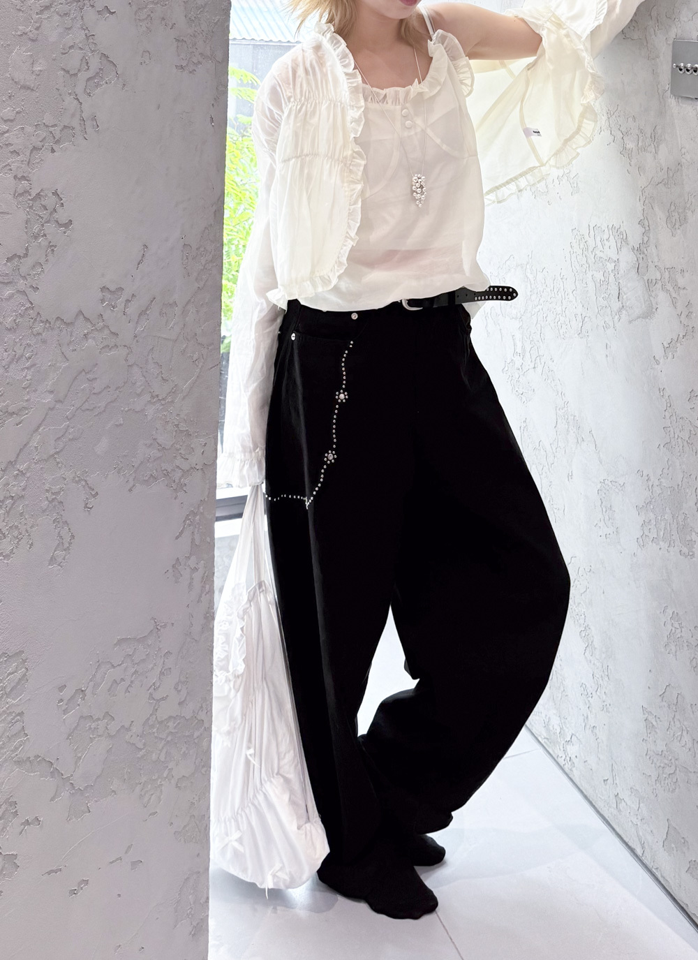 Love~! Rivet Pockets Baggy Pants (BLACK) - S/M/L