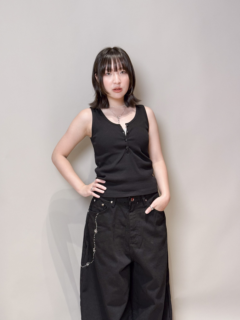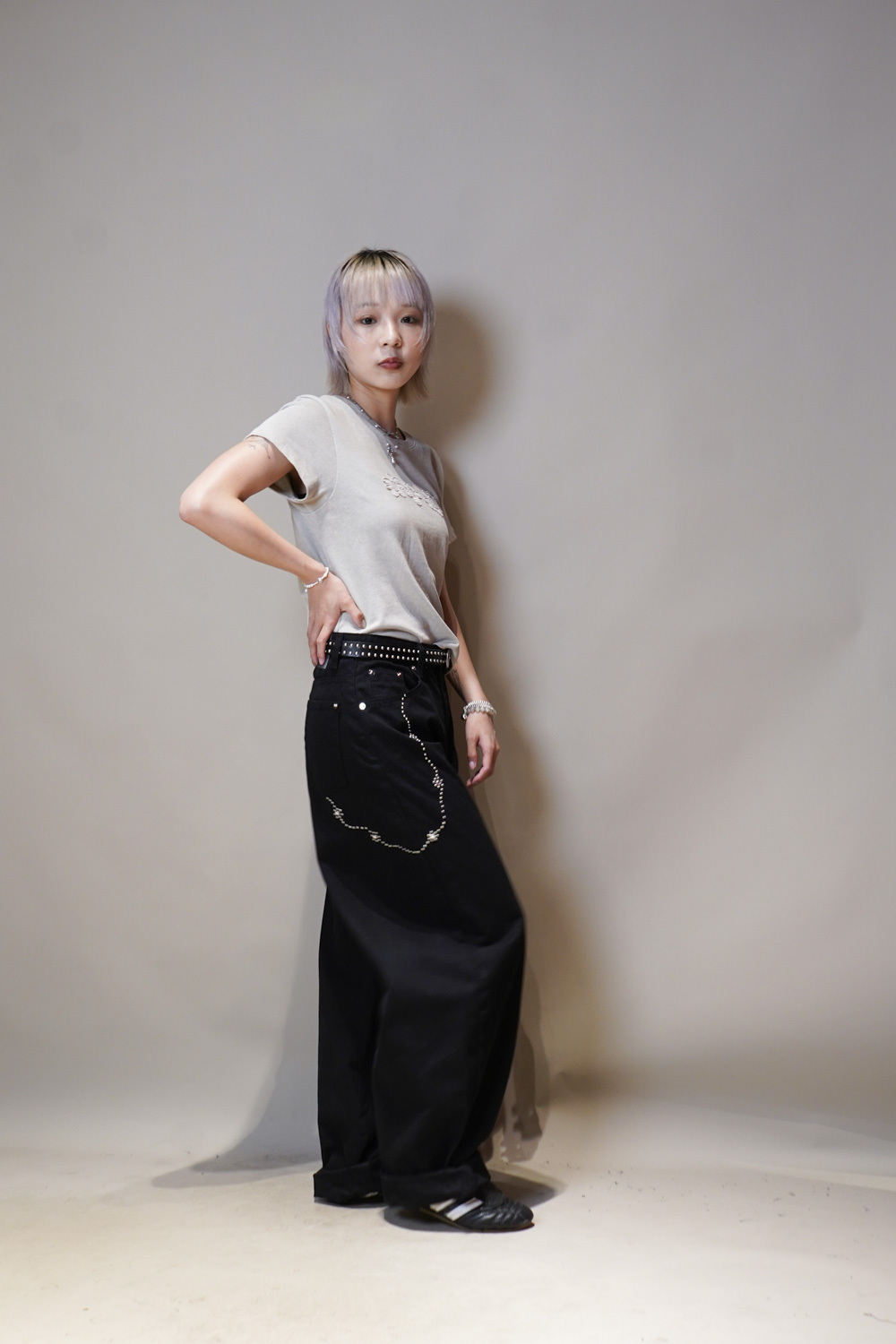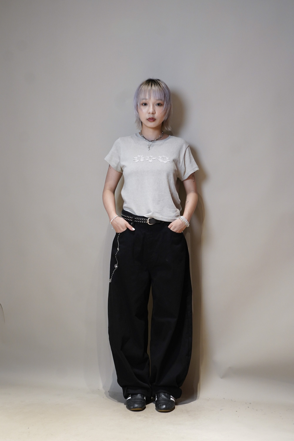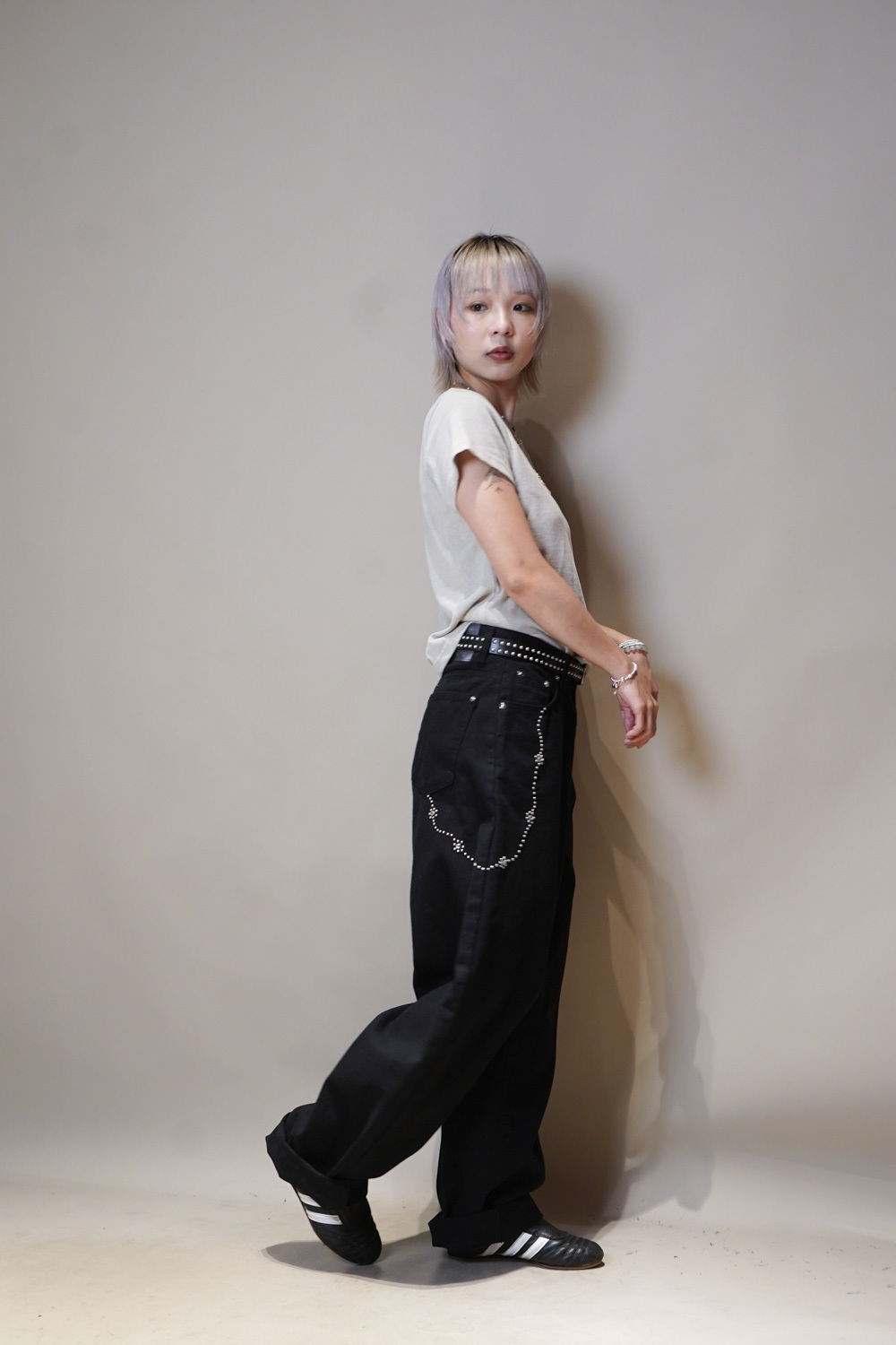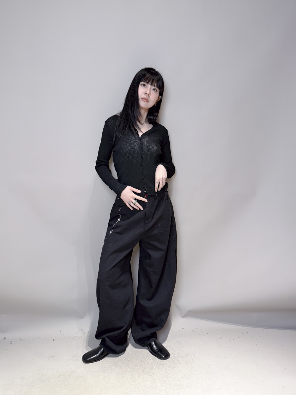 Love~! Rivet Pockets Baggy Pants (BLACK) - S/M/L