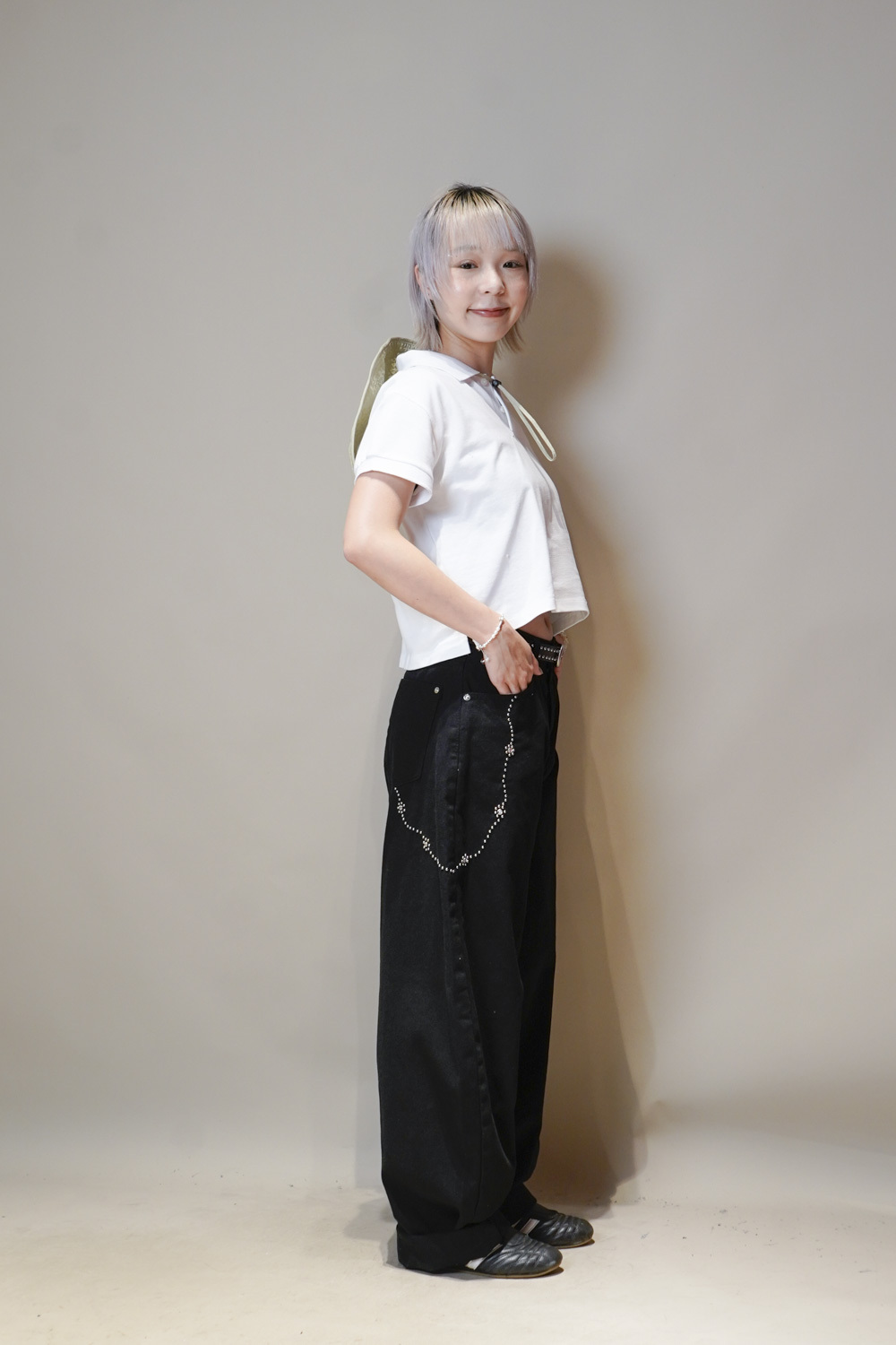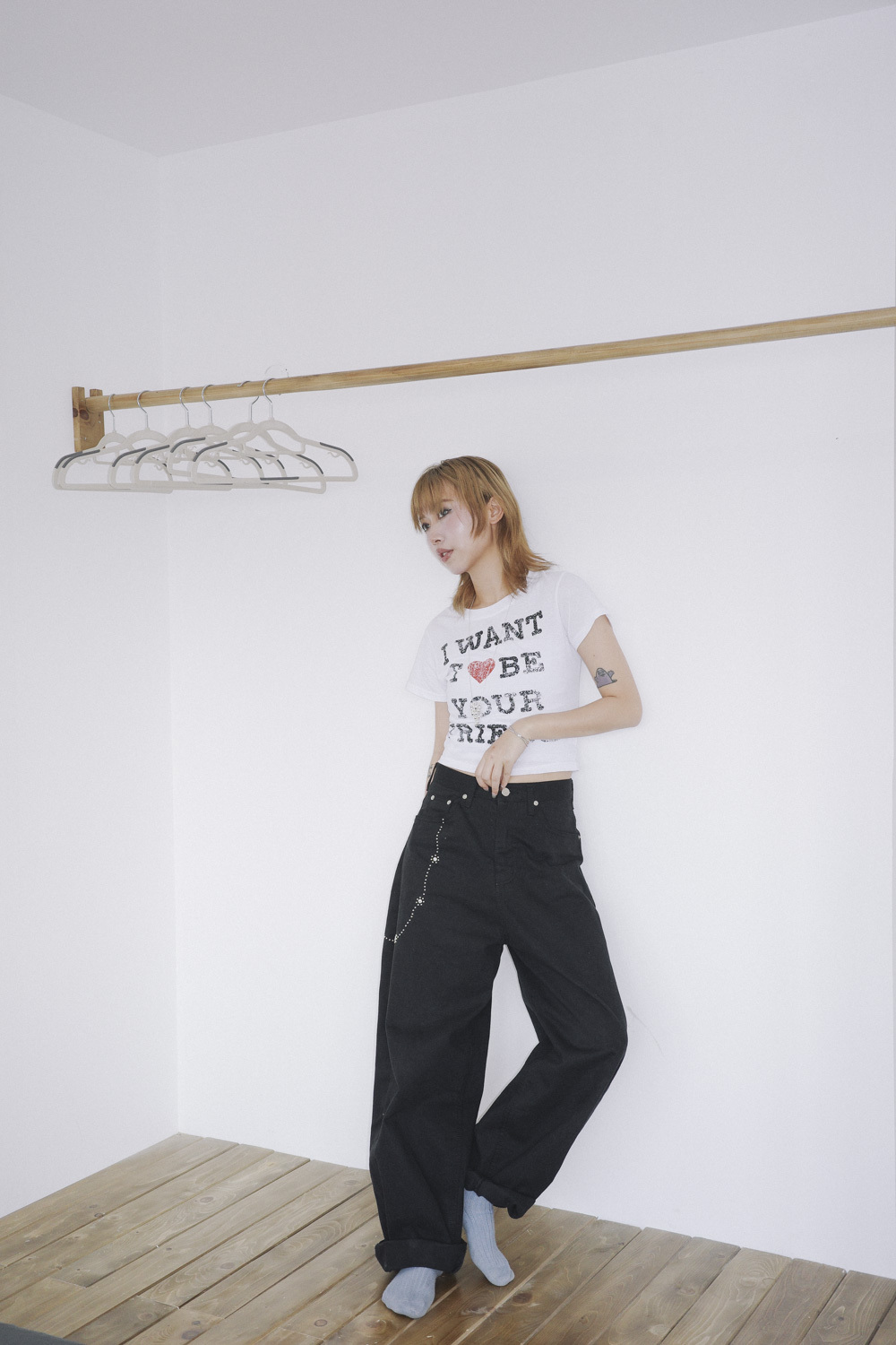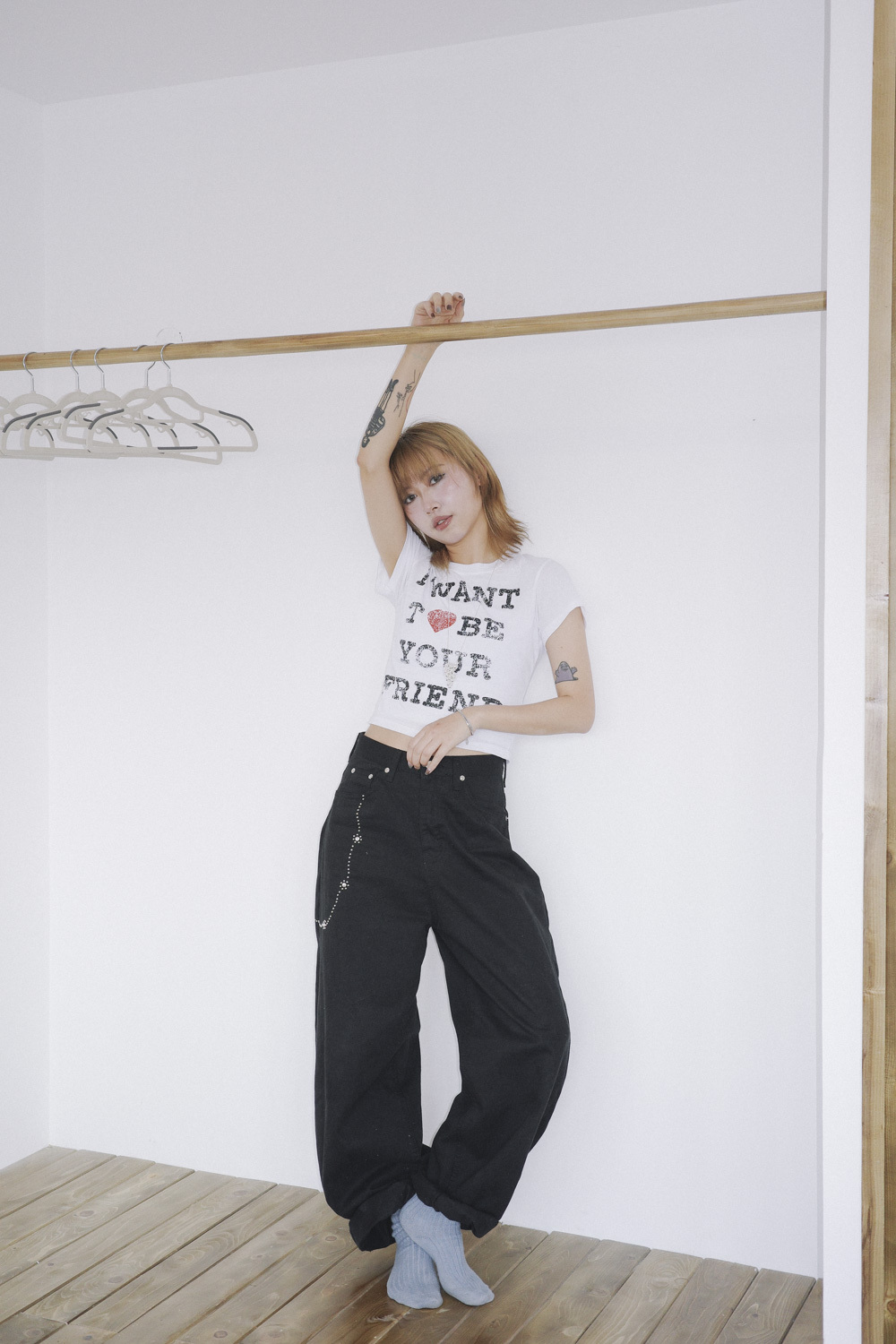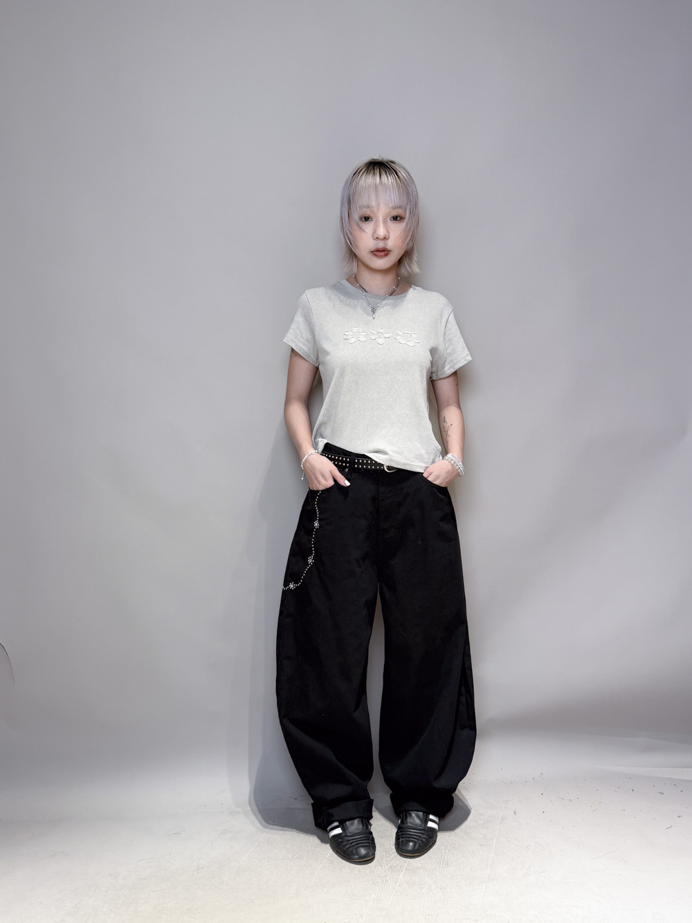 Love~! Rivet Pockets Baggy Pants (BLACK) - S/M/L