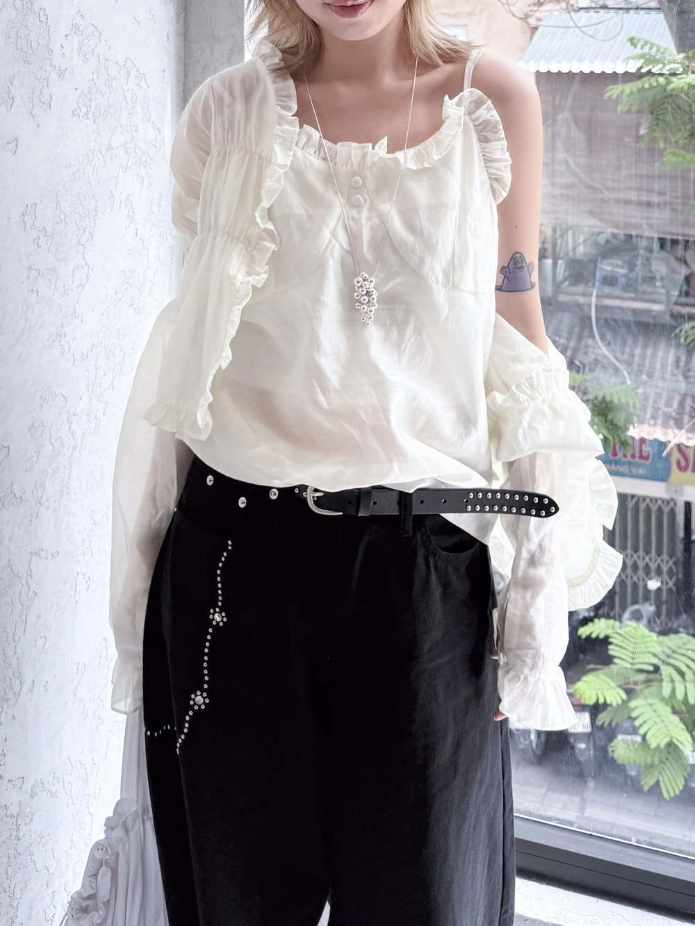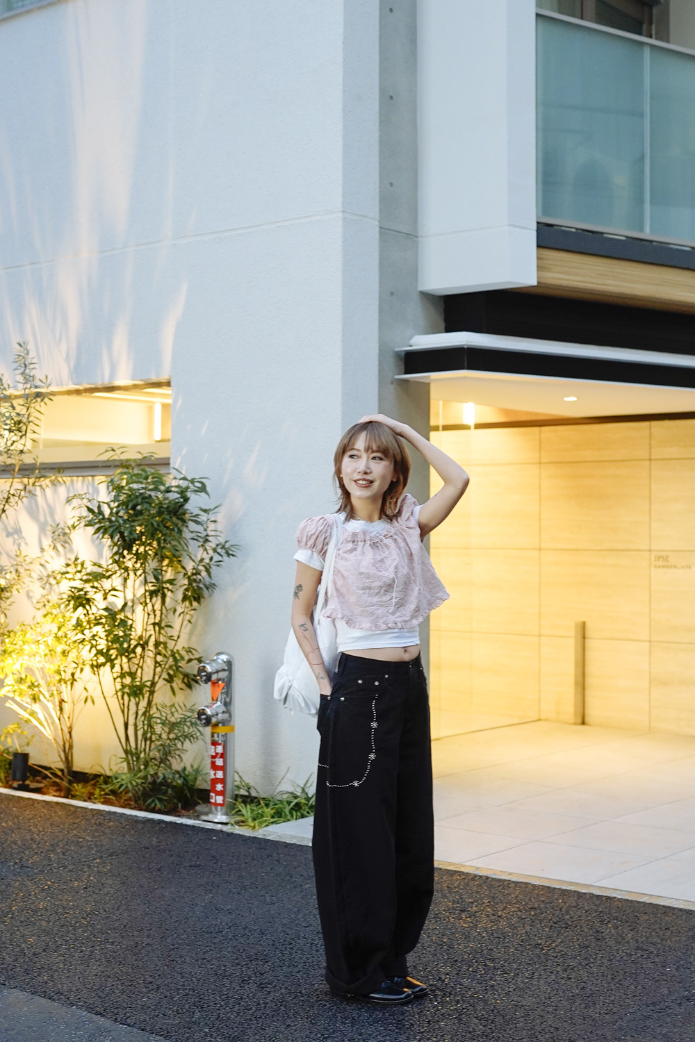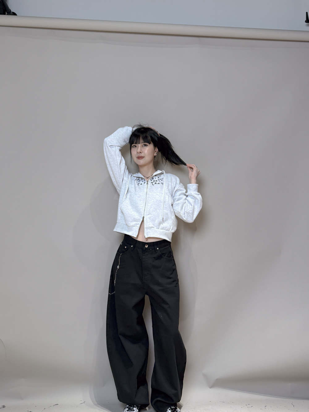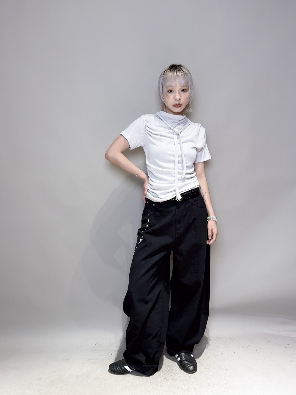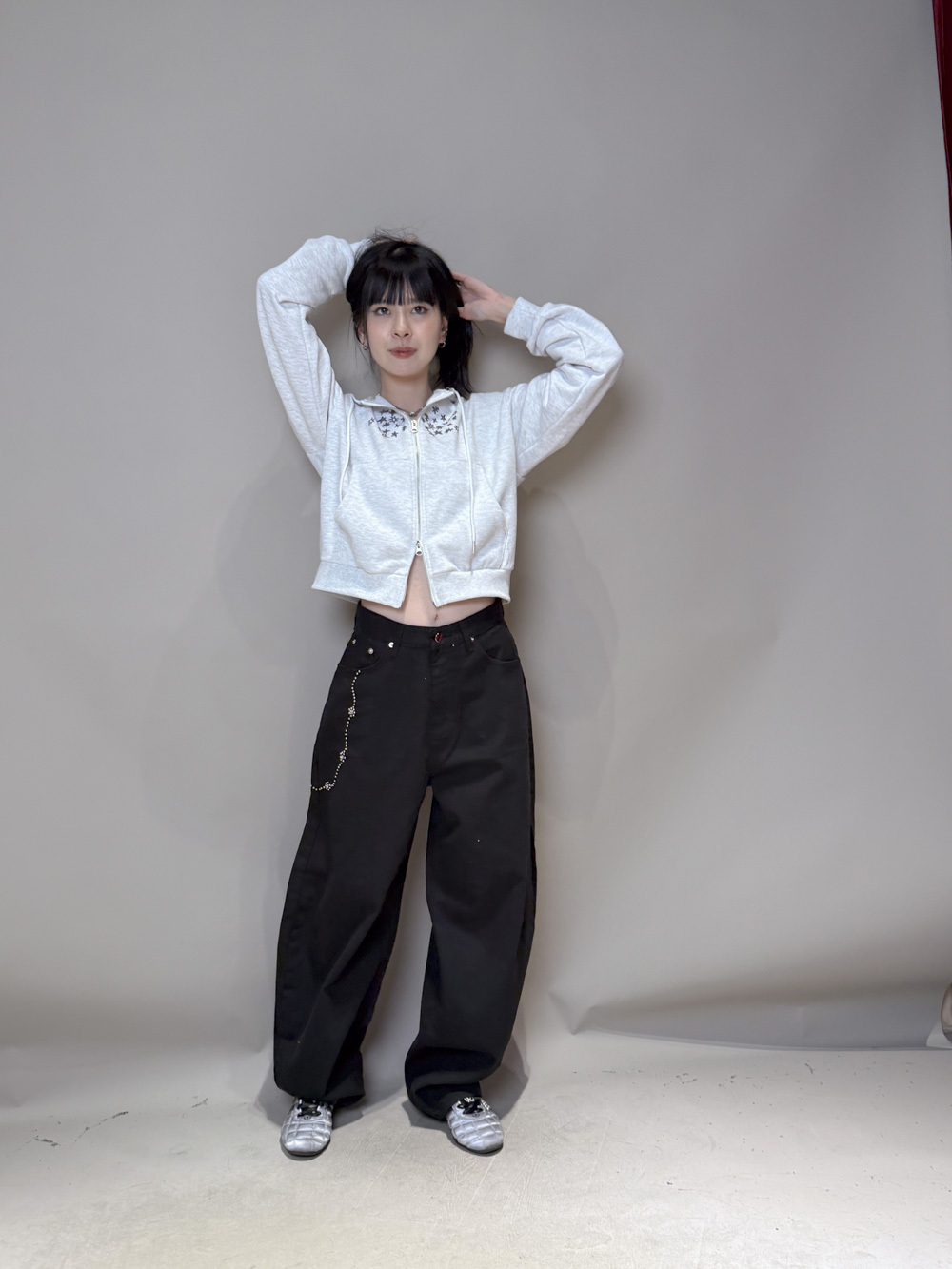 Love~! Rivet Pockets Baggy Pants (BLACK) - S/M/L