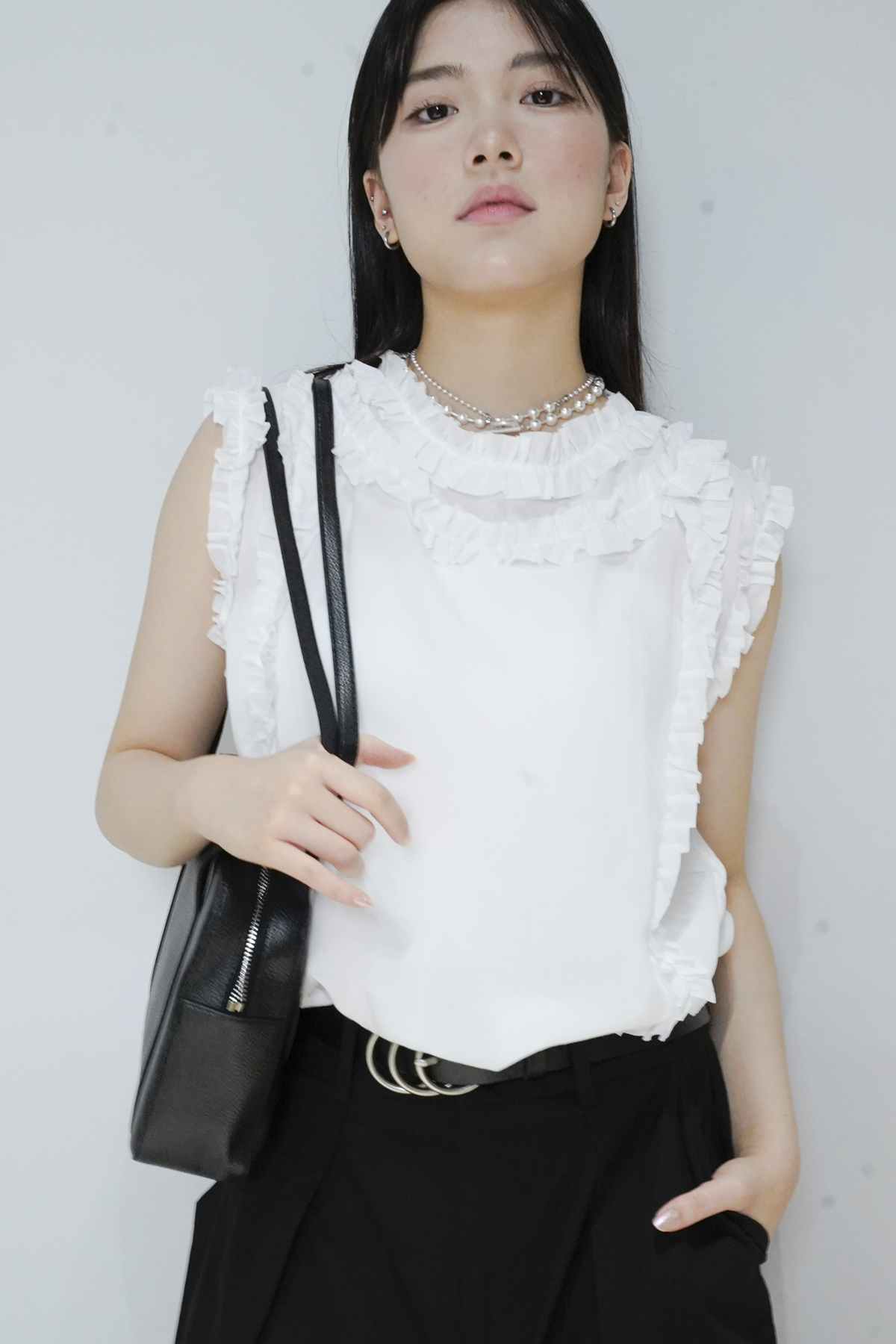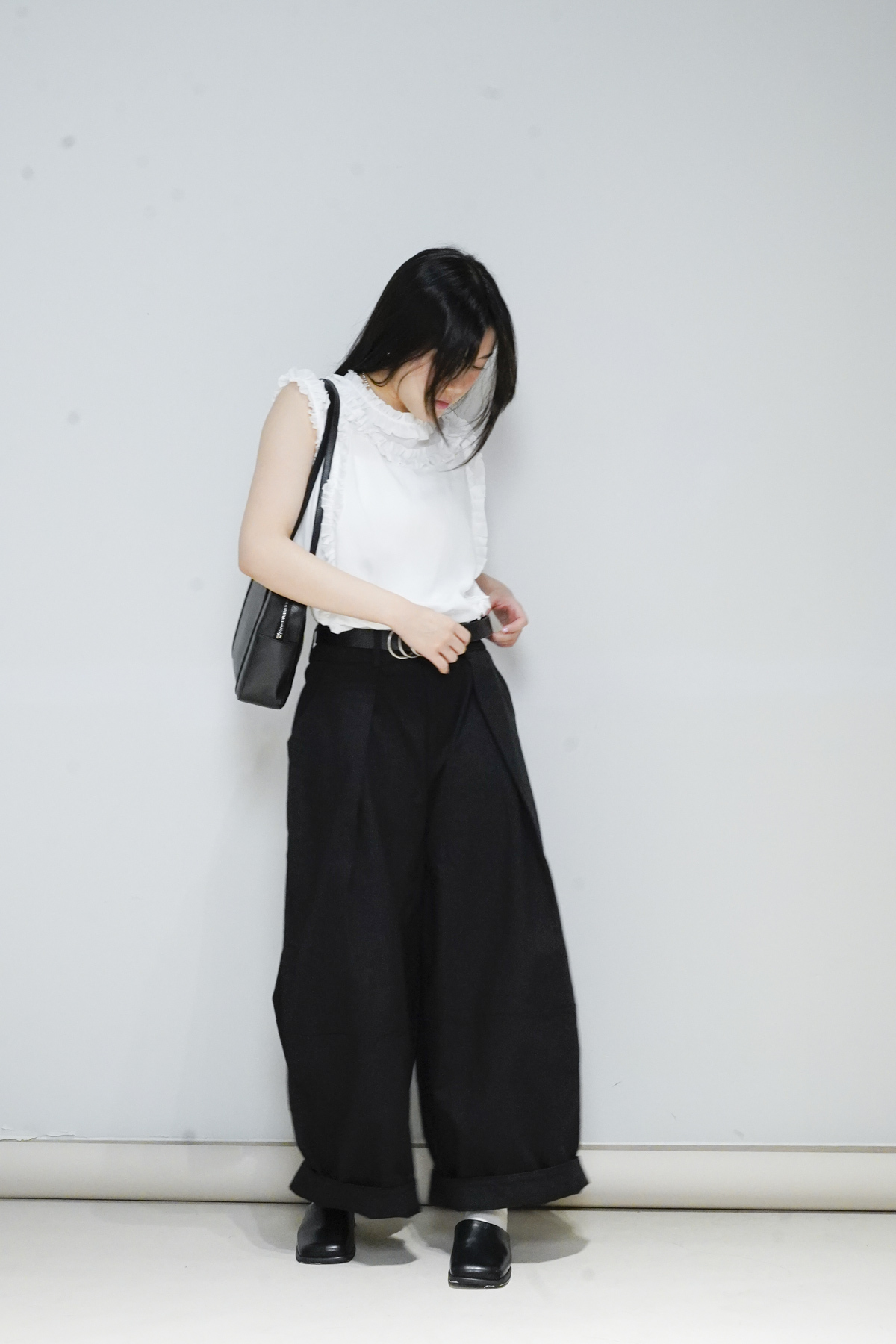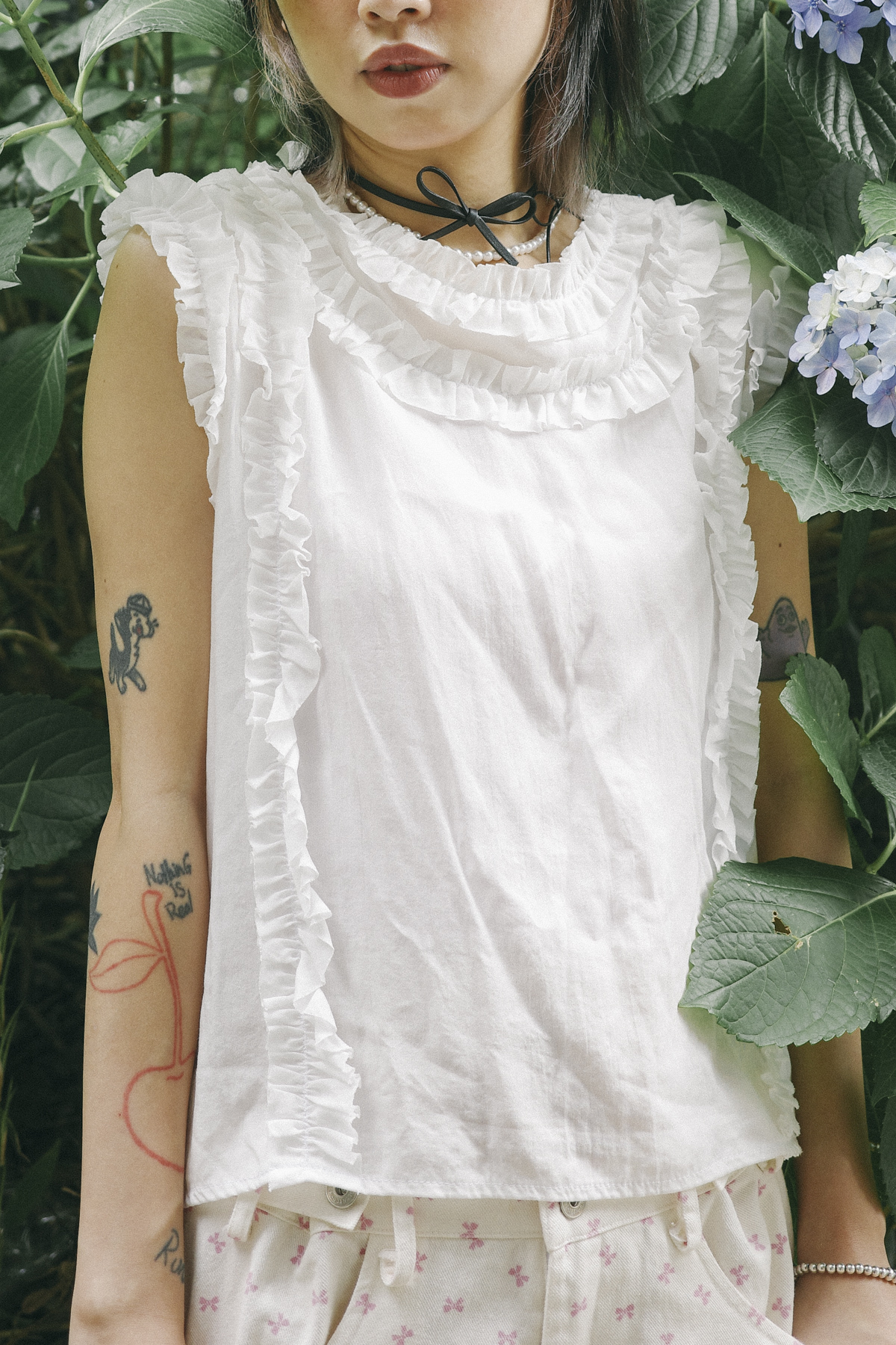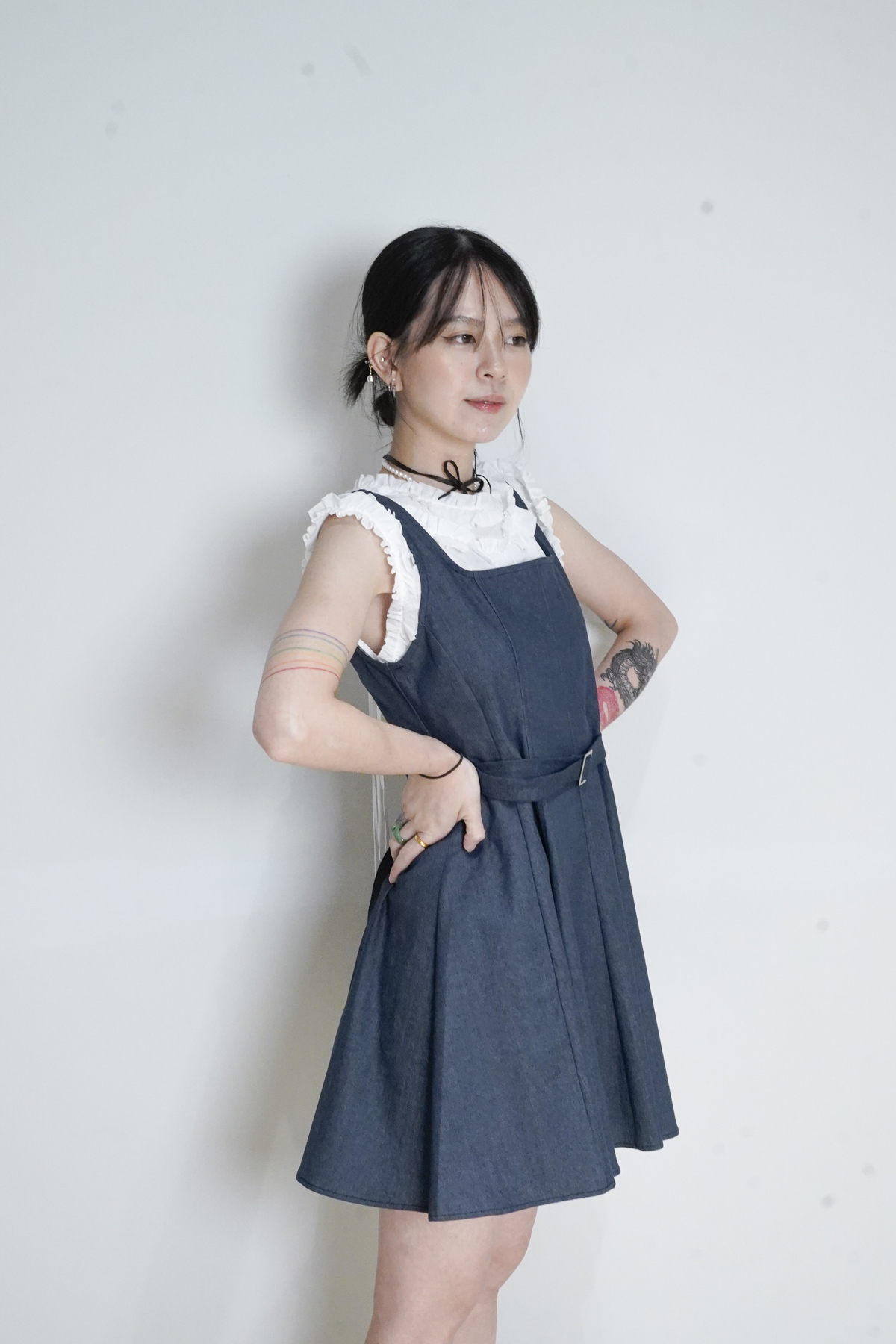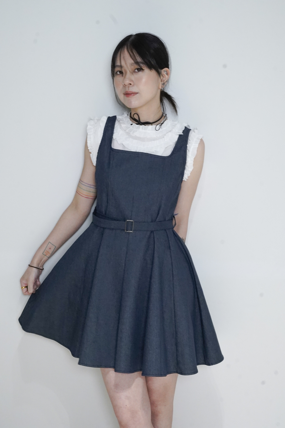柔軟親膚質料/皺褶ruffle設計 娃娃感 /復古不平凡單調多種配搭 穿著裙或牛仔褲皆可/