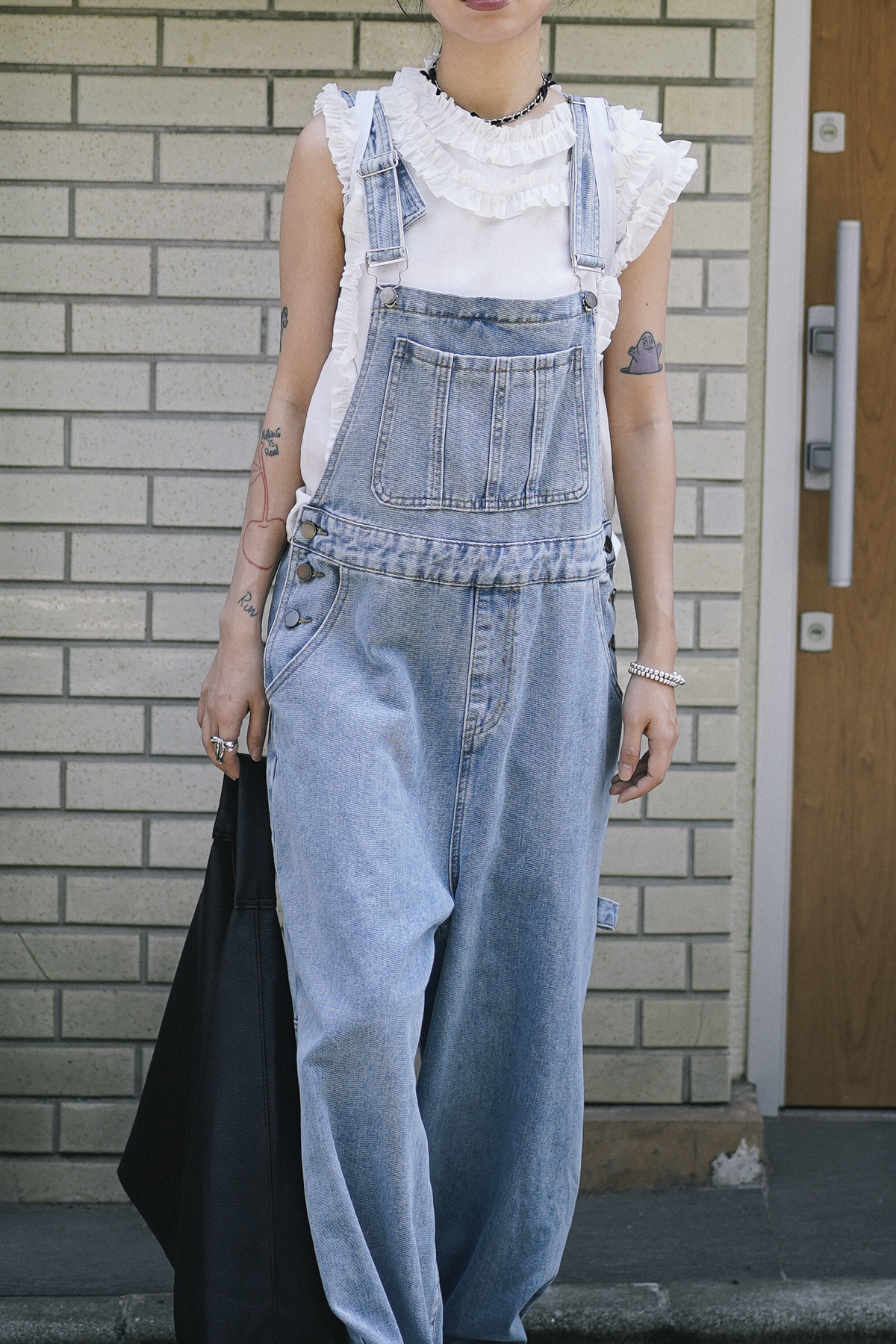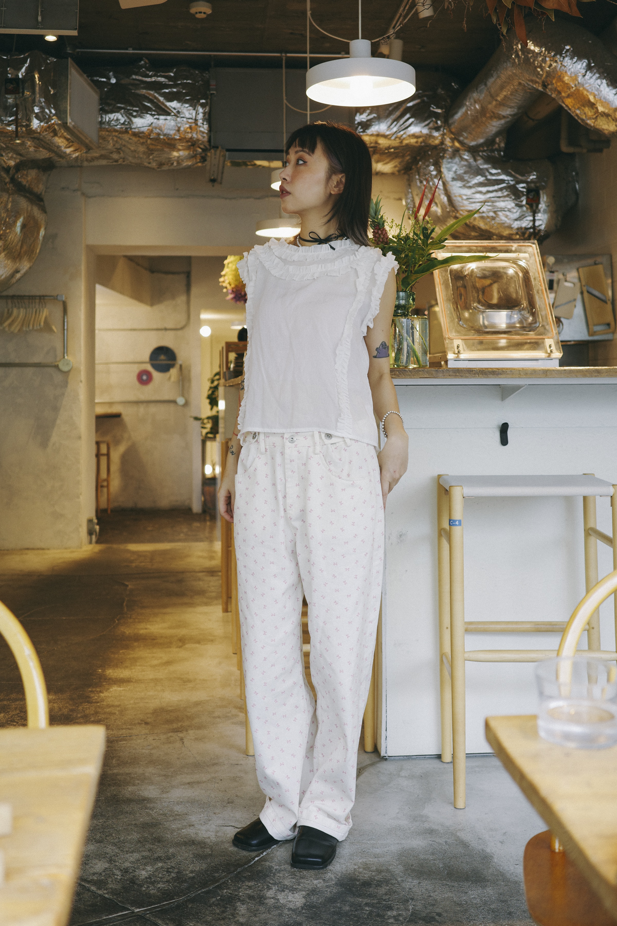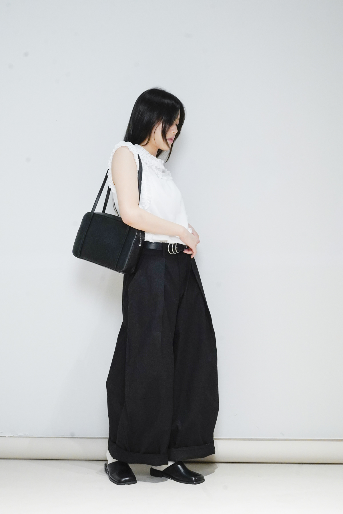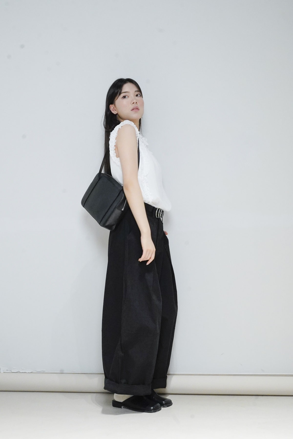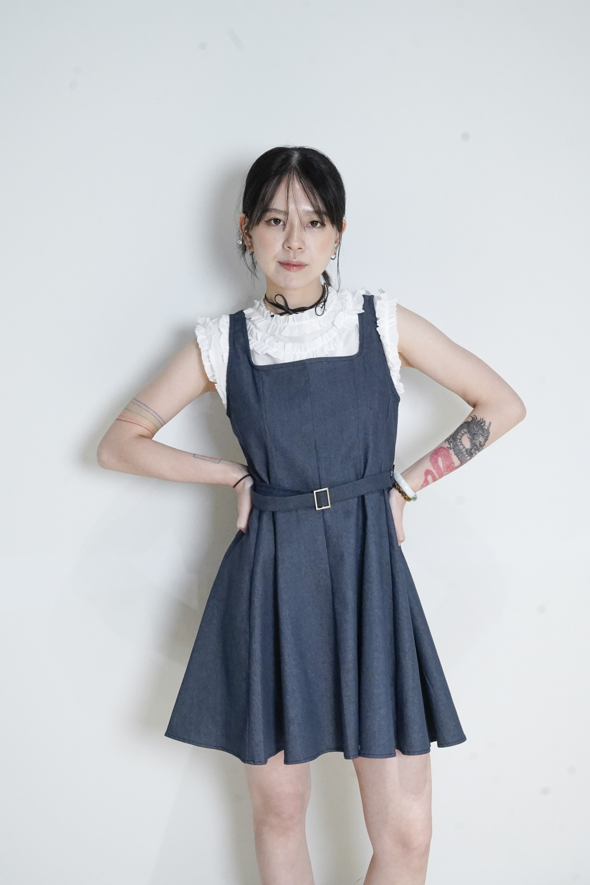 柔軟親膚質料/皺褶ruffle設計 娃娃感 /復古不平凡單調多種配搭 穿著裙或牛仔褲皆可/