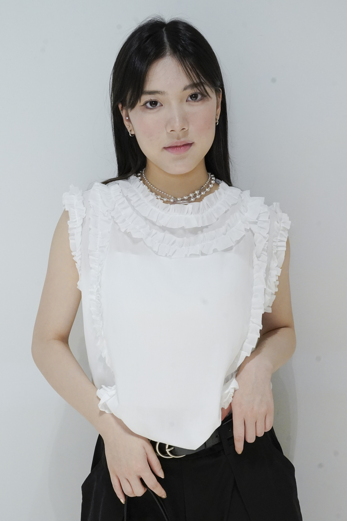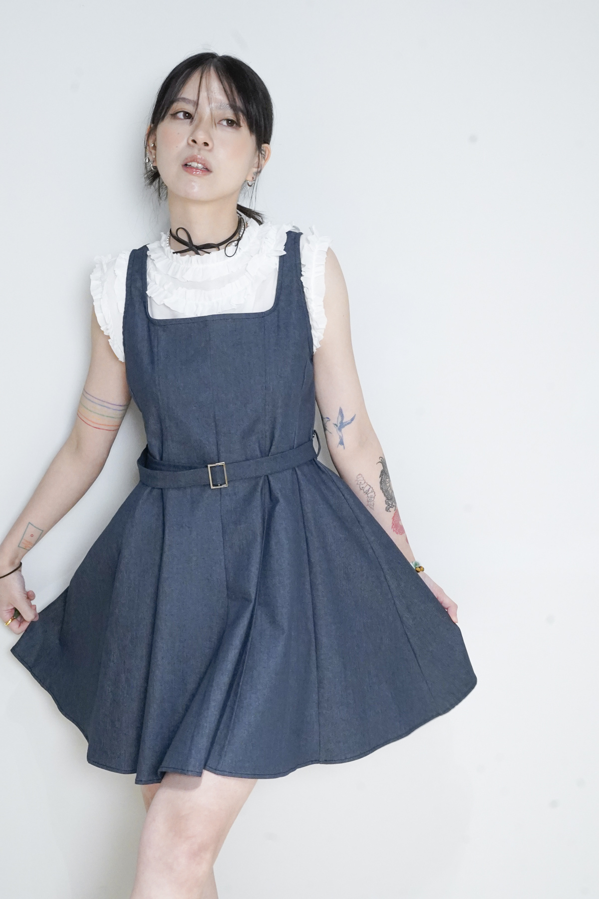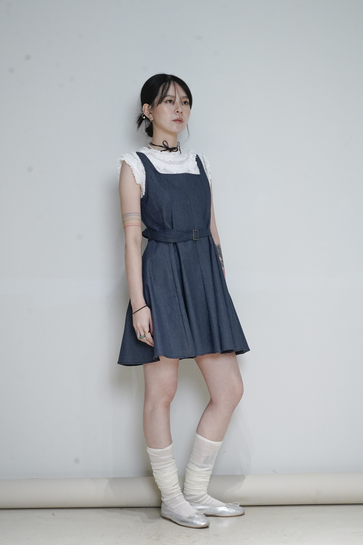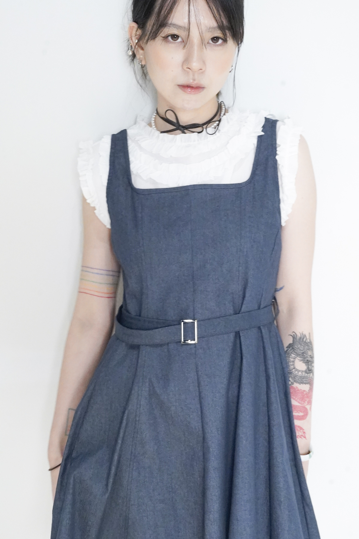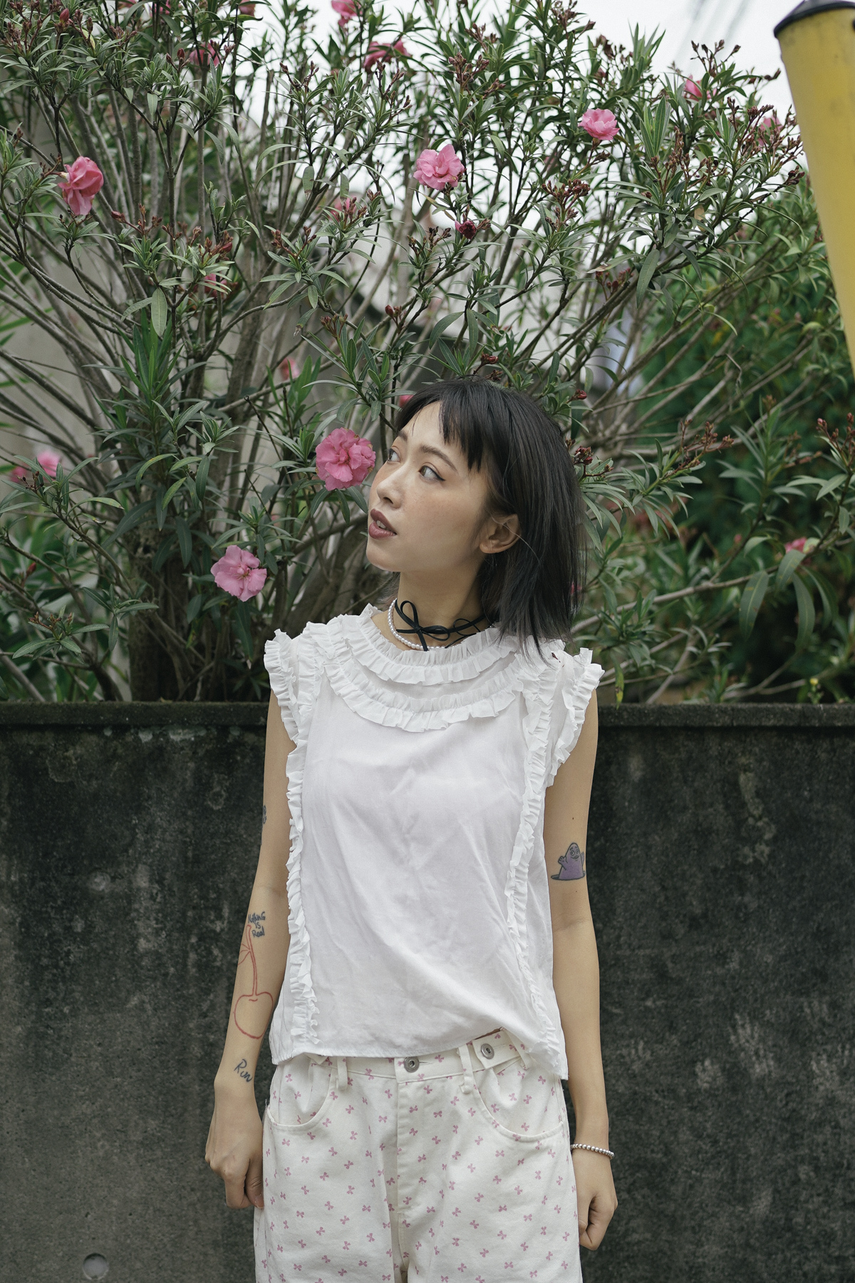 柔軟親膚質料/皺褶ruffle設計 娃娃感 /復古不平凡單調多種配搭 穿著裙或牛仔褲皆可/
