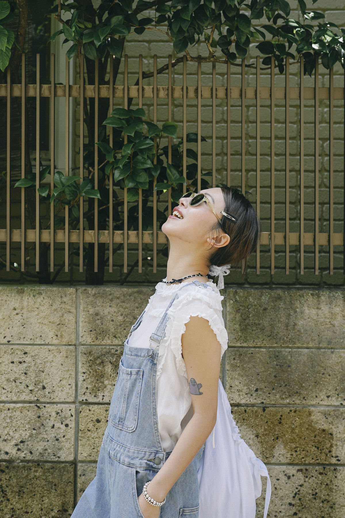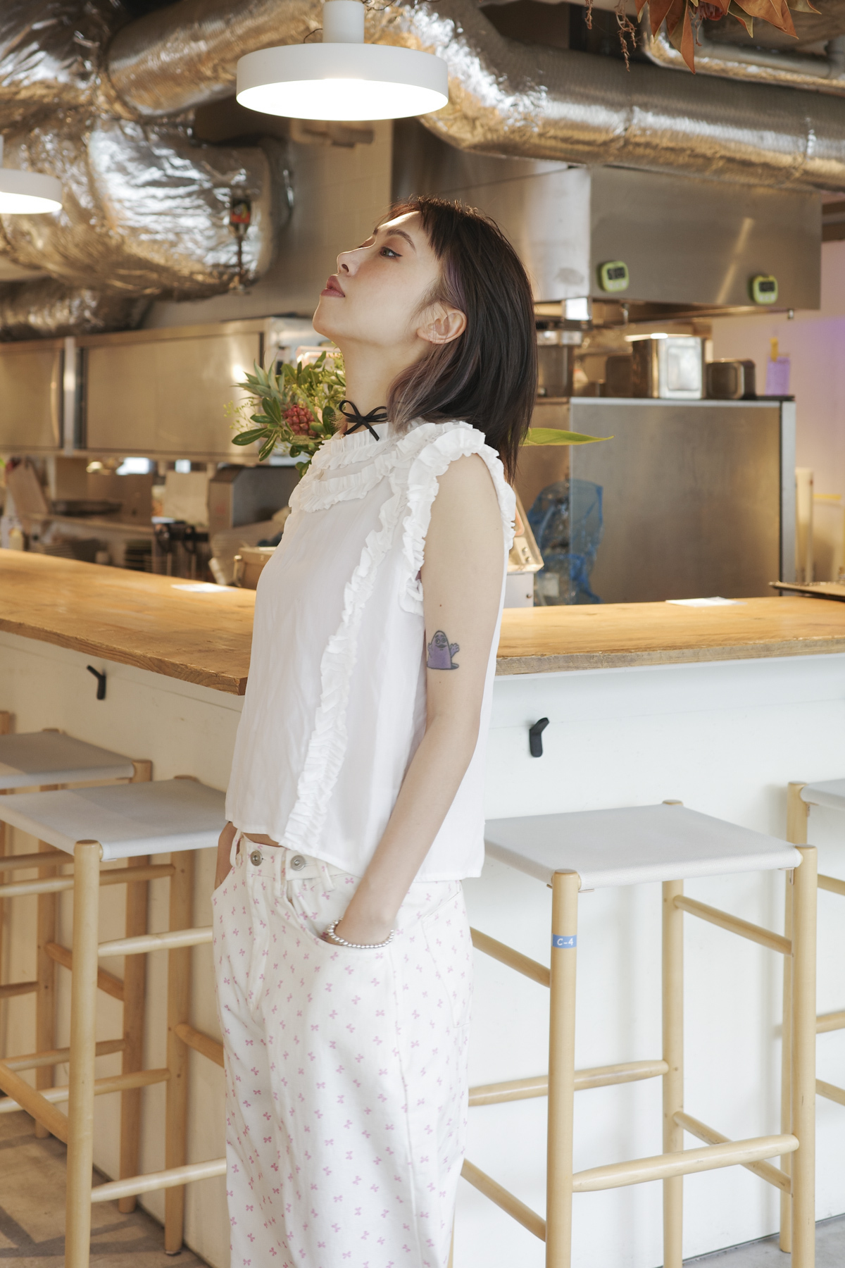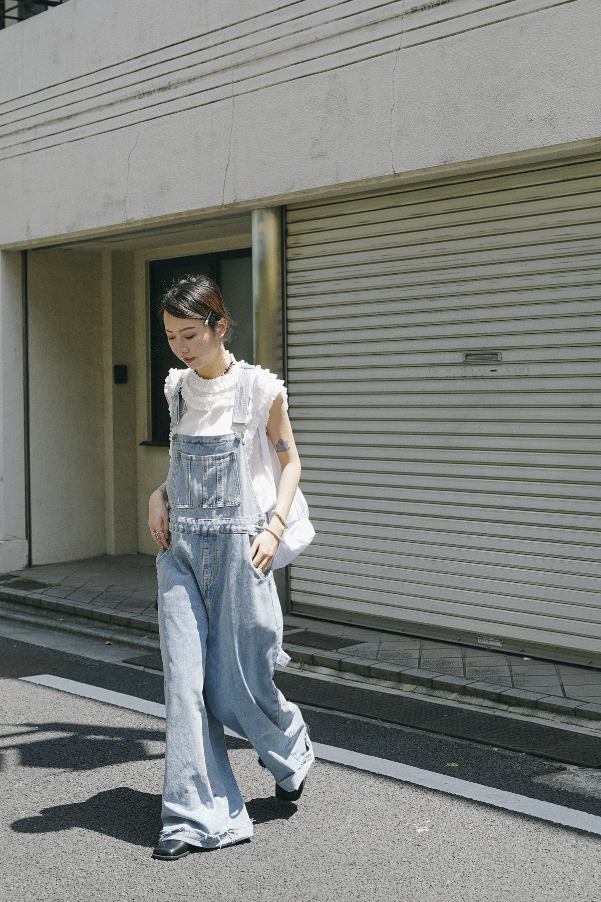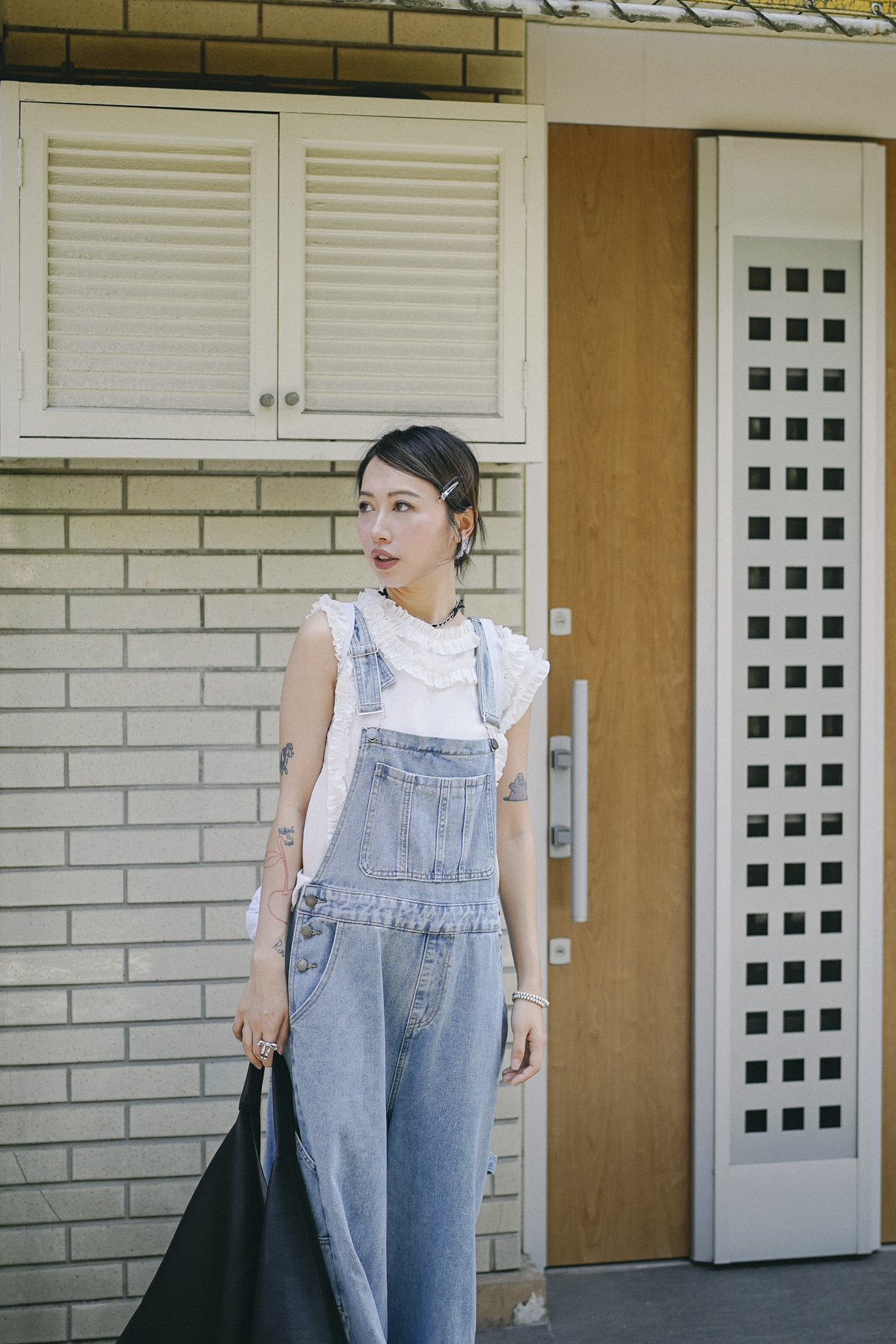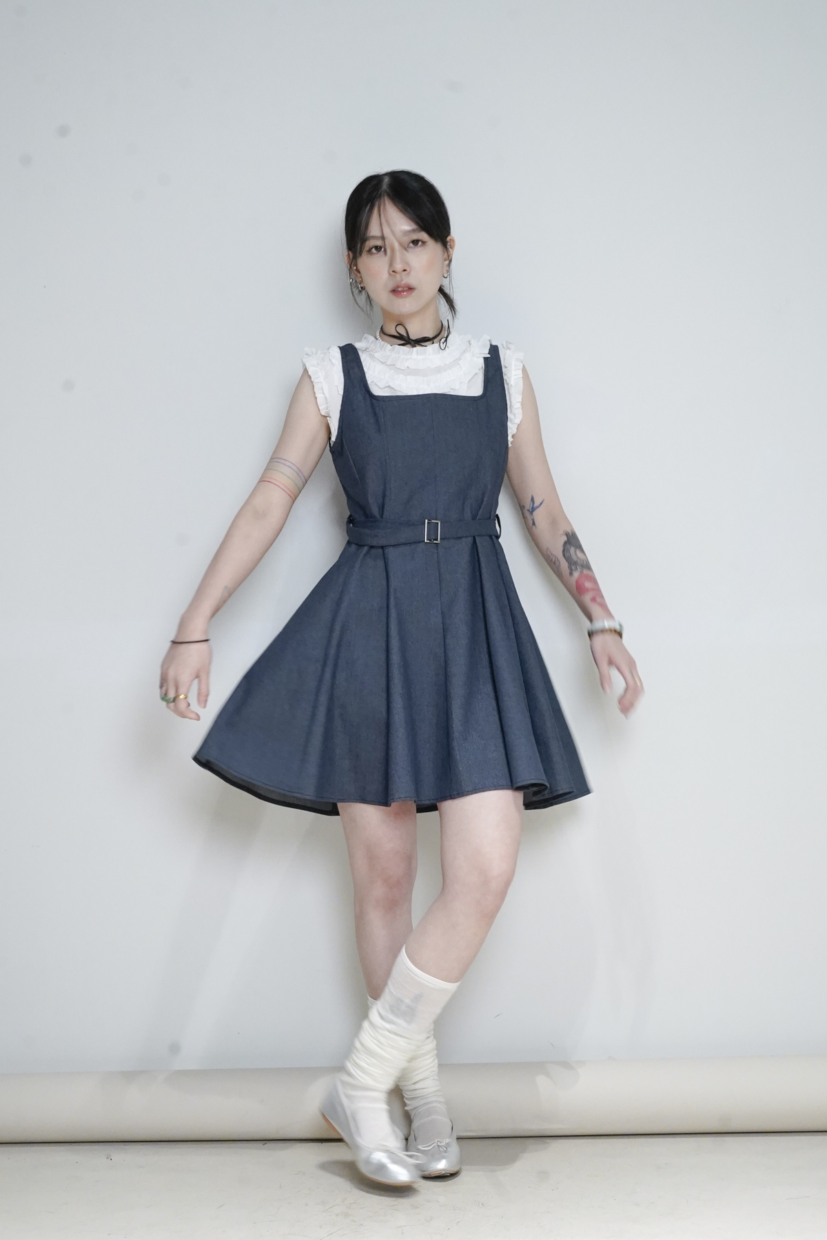 柔軟親膚質料/皺褶ruffle設計 娃娃感 /復古不平凡單調多種配搭 穿著裙或牛仔褲皆可/
