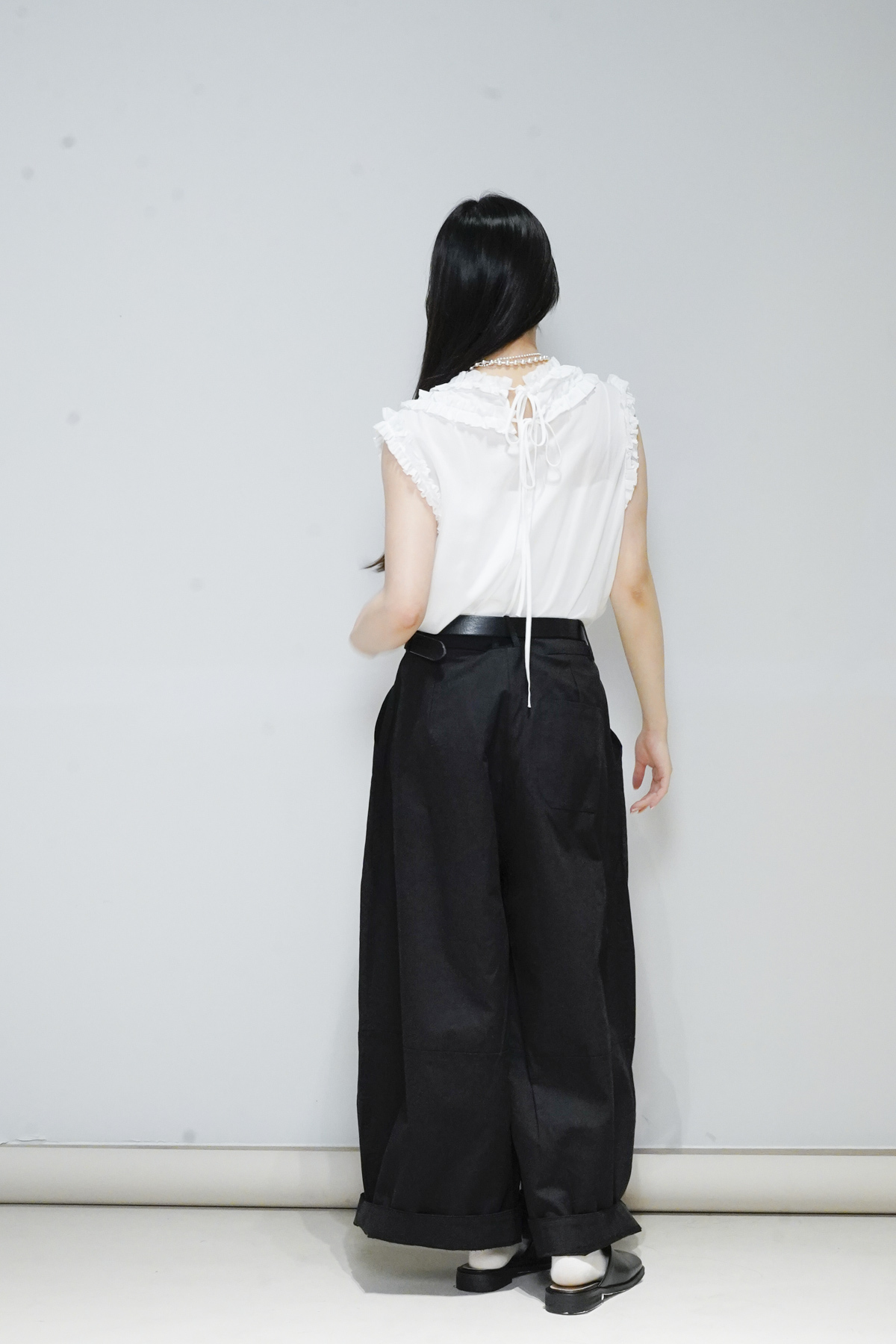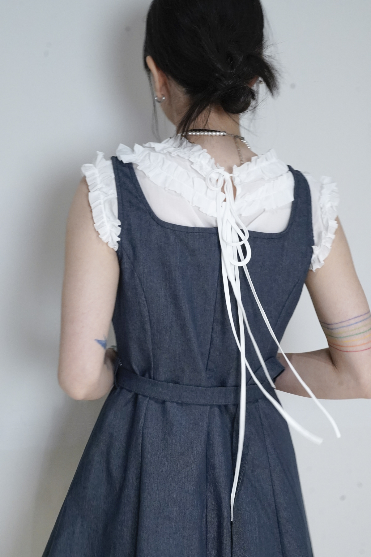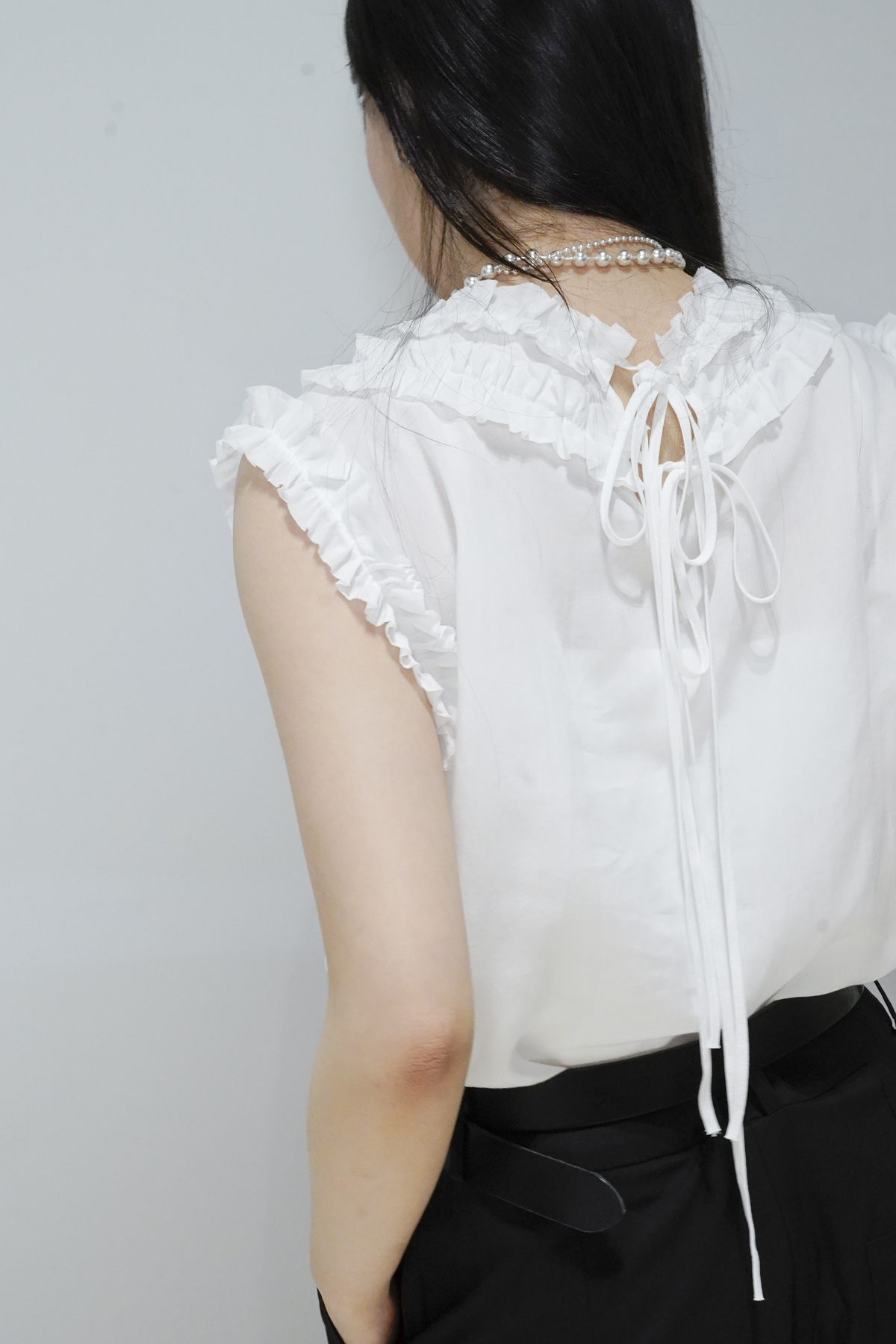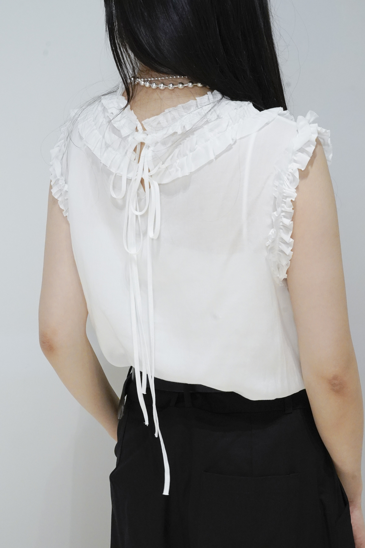 rounded ruffle long back ribbons vest