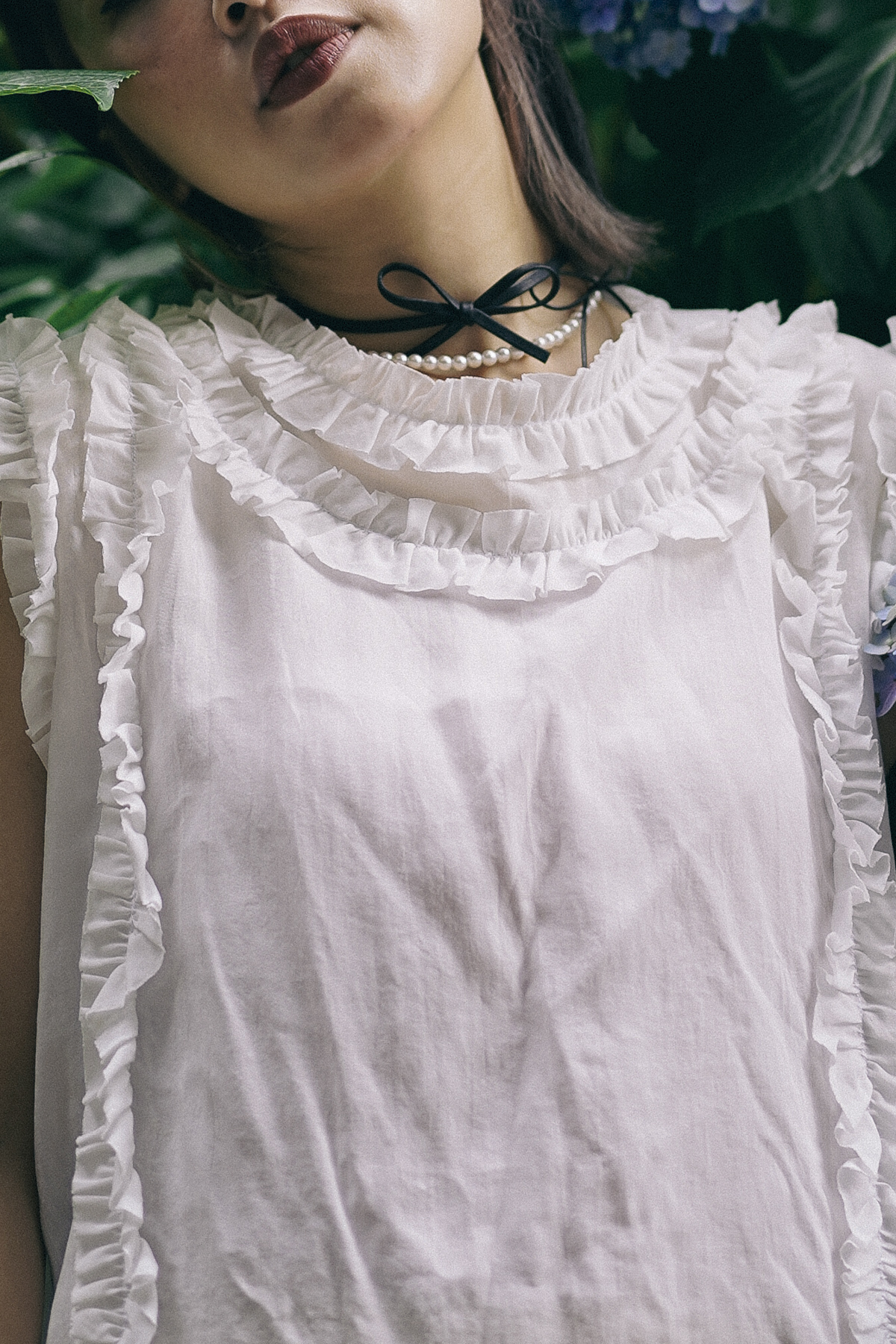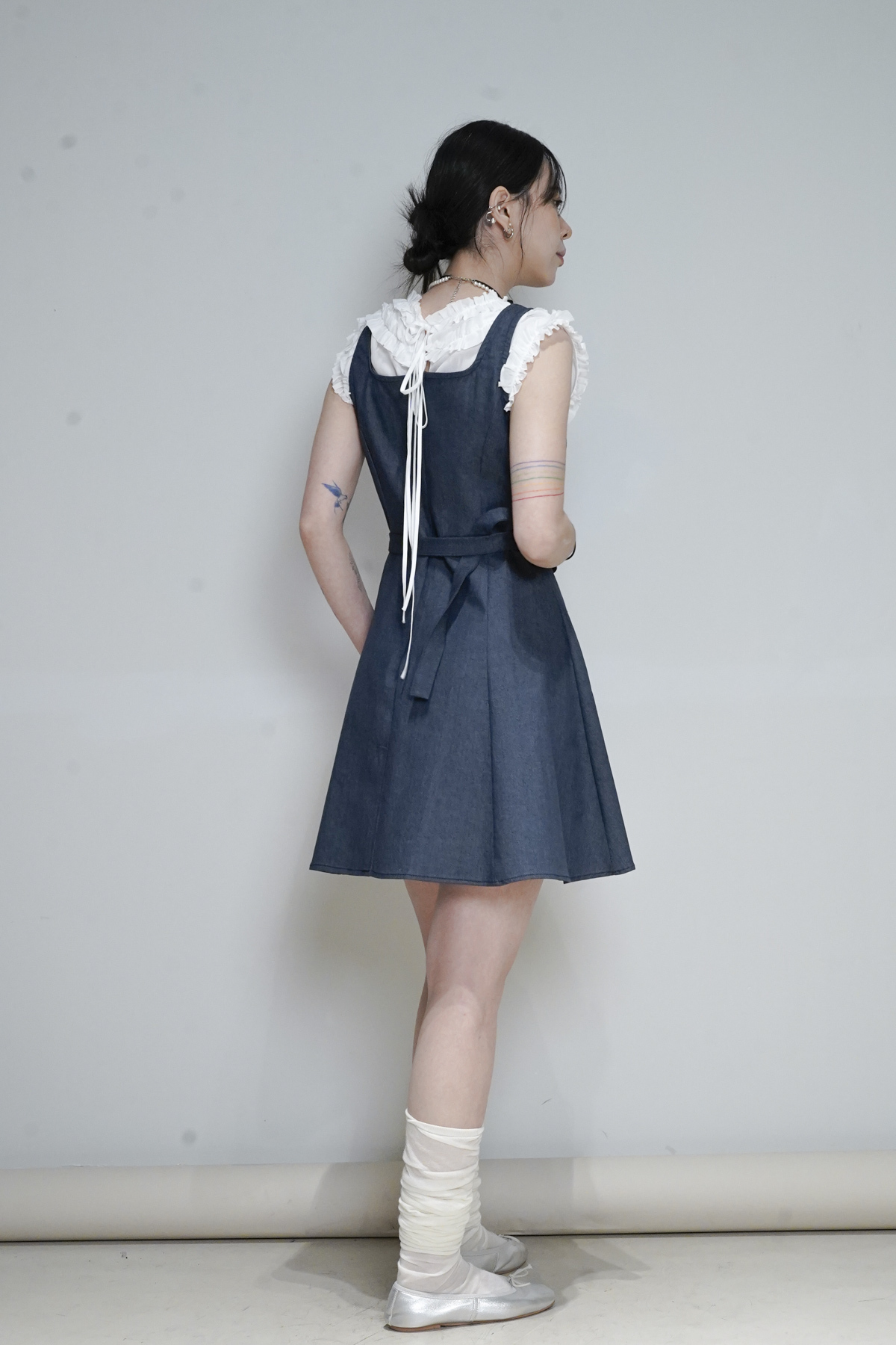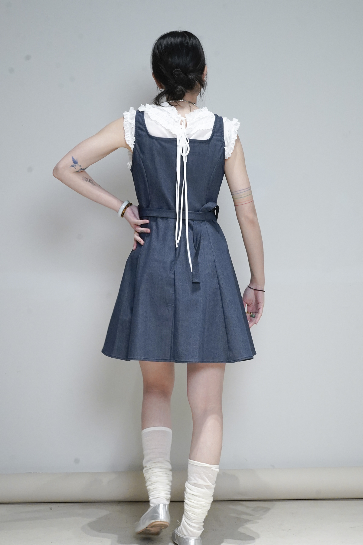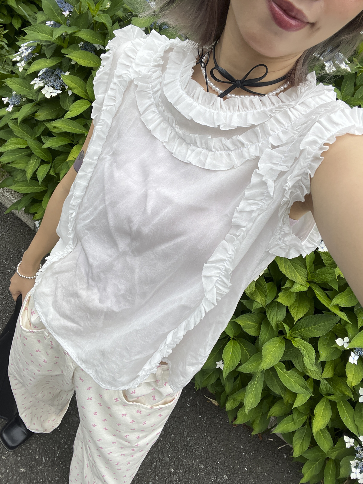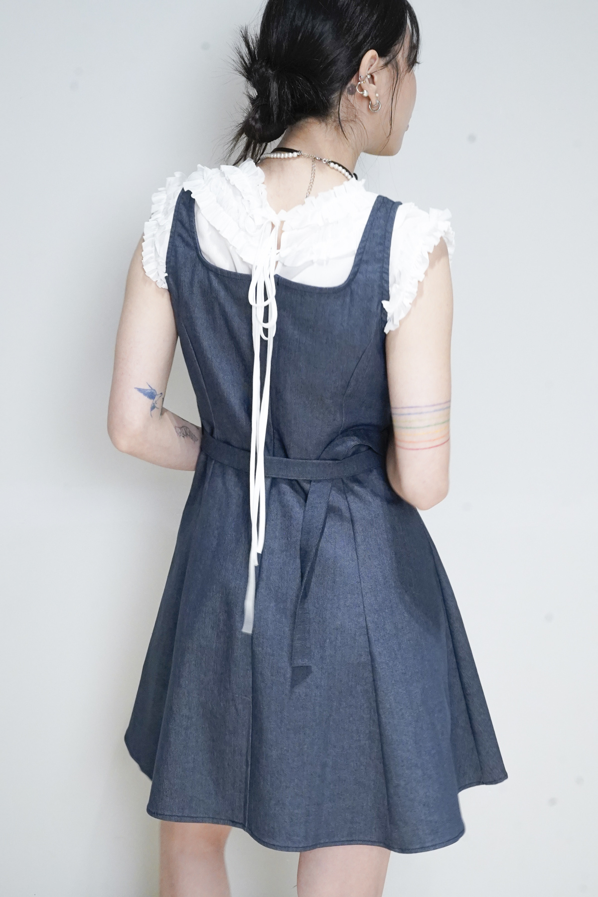 rounded ruffle long back ribbons vest