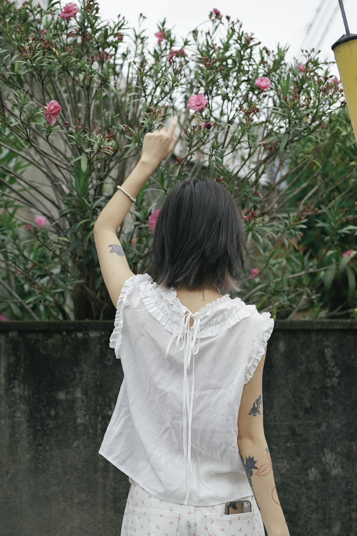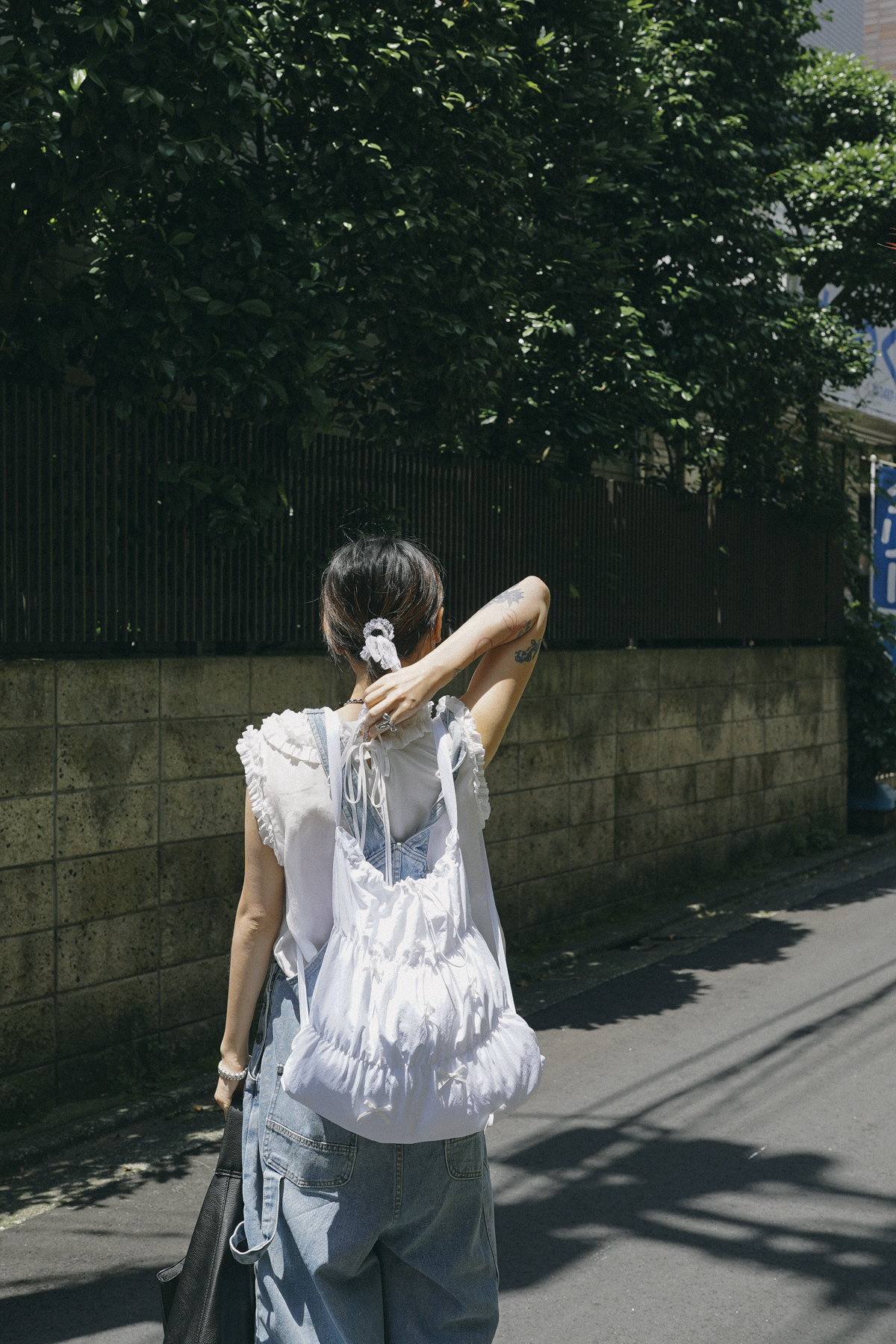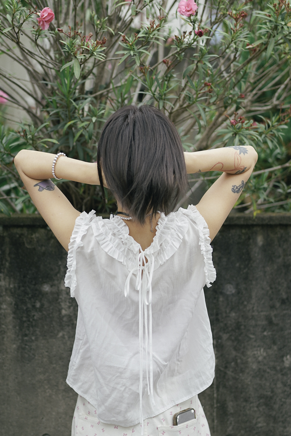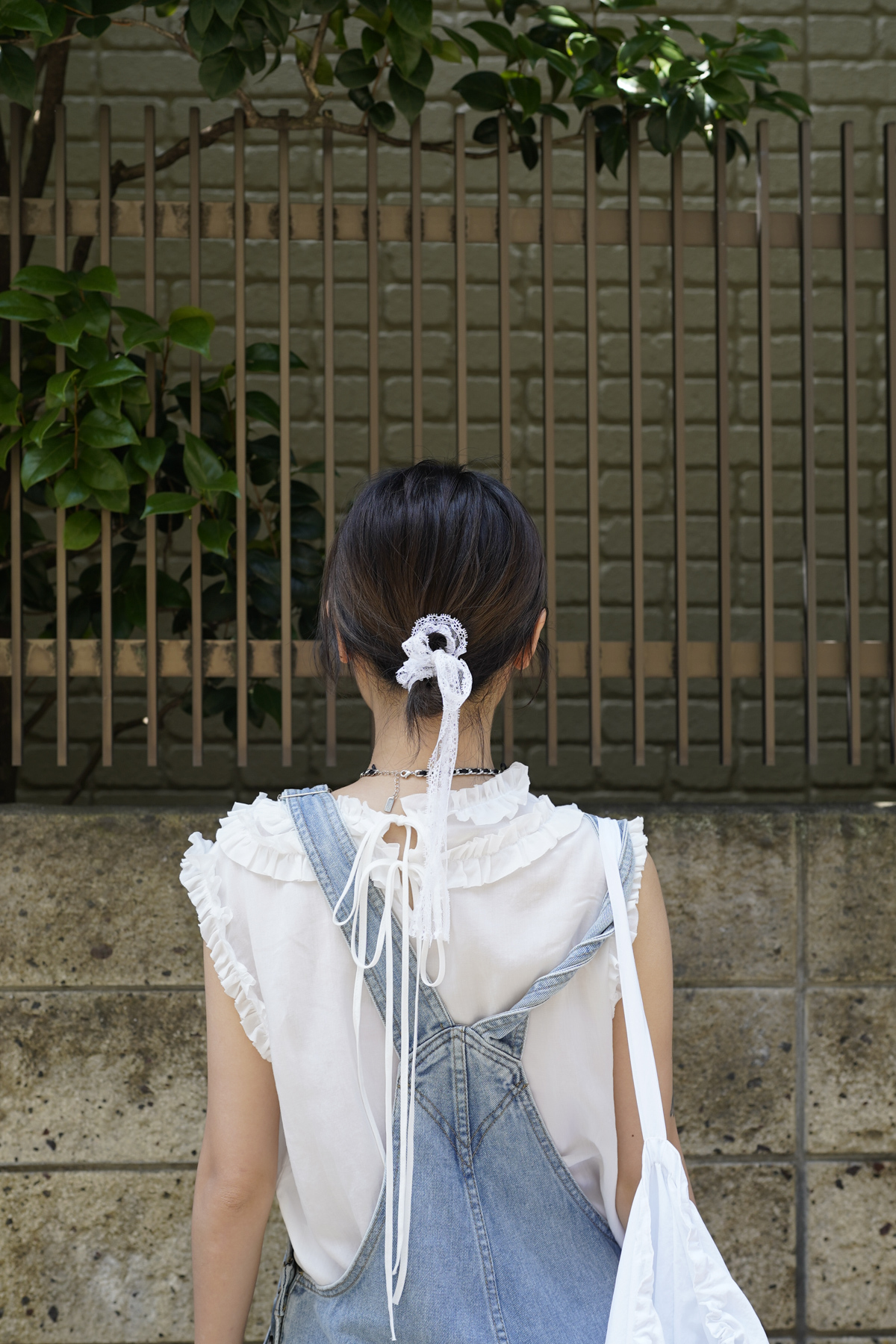rounded ruffle long back ribbons vest