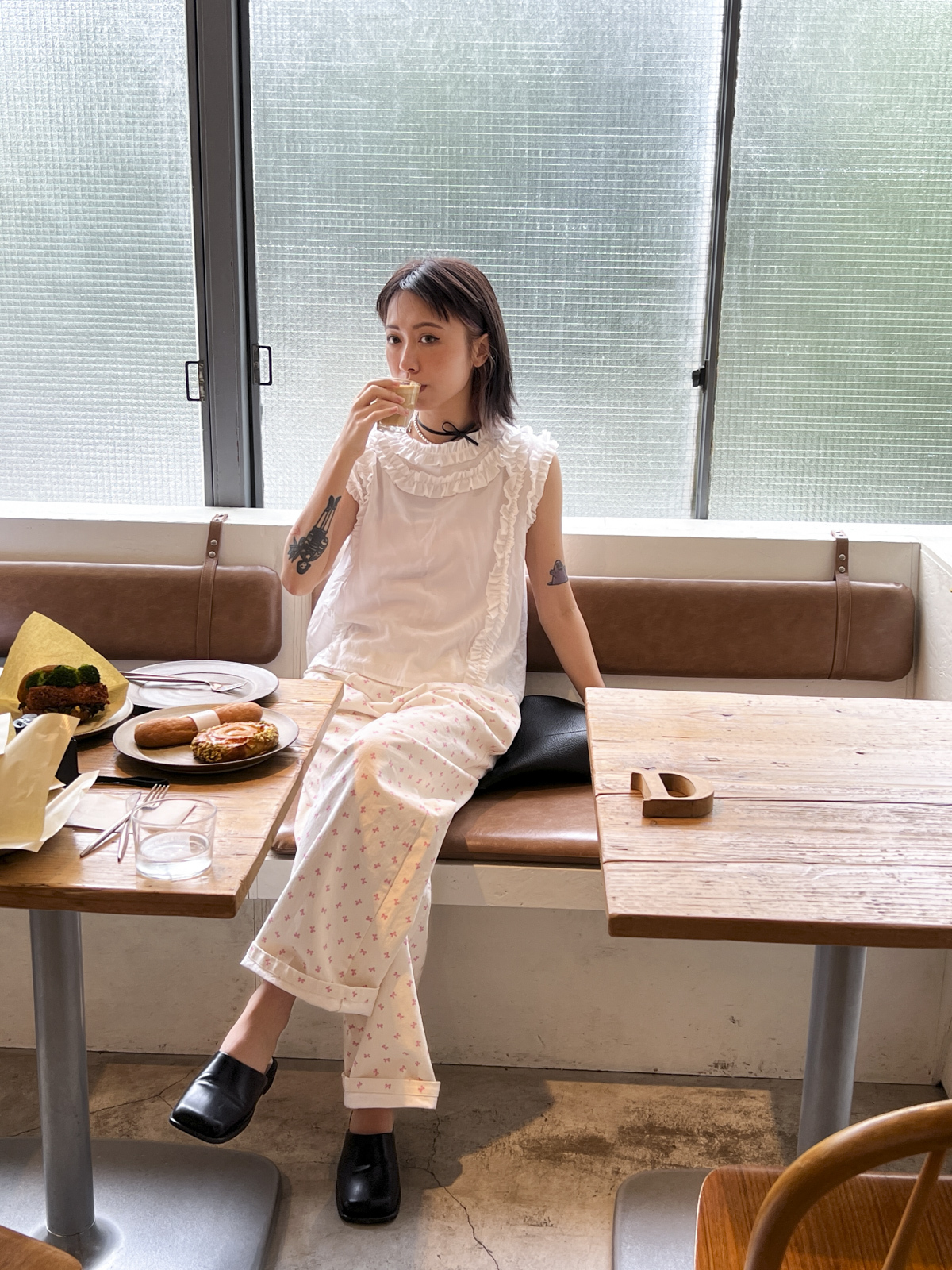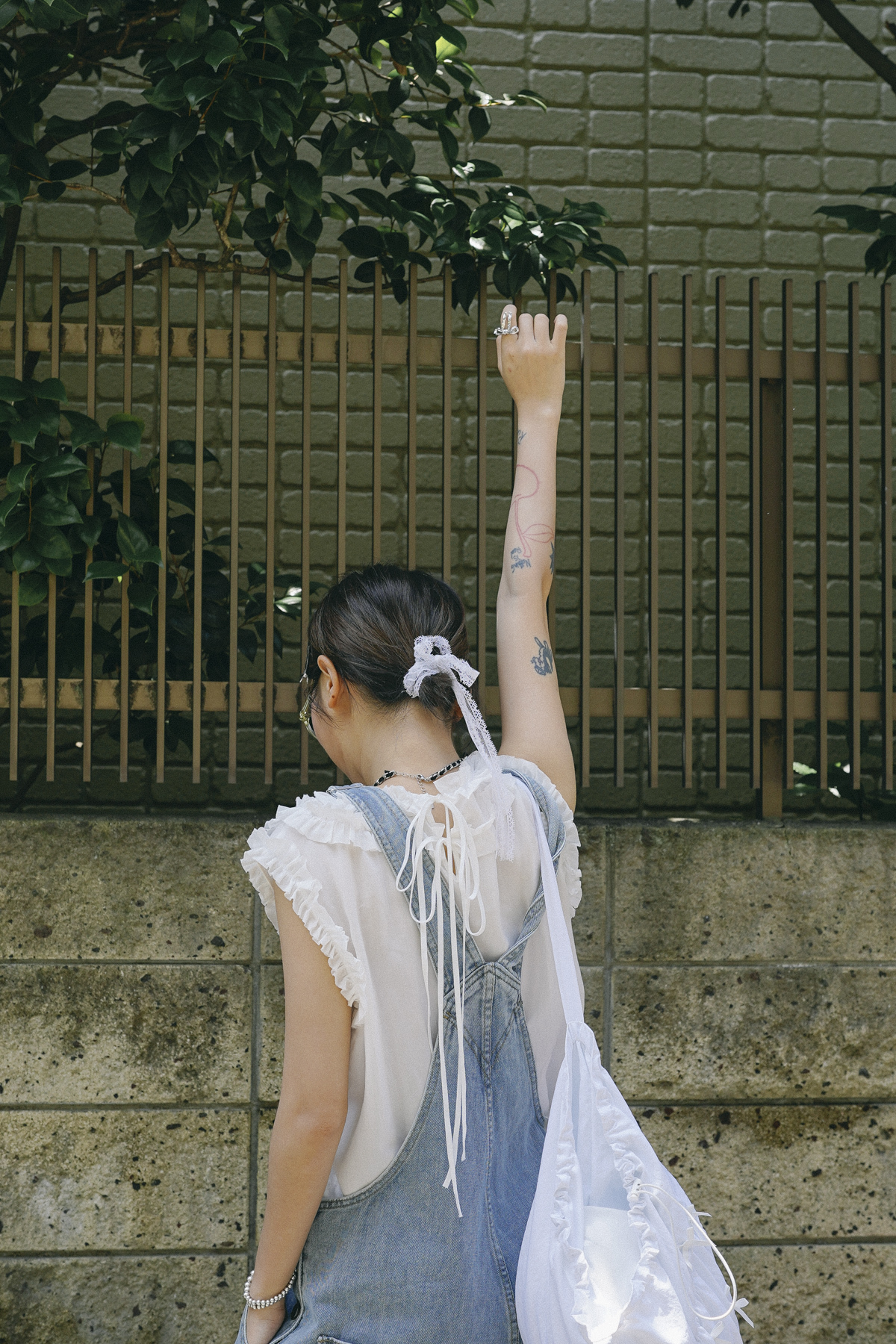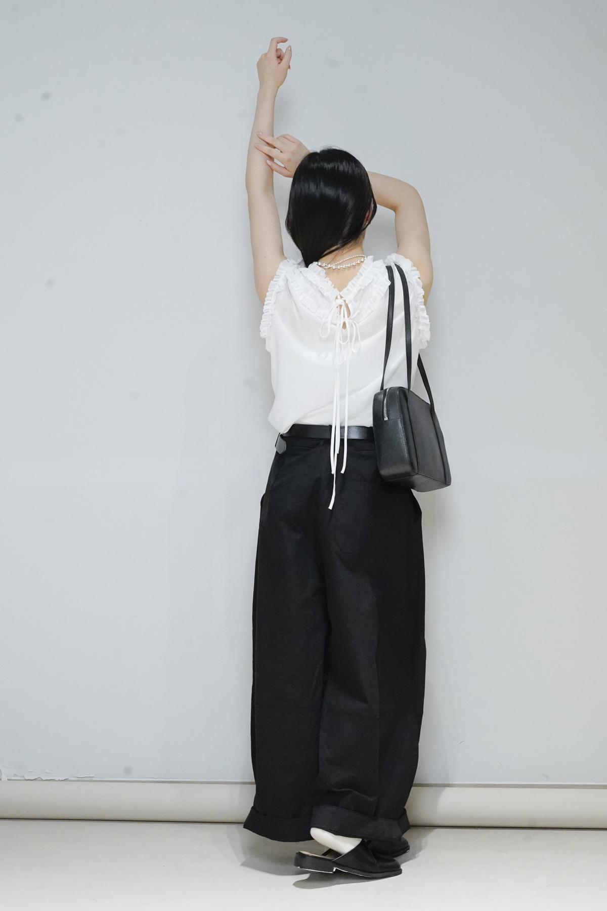 半透為肌膚帶來光澤感/後背蝴蝶結 增添層次感/ office上班配襯西褲即可~/輕鬆氣質出門