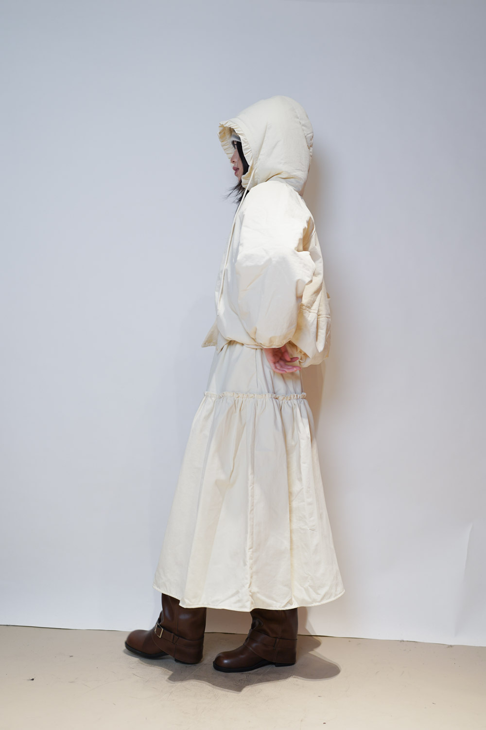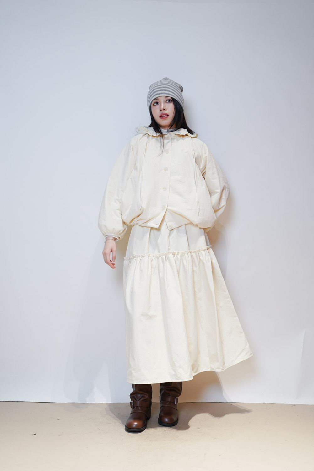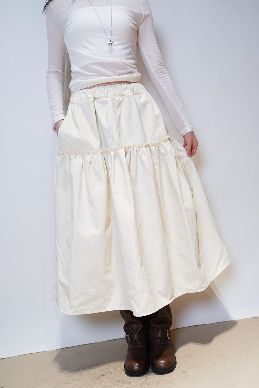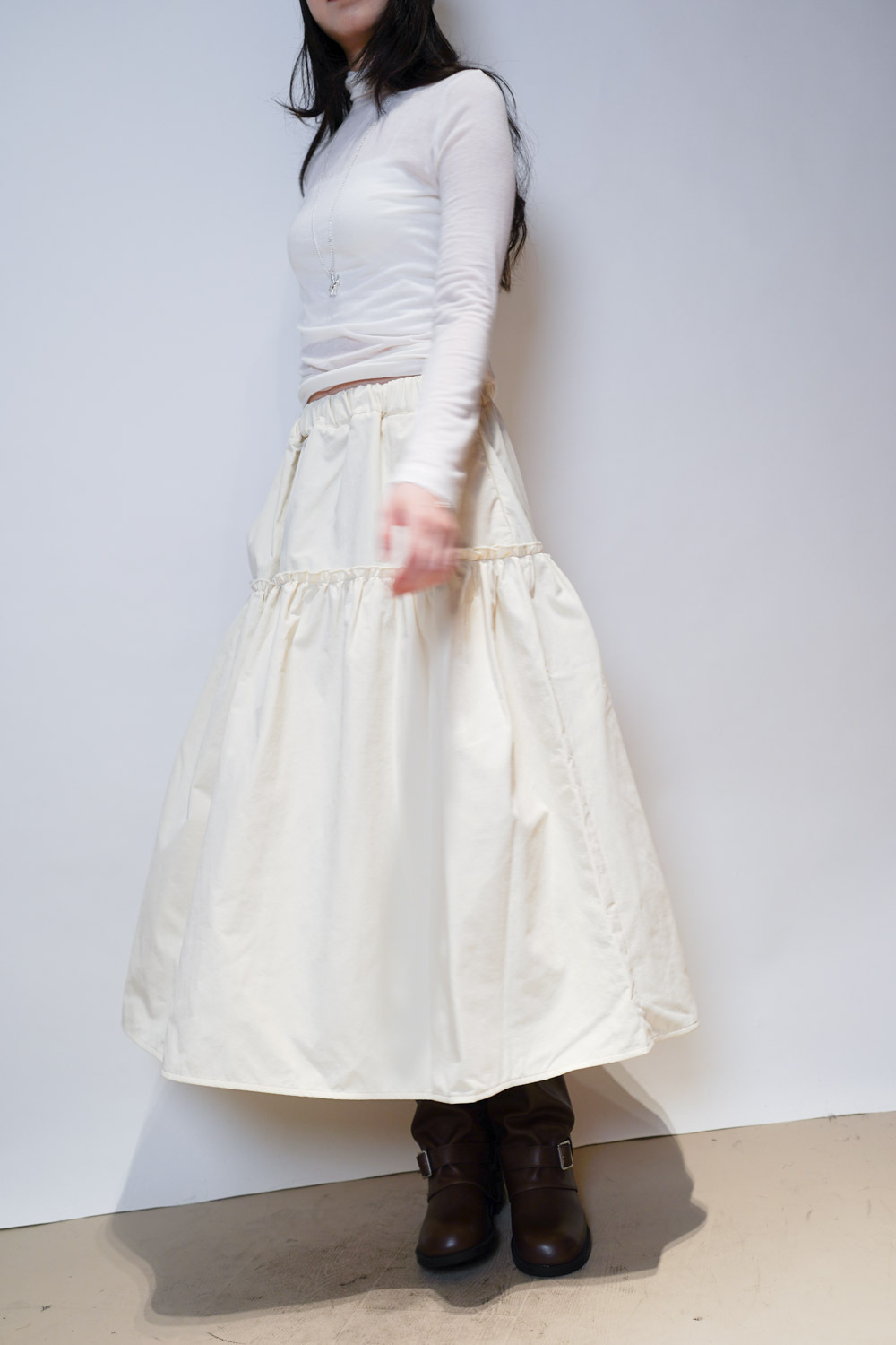 Love~ Ruffle edge padded set : Long Skirt (IVORY/ BLACK)