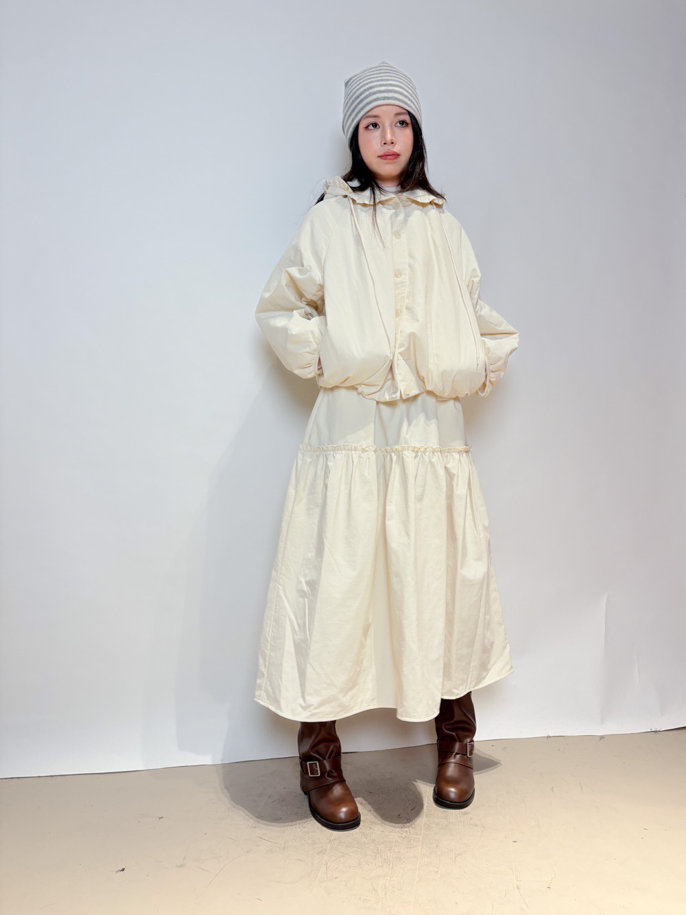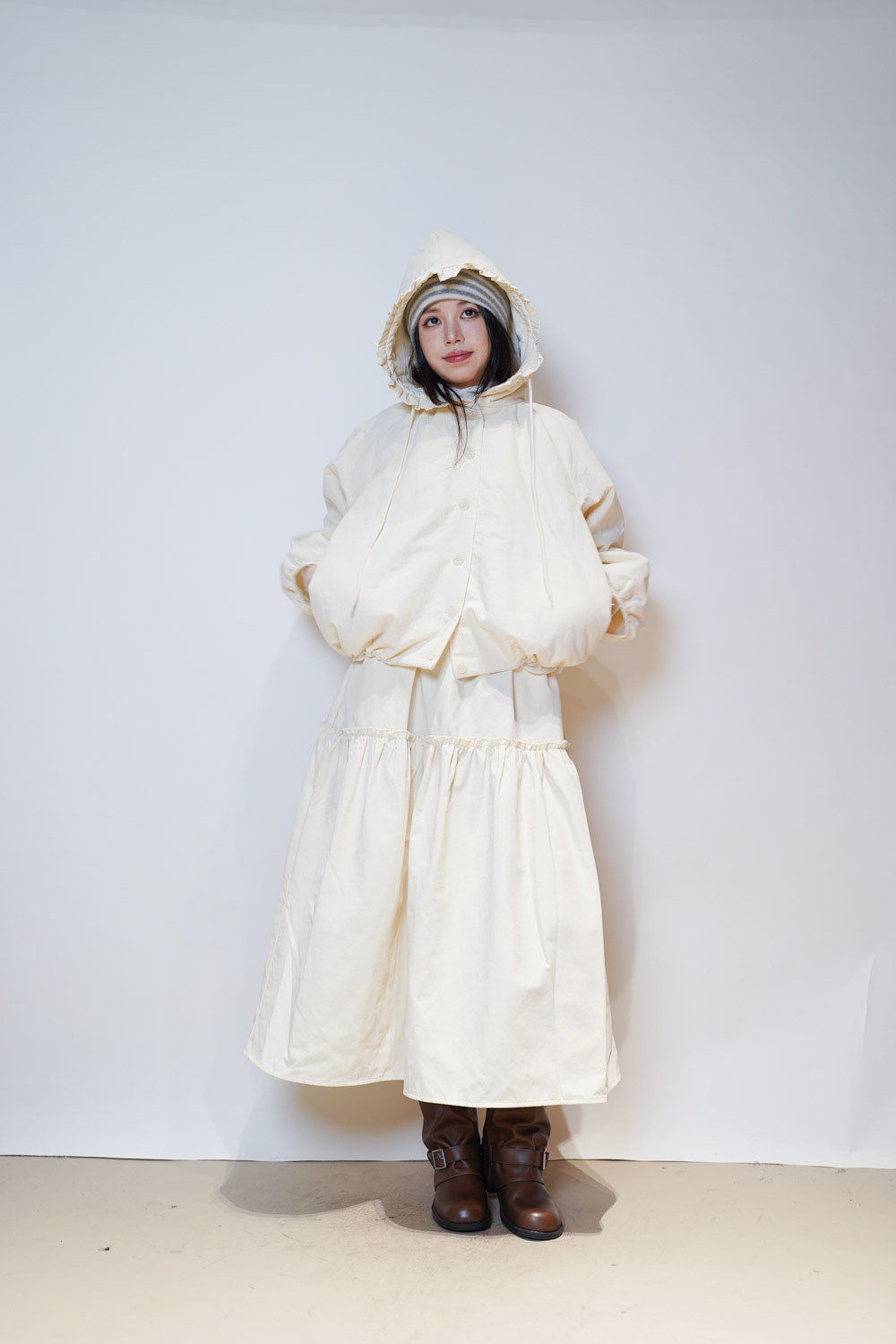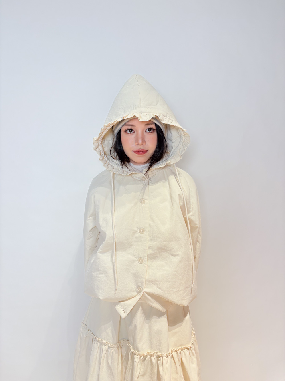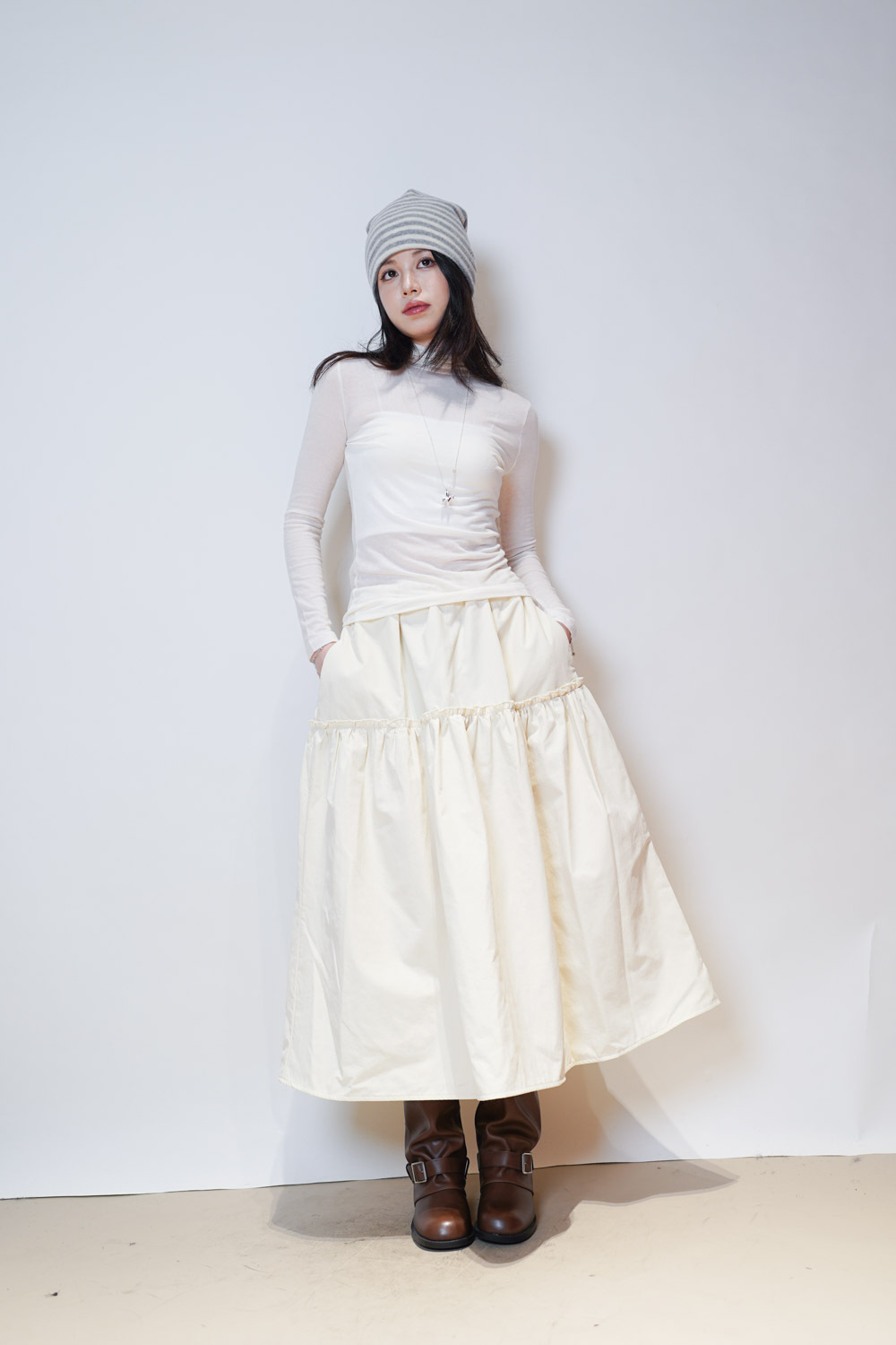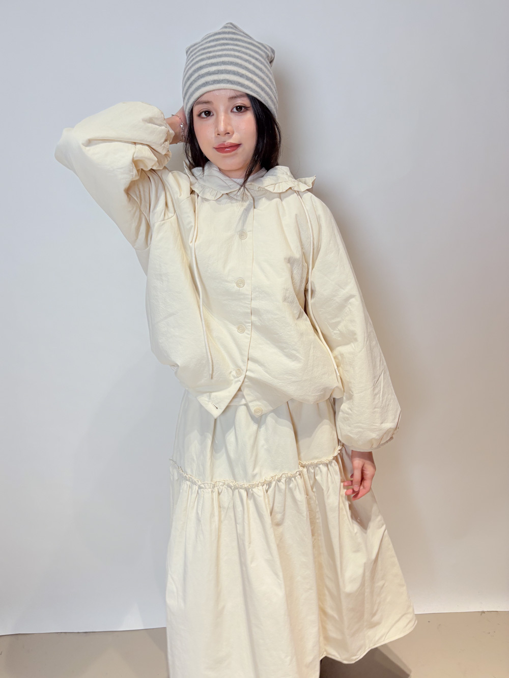 Love~ Ruffle edge padded set : Long Skirt (IVORY/ BLACK)
