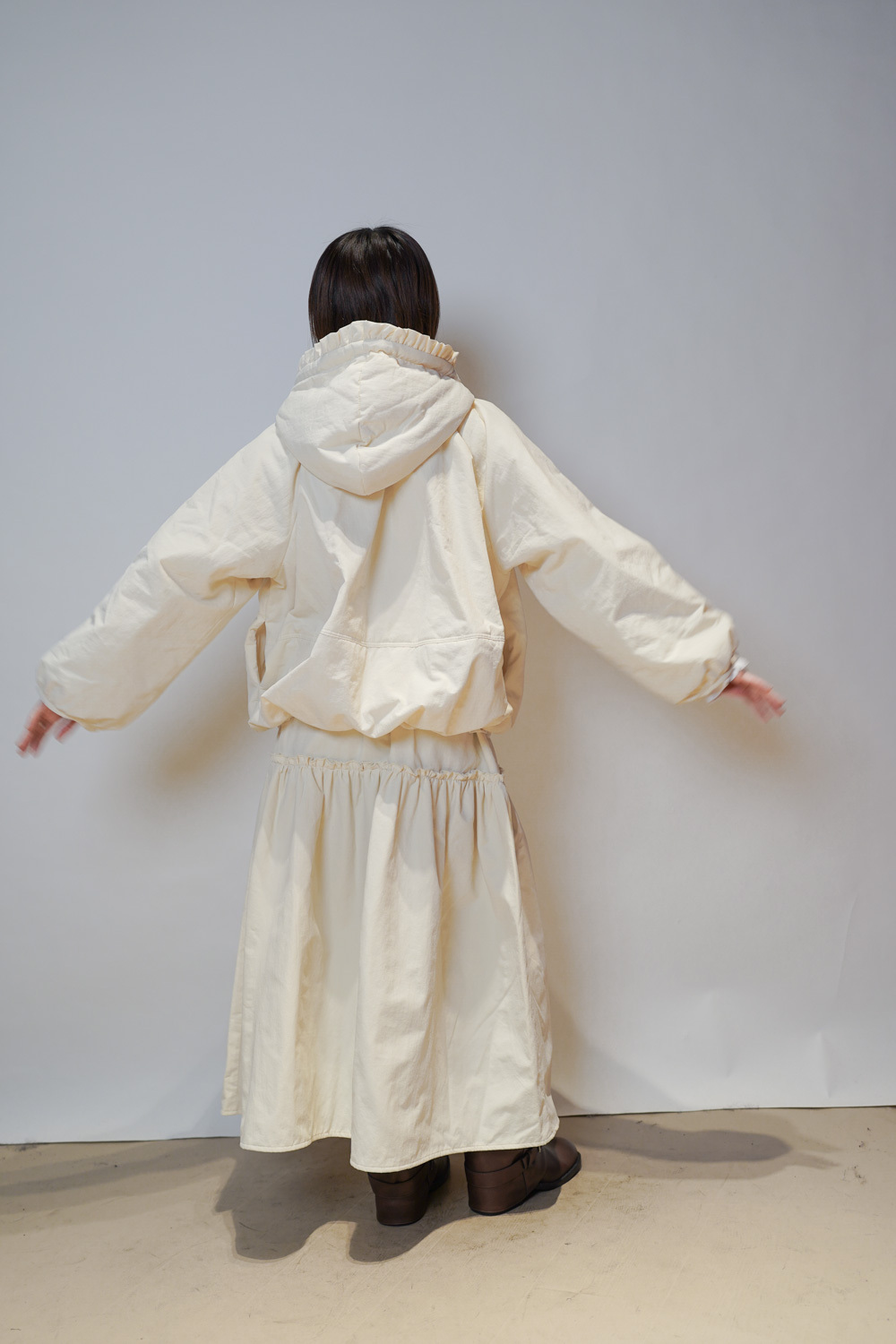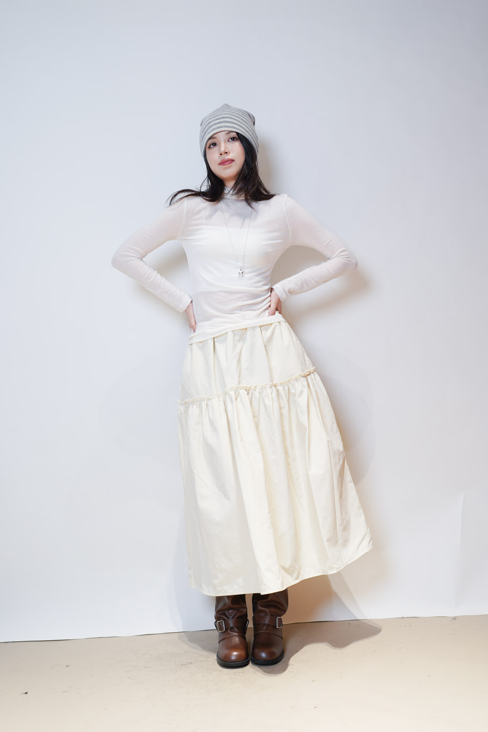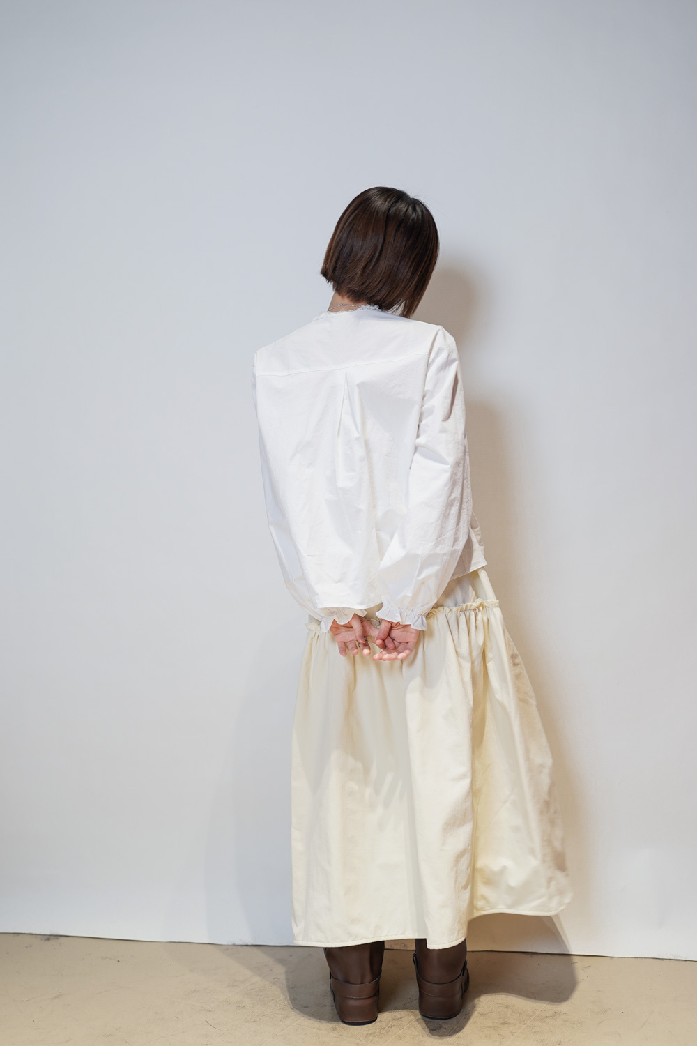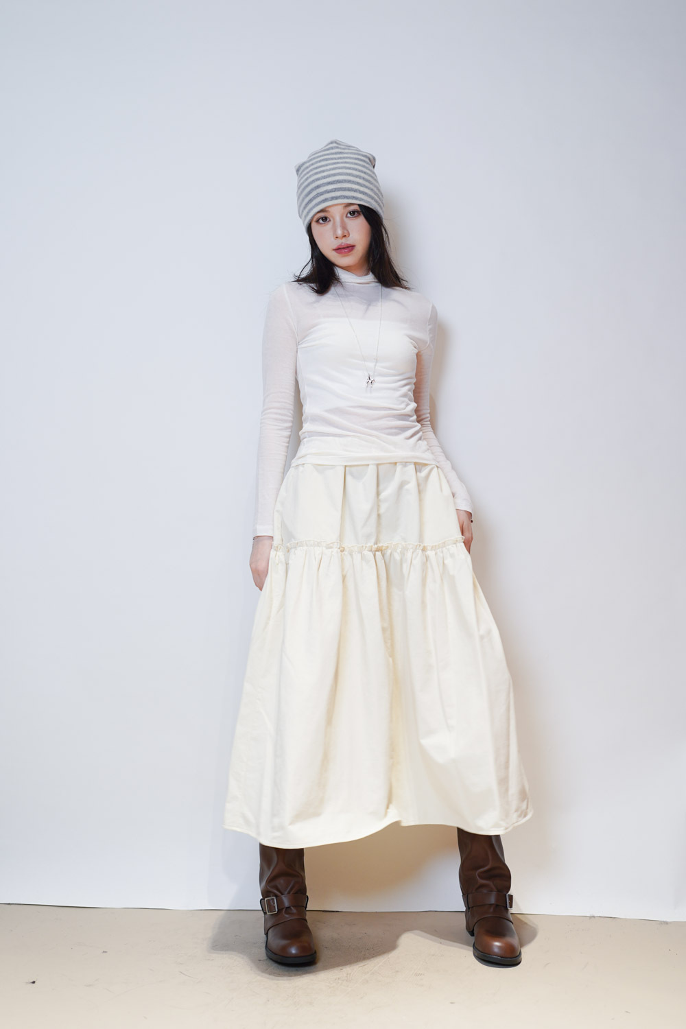 Love~ Ruffle edge padded set : Long Skirt (IVORY/ BLACK)