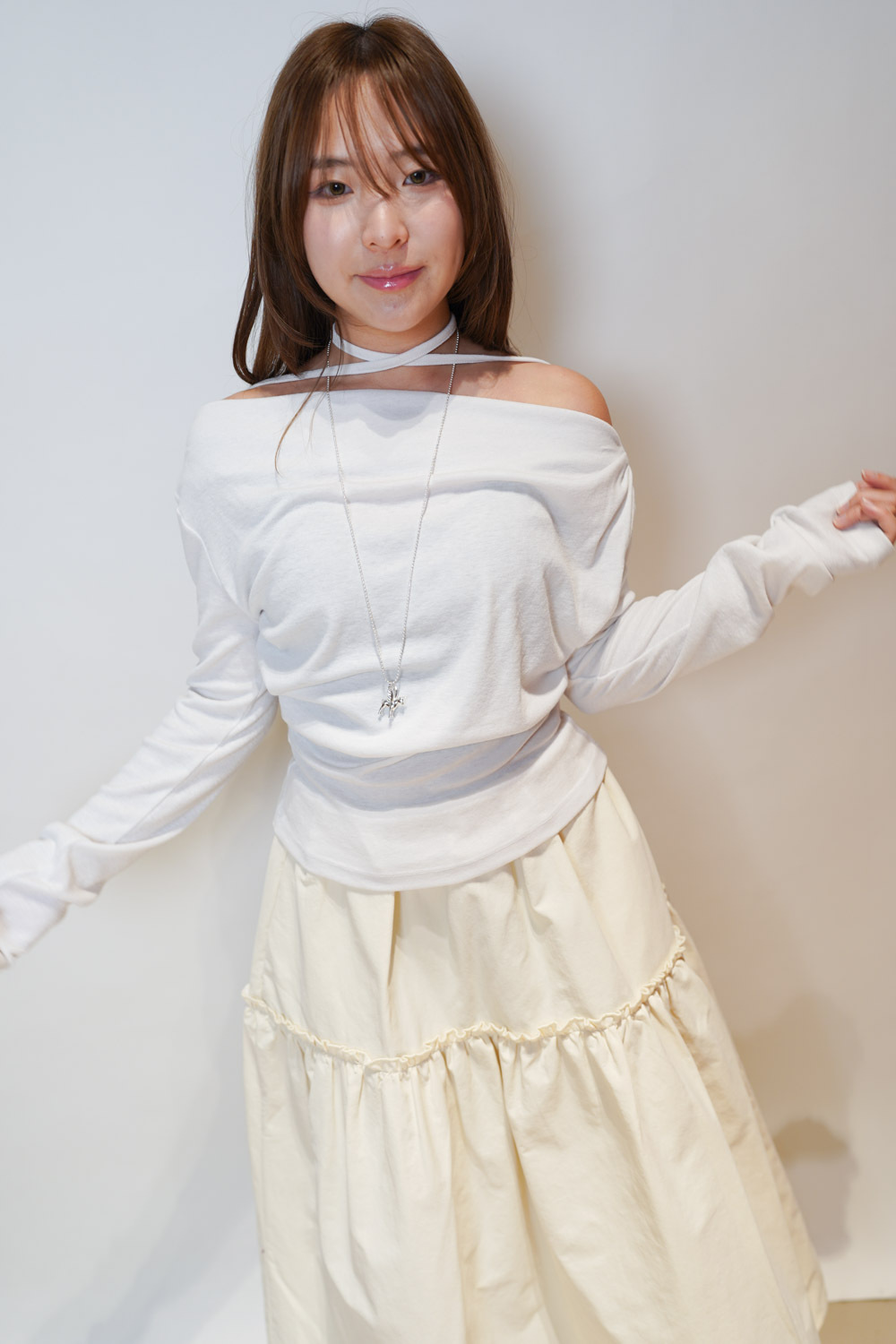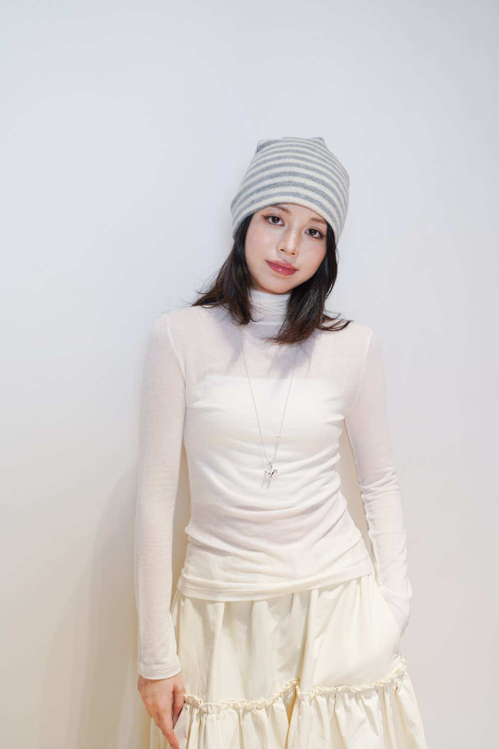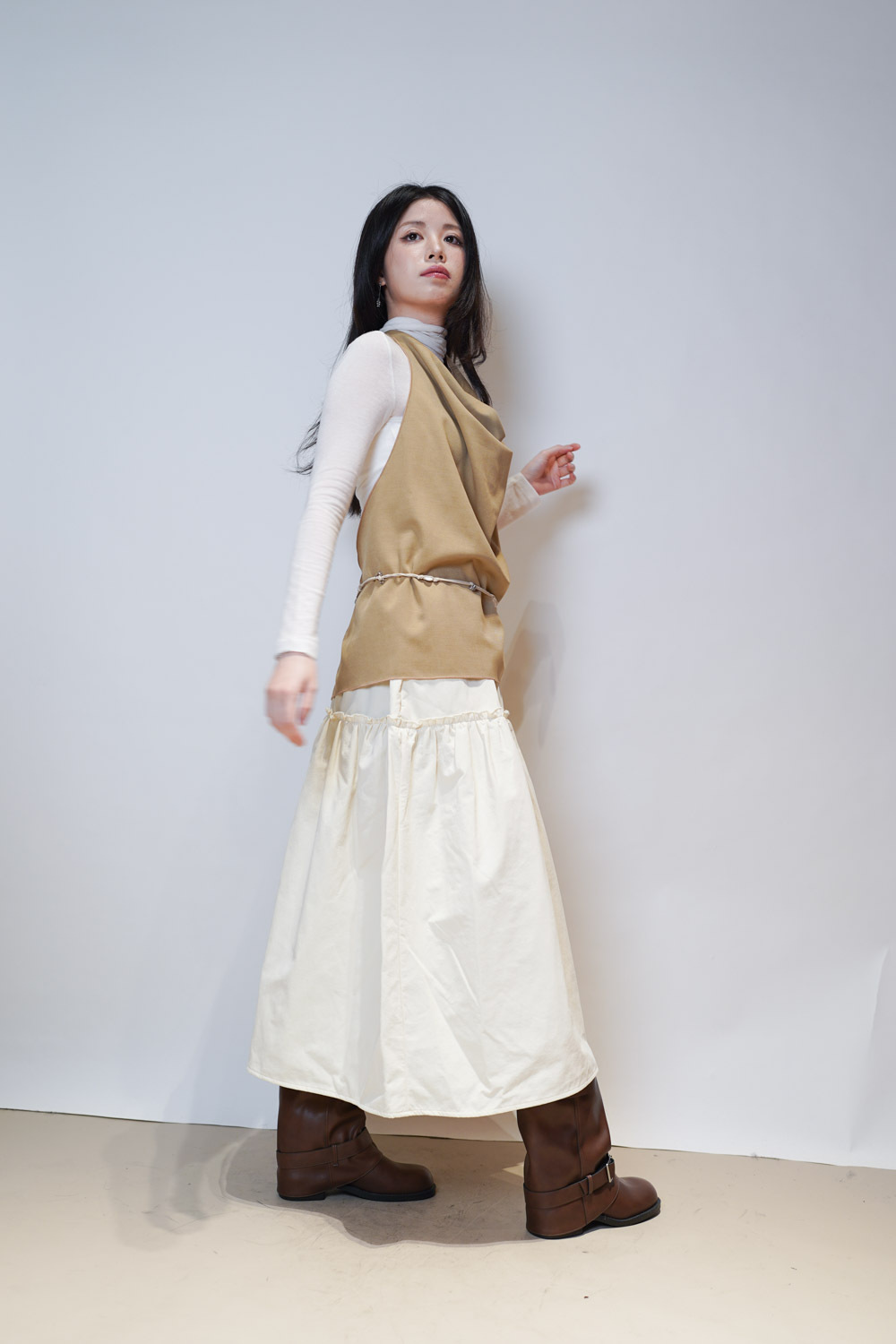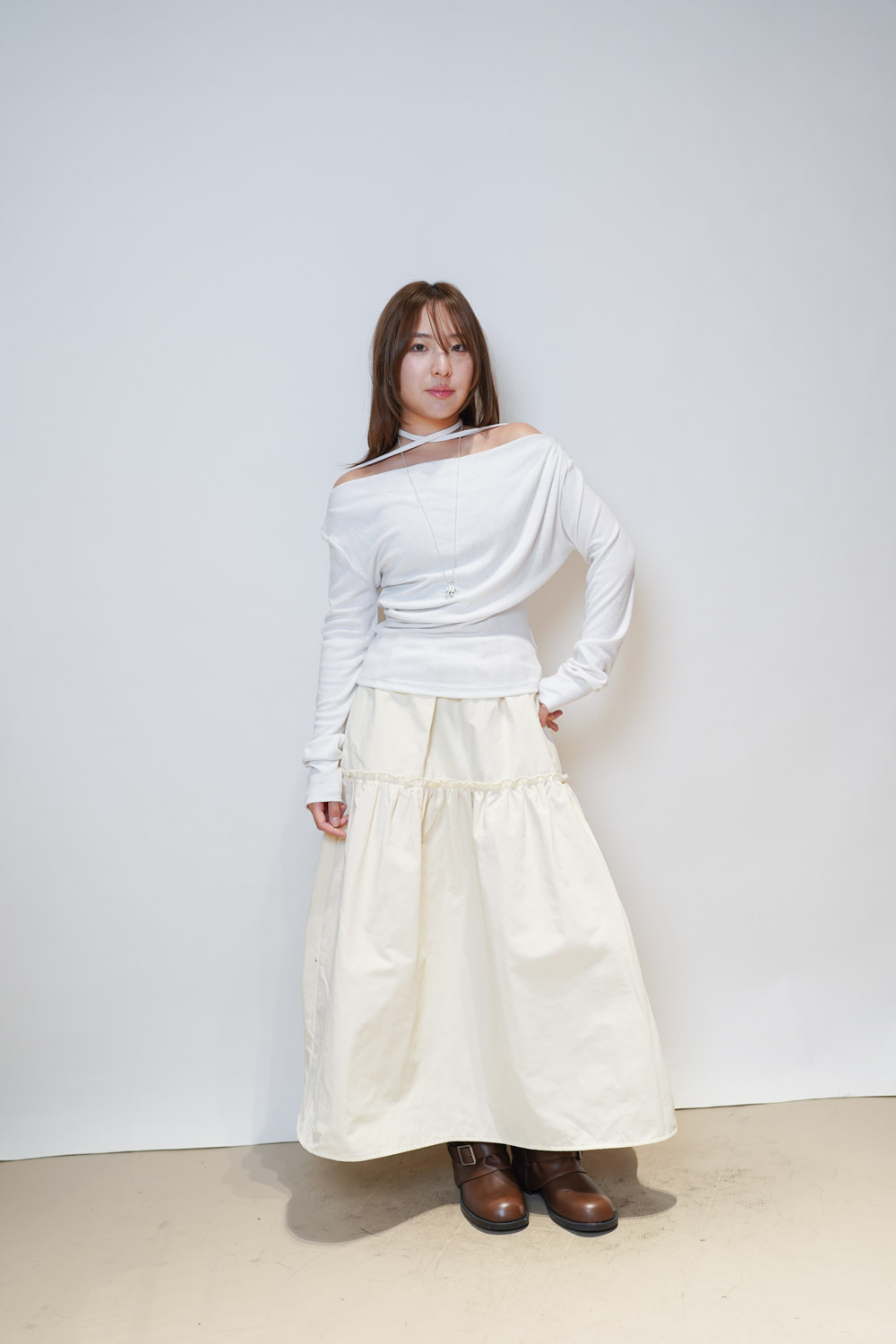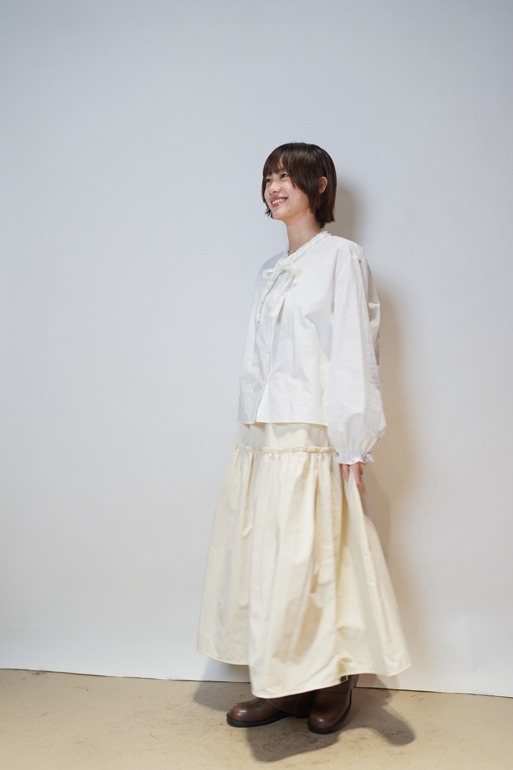 Love~ Ruffle edge padded set : Long Skirt (IVORY/ BLACK)