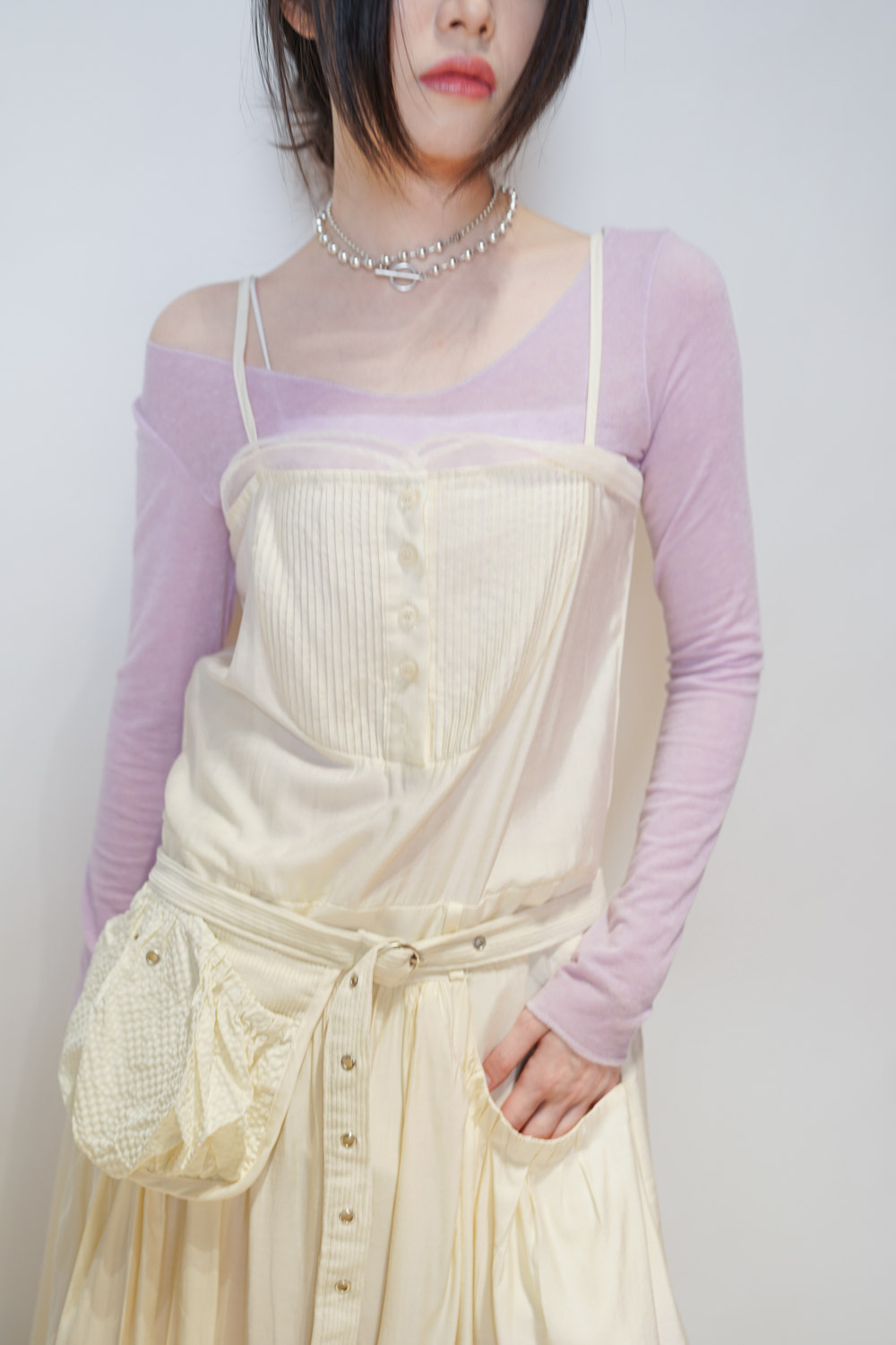Shoulder: free / Arm: free/ Chest: 82cm/ Waist : 92cm (36.5'')/ Length: 108cm (not include strip)