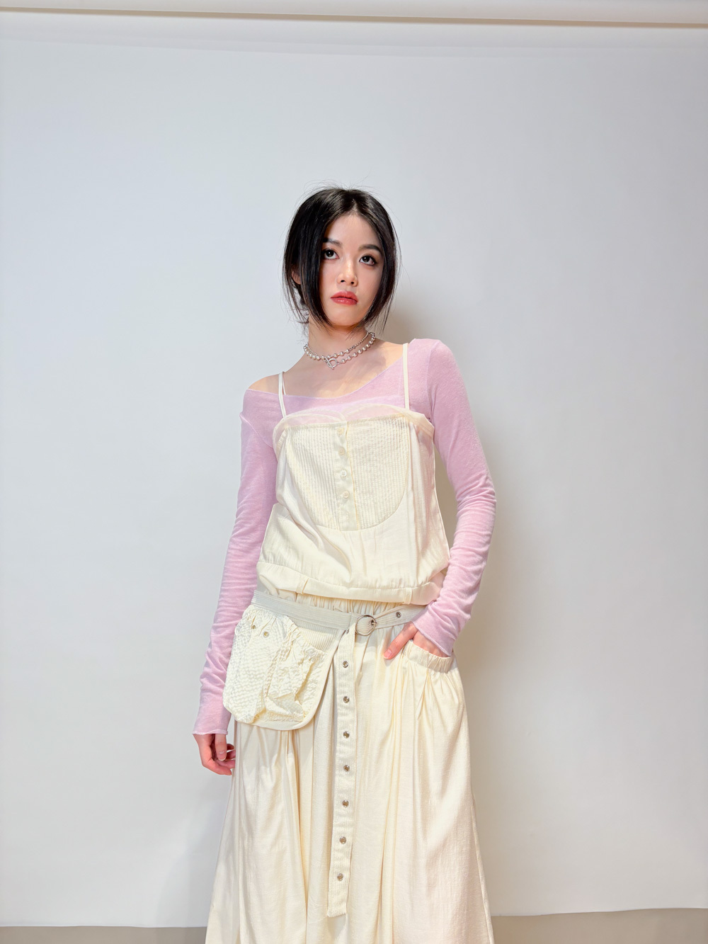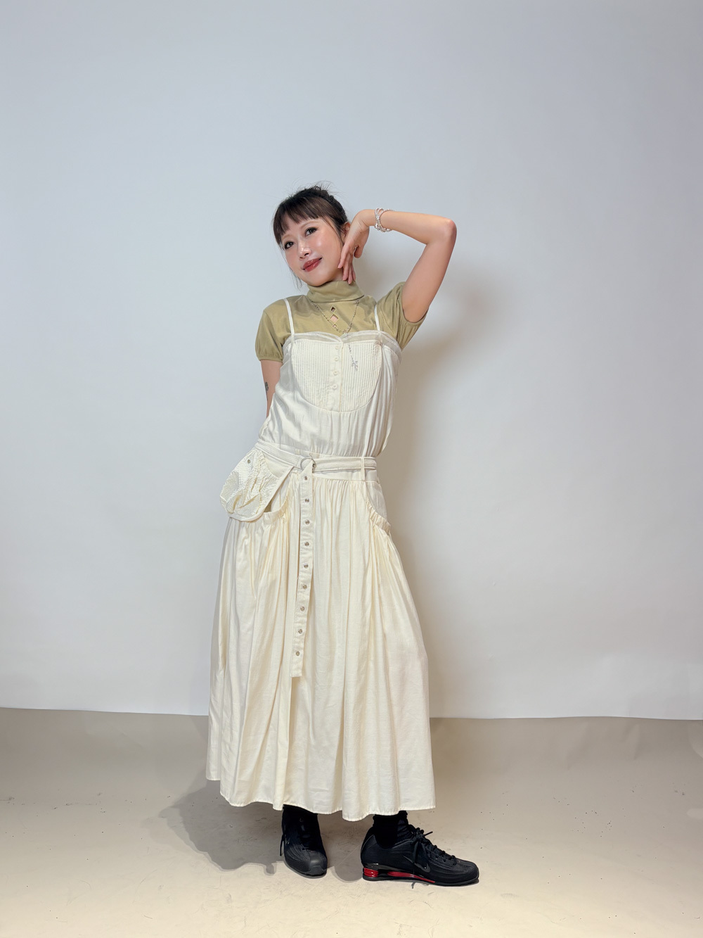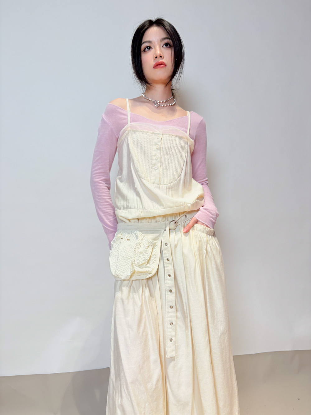 小腹位皺摺設計 修飾小腹線條 側面唔顯小腹/