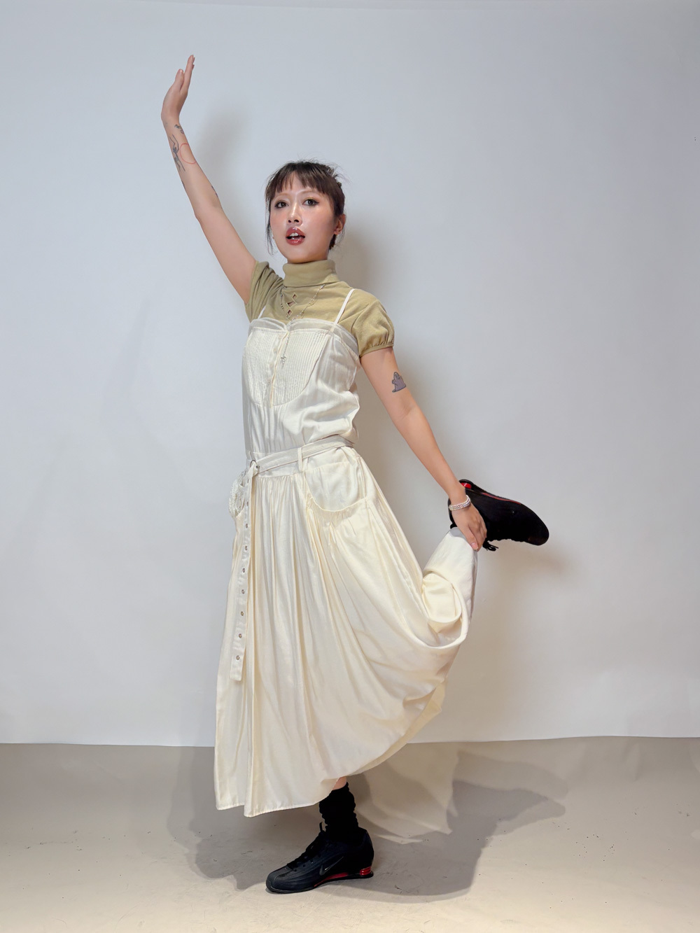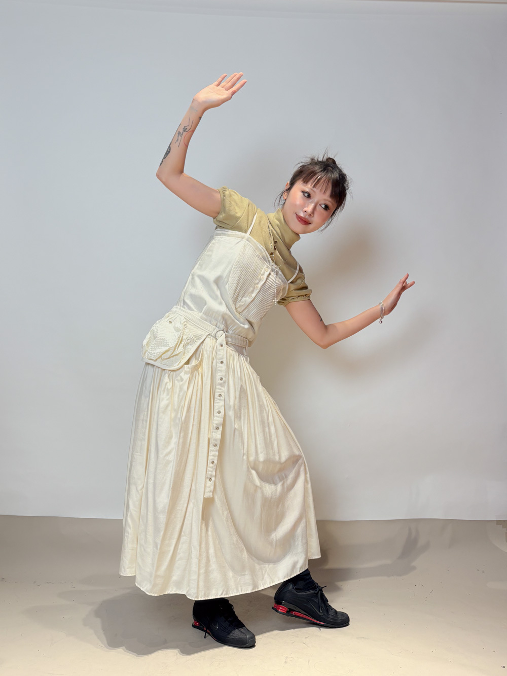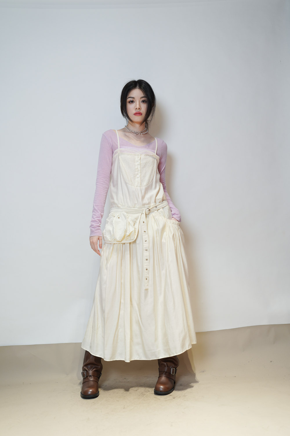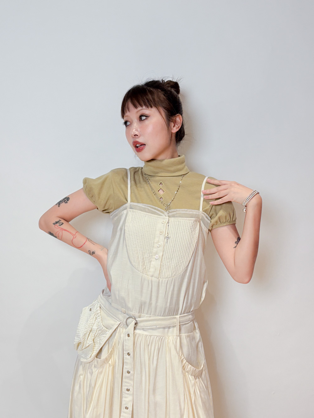 小腹位皺摺設計 修飾小腹線條 側面唔顯小腹/