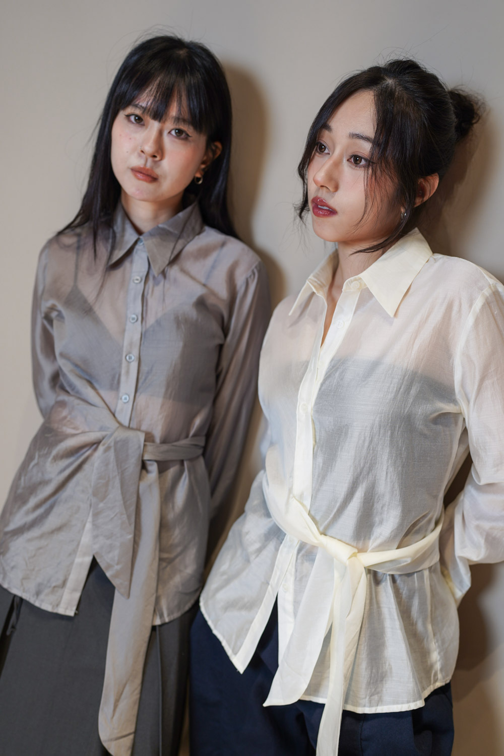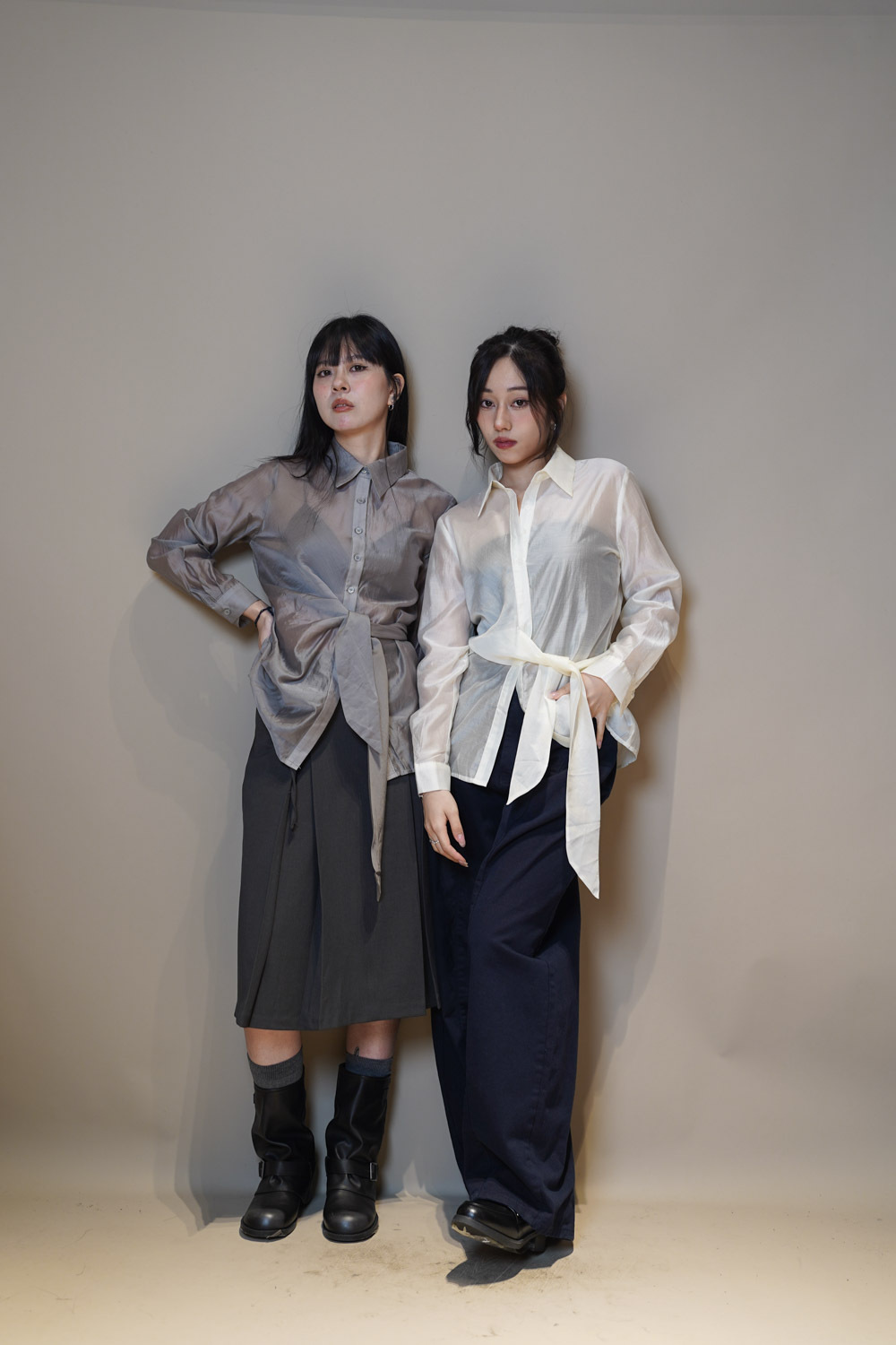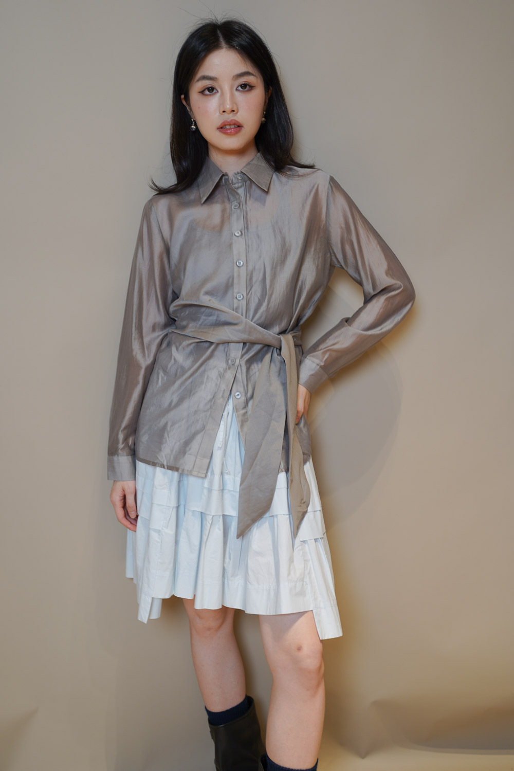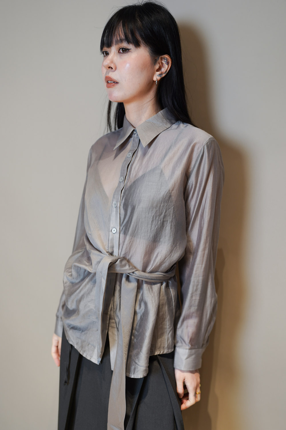 Love~ side wrapping pearly shirt (WHITE/GREY)