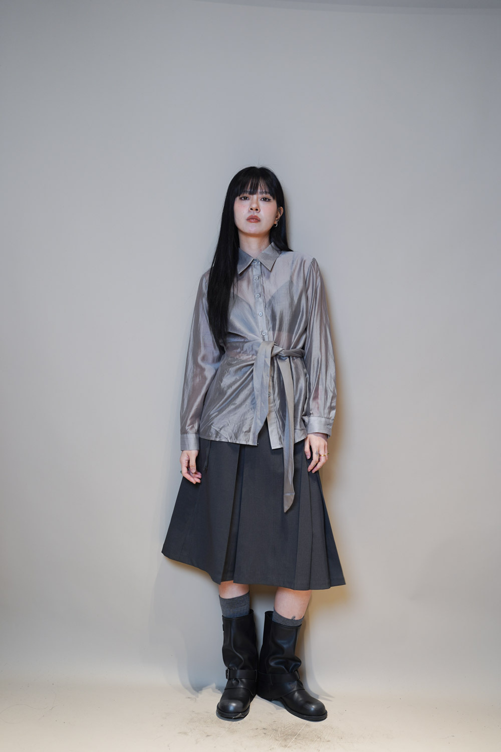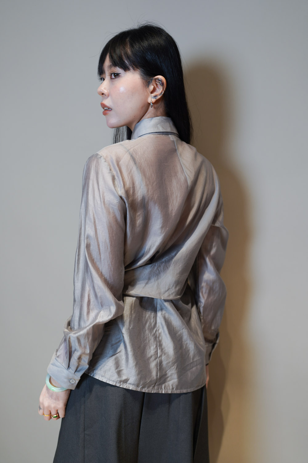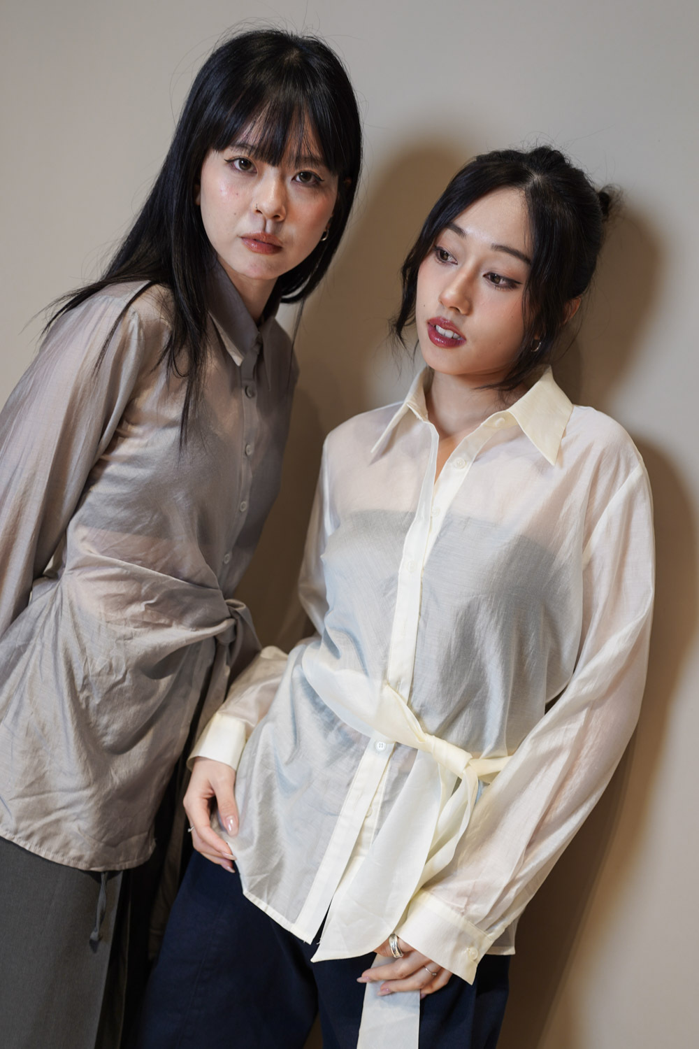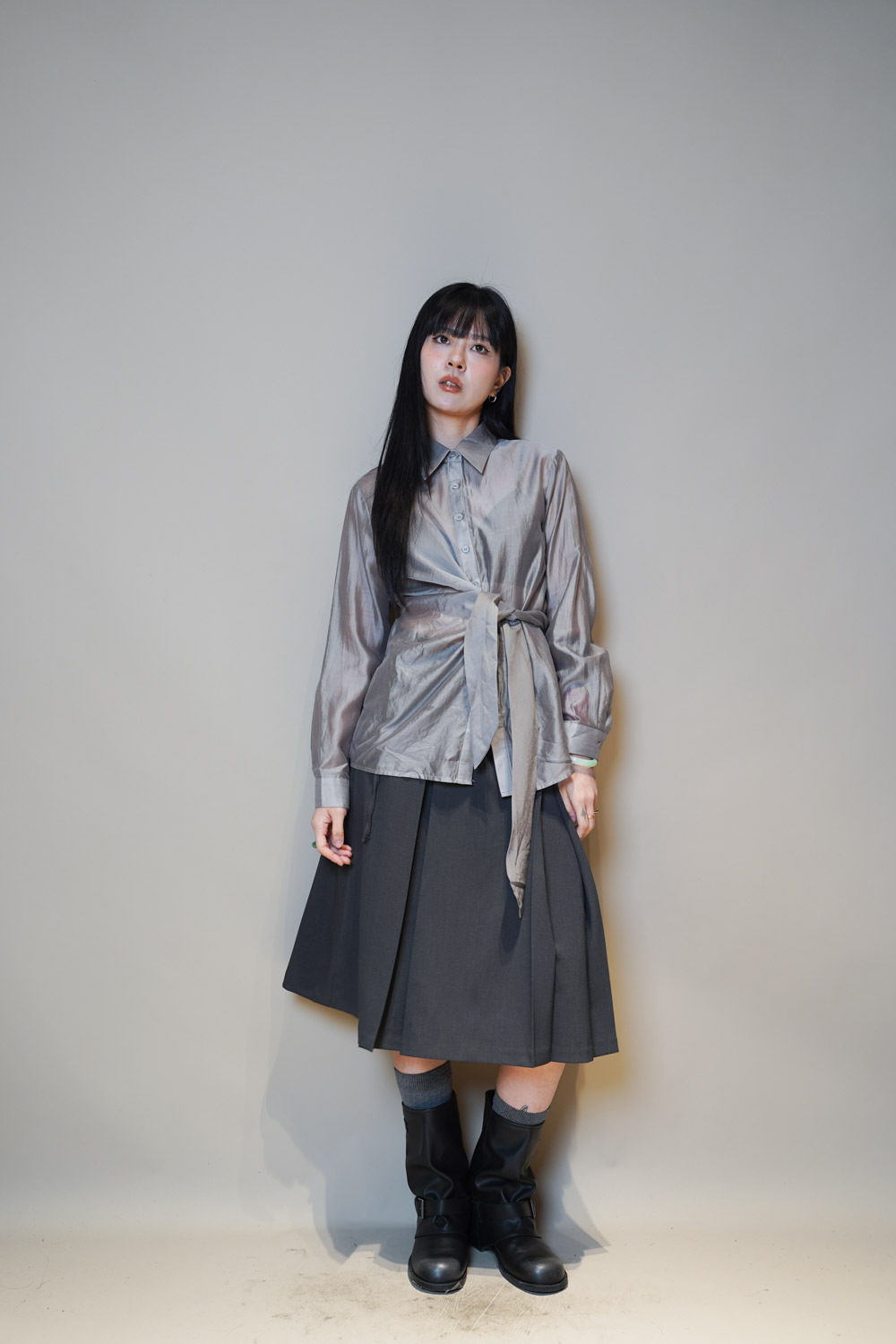 Love~ side wrapping pearly shirt (WHITE/GREY)