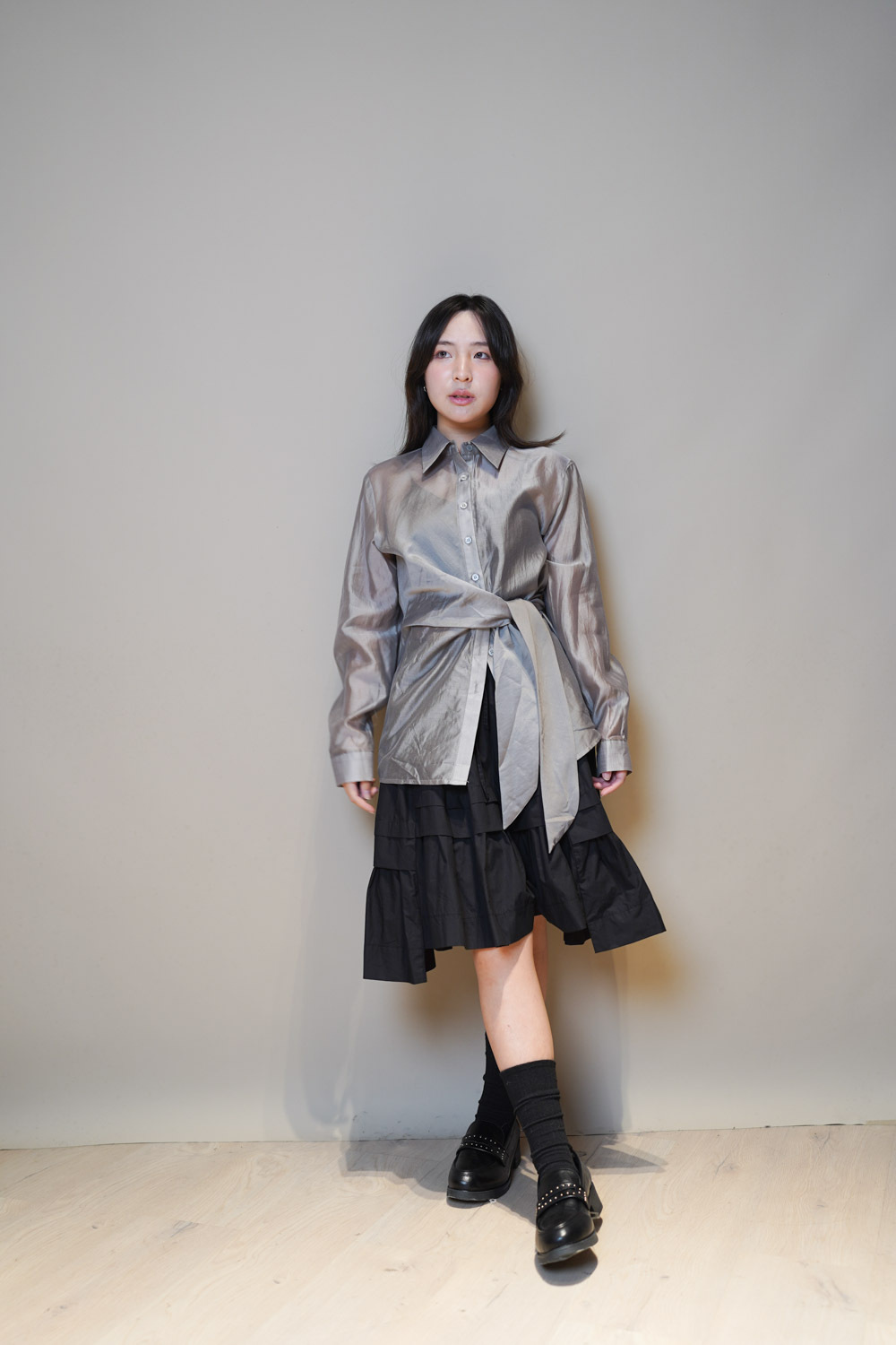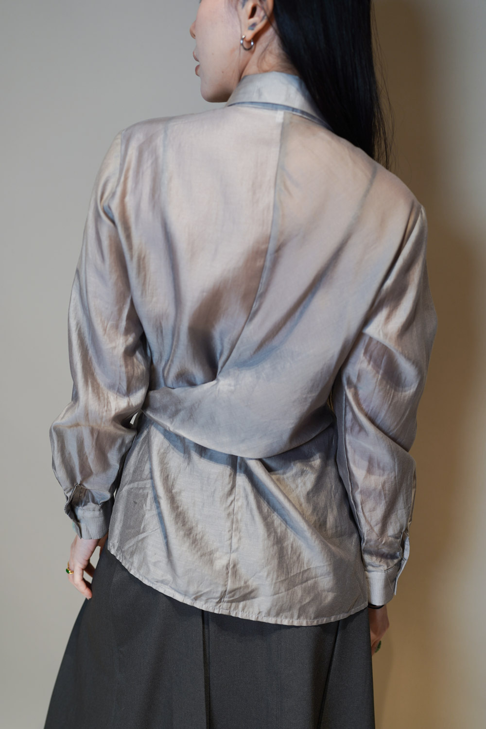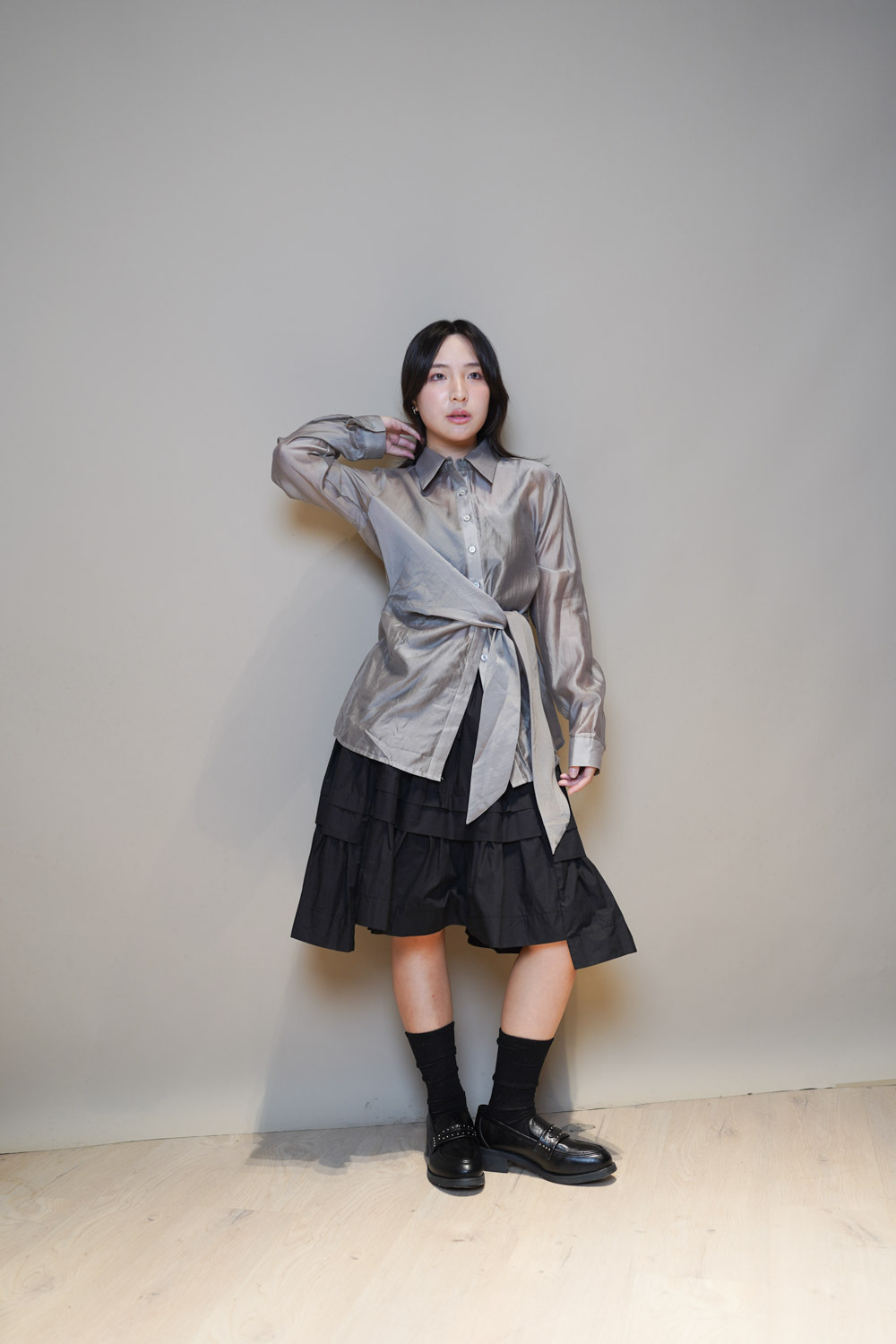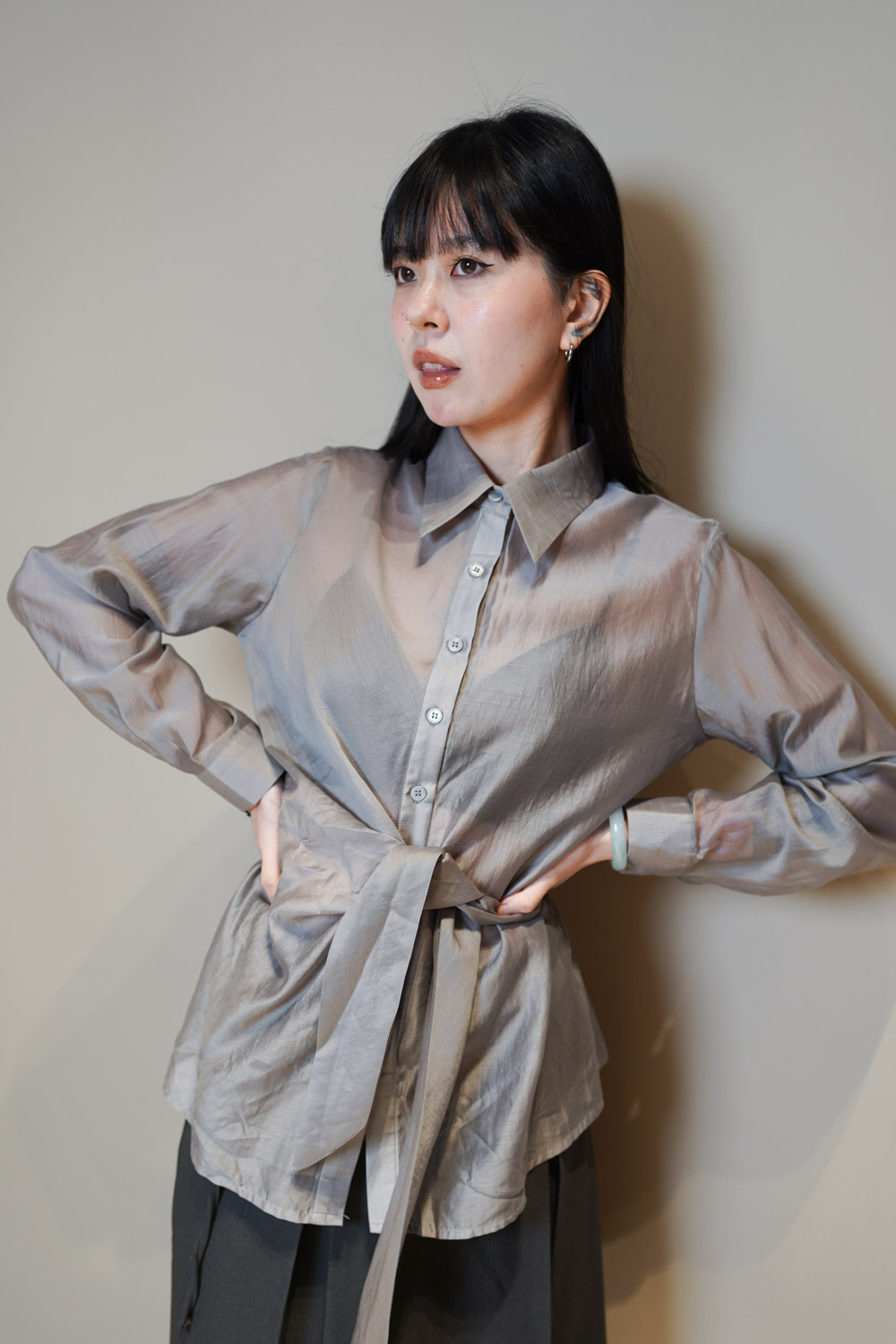 Love~ side wrapping pearly shirt (WHITE/GREY)