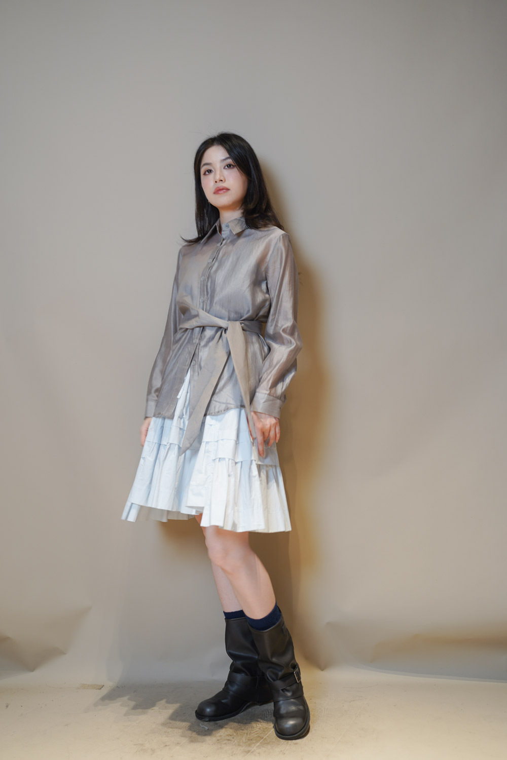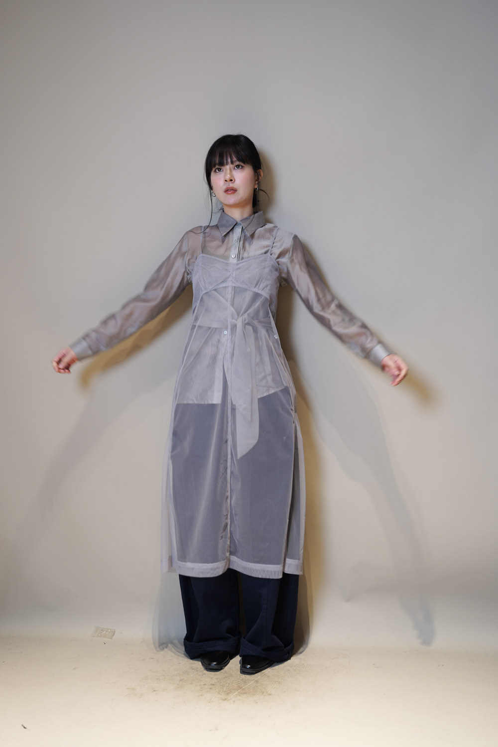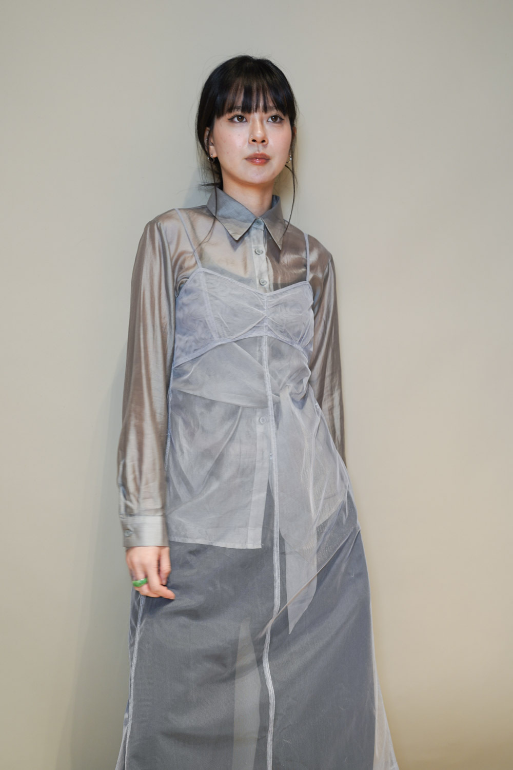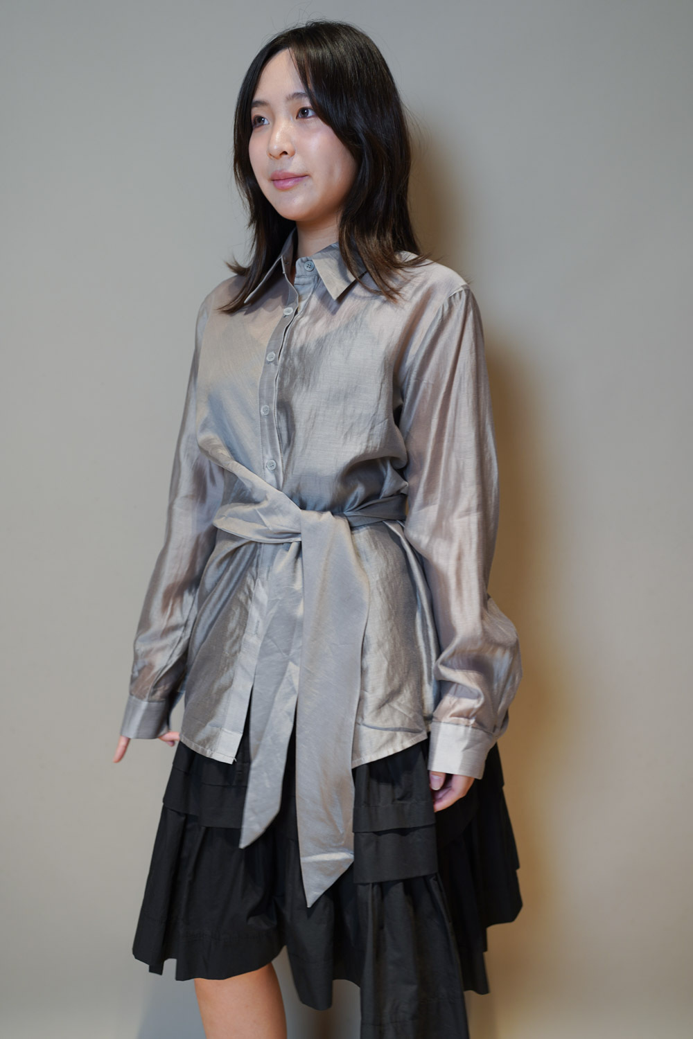 Love~ side wrapping pearly shirt (WHITE/GREY)