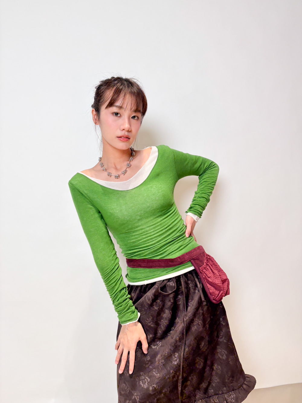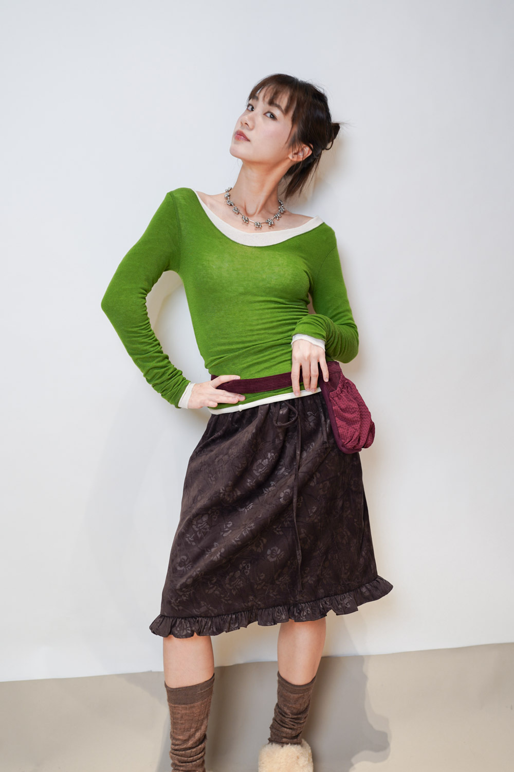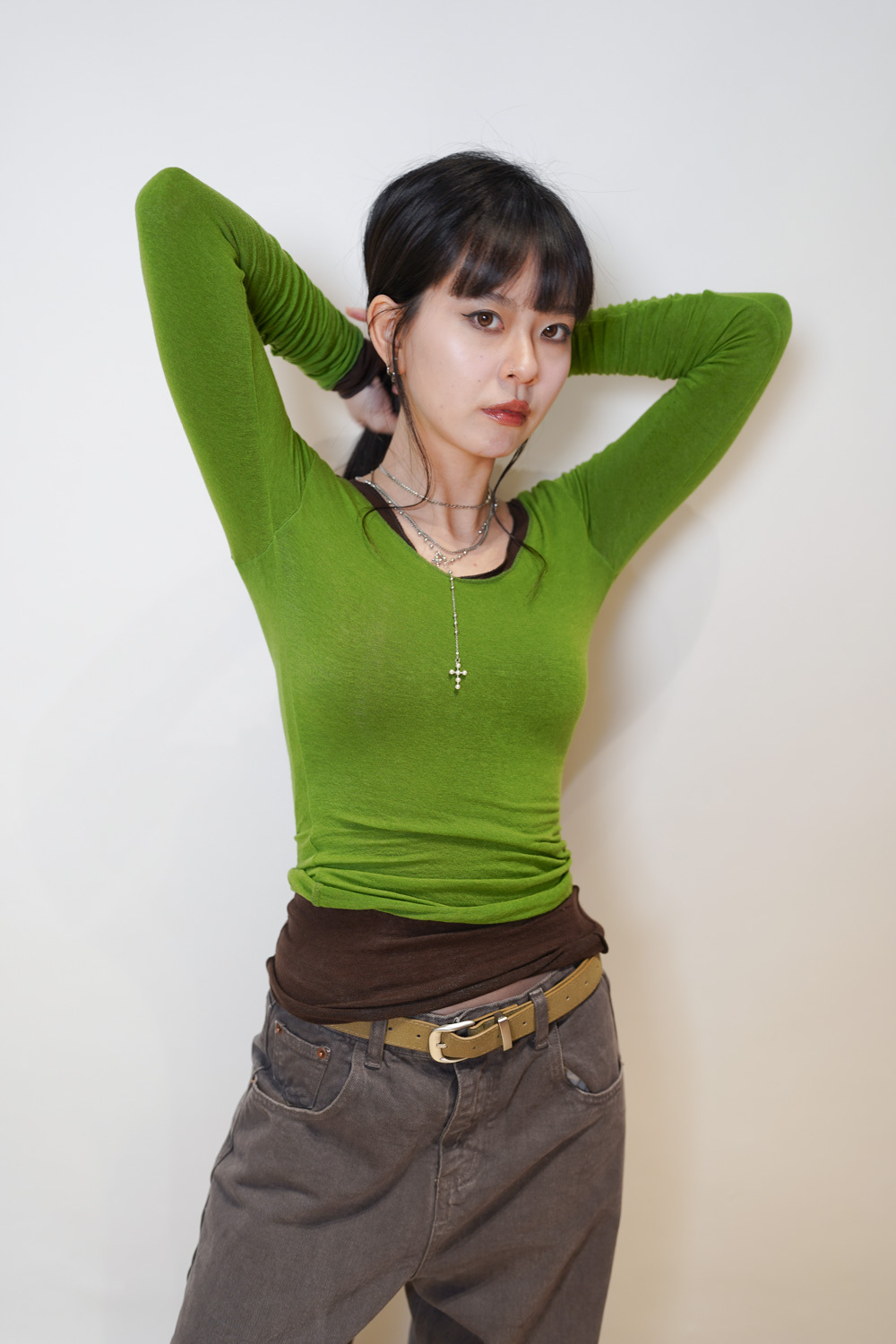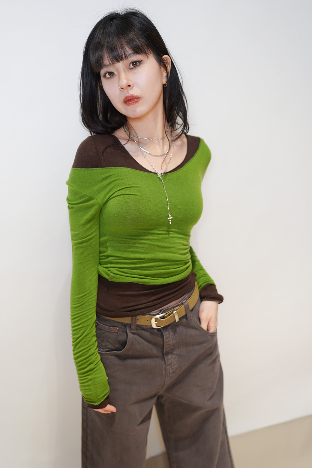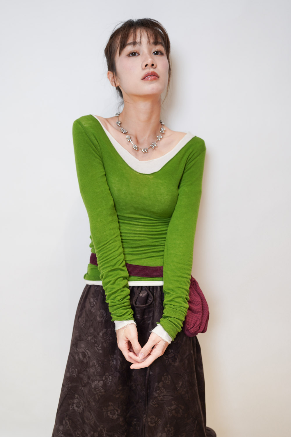 slim shape layers long top (WHITE/PINK/GREEN/BROWN) - wool 65%