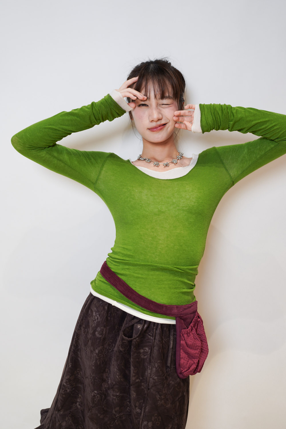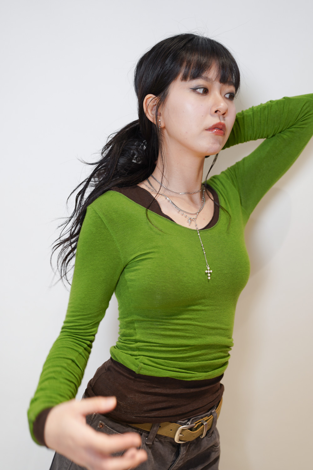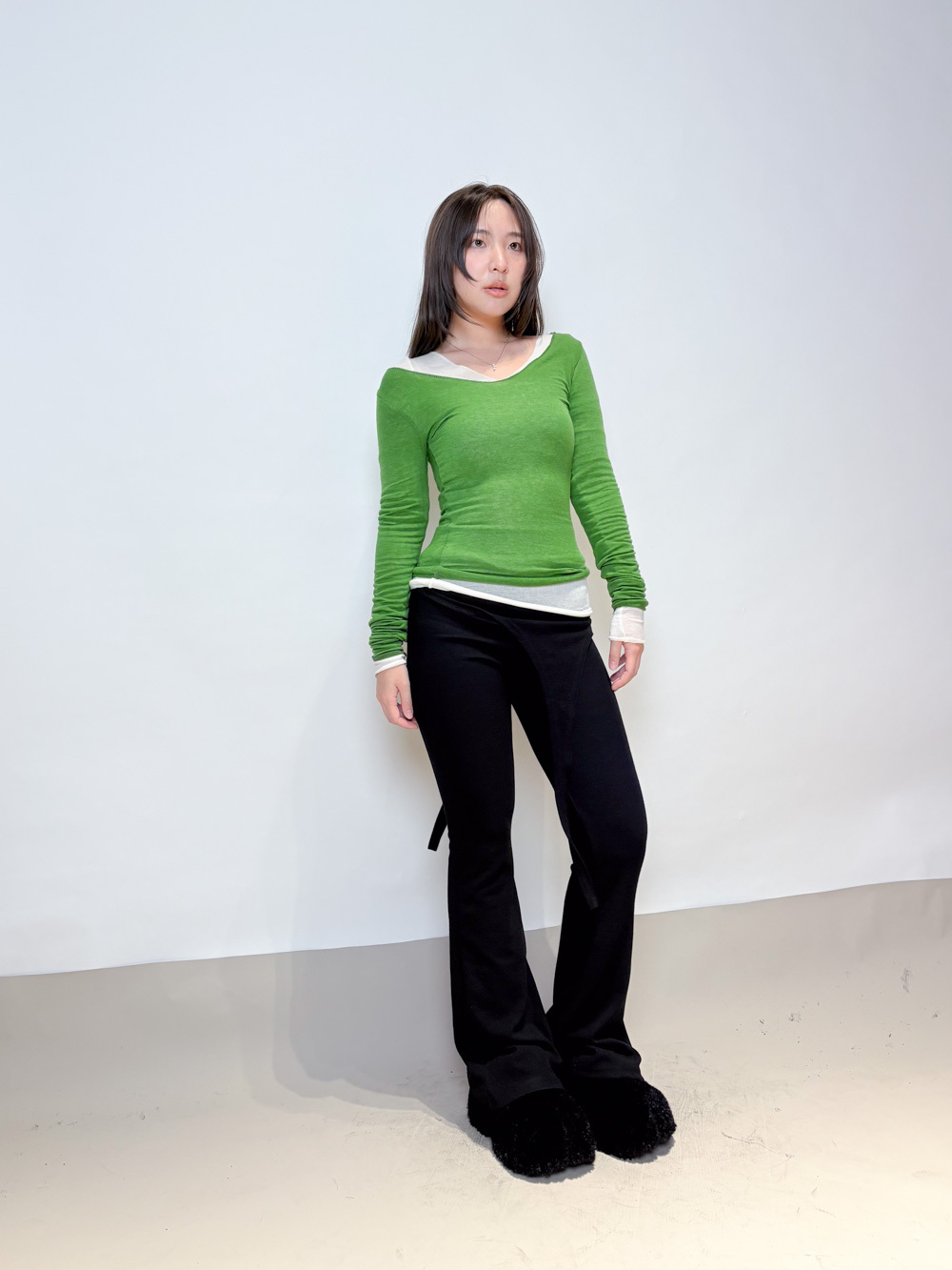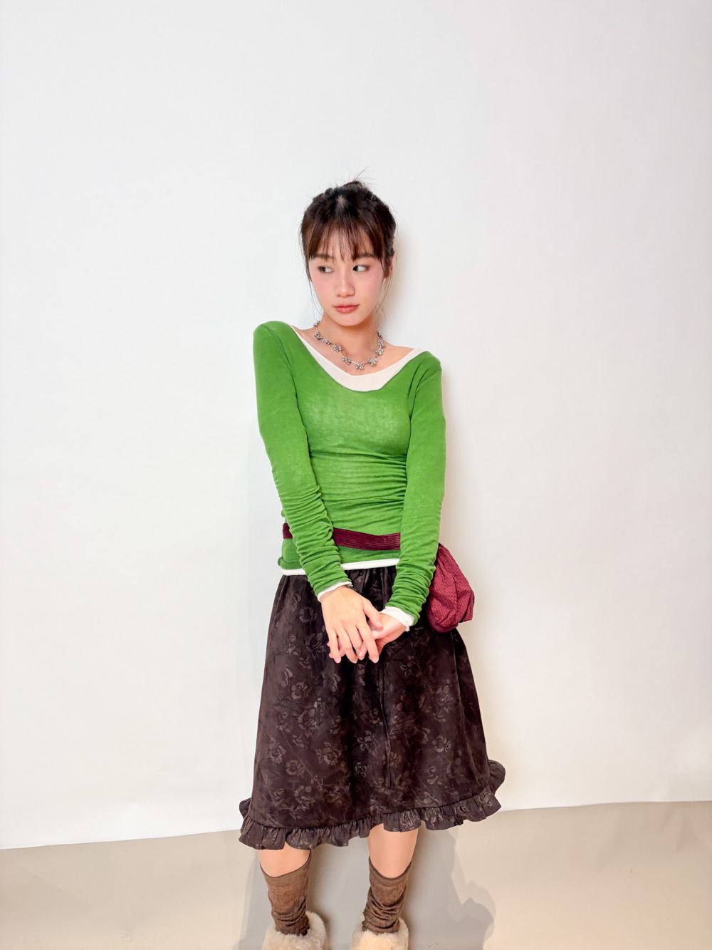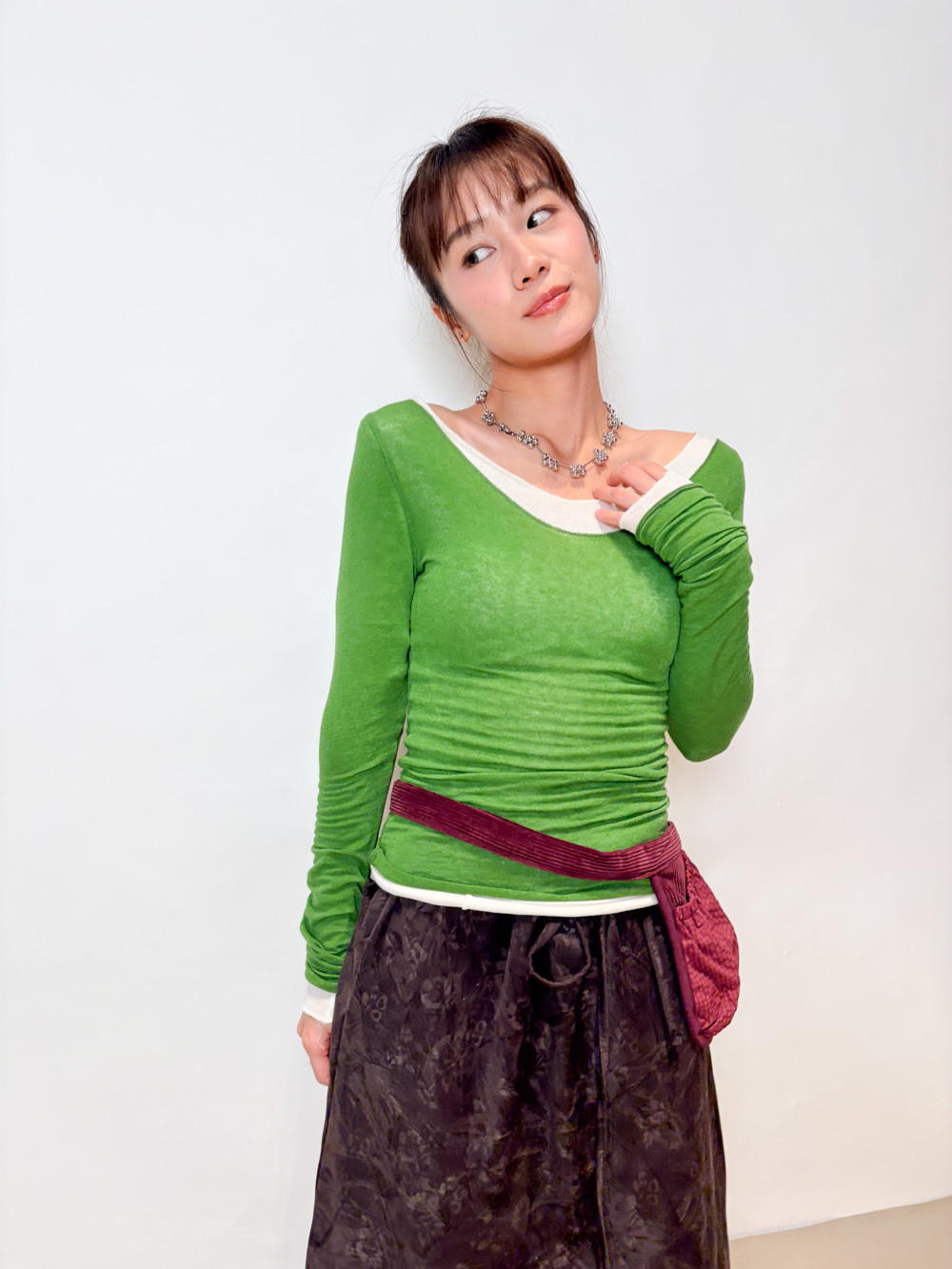 slim shape layers long top (WHITE/PINK/GREEN/BROWN) - wool 65%