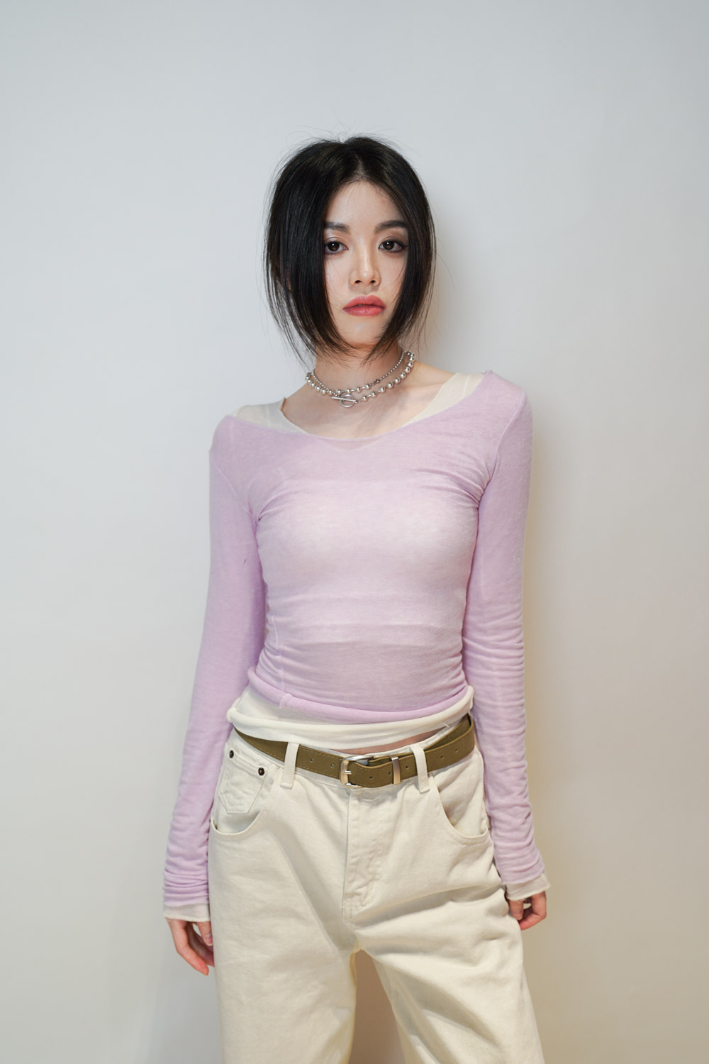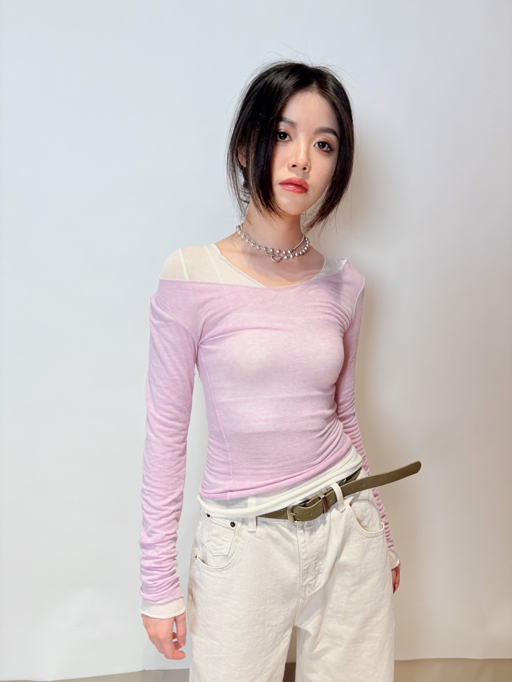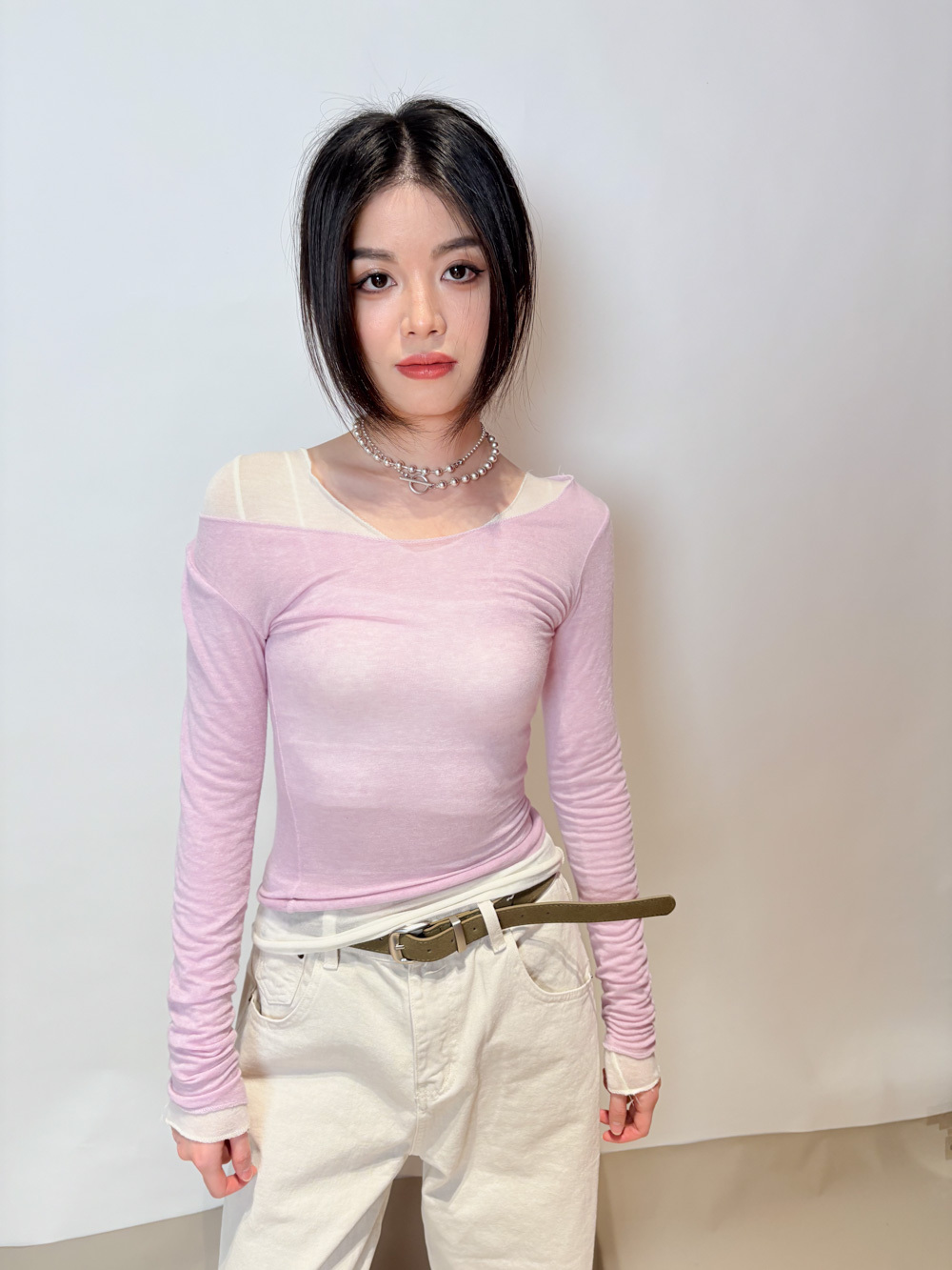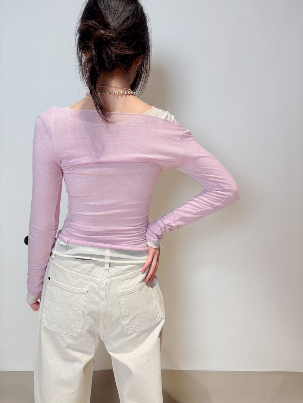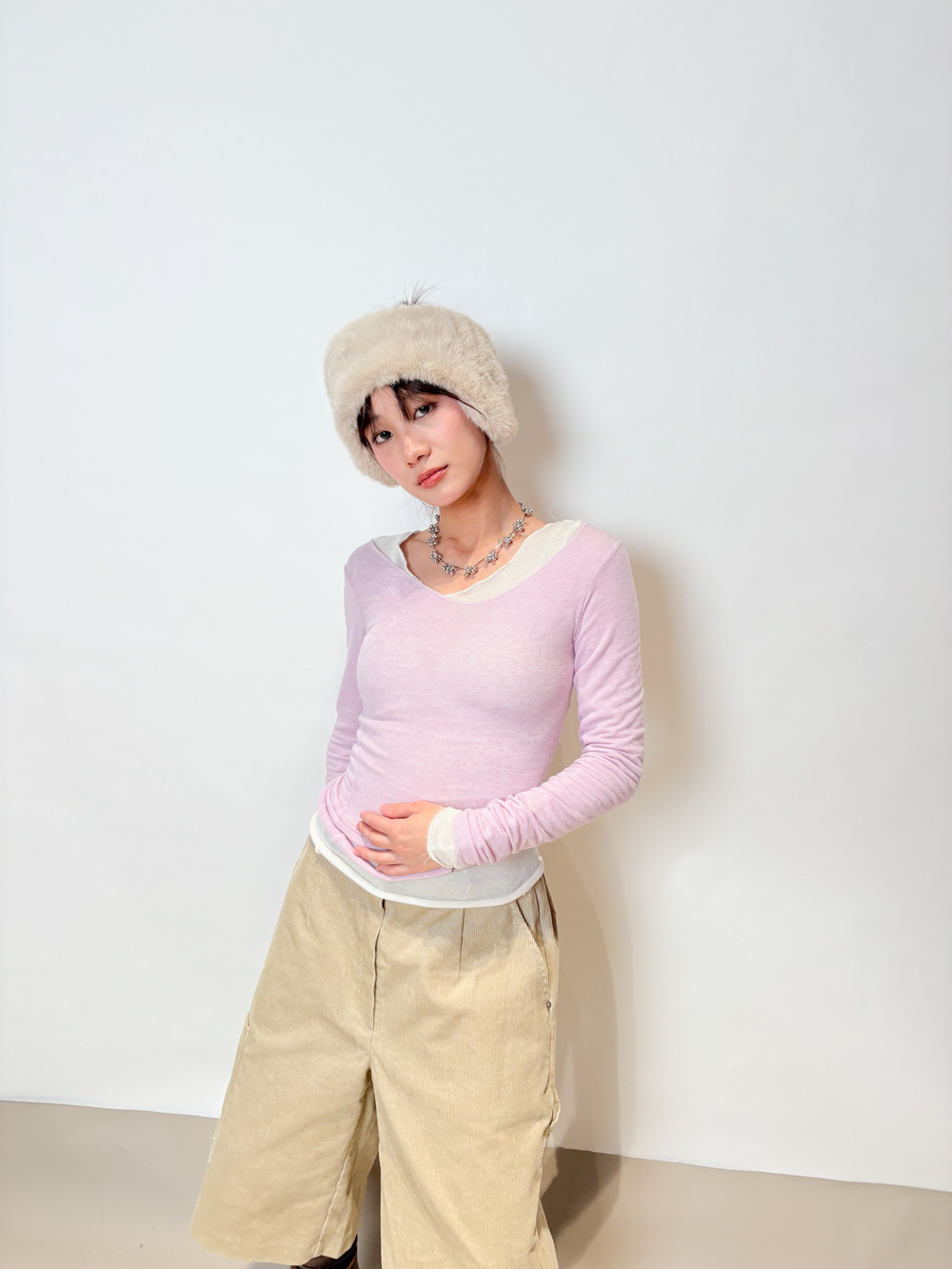 slim shape layers long top (WHITE/PINK/GREEN/BROWN) - wool 65%
