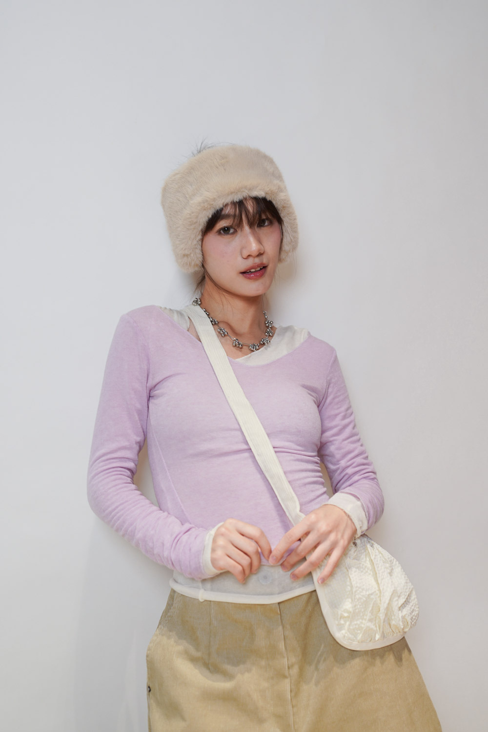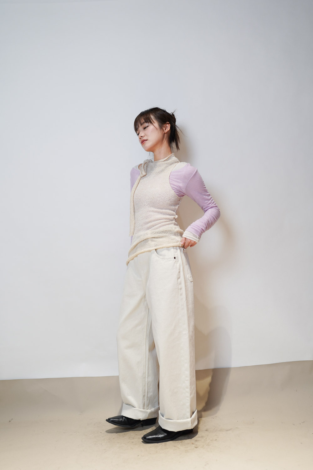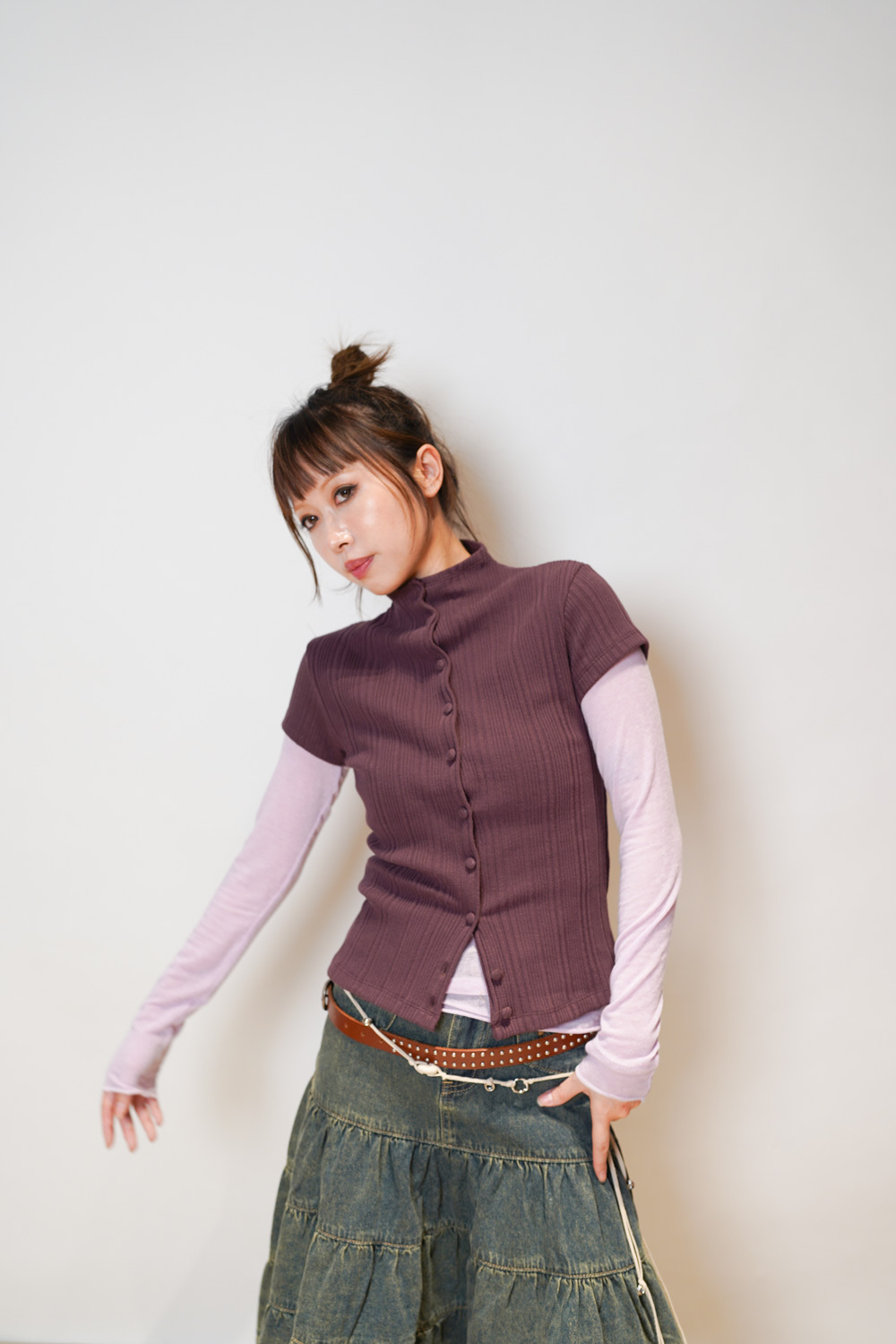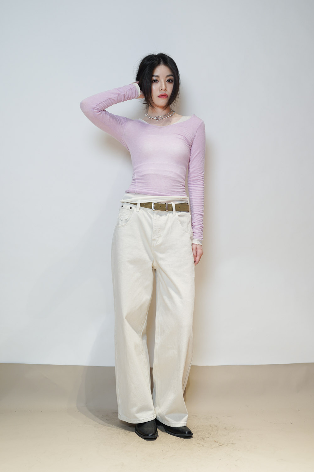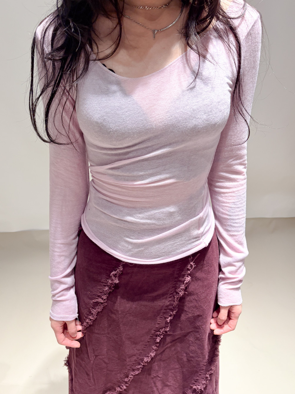 slim shape layers long top (WHITE/PINK/GREEN/BROWN) - wool 65%