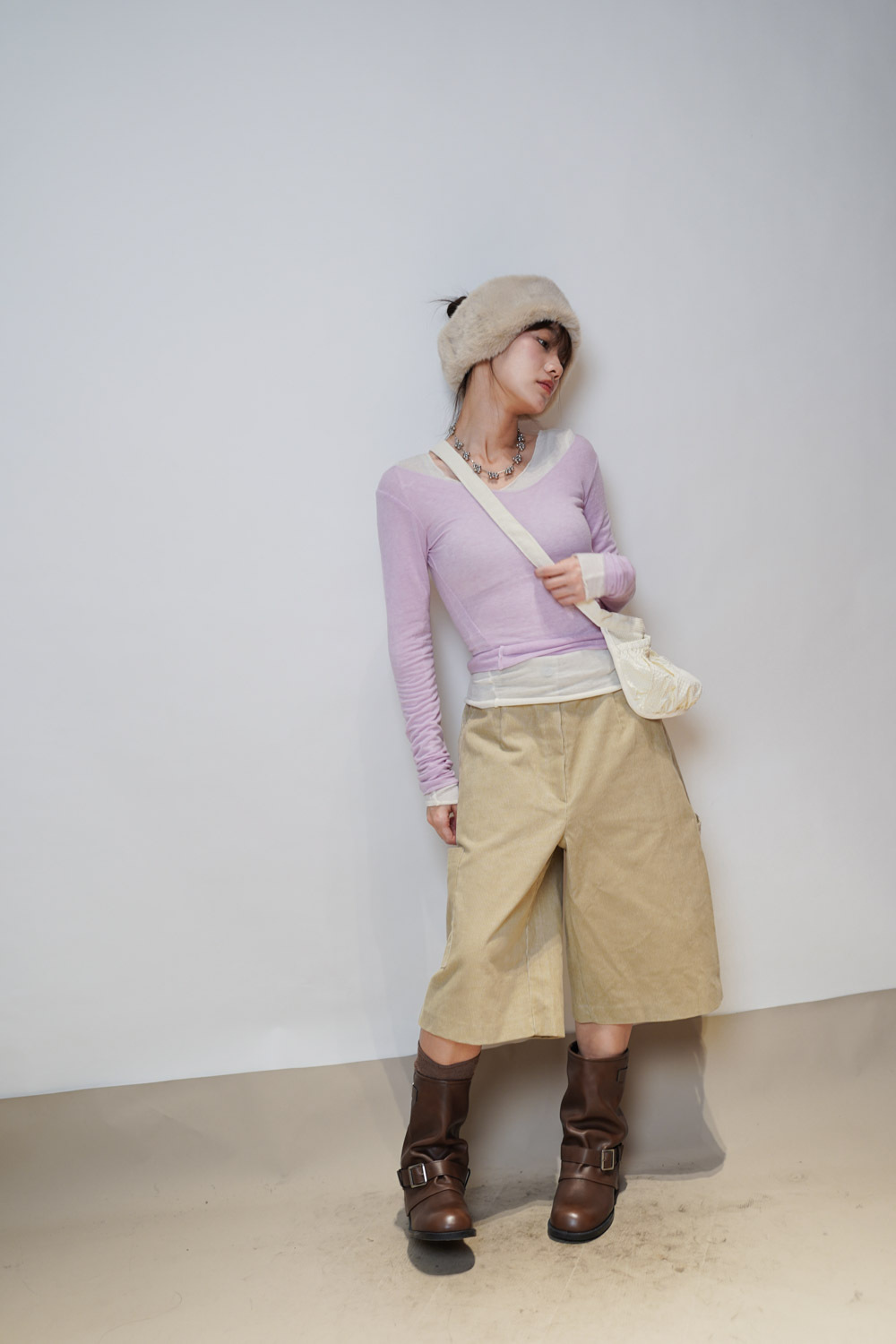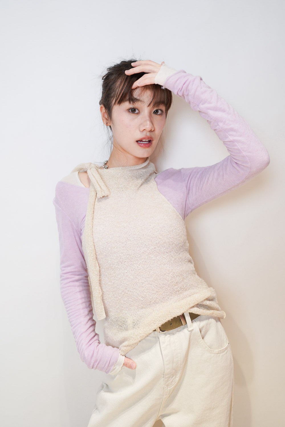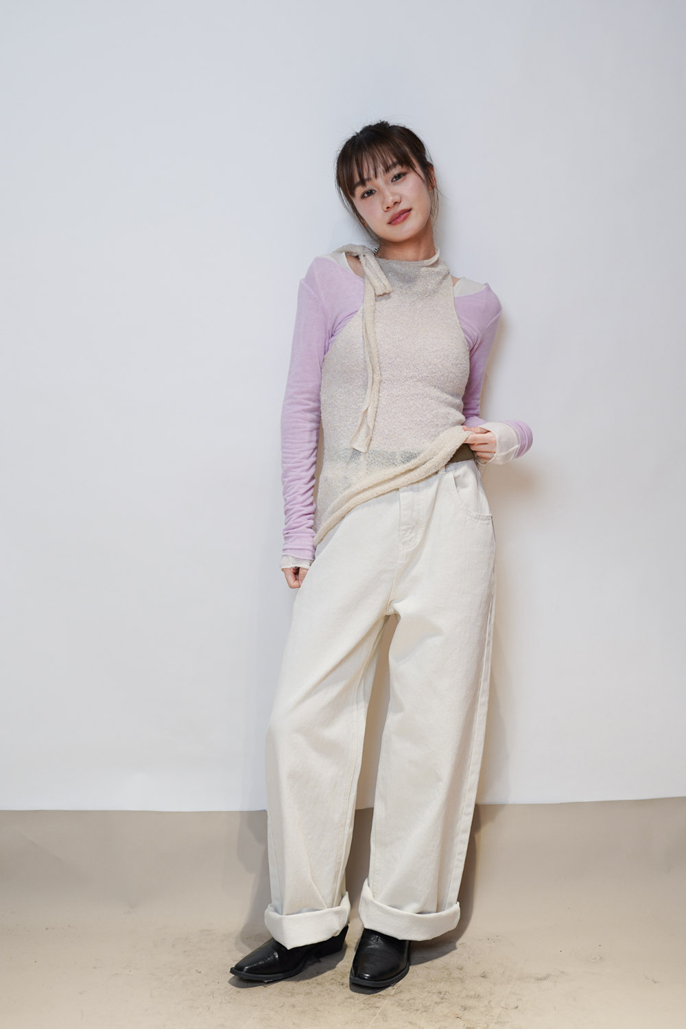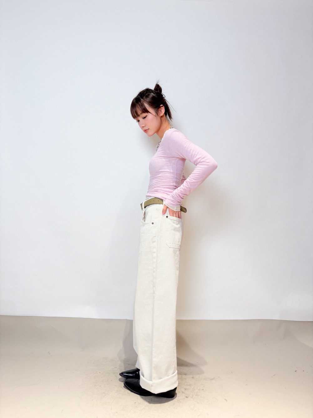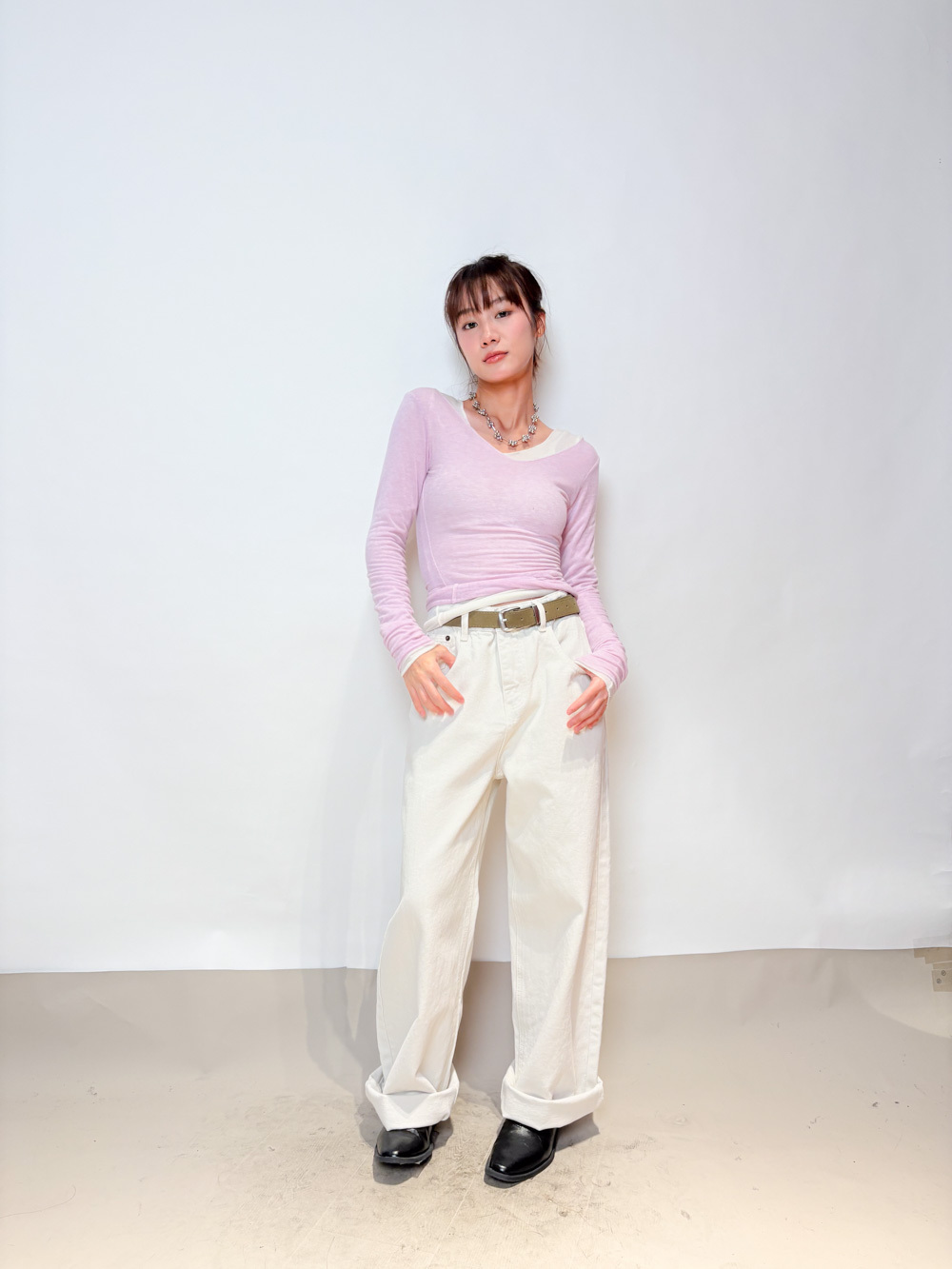 slim shape layers long top (WHITE/PINK/GREEN/BROWN) - wool 65%