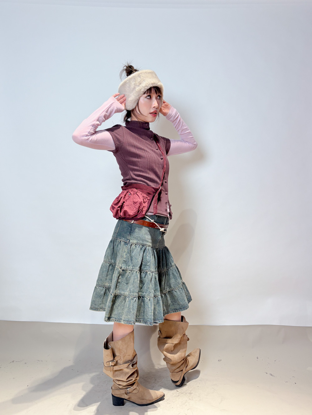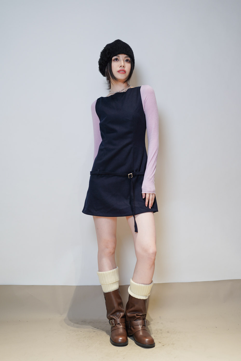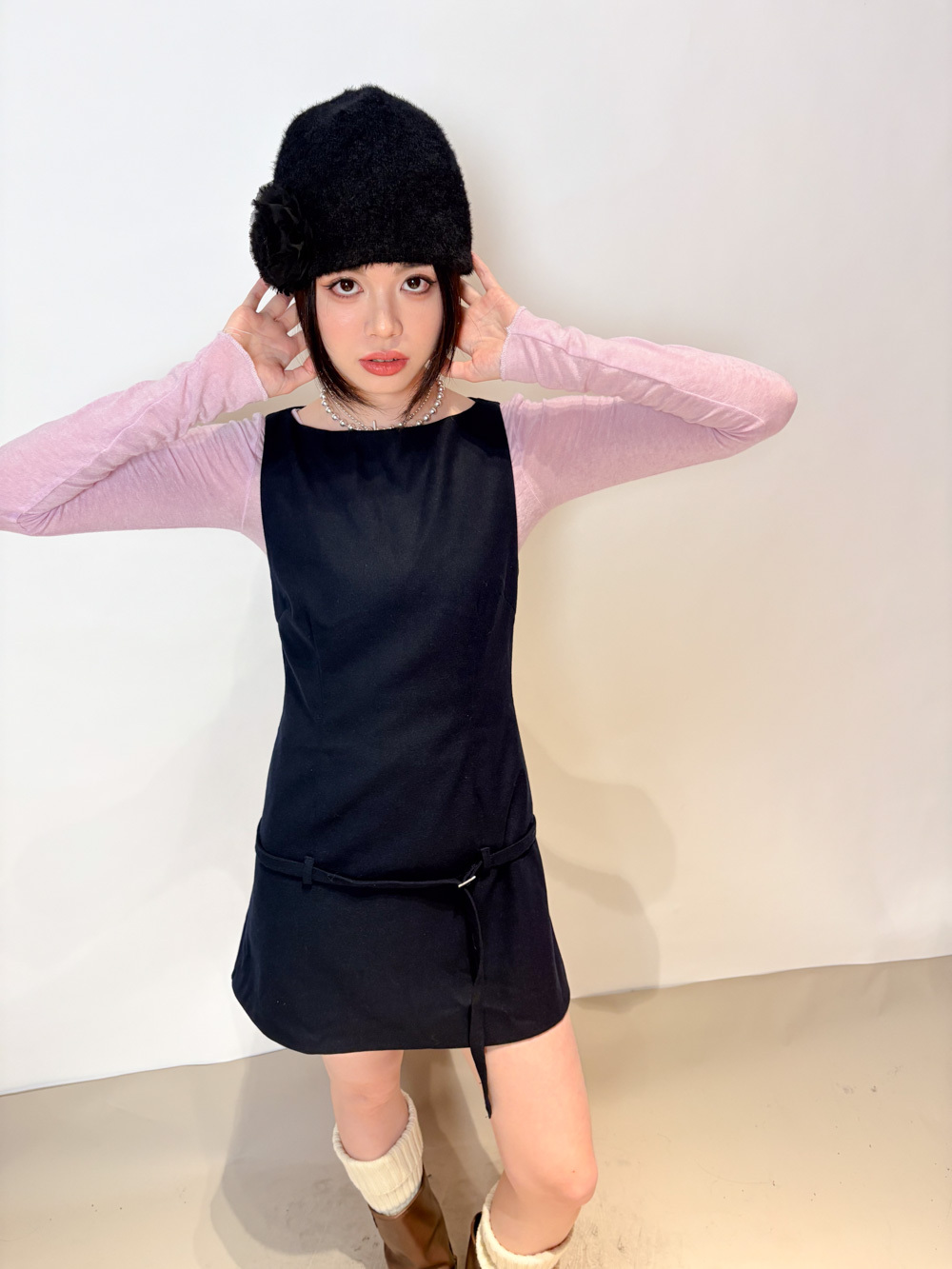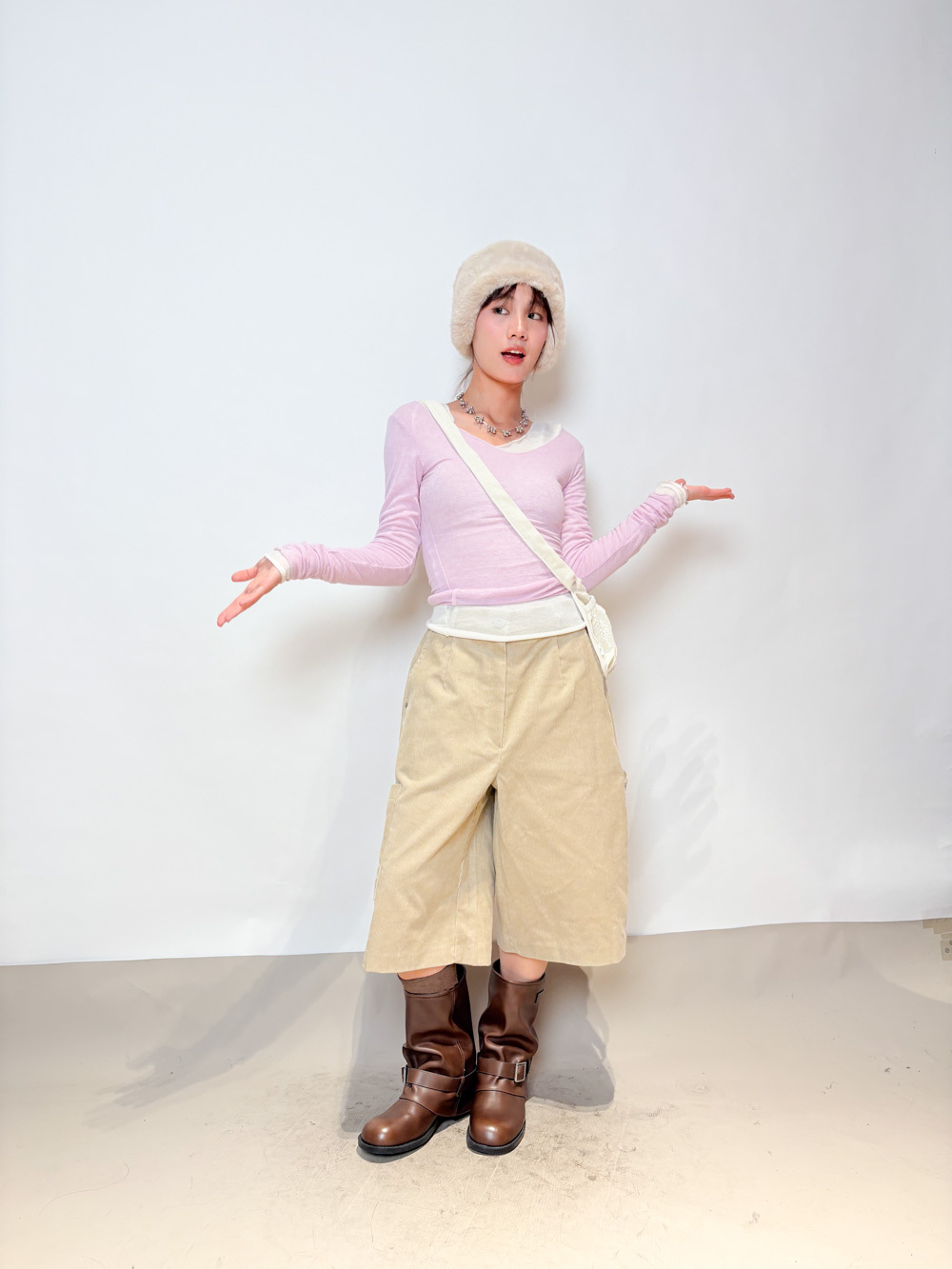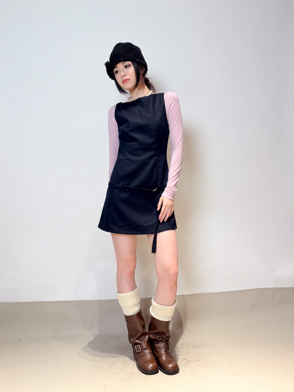 slim shape layers long top (WHITE/PINK/GREEN/BROWN) - wool 65%
