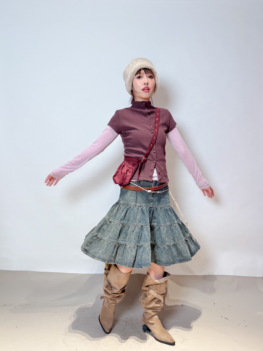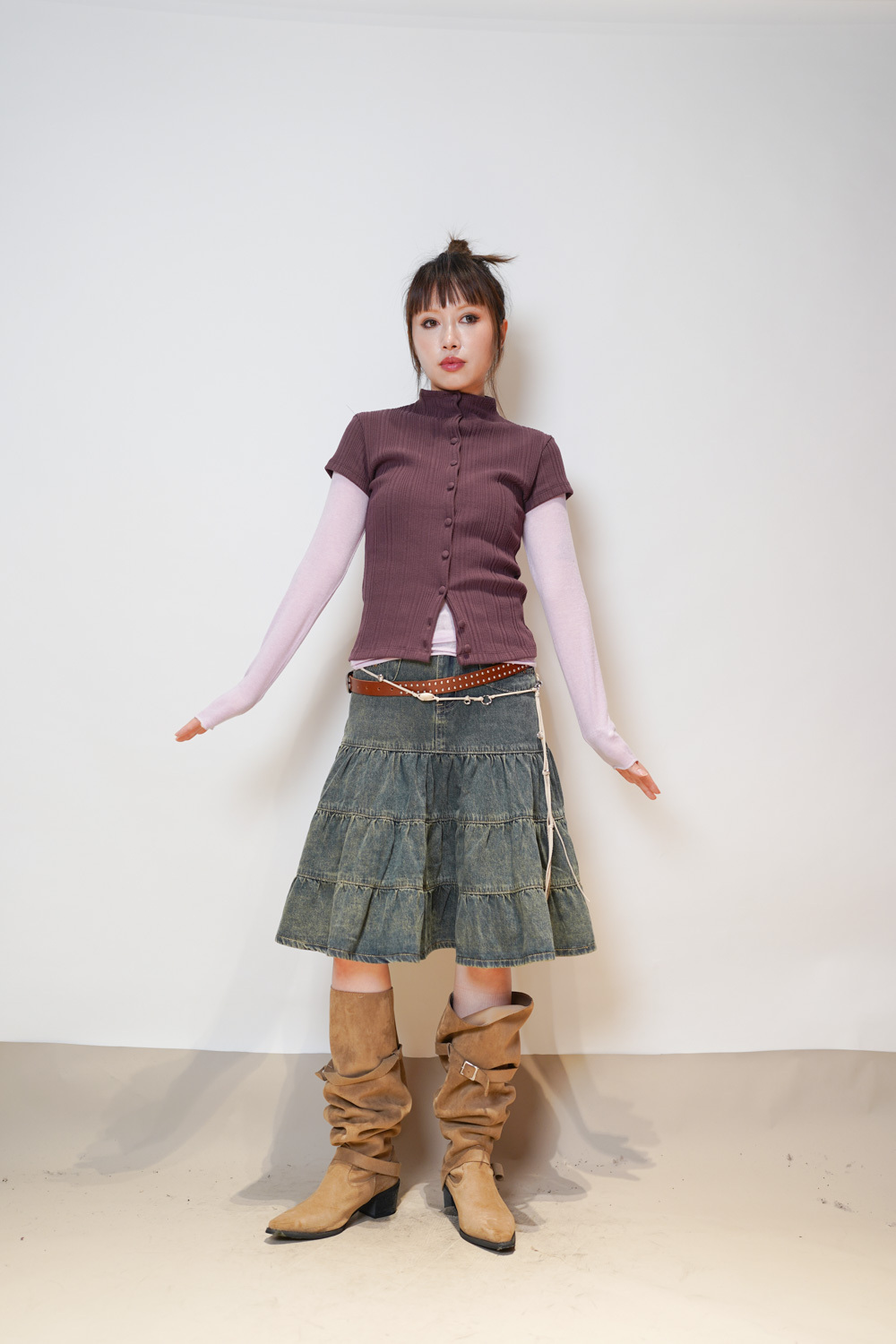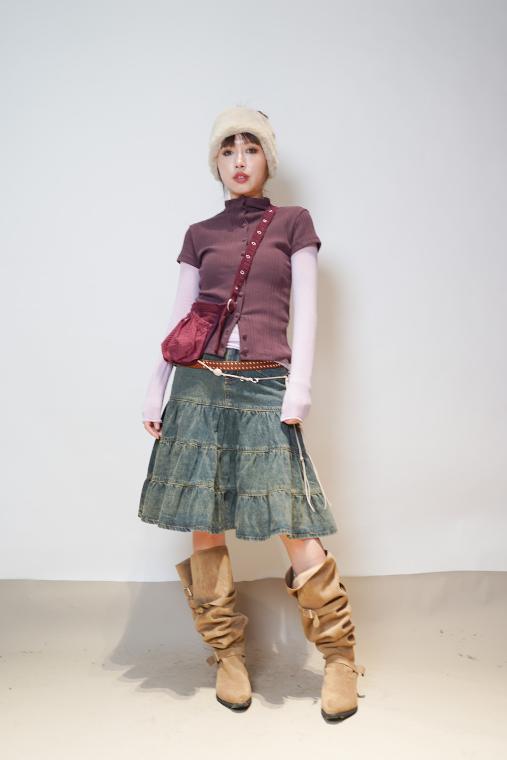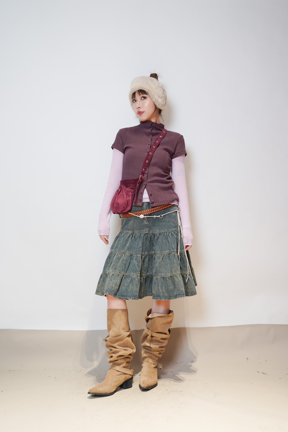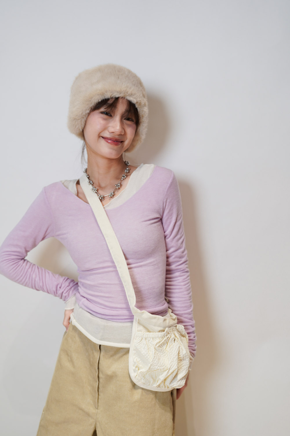 slim shape layers long top (WHITE/PINK/GREEN/BROWN) - wool 65%