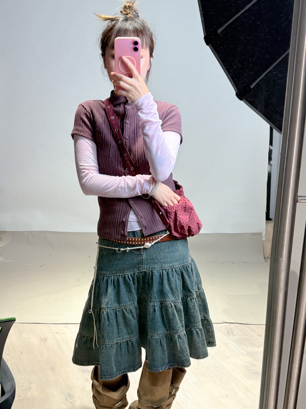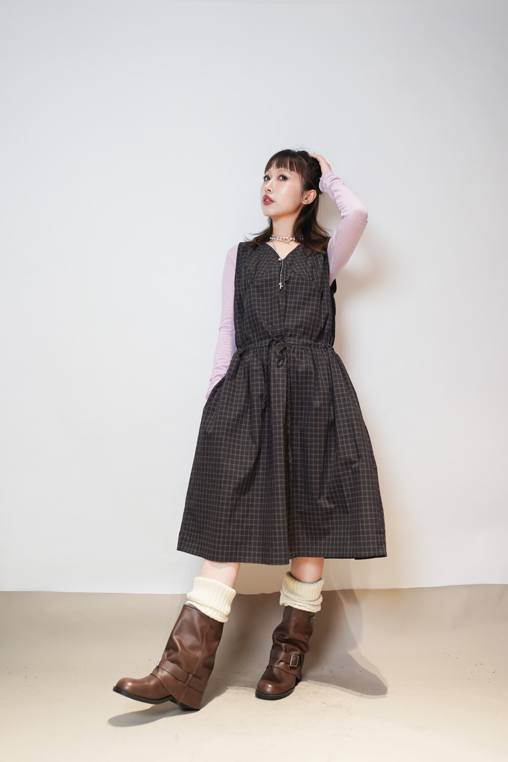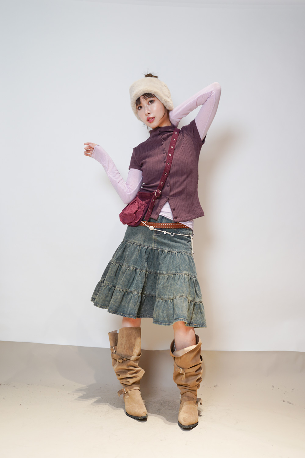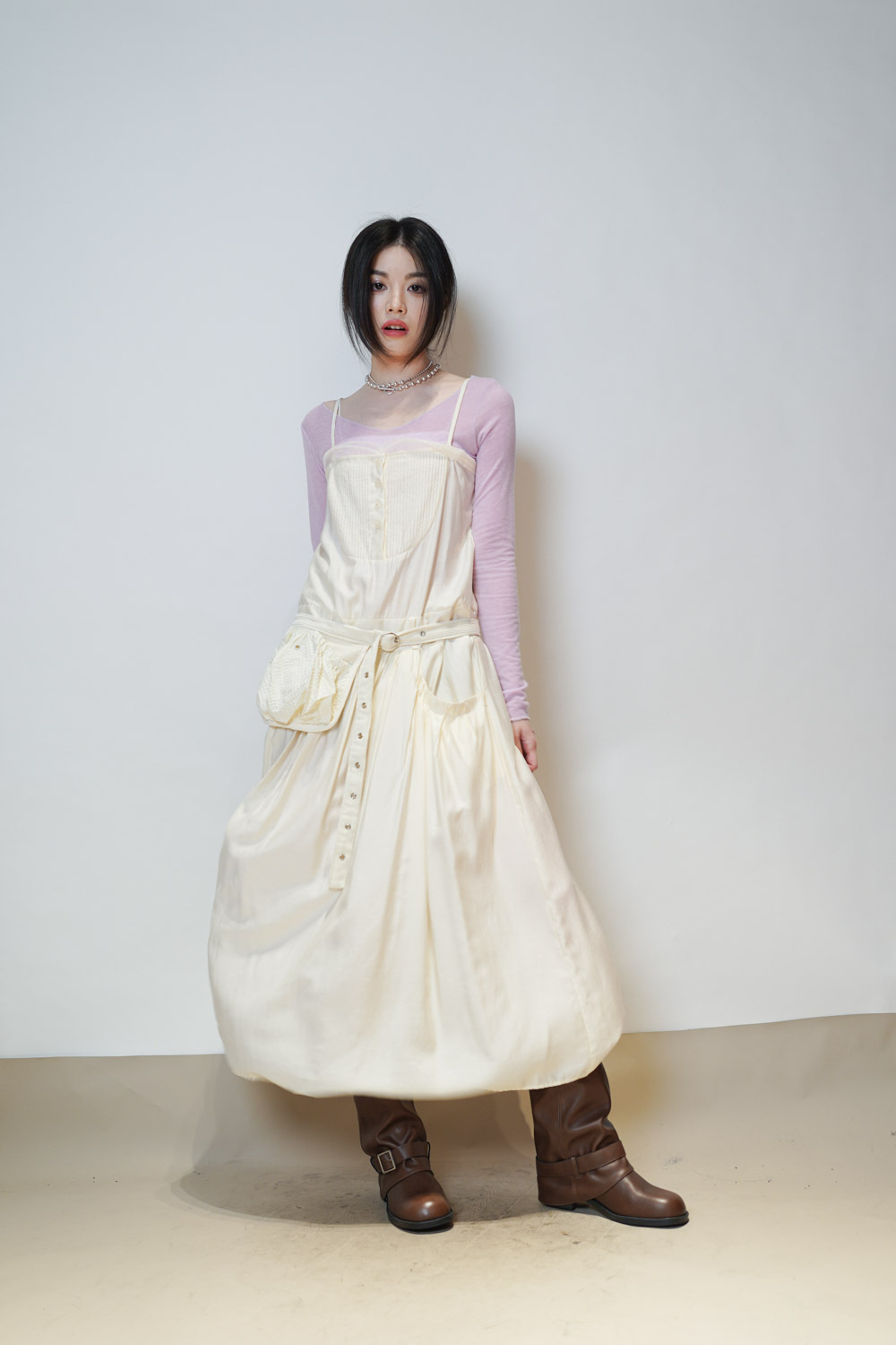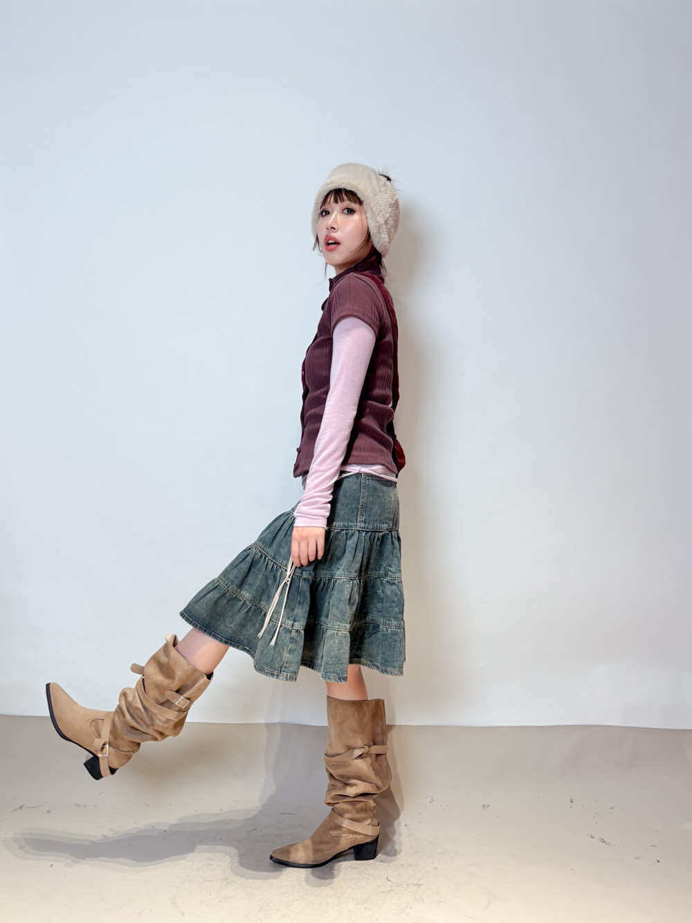 slim shape layers long top (WHITE/PINK/GREEN/BROWN) - wool 65%