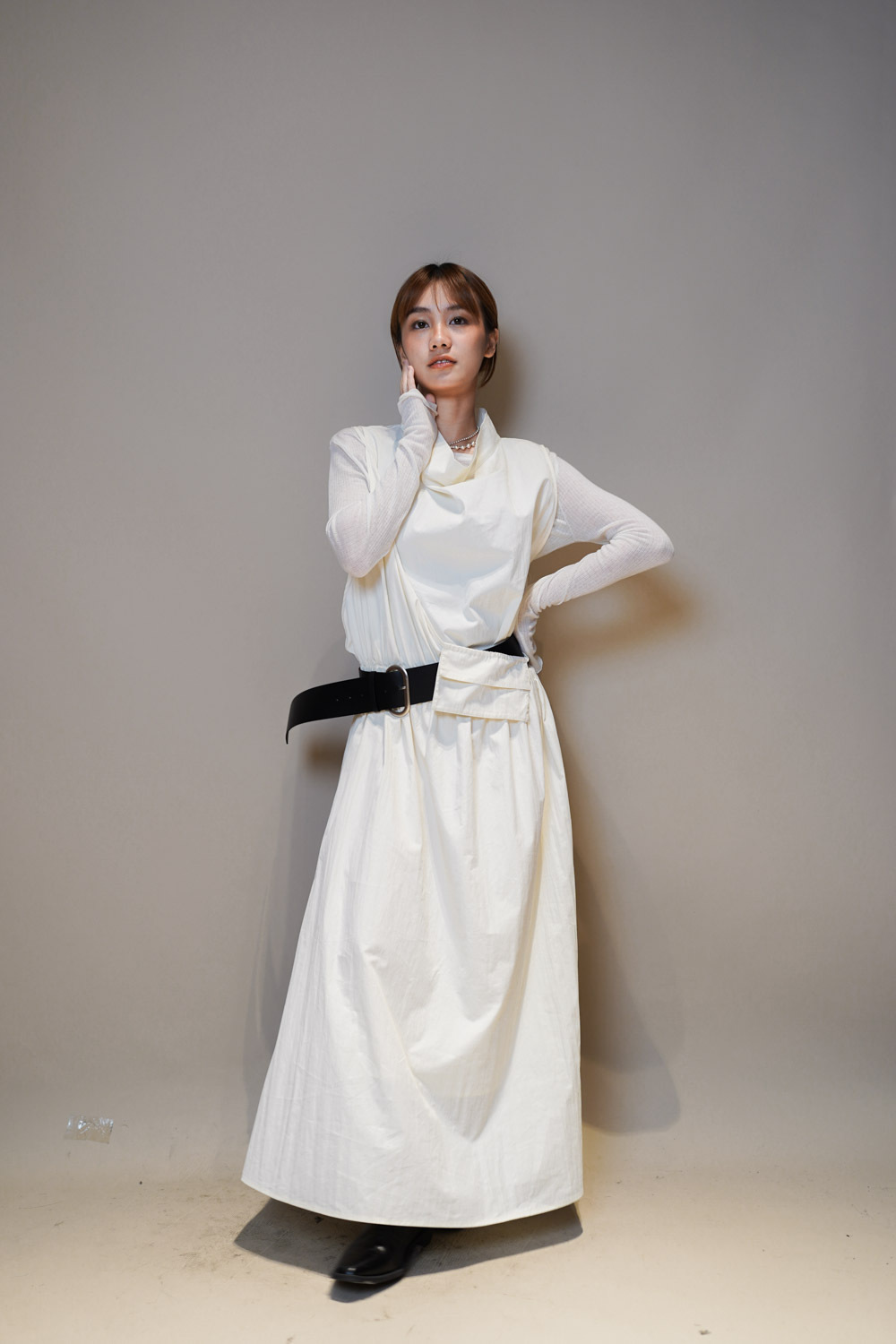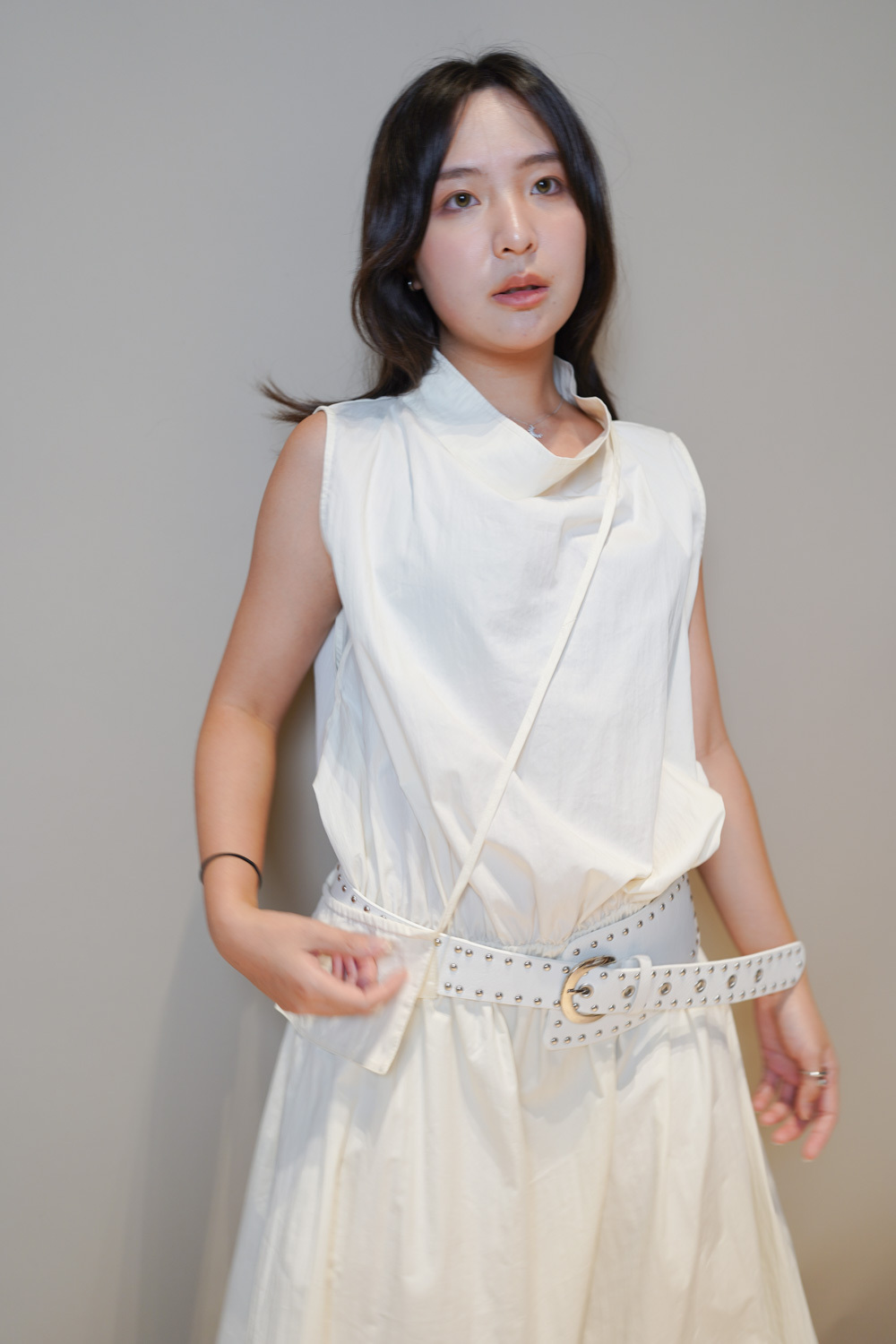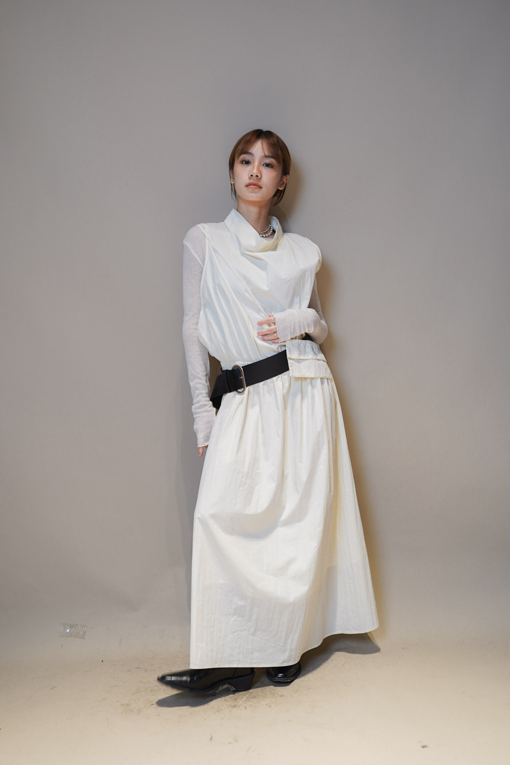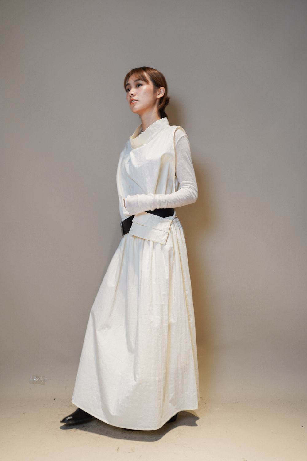 Love~ stand collar sleeveless dress with little bag (IVORY/GREY)