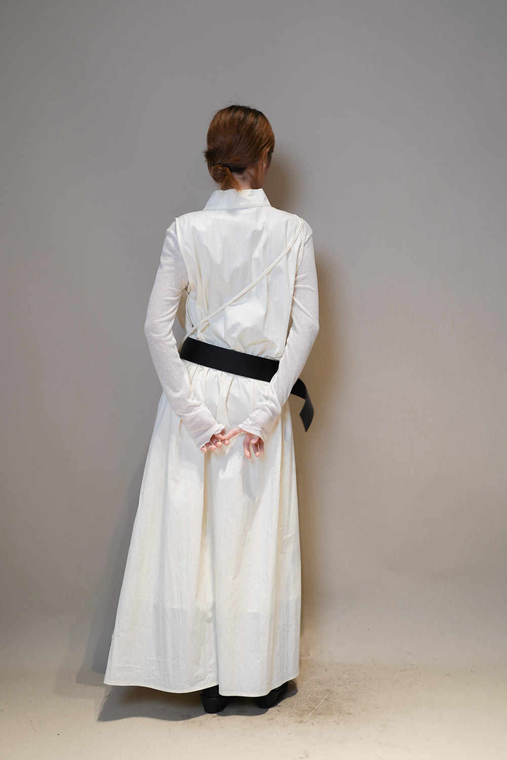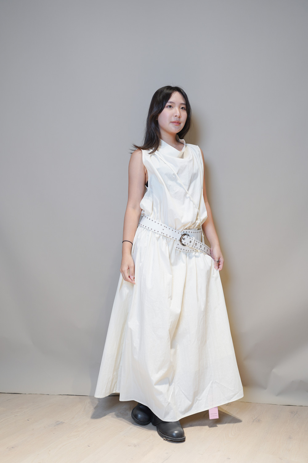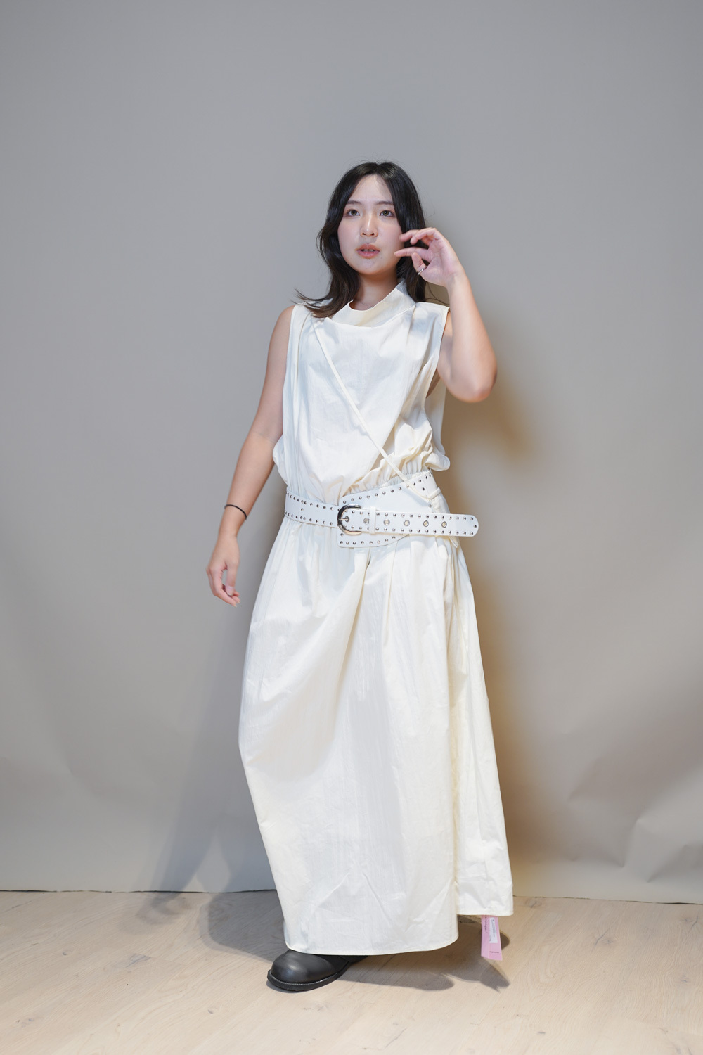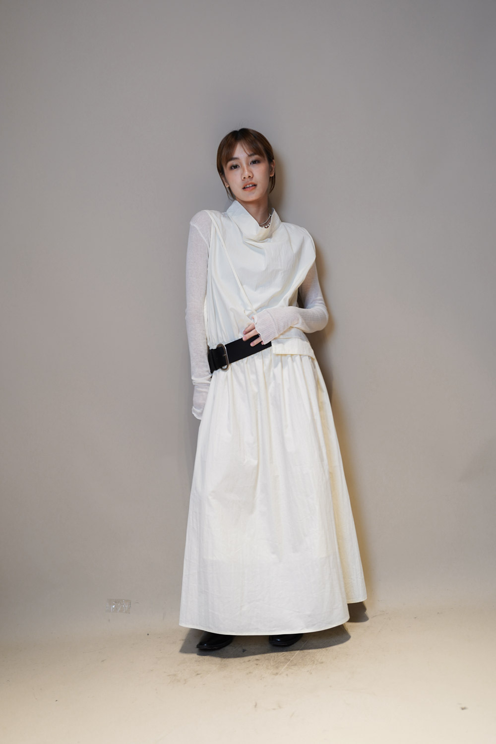 Love~ stand collar sleeveless dress with little bag (IVORY/GREY)