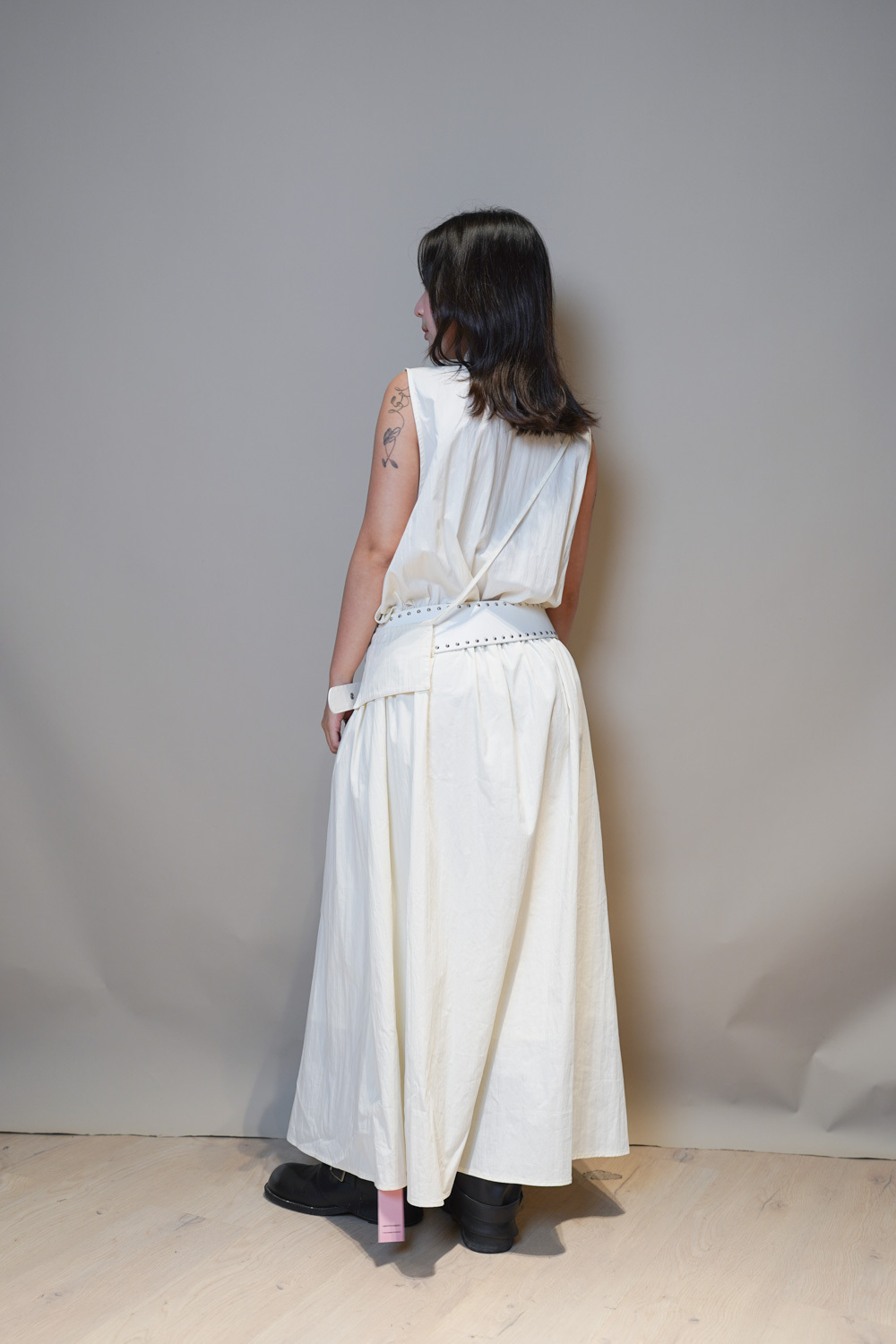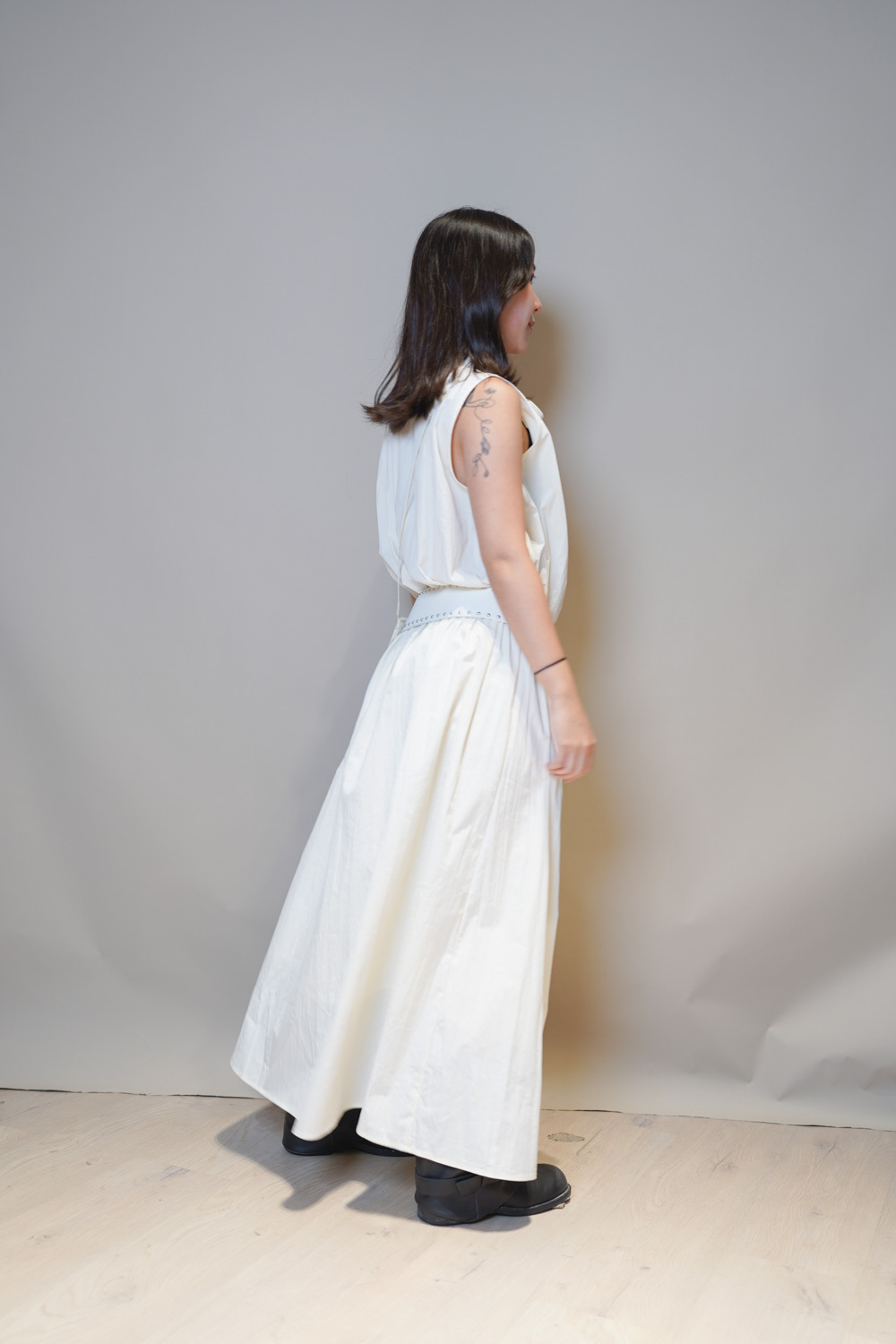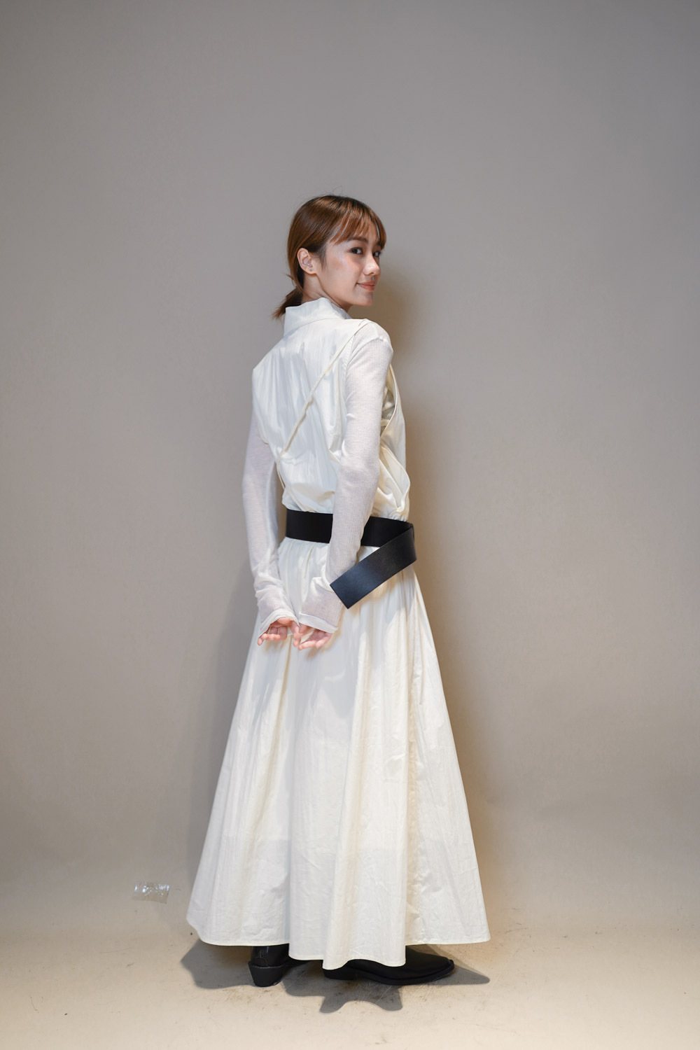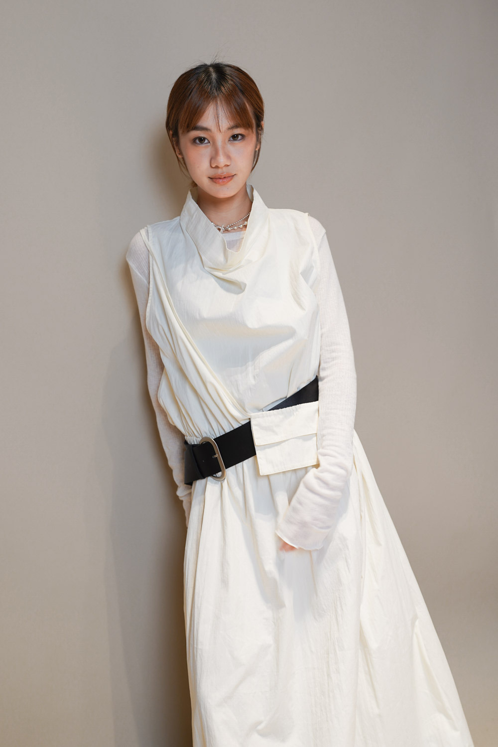 Love~ stand collar sleeveless dress with little bag (IVORY/GREY)