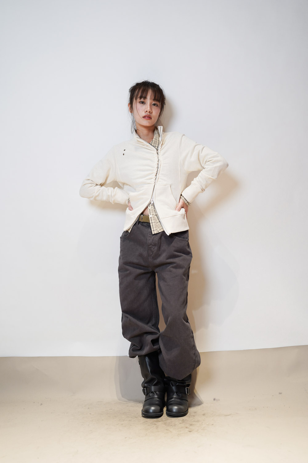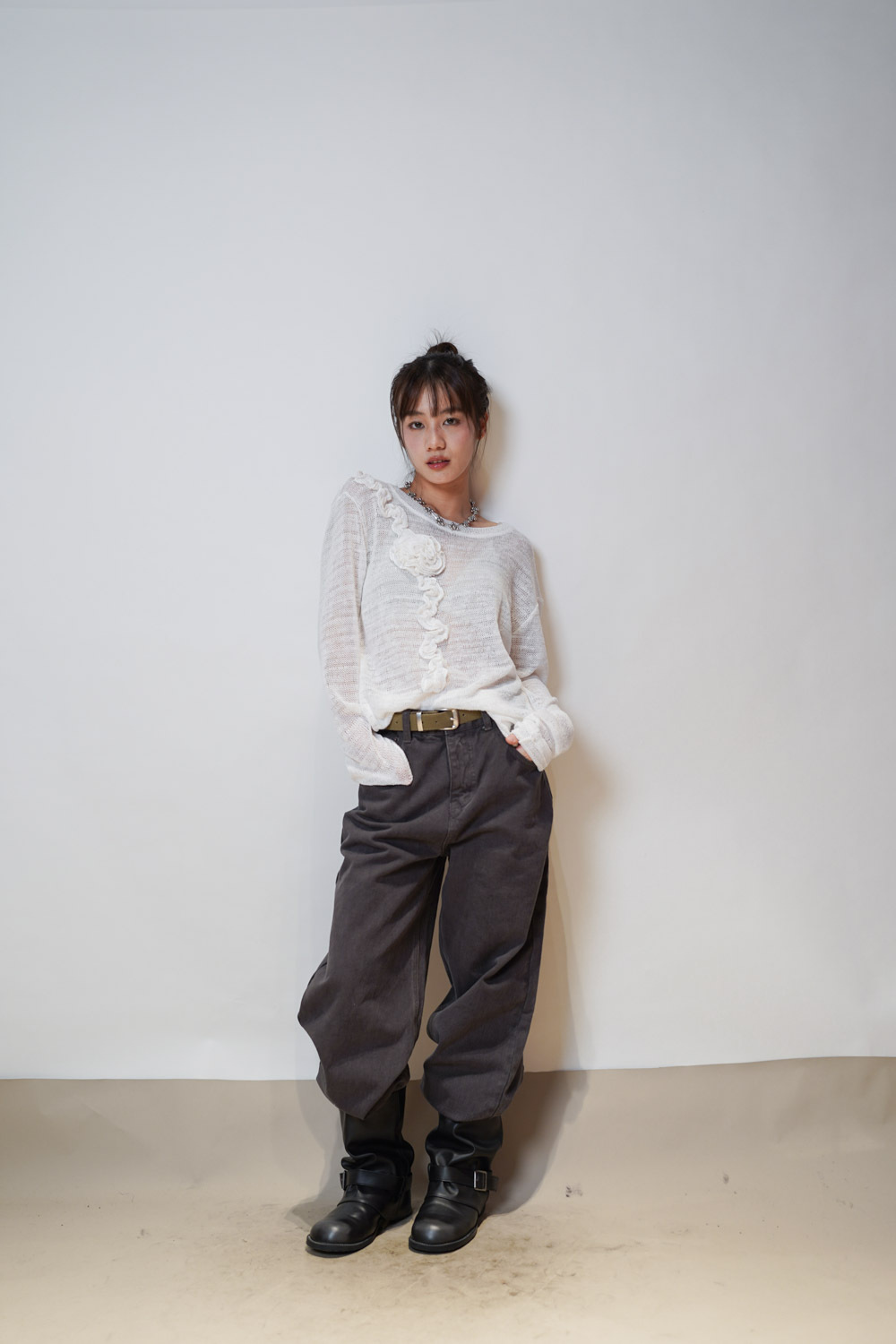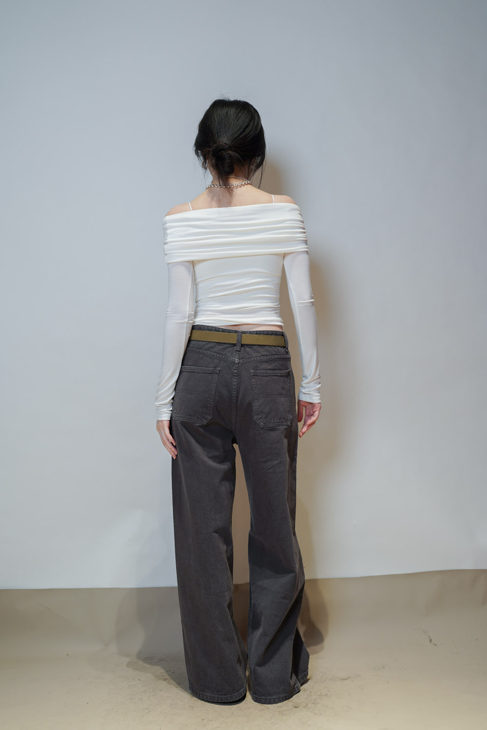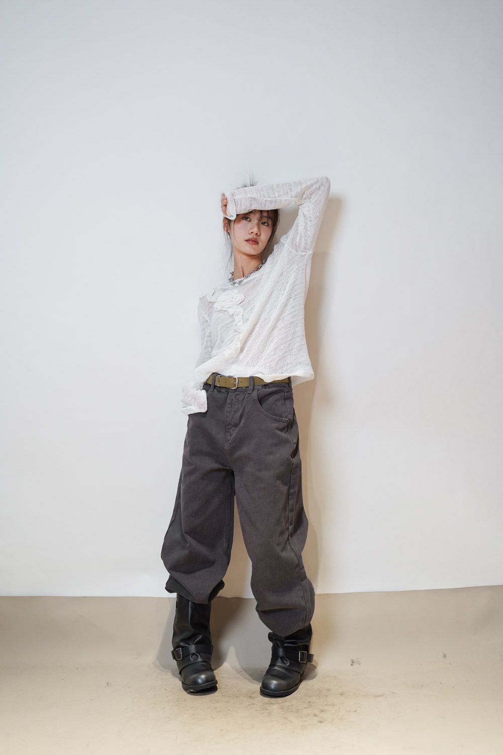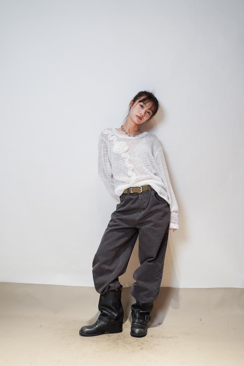 Love~ straight leg David jeans with belt (WHITE/GREY) - S/M