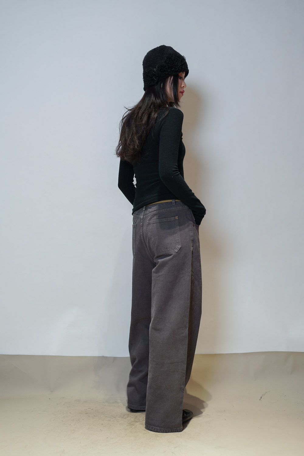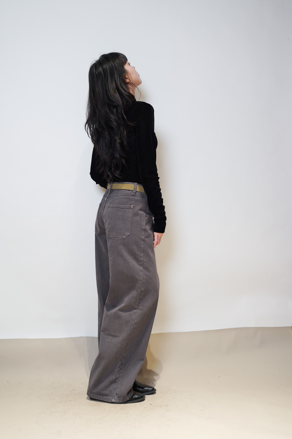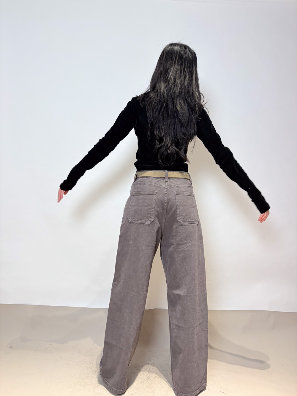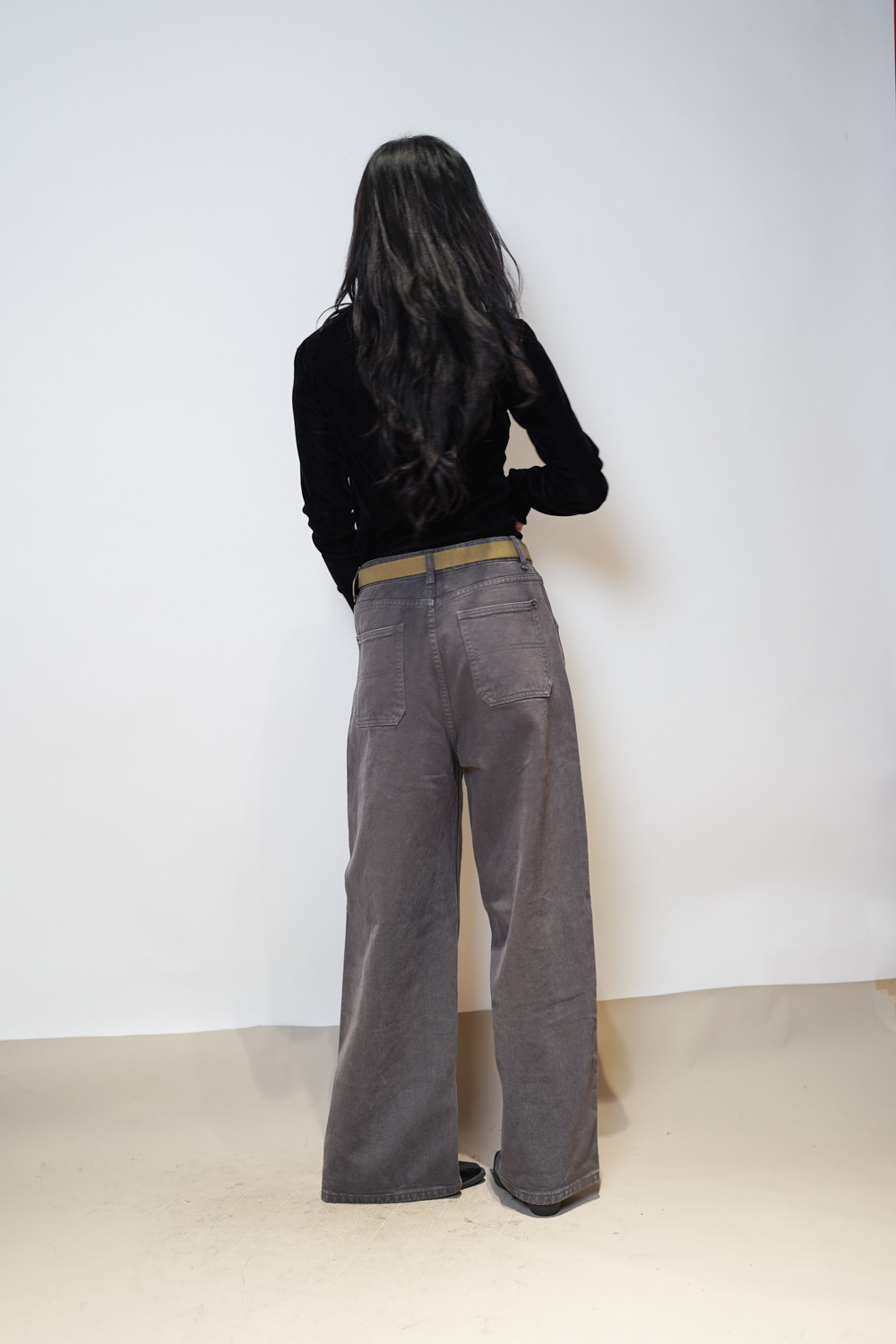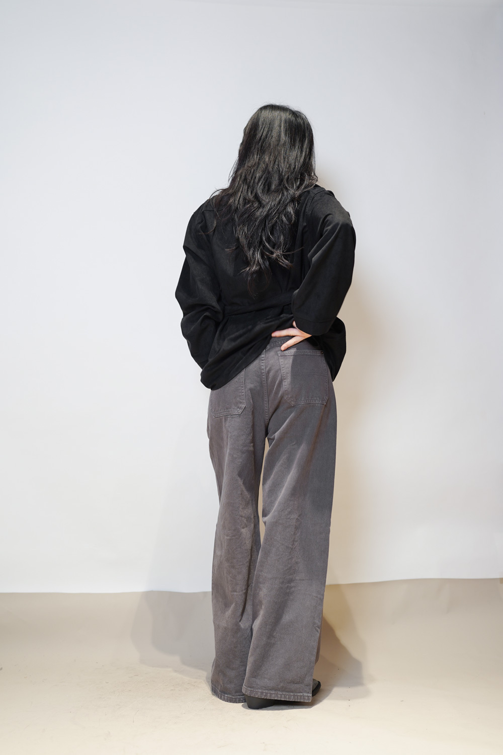 M: Waist: 78cm (30.5”) / Hip: 104cm (40.5”) / Rise:32 cm / Length: 101cm / Thigh: 63cm / Hem: 54cm
