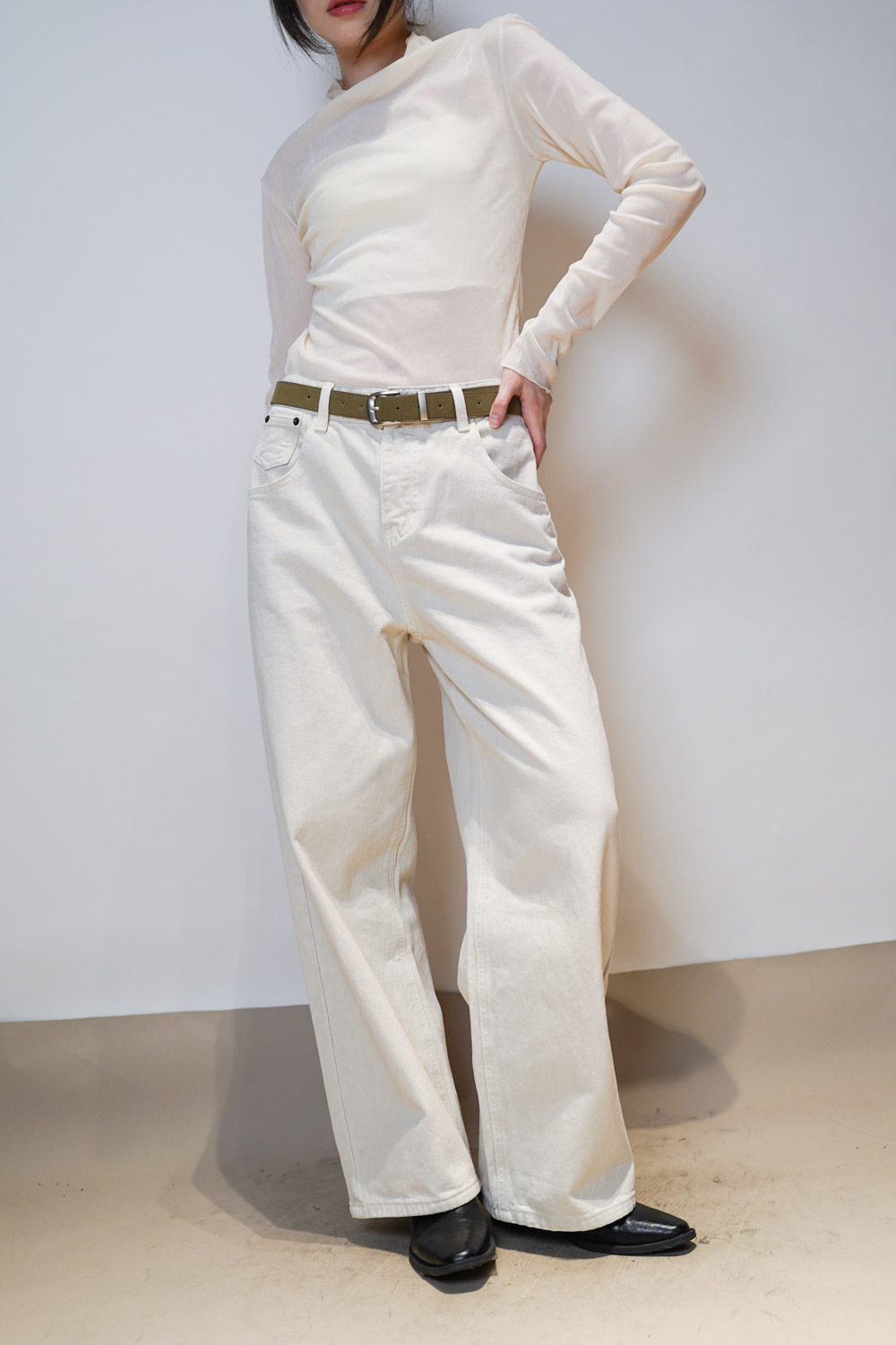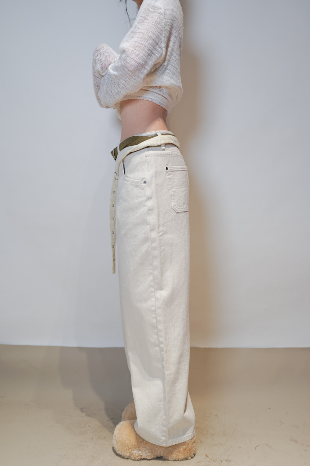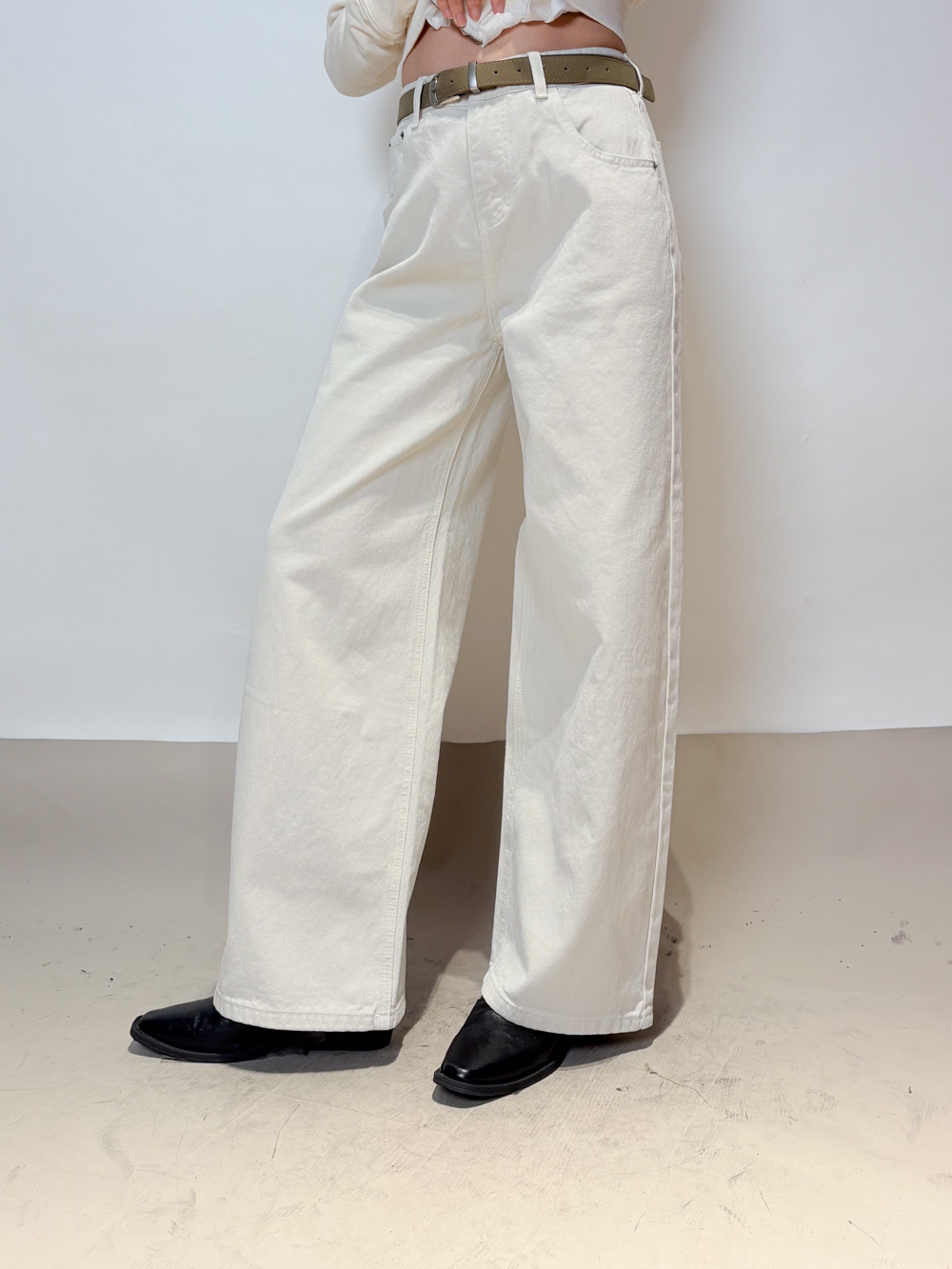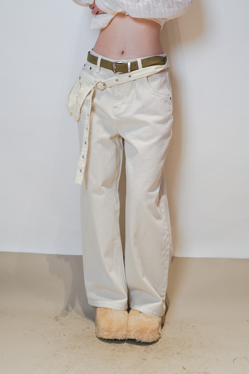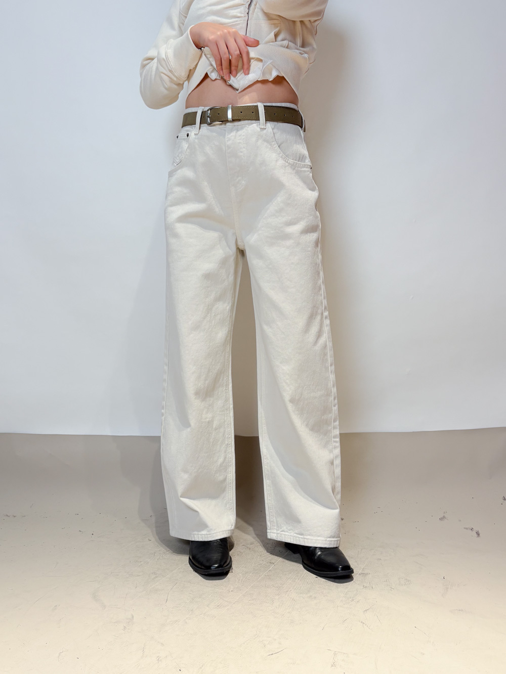 Love~ straight leg David jeans with belt (WHITE/GREY) - S/M
