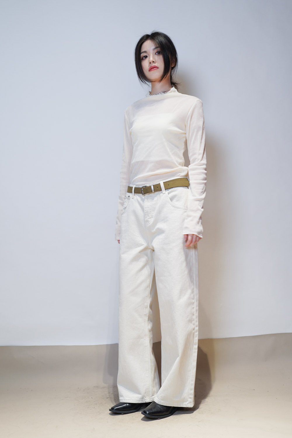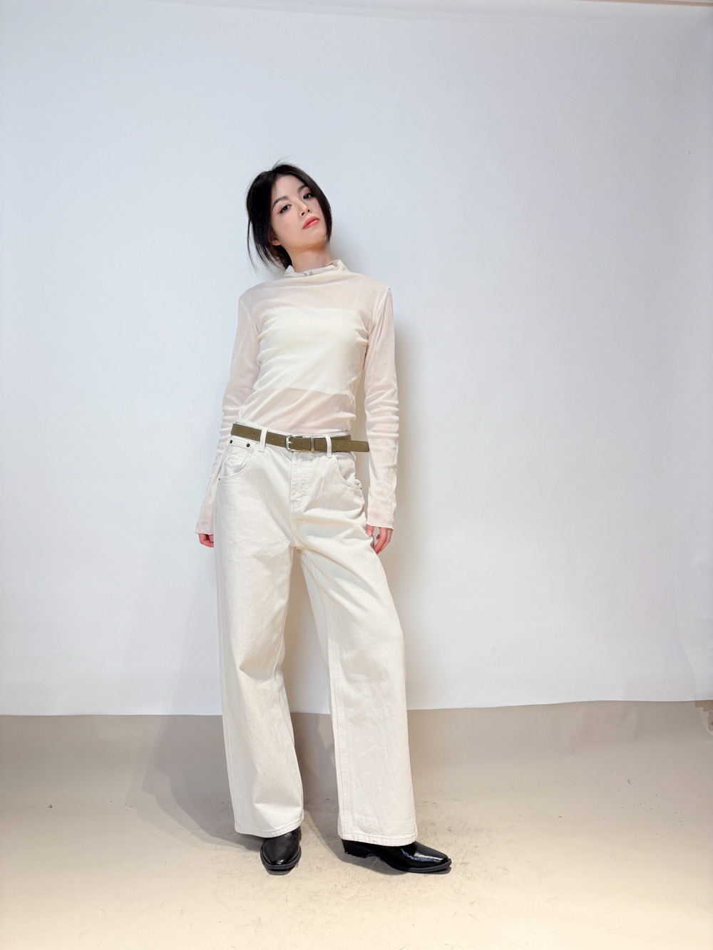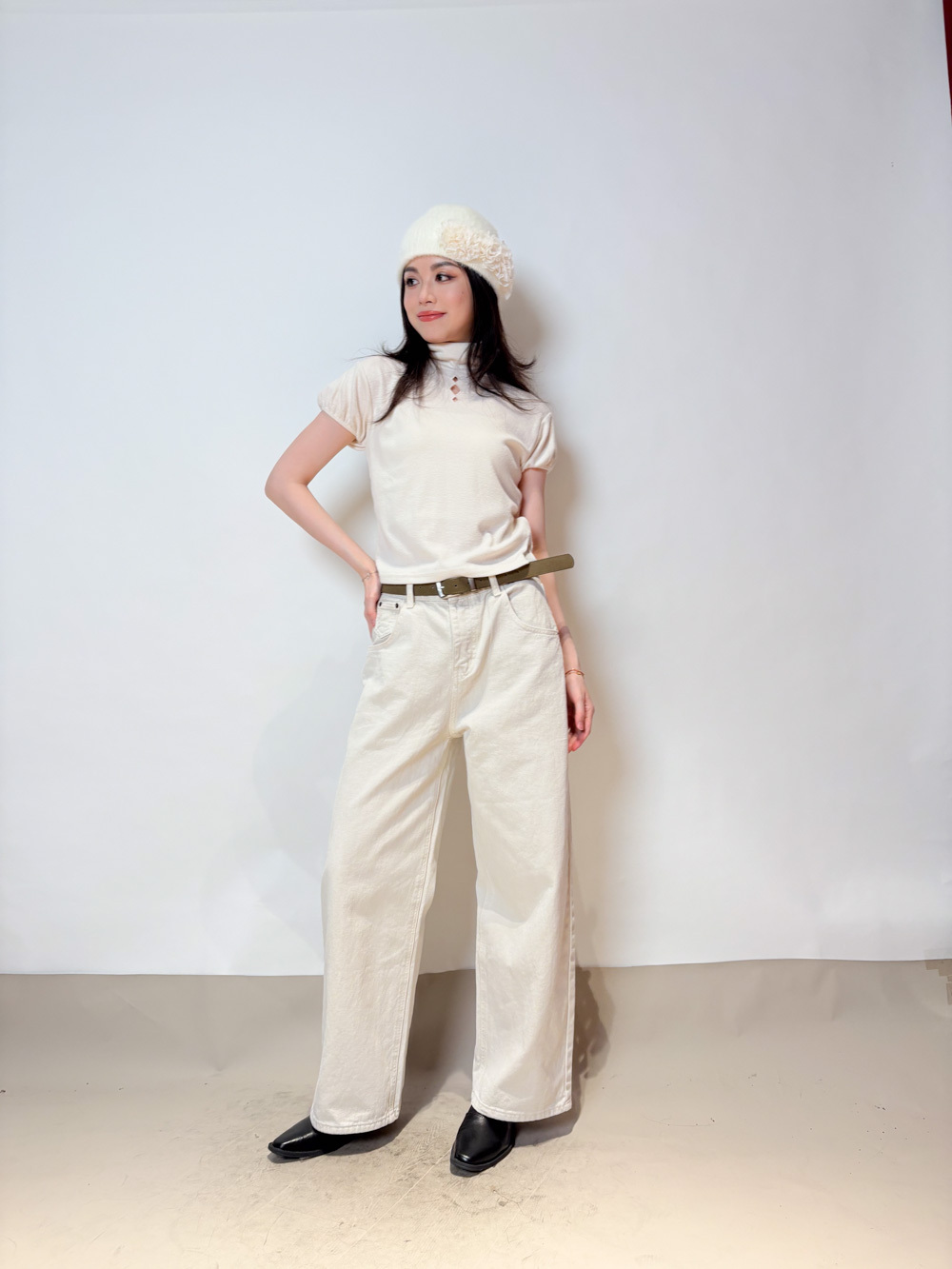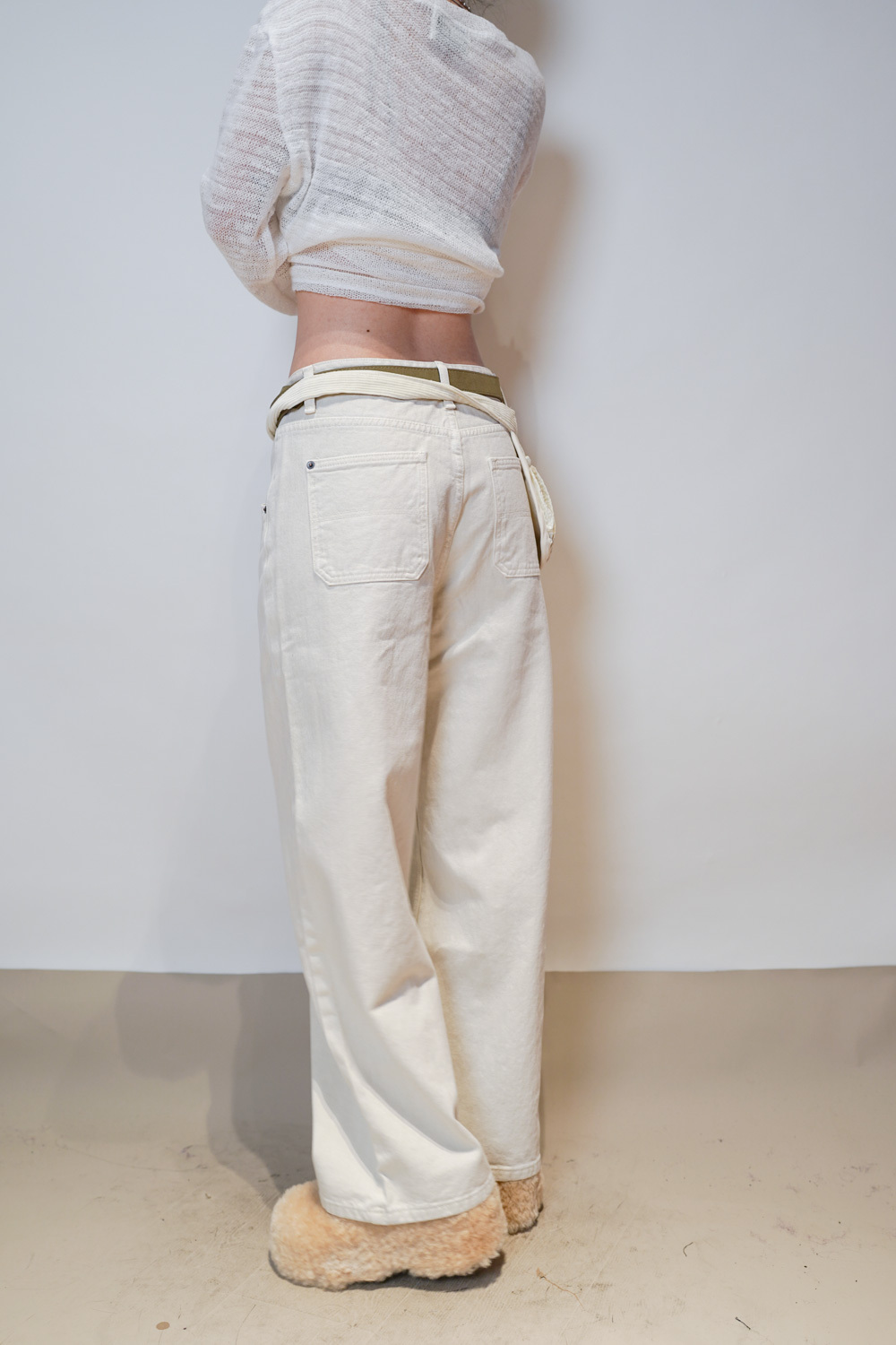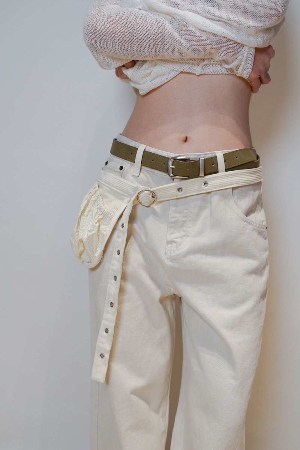 Love~ straight leg David jeans with belt (WHITE/GREY) - S/M