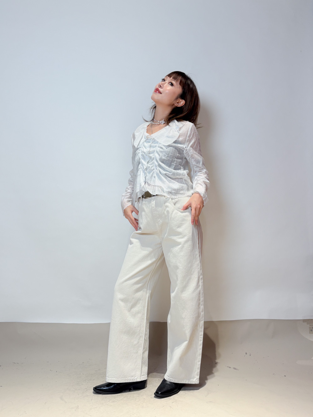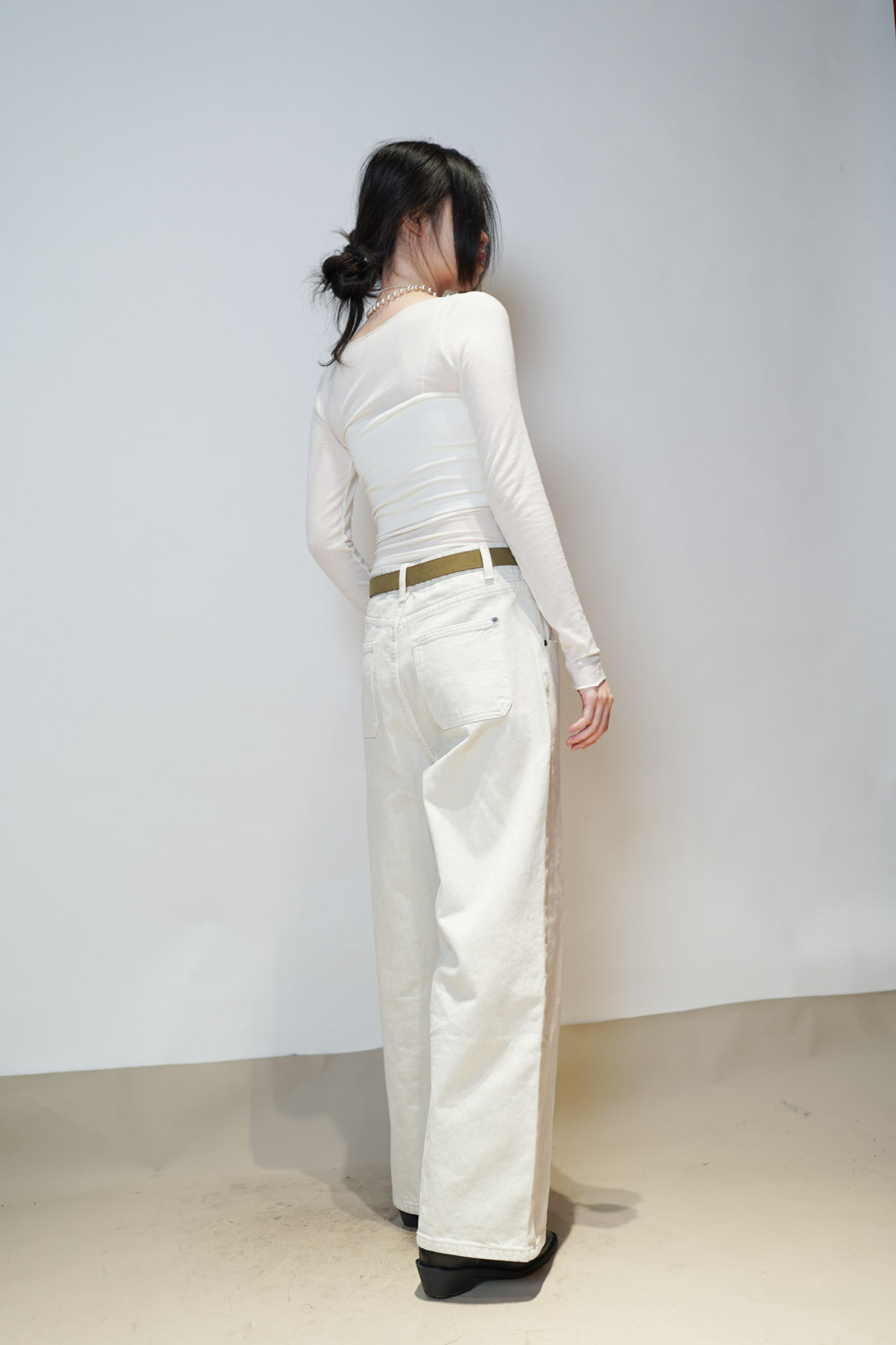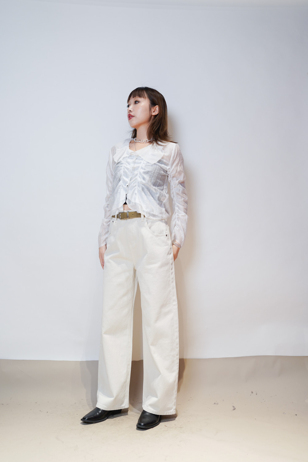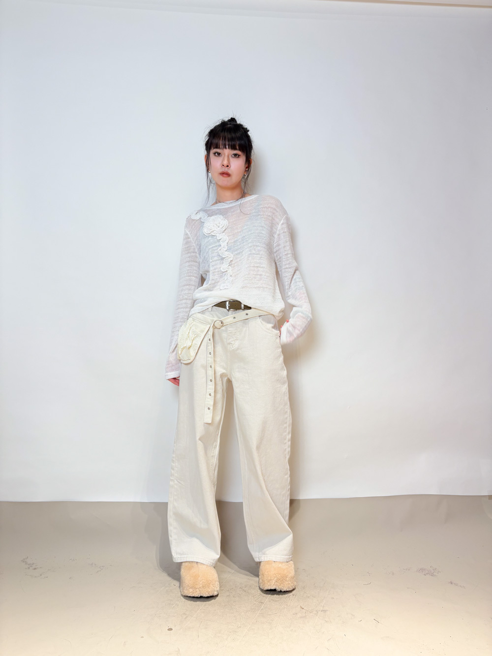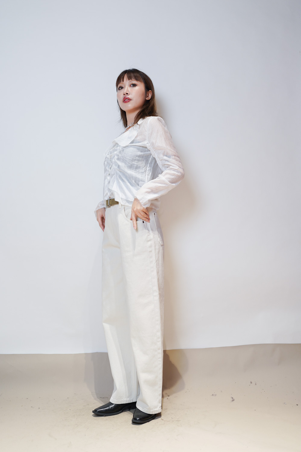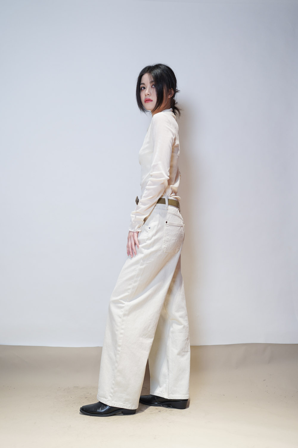 Love~ straight leg David jeans with belt (WHITE/GREY) - S/M