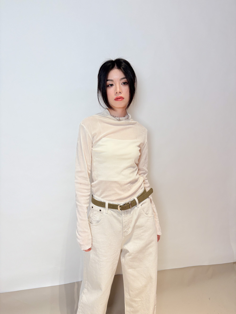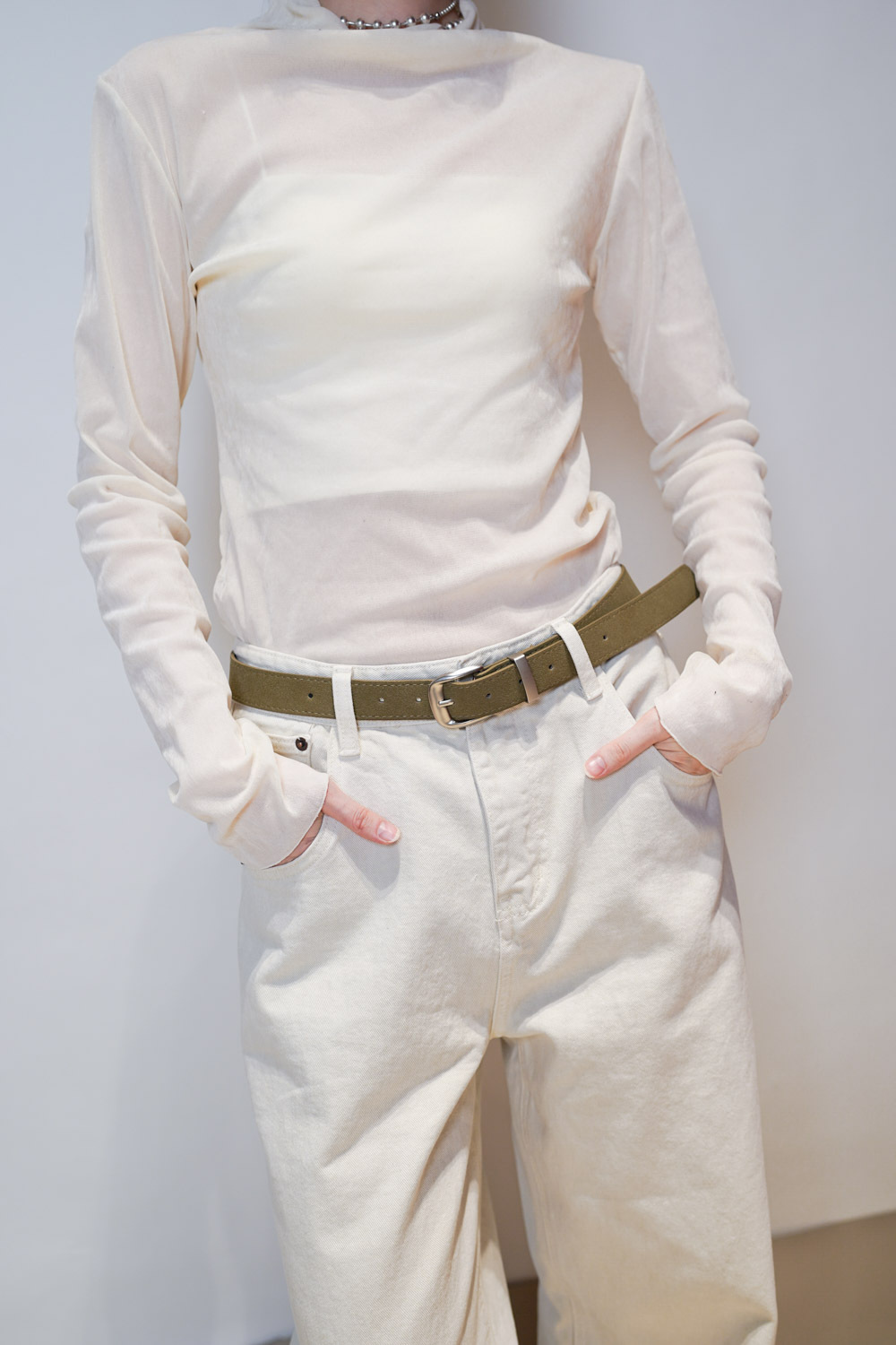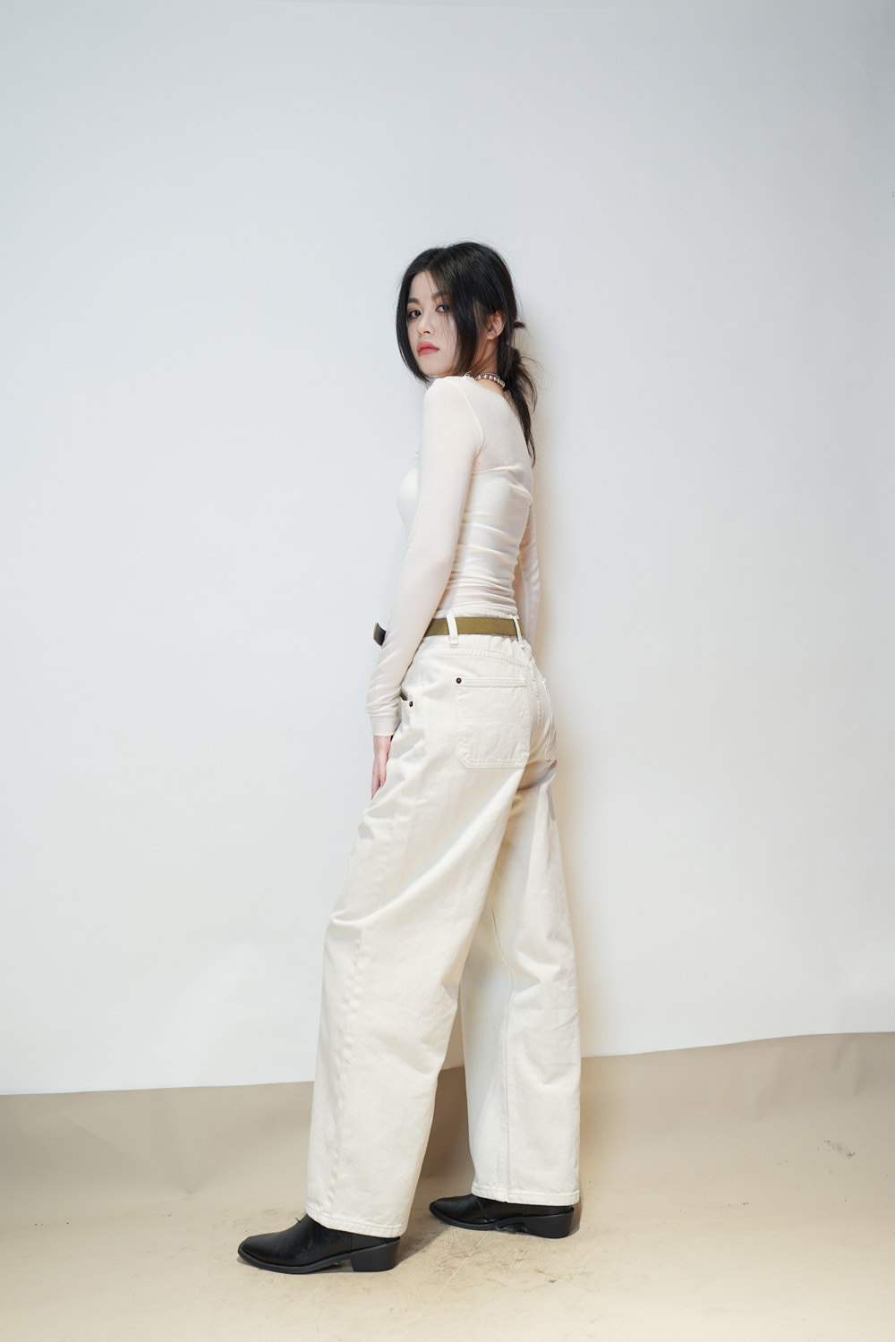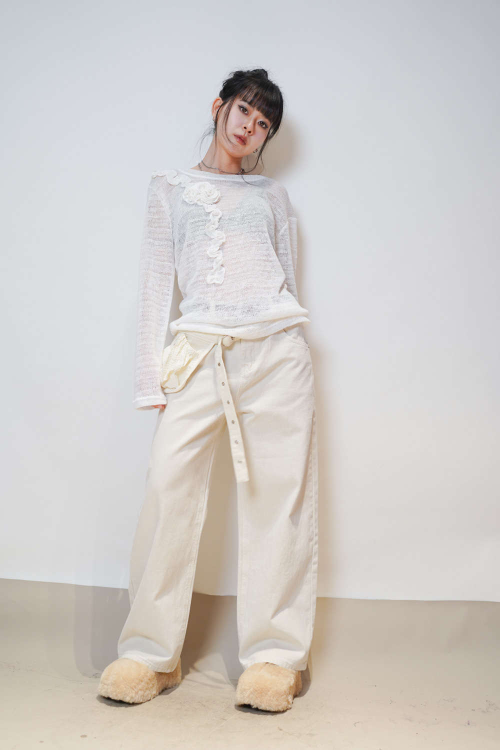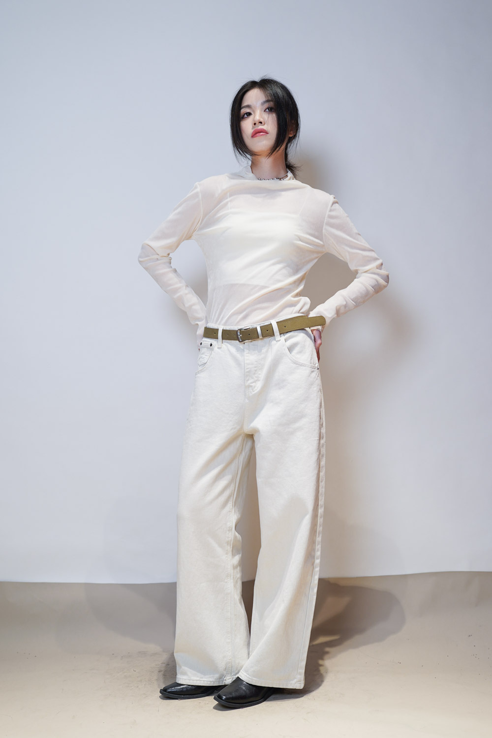 Love~ straight leg David jeans with belt (WHITE/GREY) - S/M