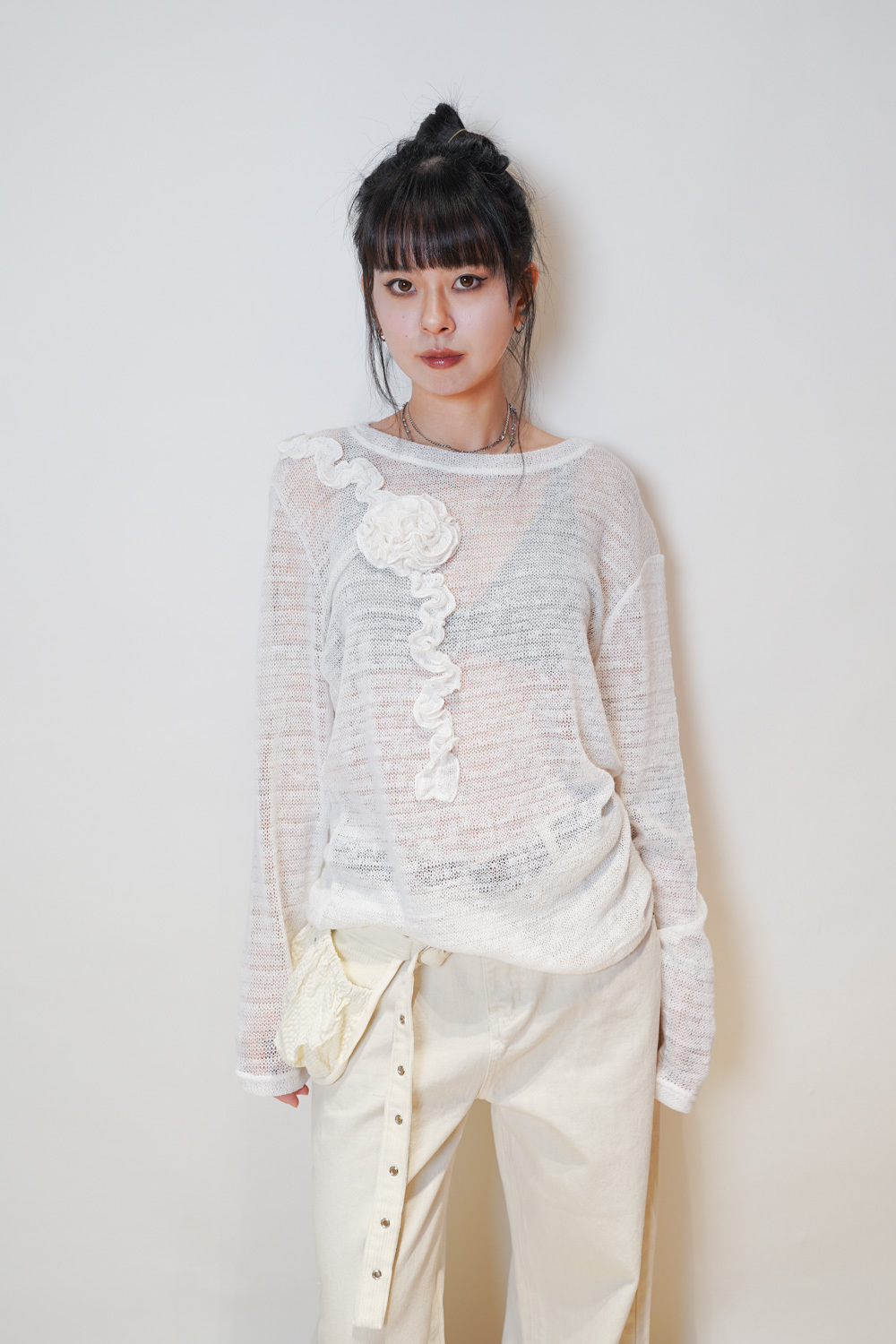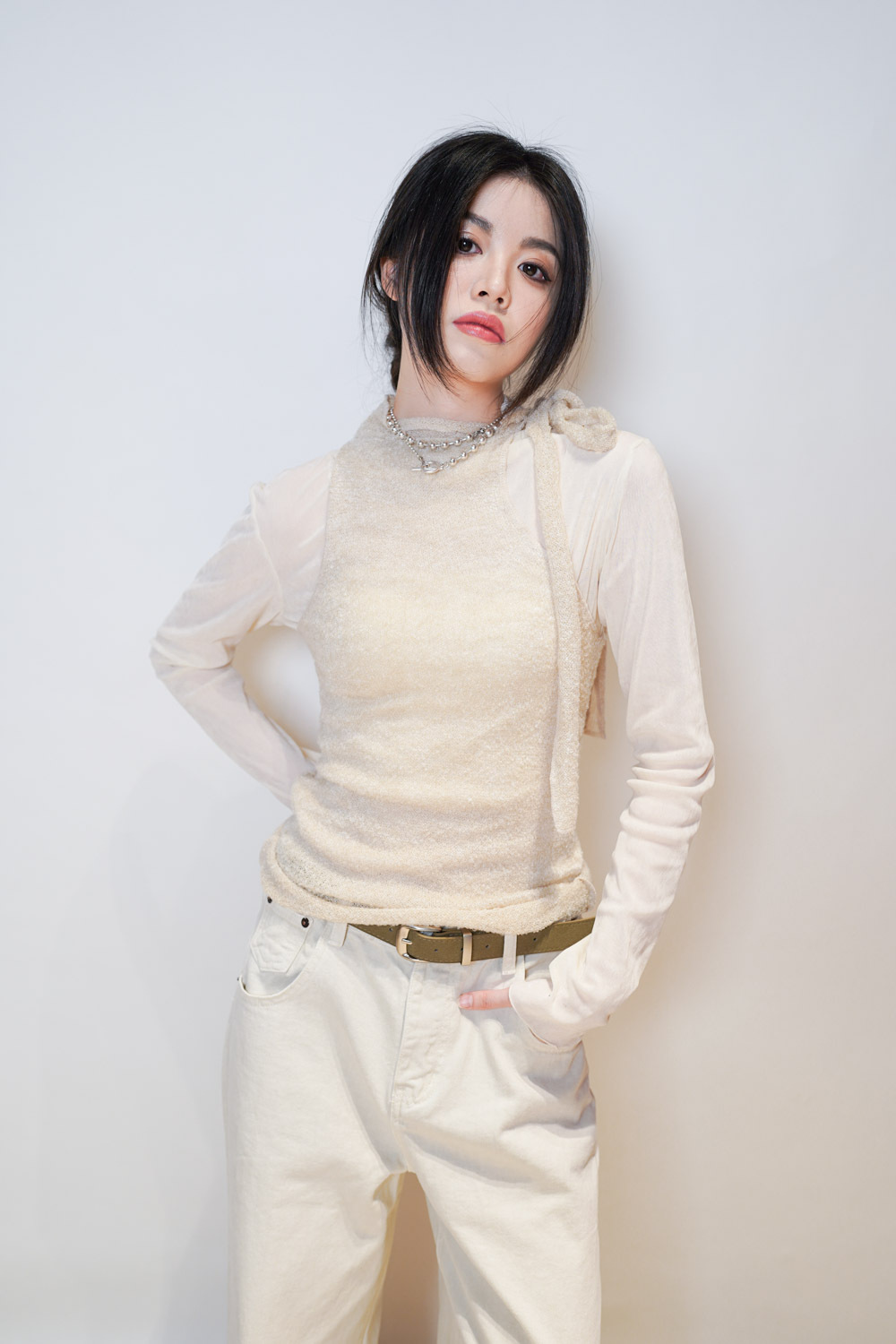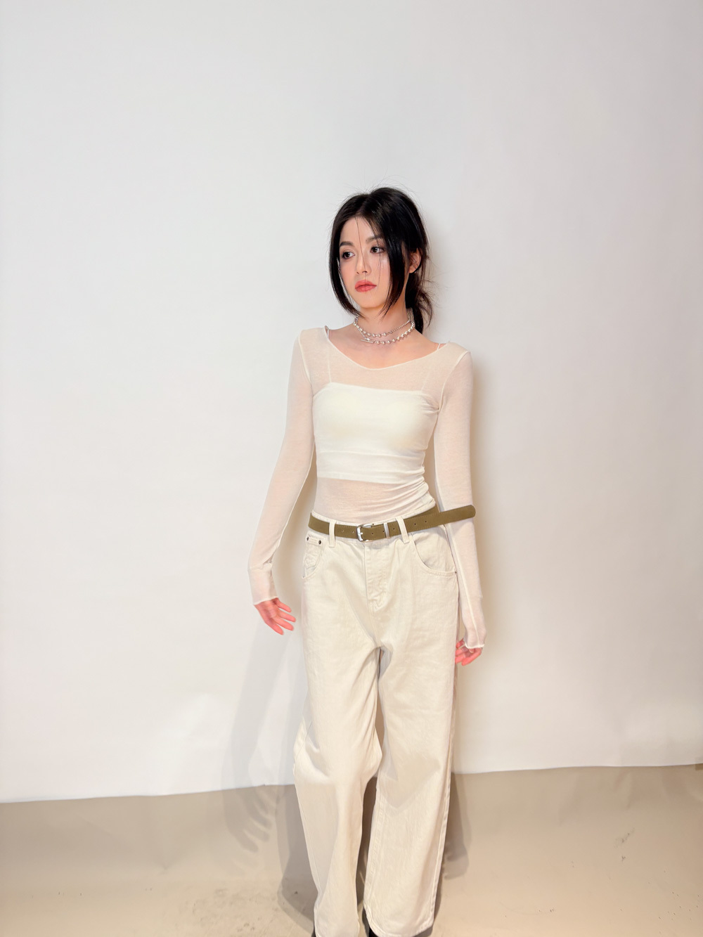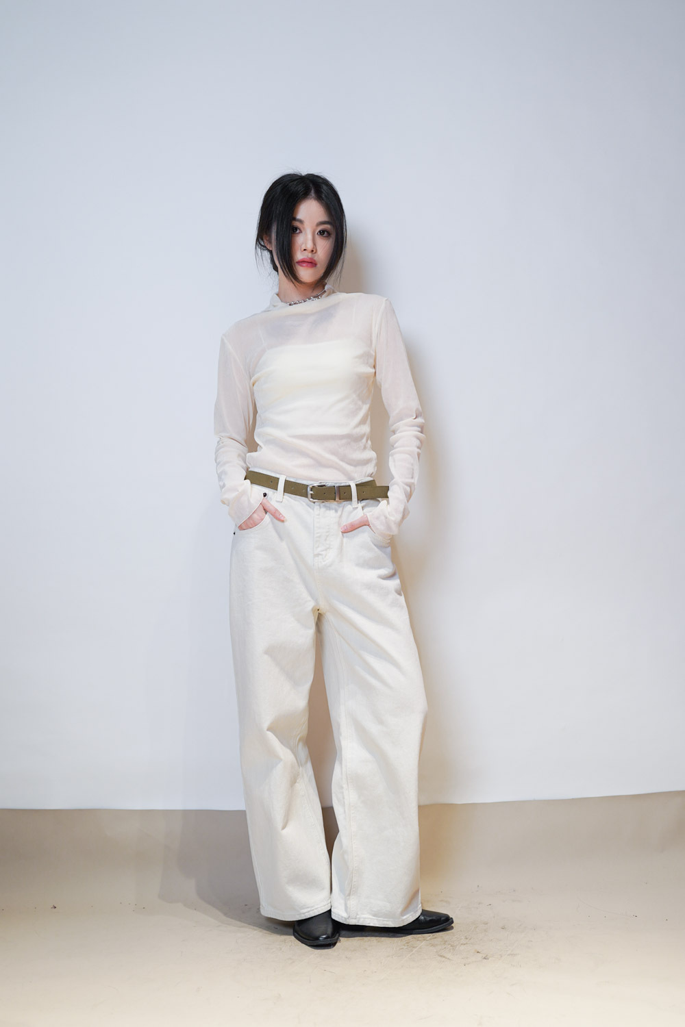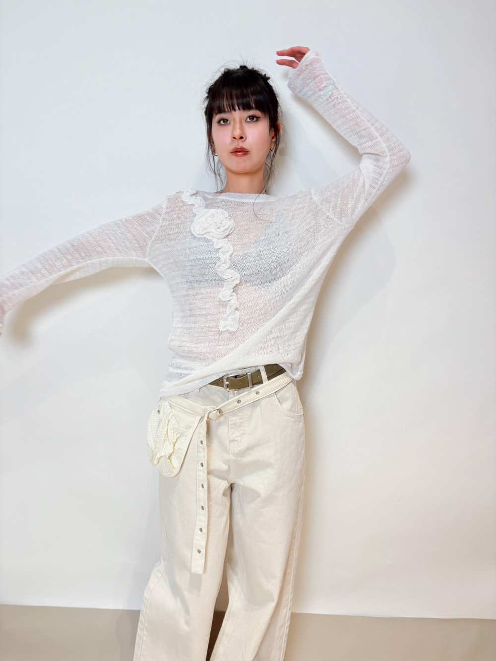 Love~ straight leg David jeans with belt (WHITE/GREY) - S/M