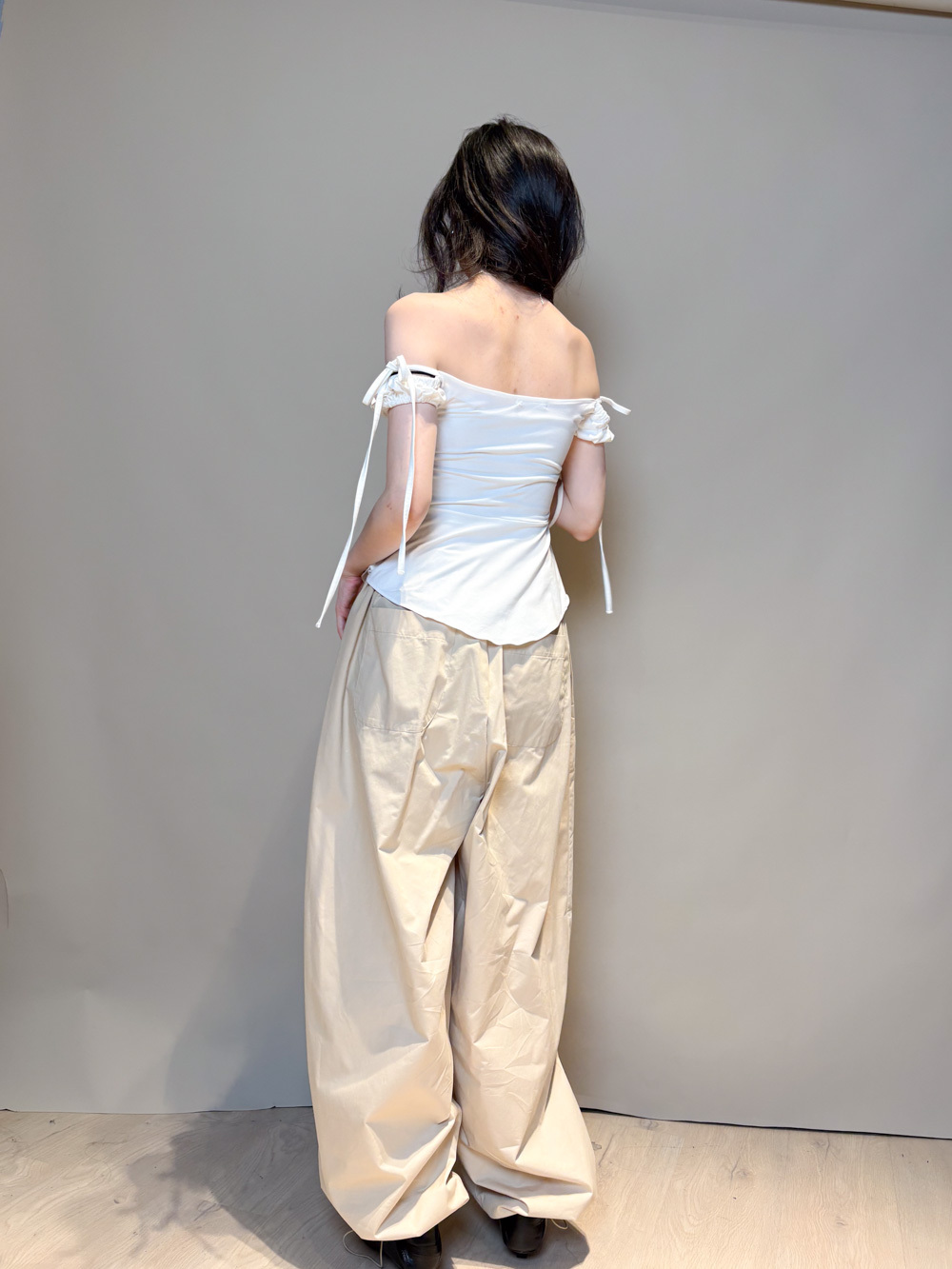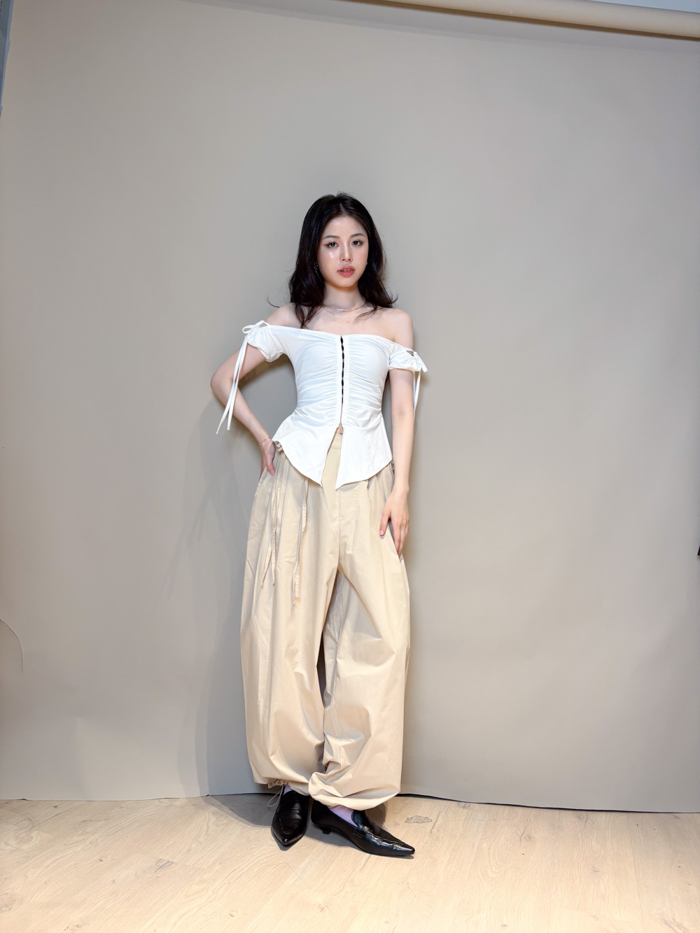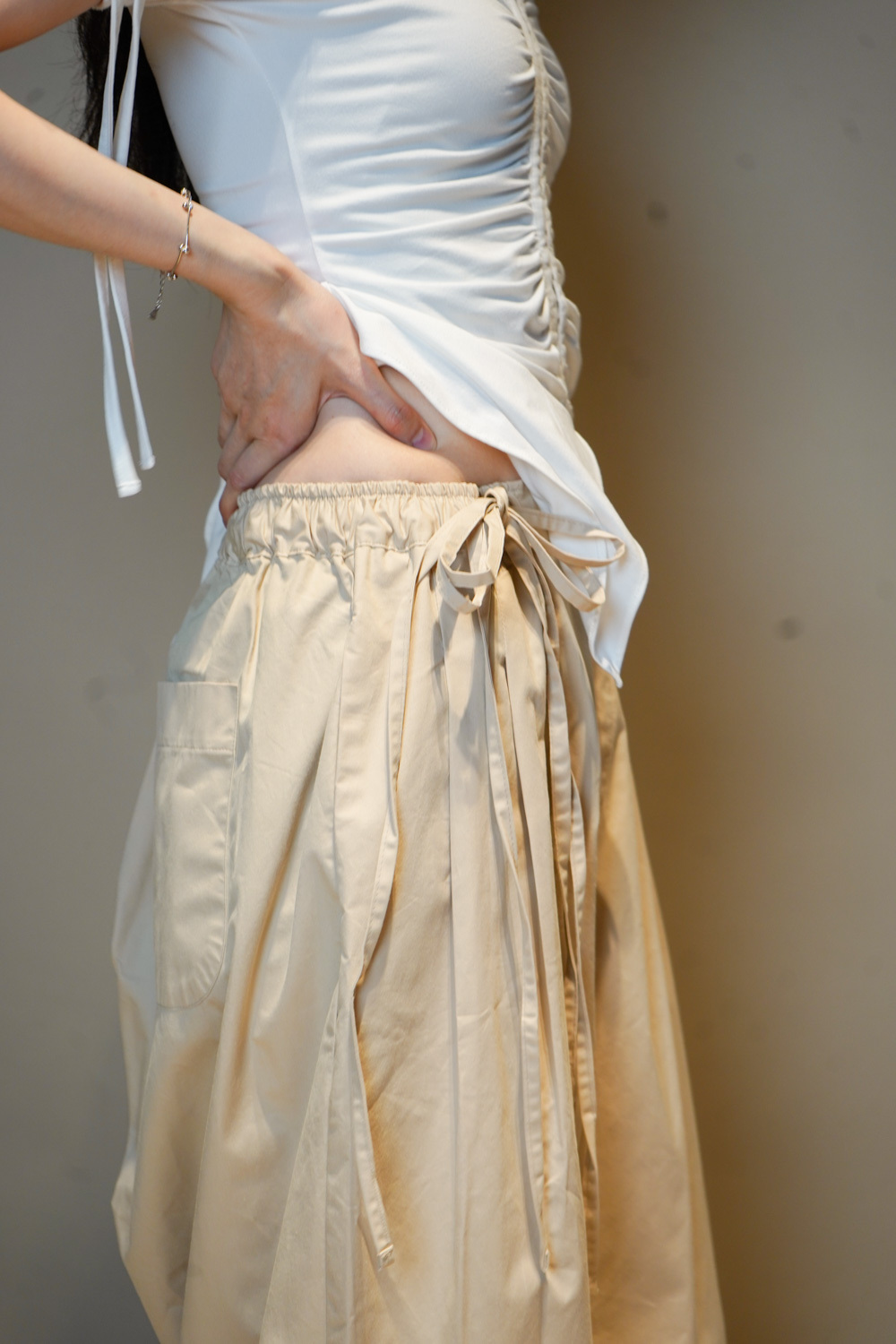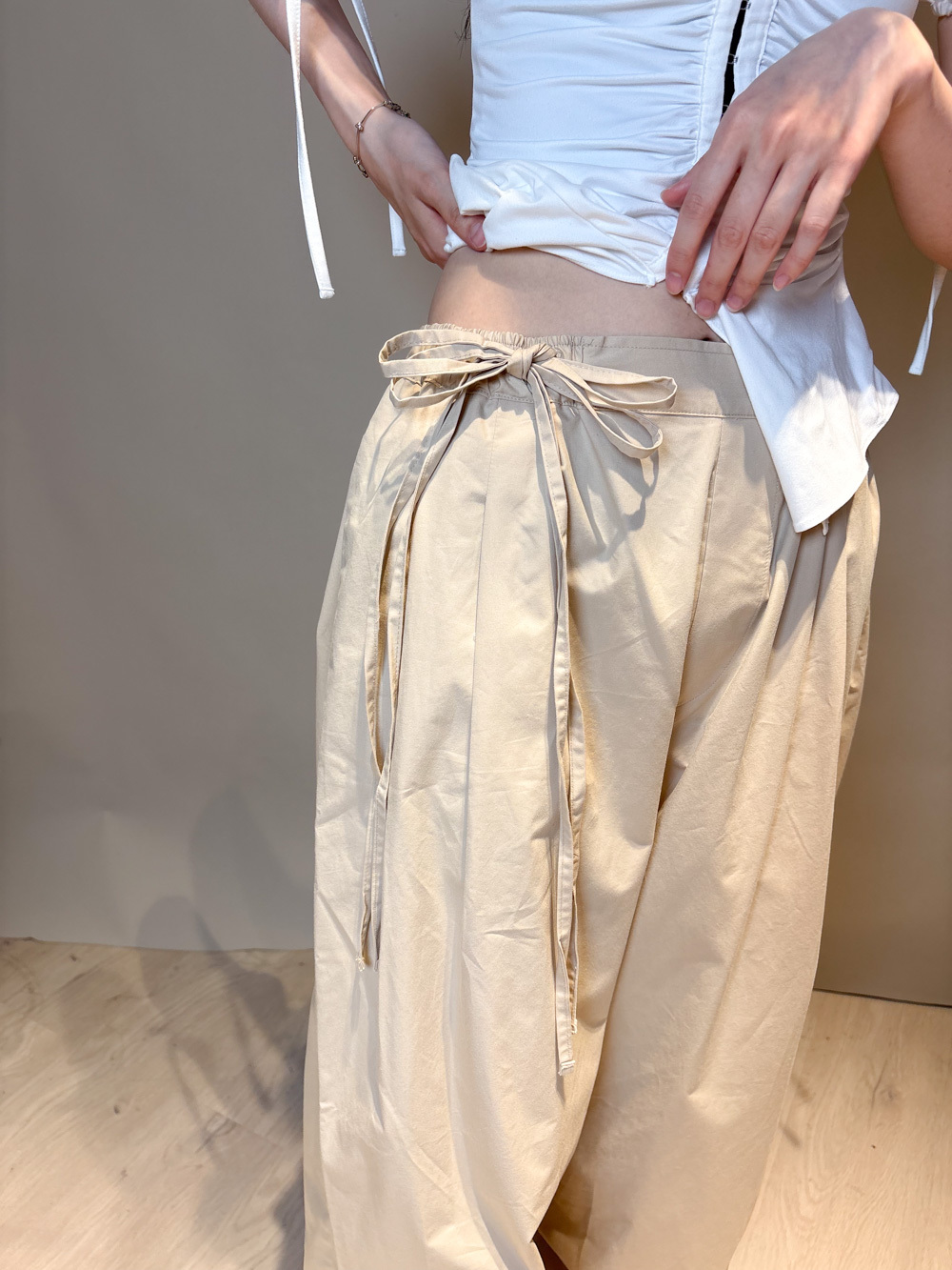 Love~ summer wide pants with side ribbons (BEIGE / GREY) - Free size