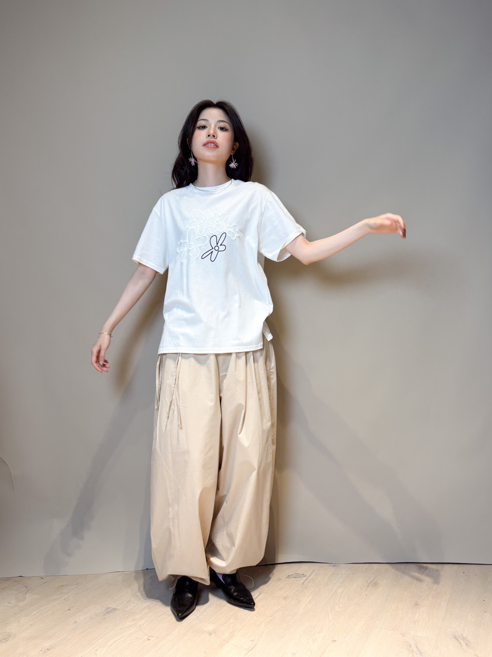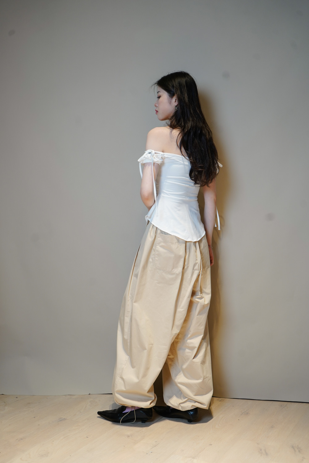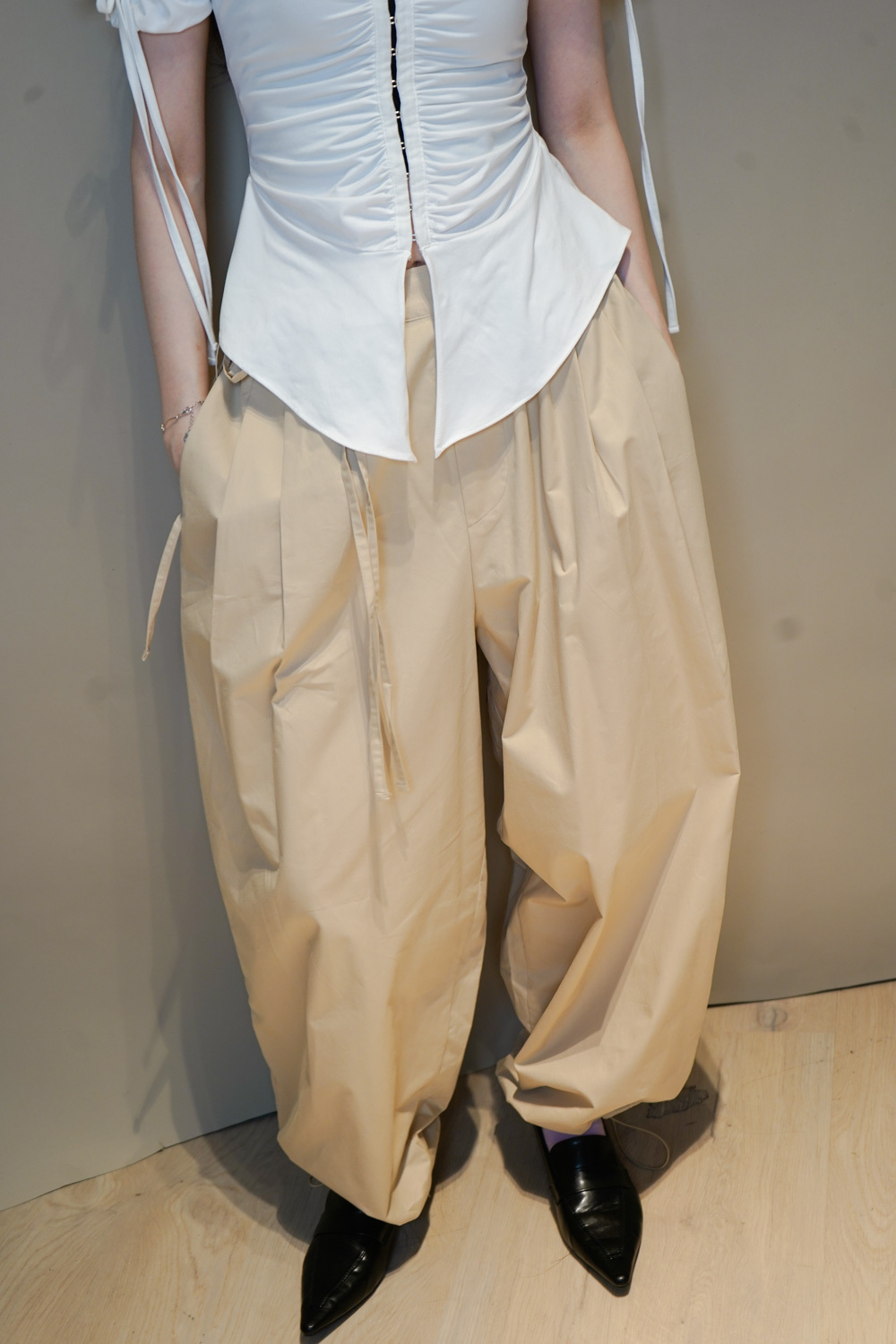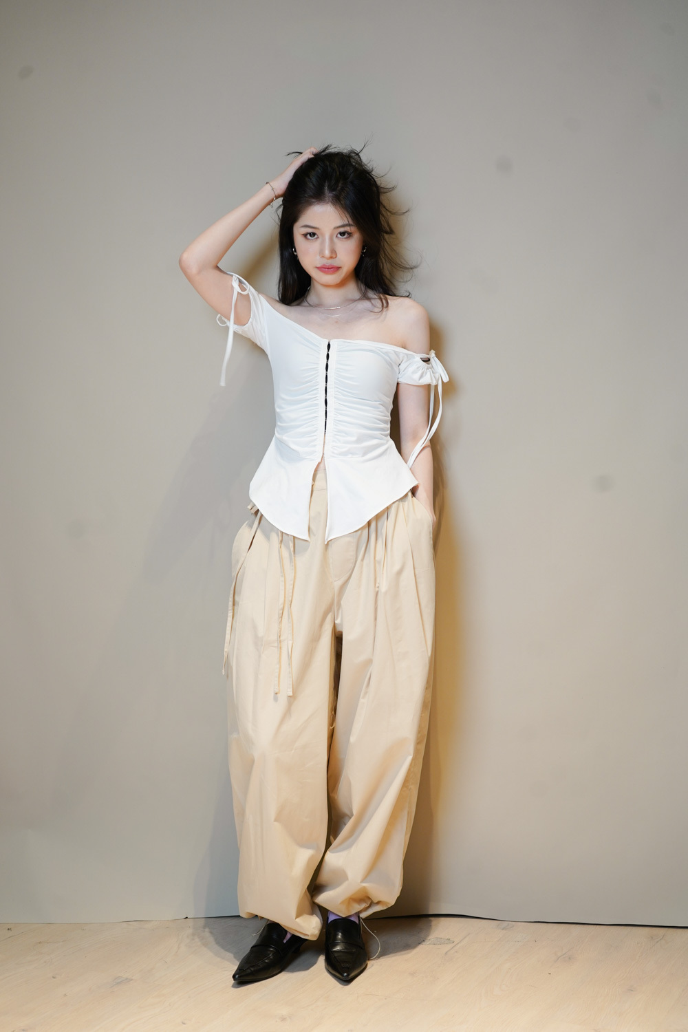 Love~ summer wide pants with side ribbons (BEIGE / GREY) - Free size