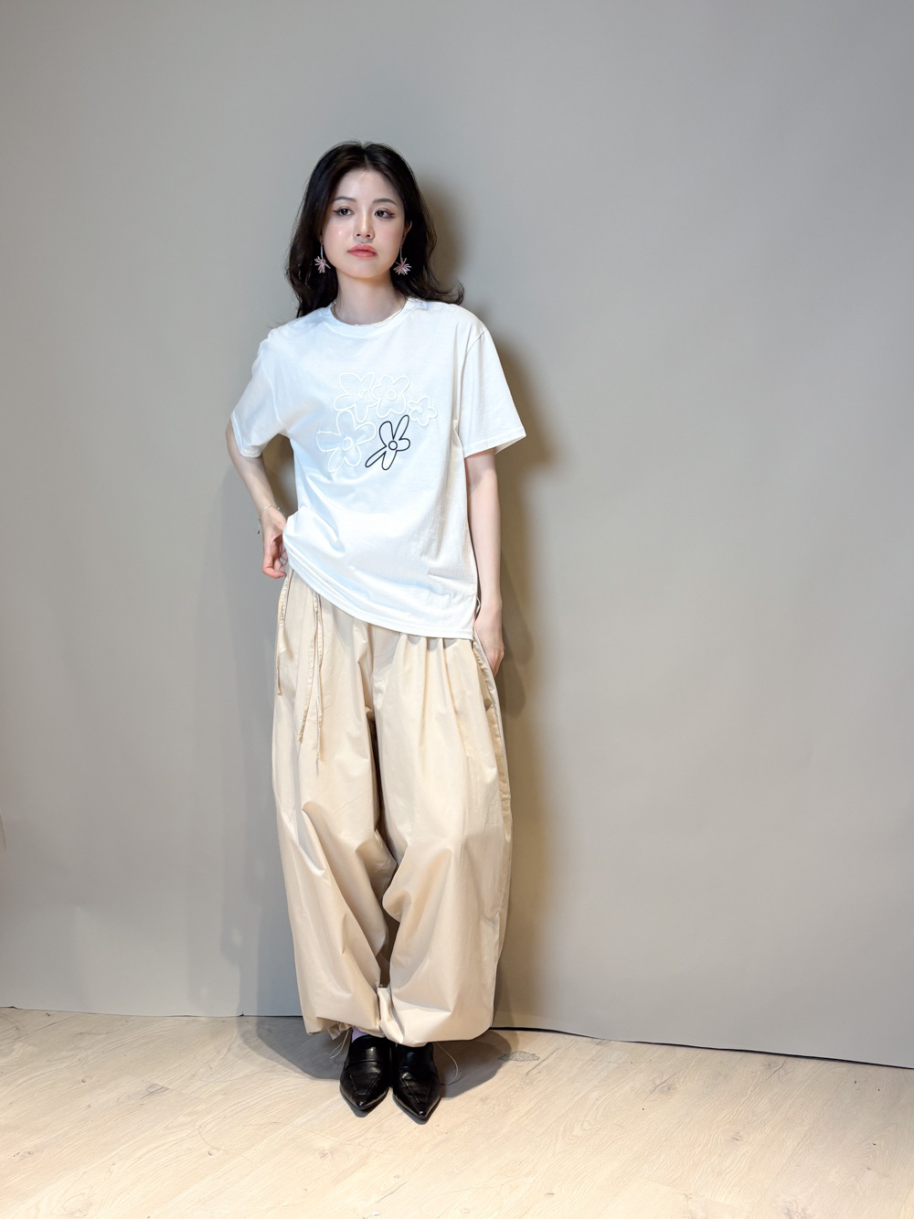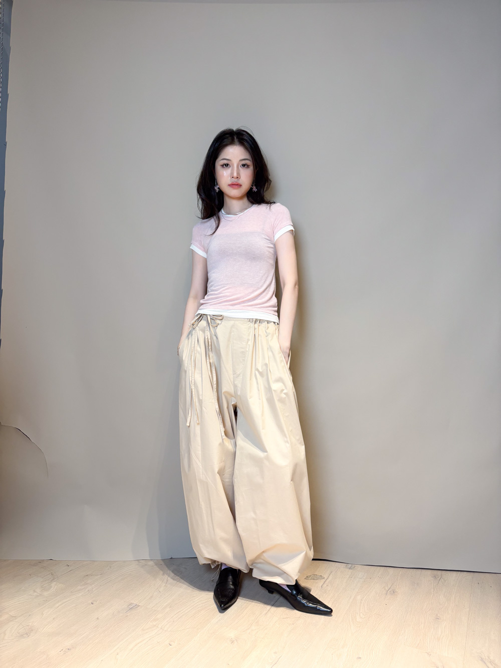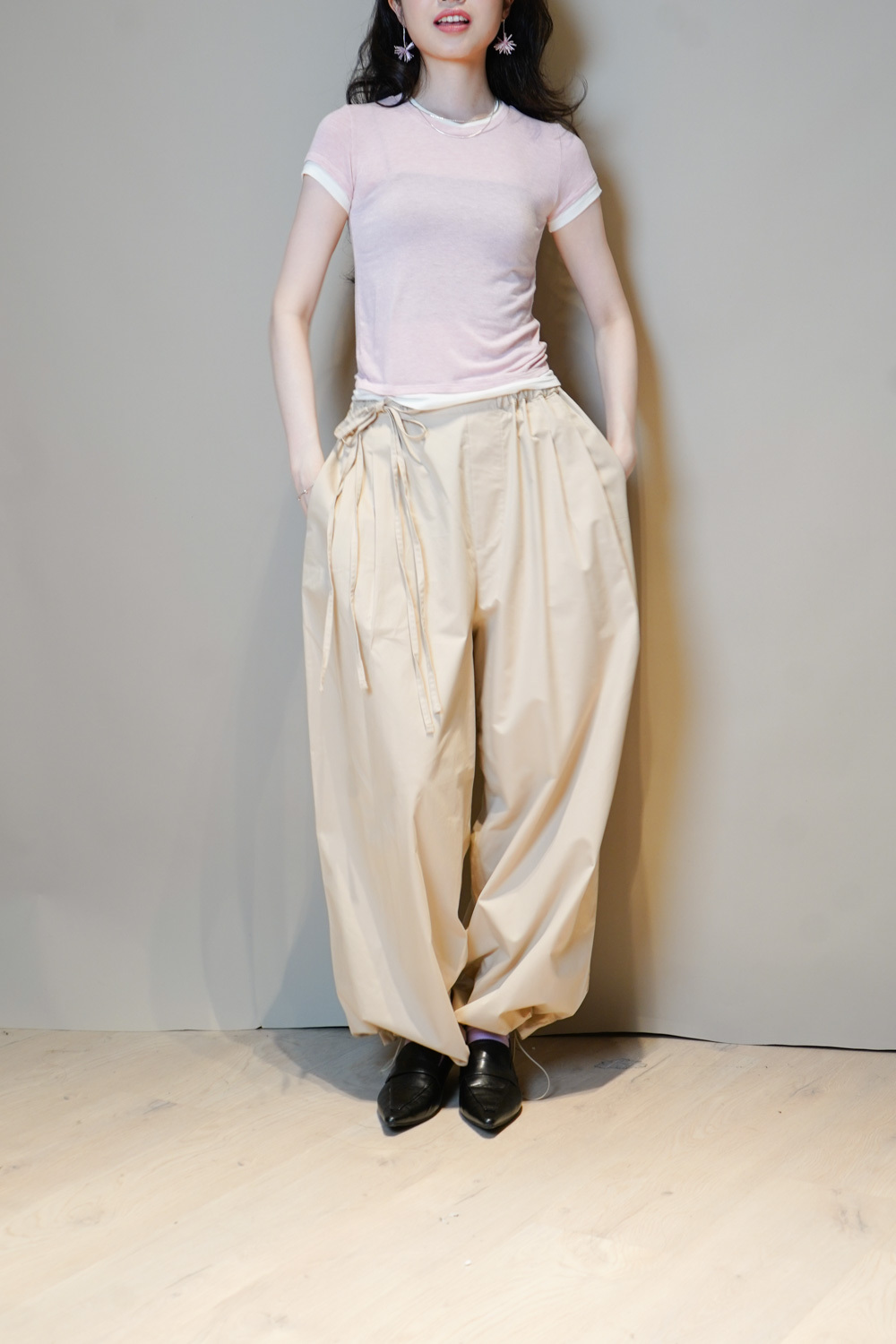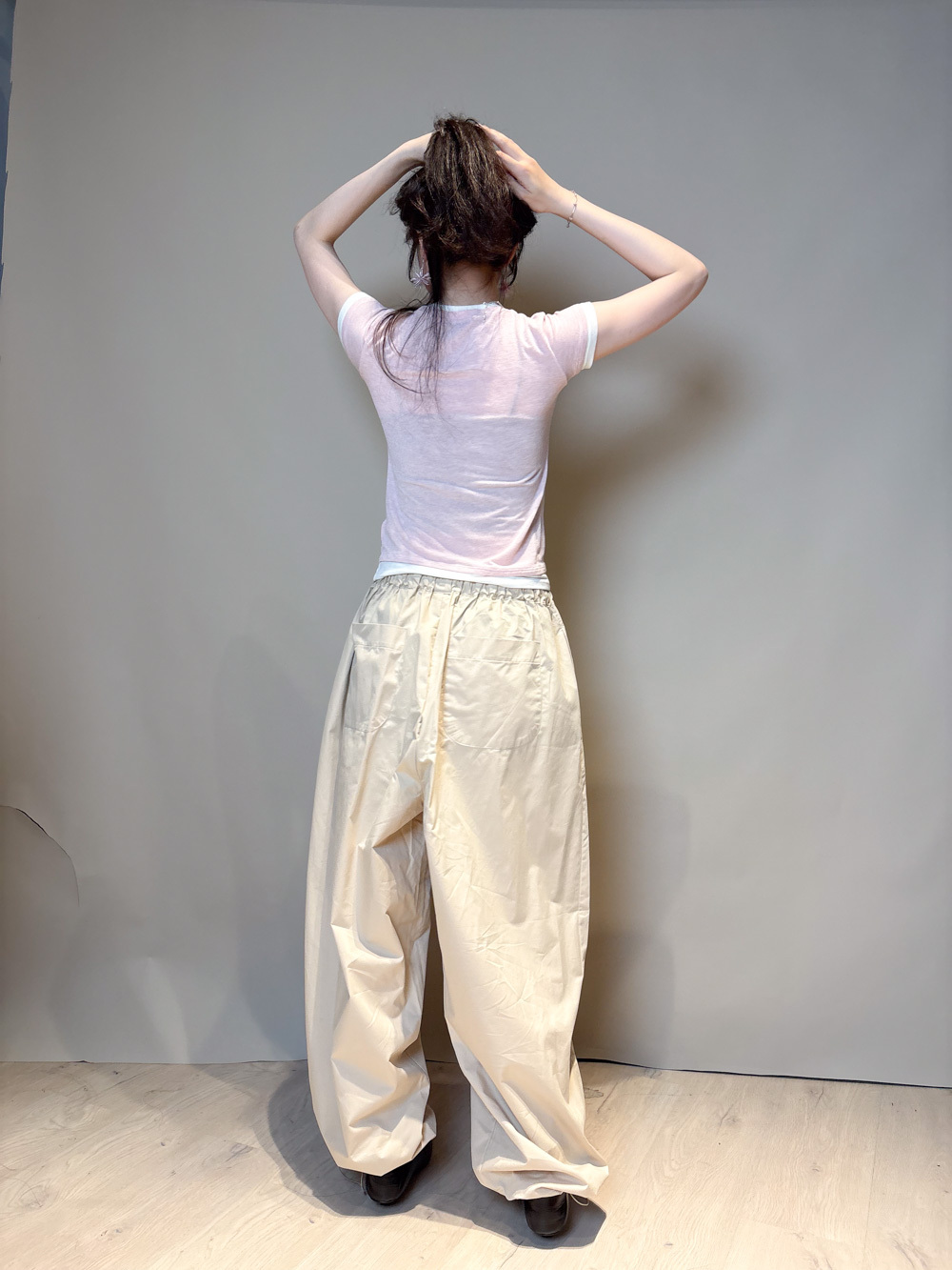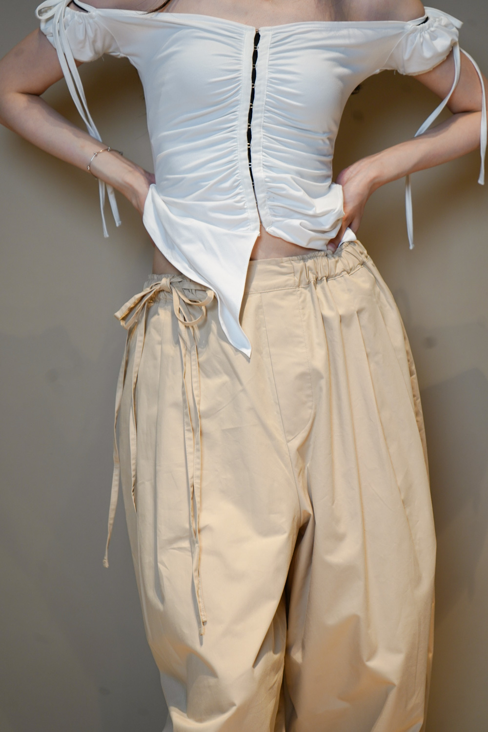 Love~ summer wide pants with side ribbons (BEIGE / GREY) - Free size