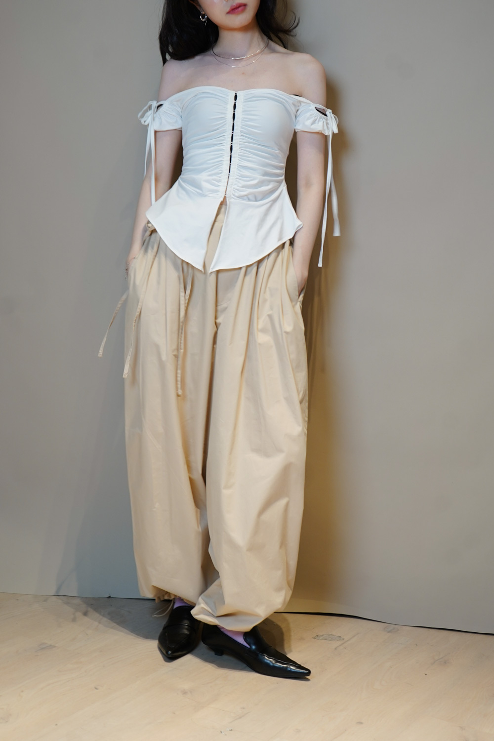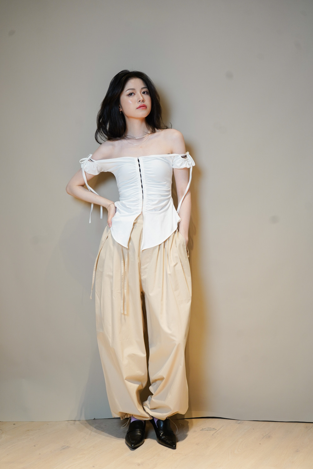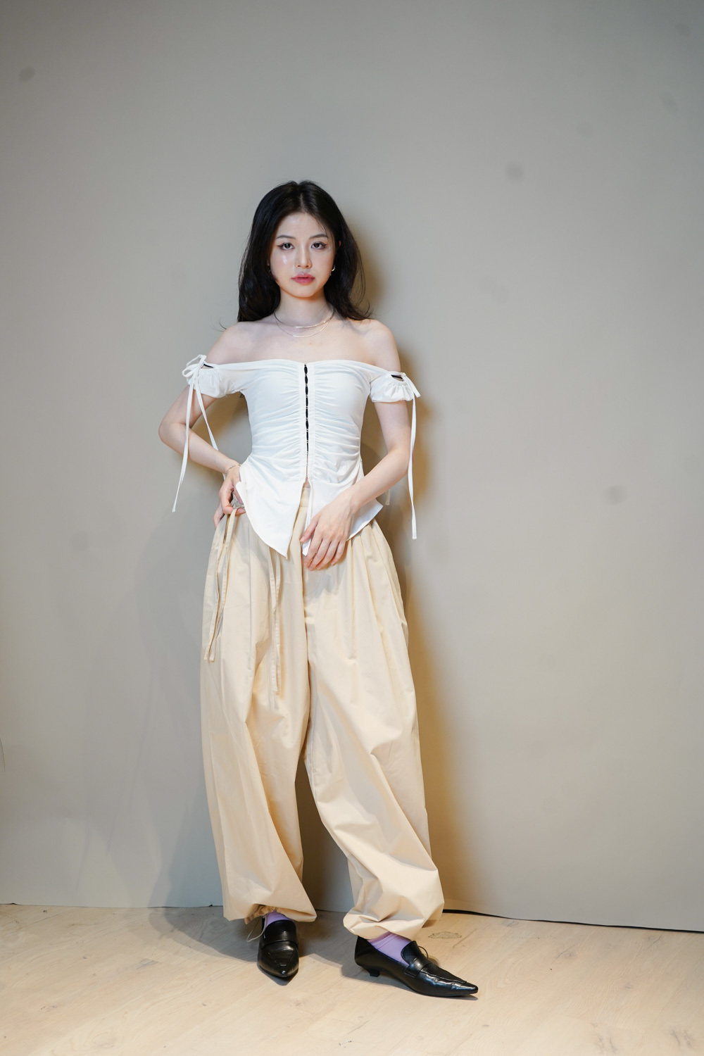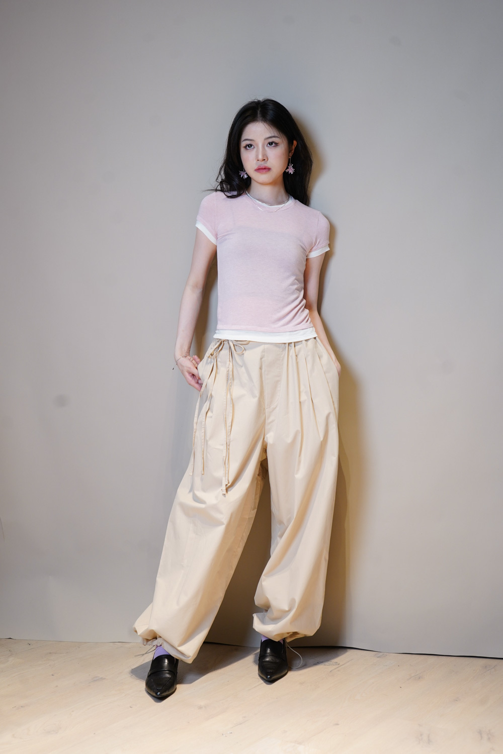 Love~ summer wide pants with side ribbons (BEIGE / GREY) - Free size