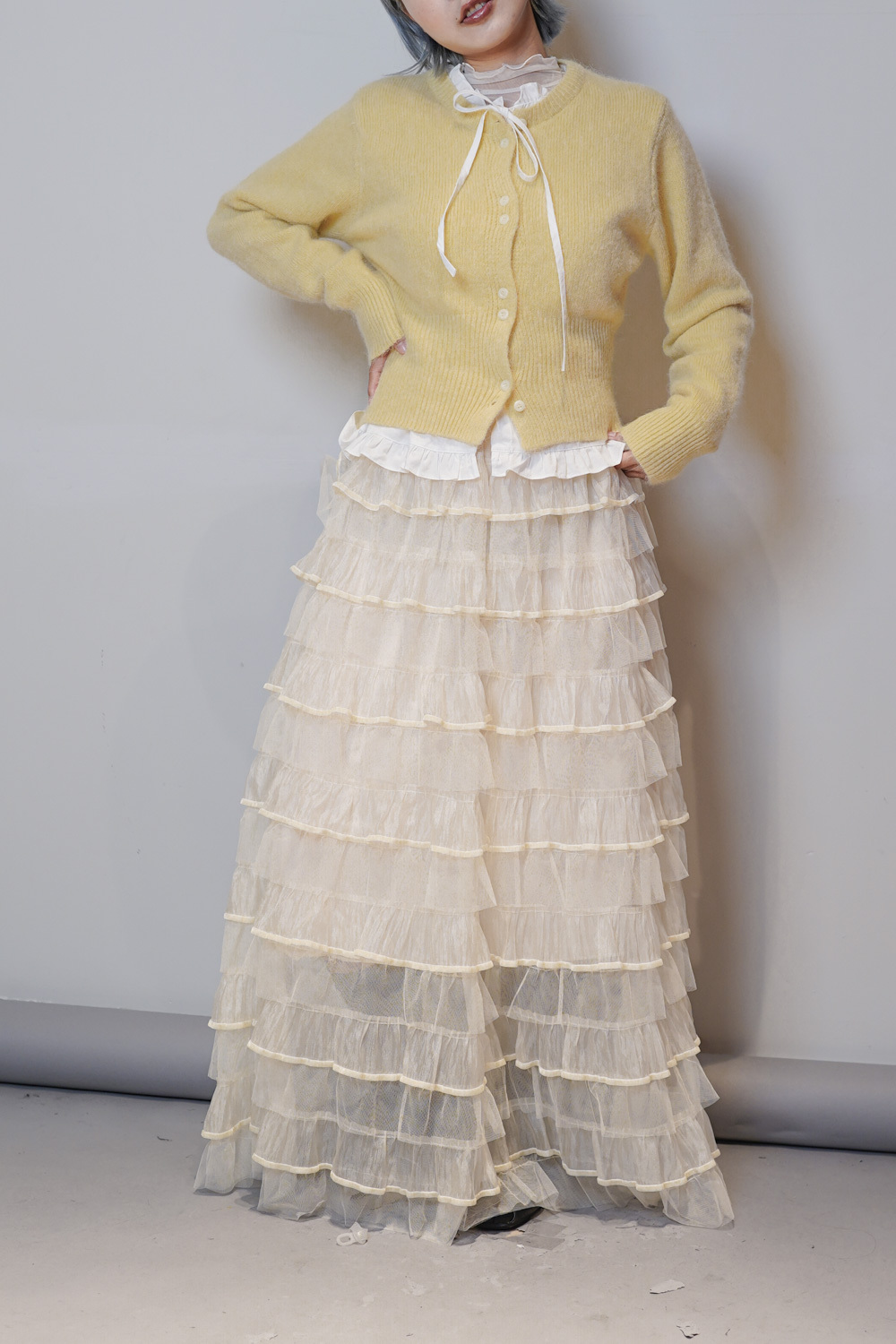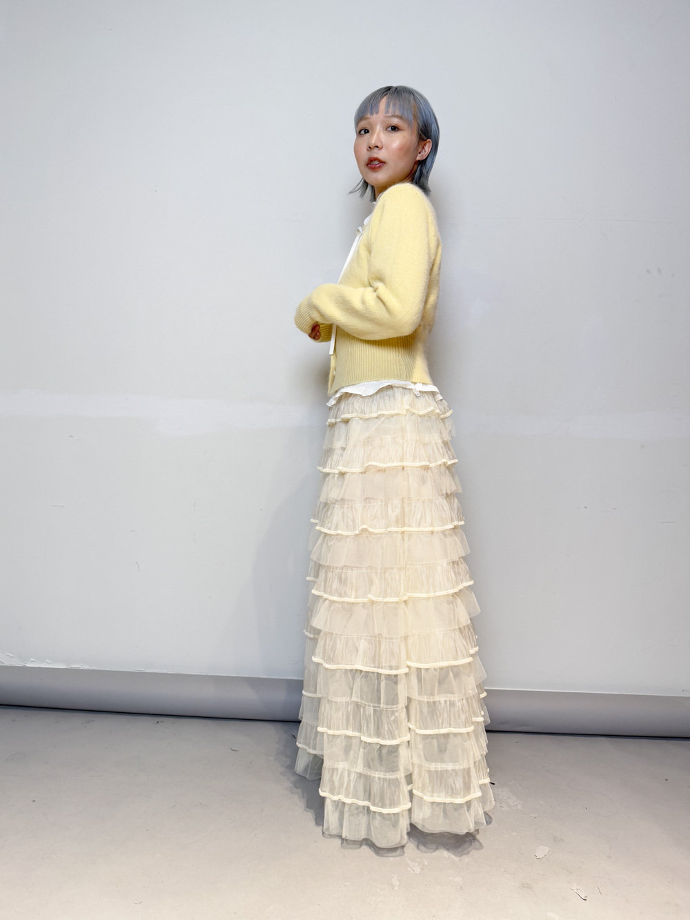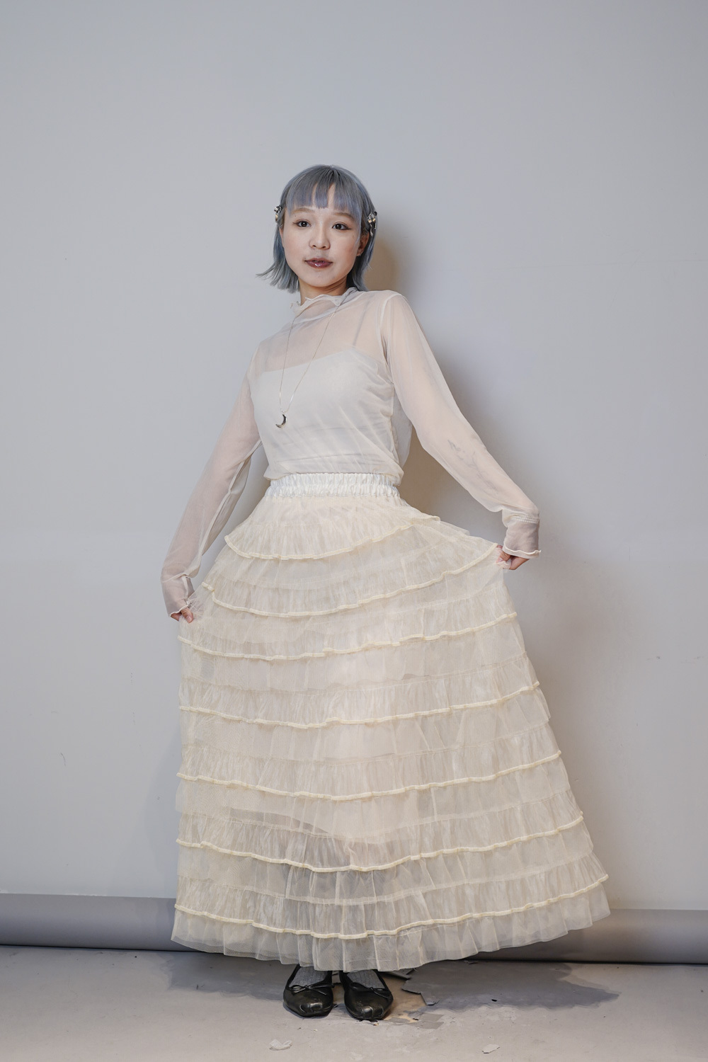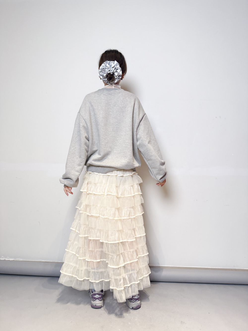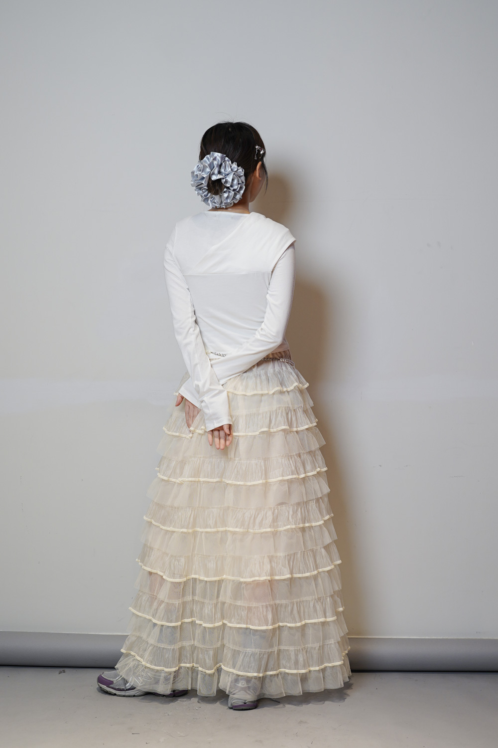 Velvet mesh blossom skirt (IVORY/ BLACK)